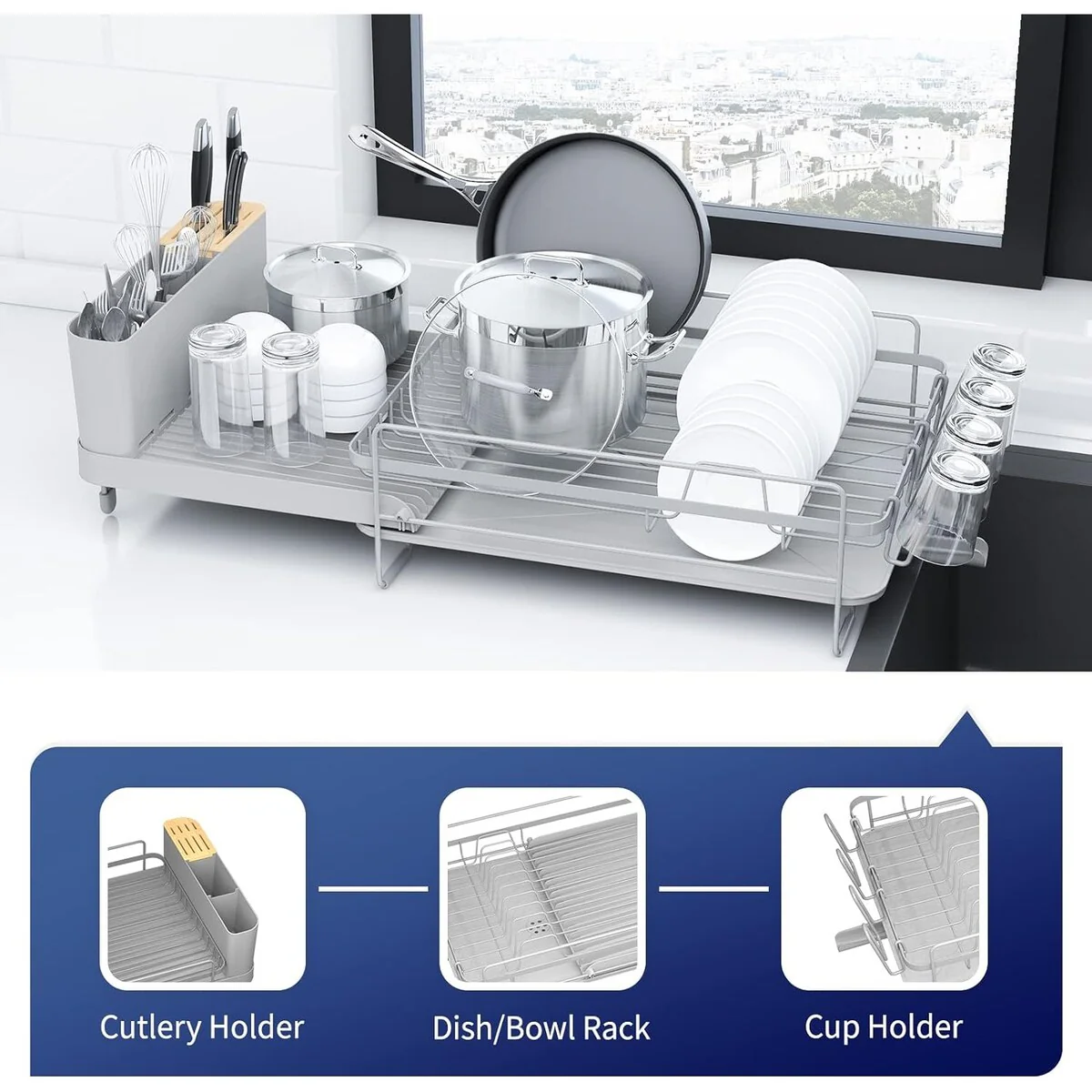 26.7'' Kitsure Large Dish Drying Rack - Extendable Dish Rack
