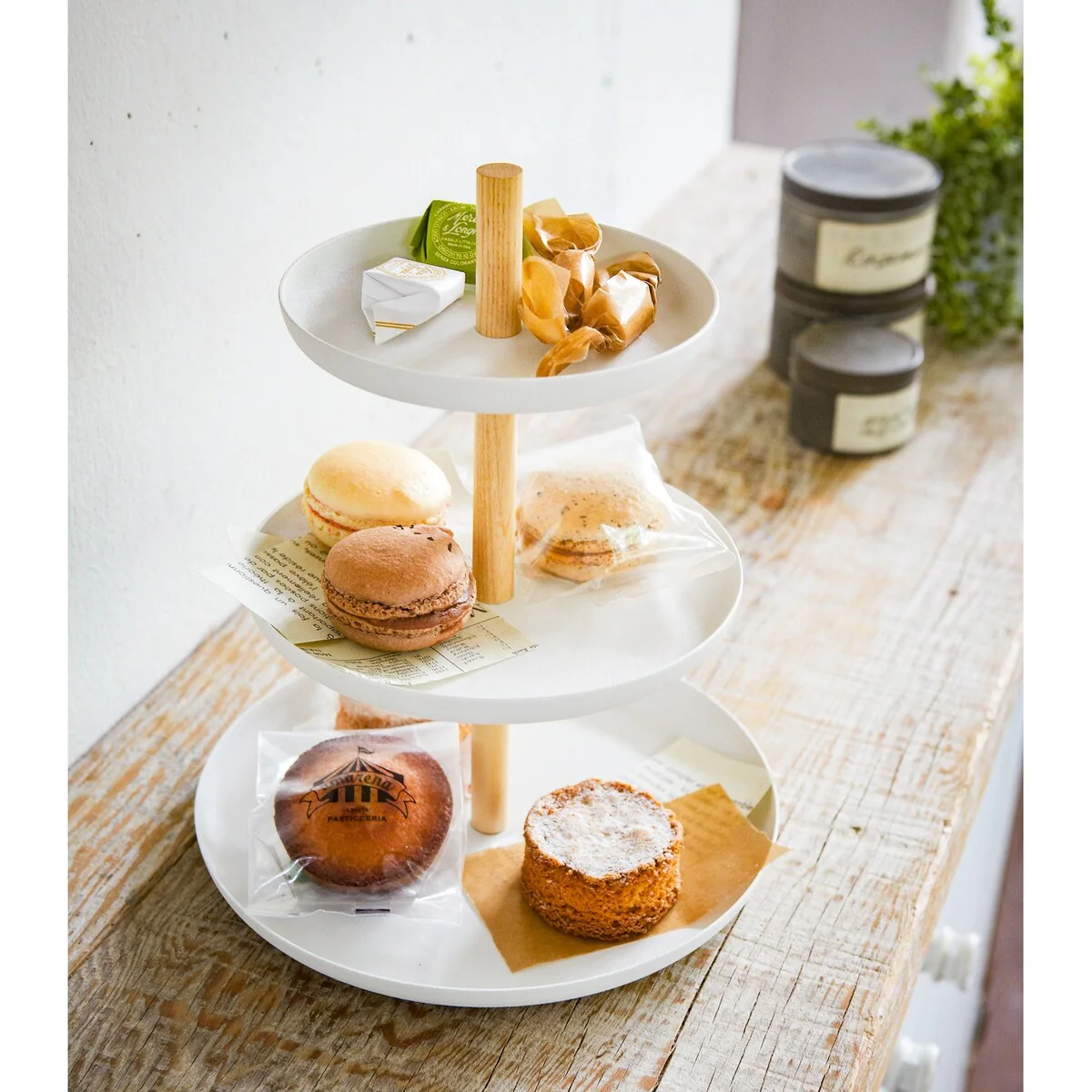 Yamazaki Home Serving Stand, Steel and Wood, Holds 6.6 lbs - L 7.87 x W 7.87 x H 9.45 inches