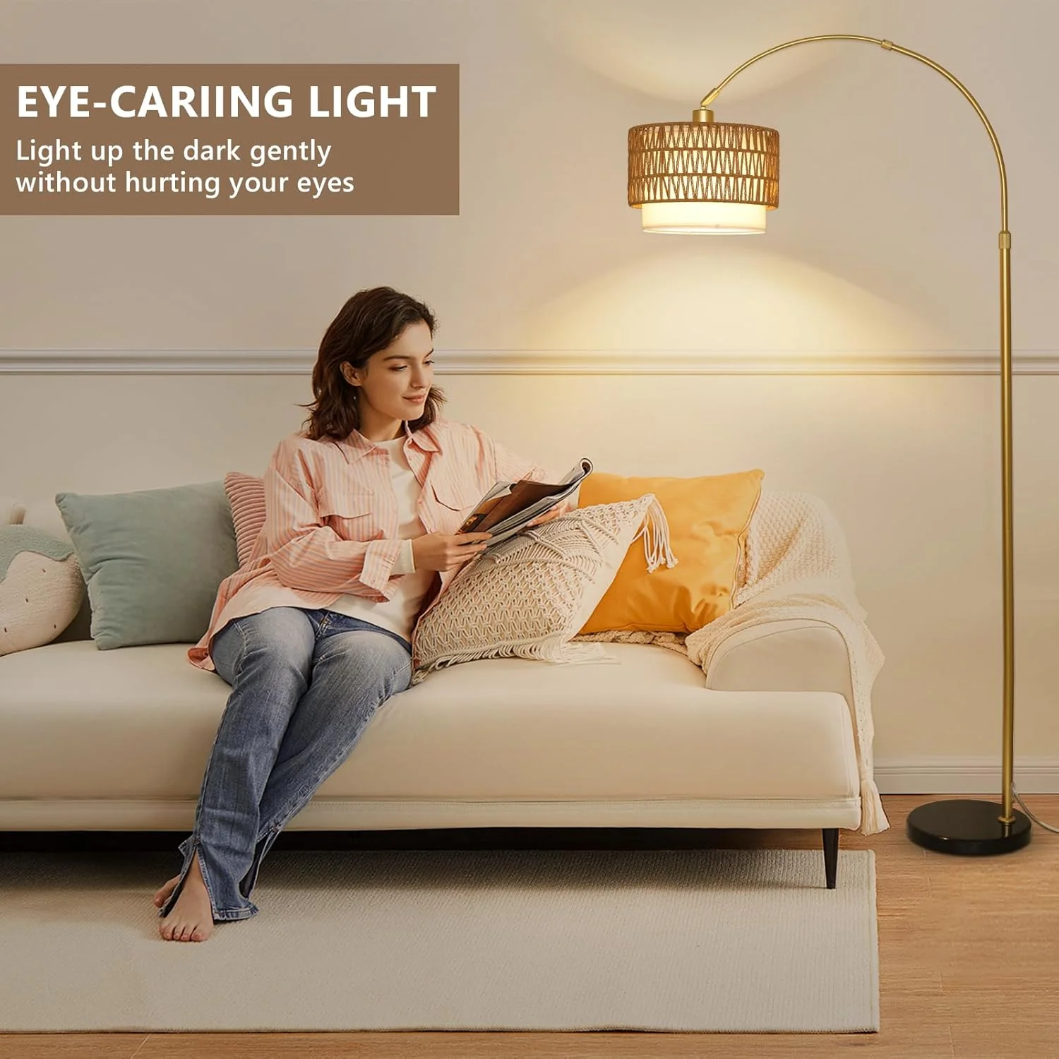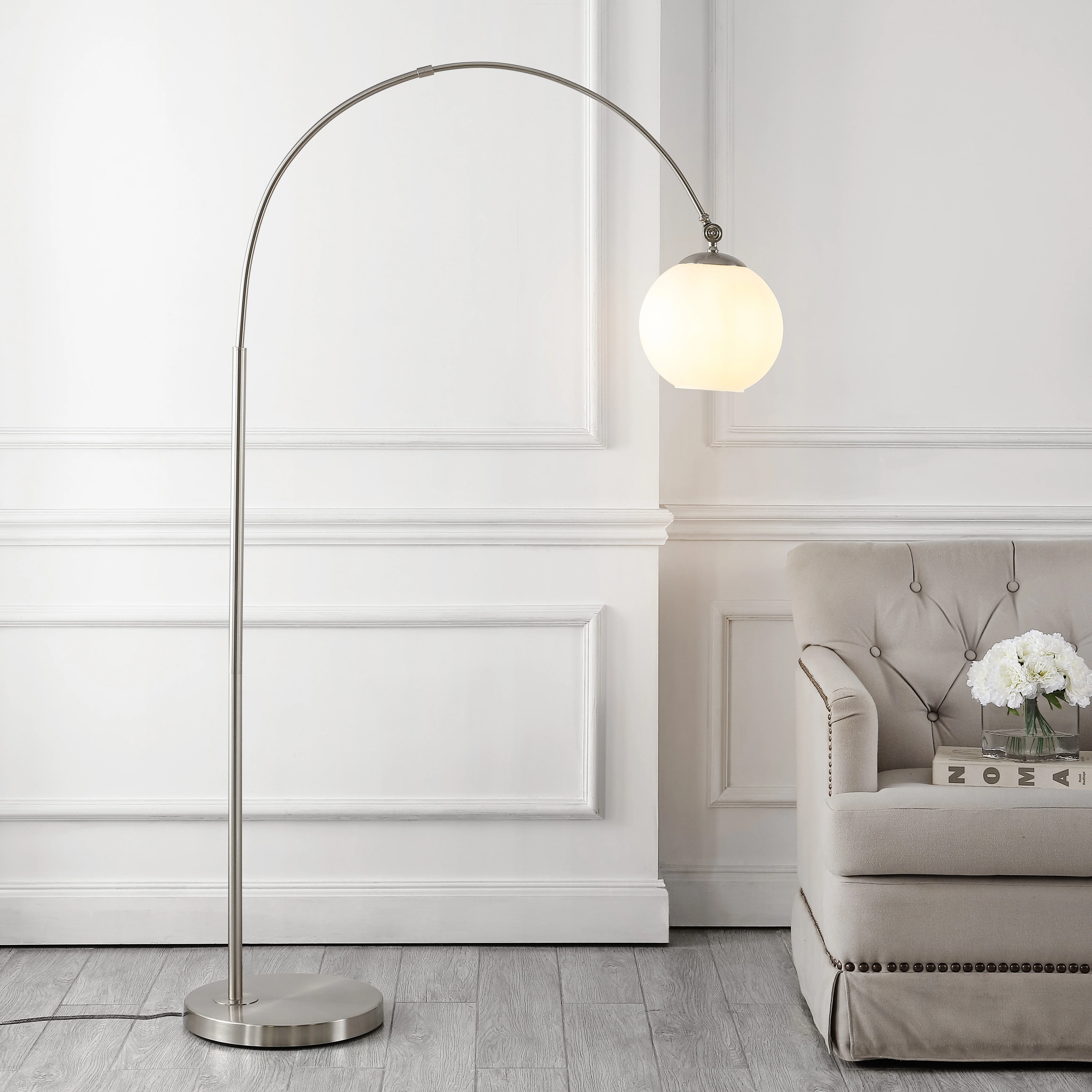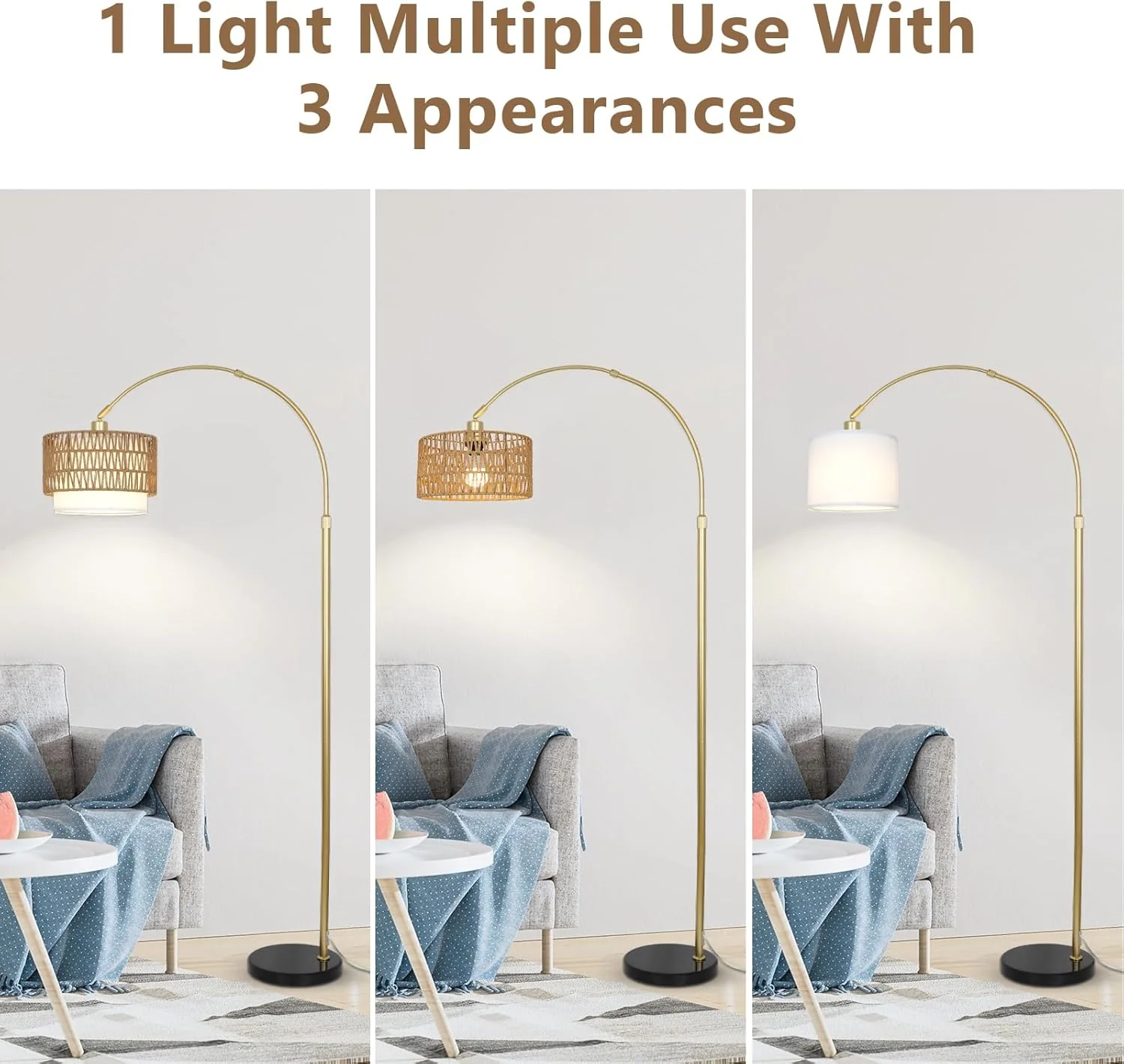 Adjustable Height Arched Floor Lamp with Double Drum Shade and 3 Color Temperatures