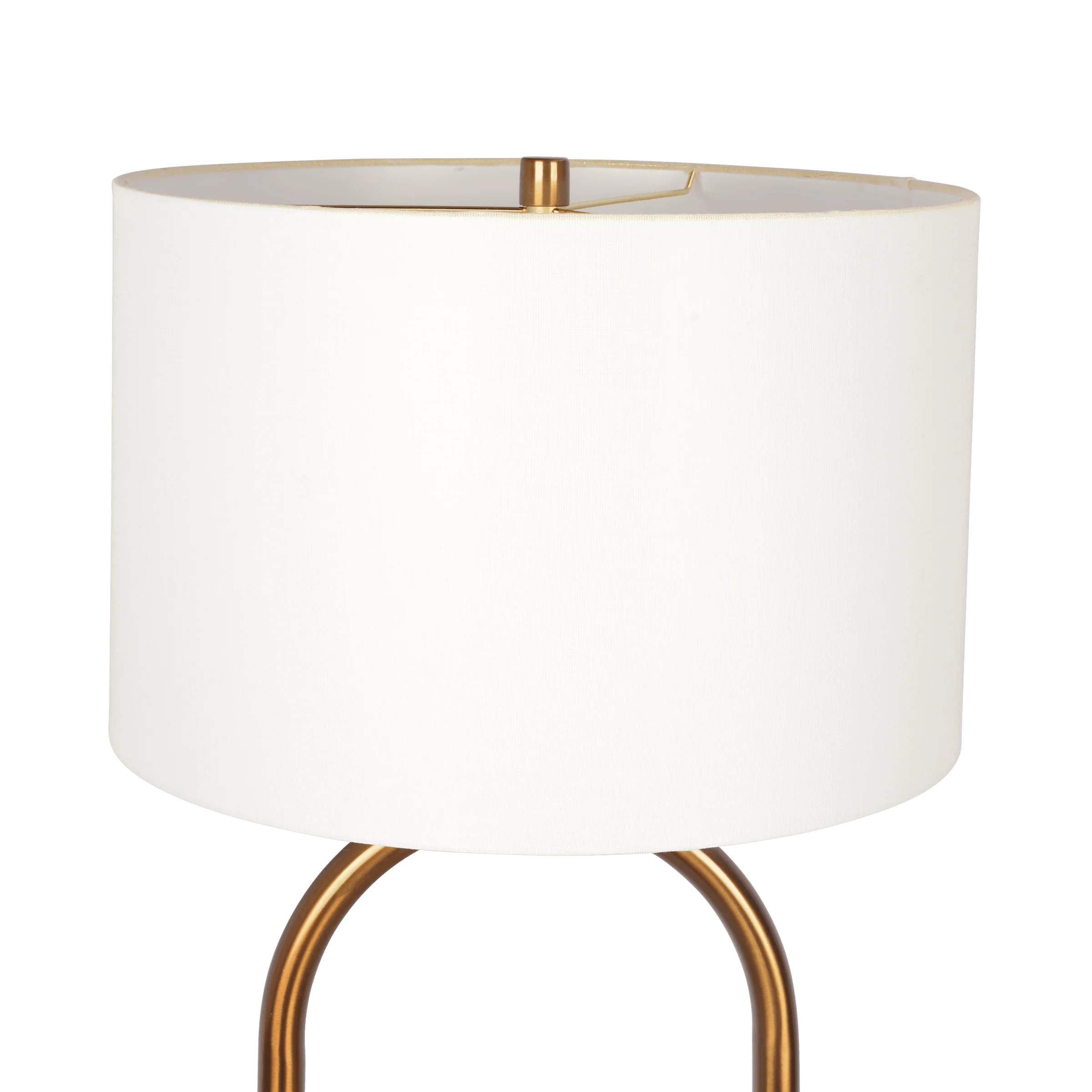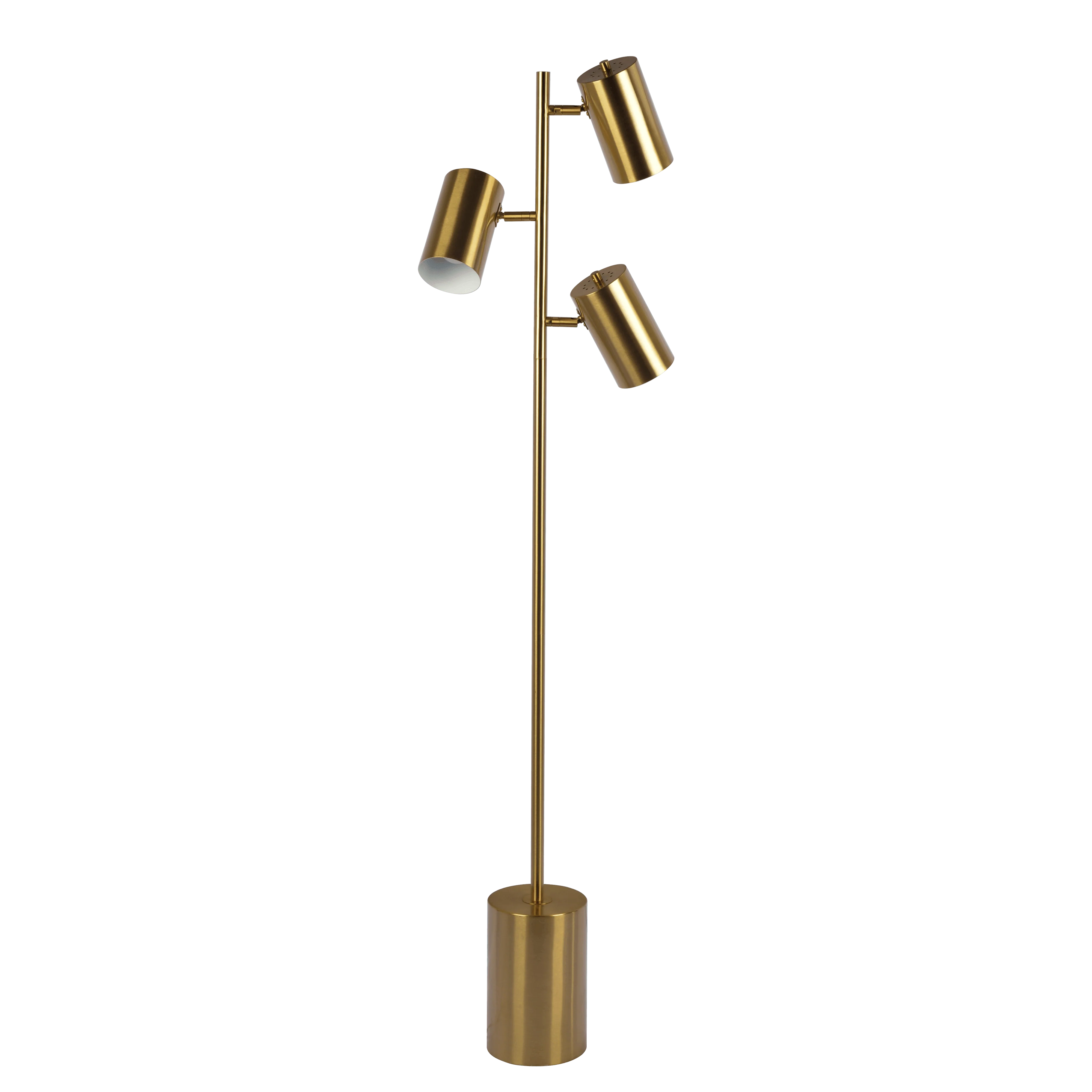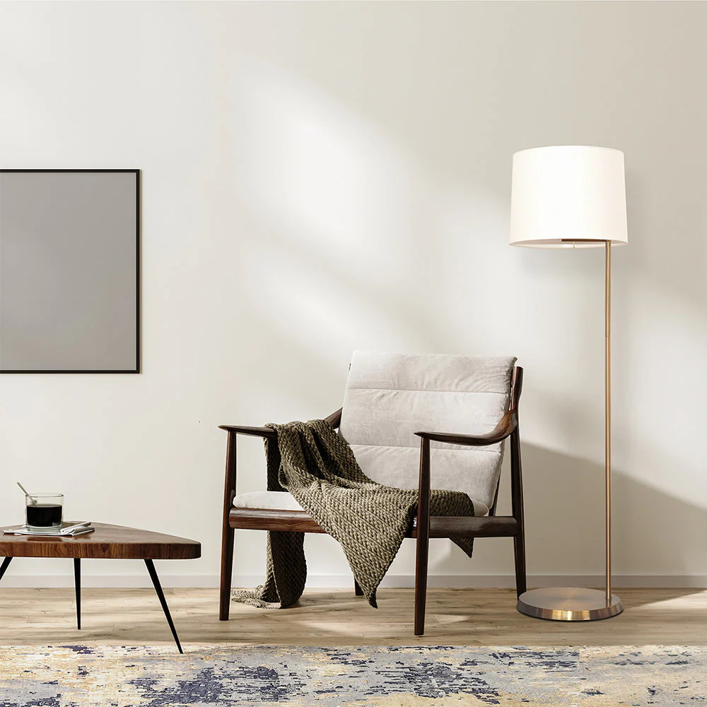 61 Floor Lamp with Drum-Shaped Linen Shade and Brass Base
