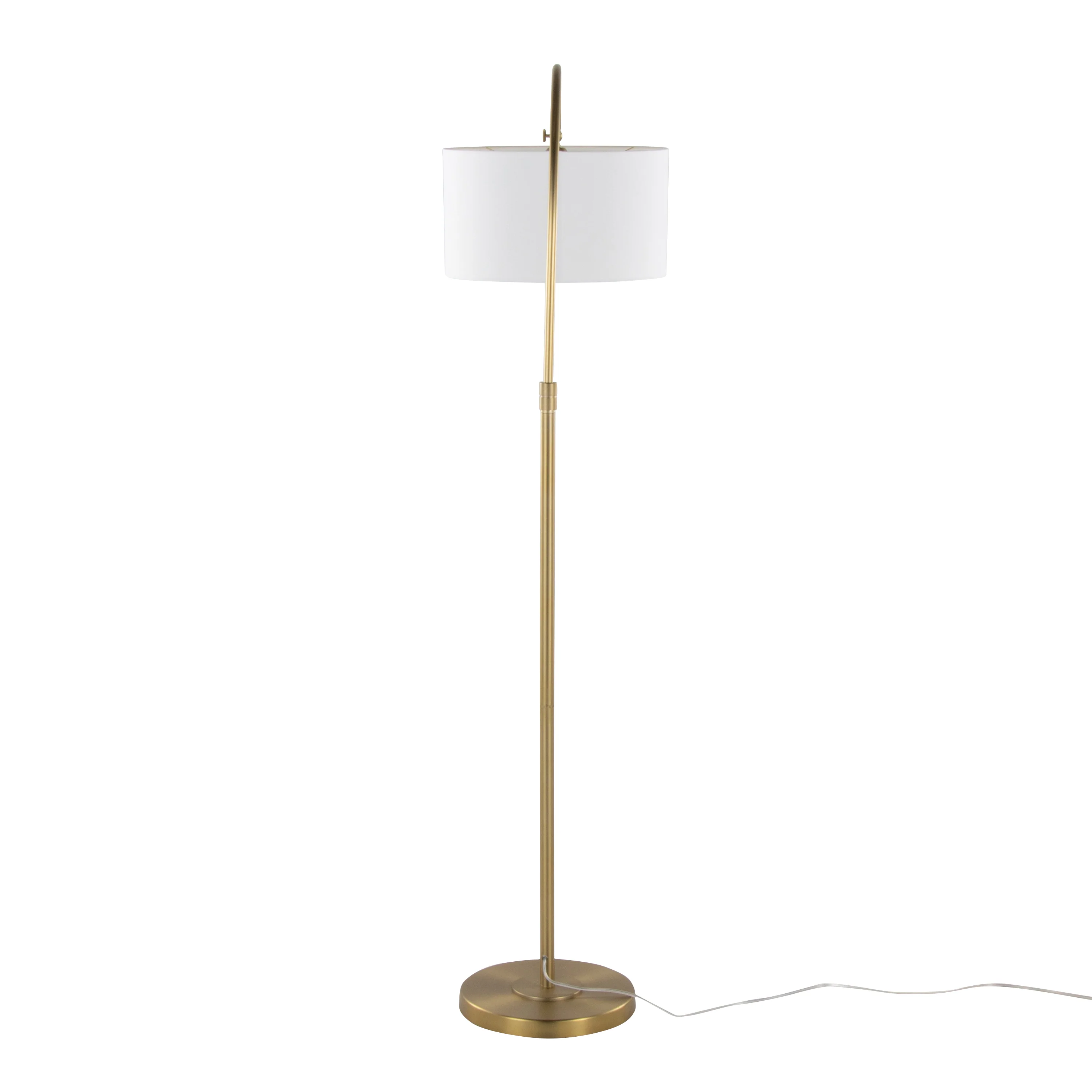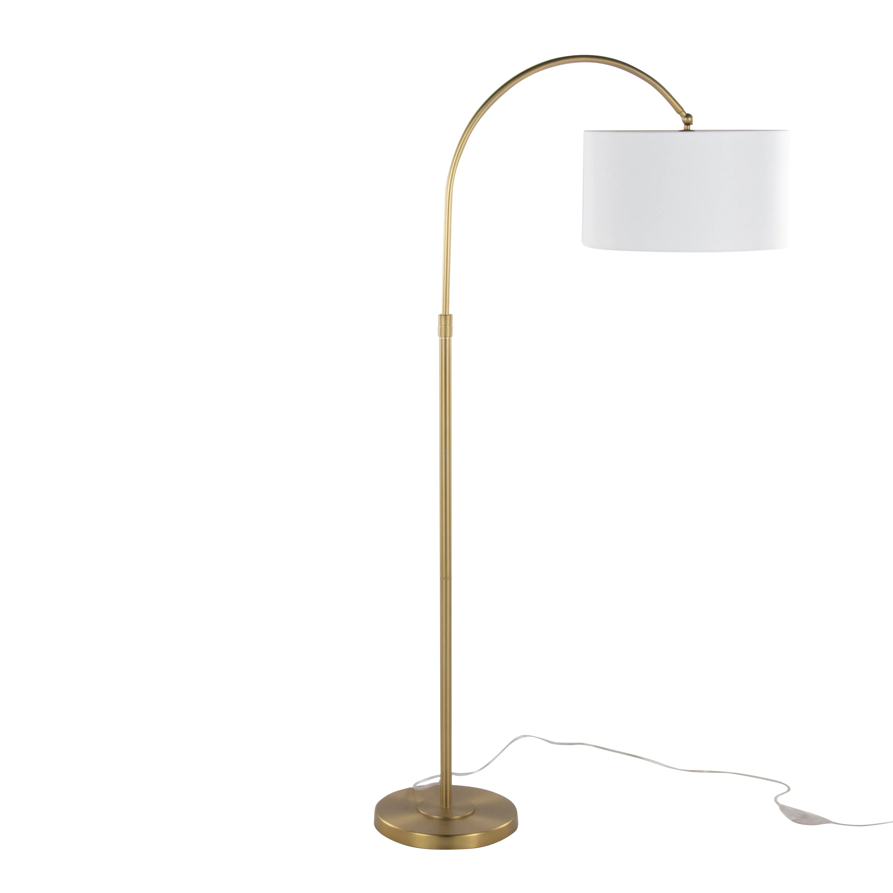 63 Floor Lamp with Drum Shade and Arched Metal Neck