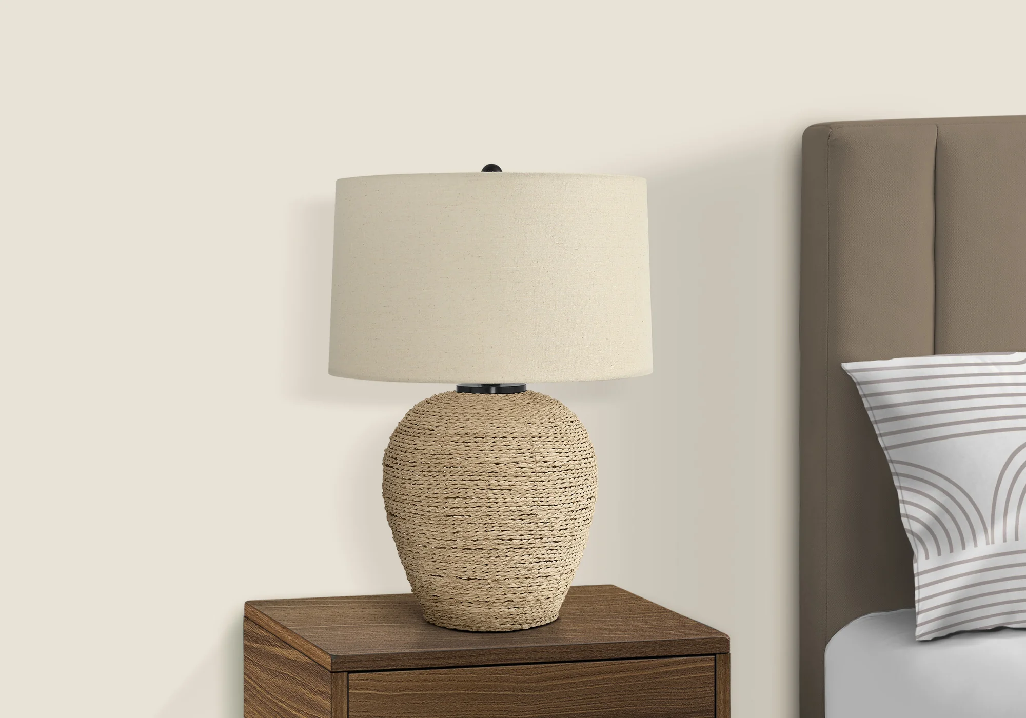 Table Lamp with Ceramic Base and Raffia Shade