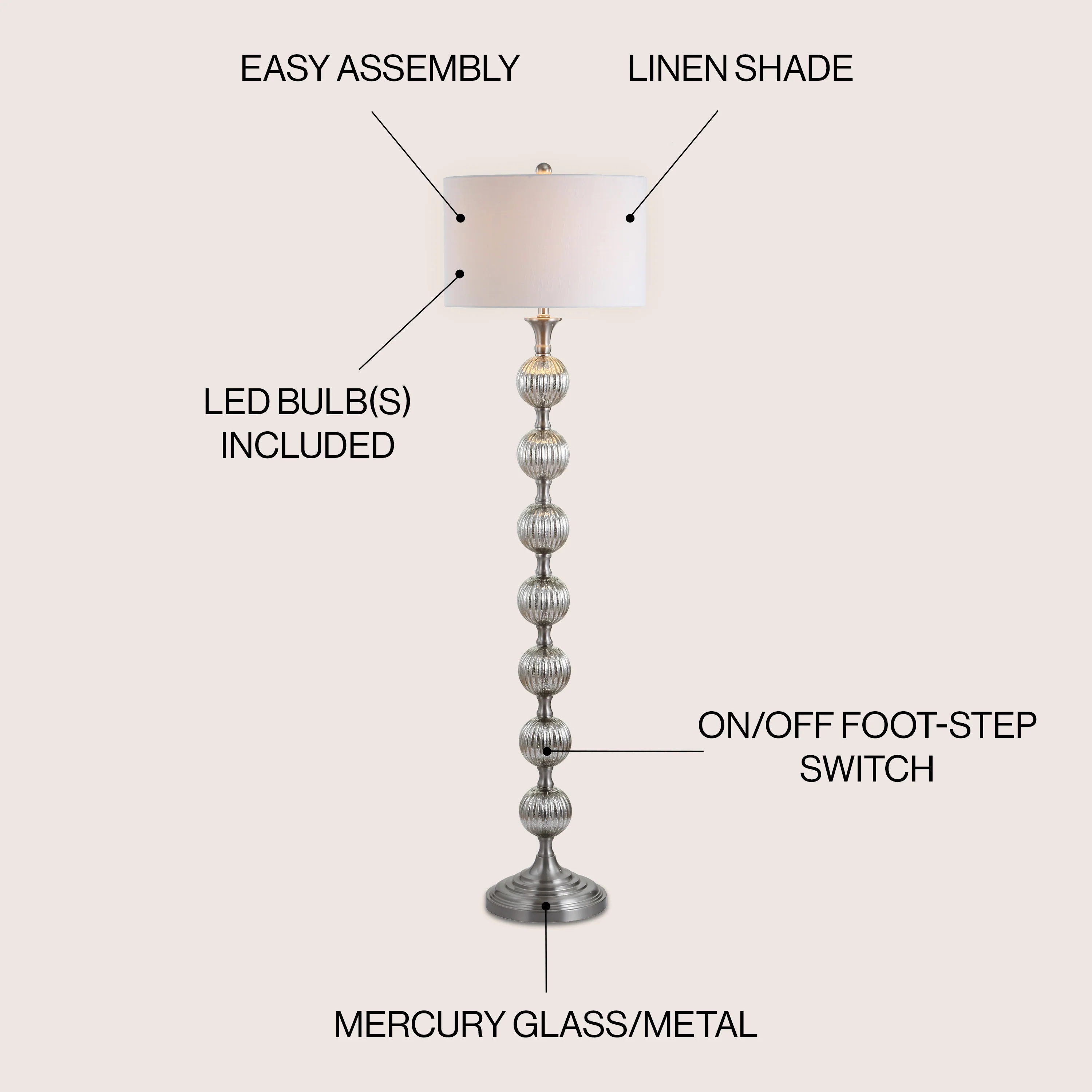 61.5 Floor Lamp with Linen Shade and Pull Chain Switch