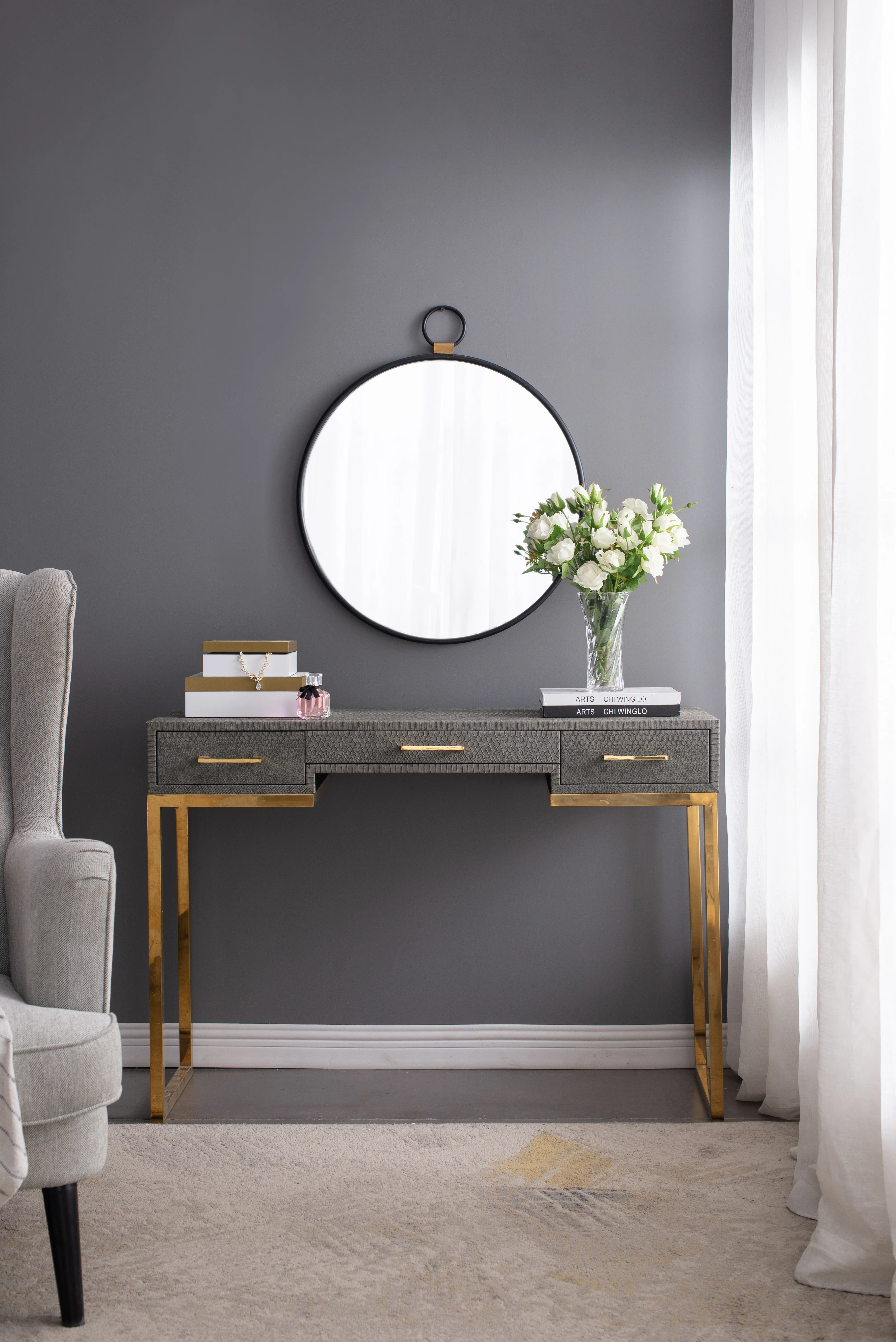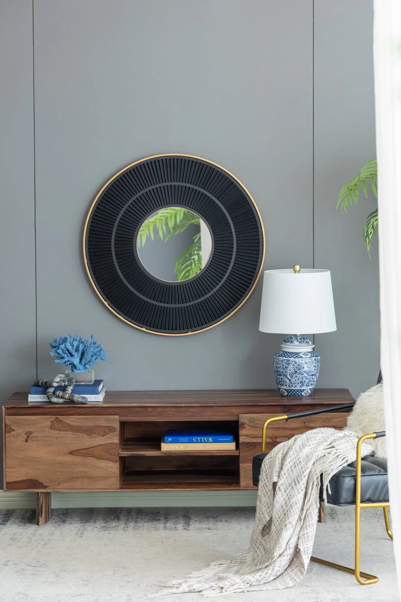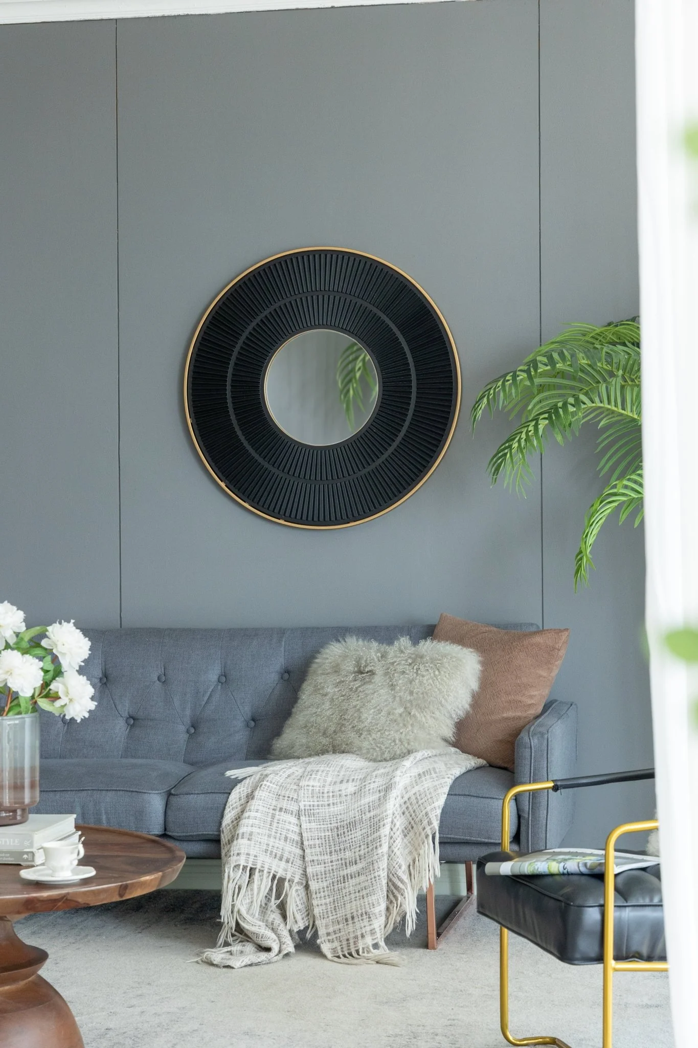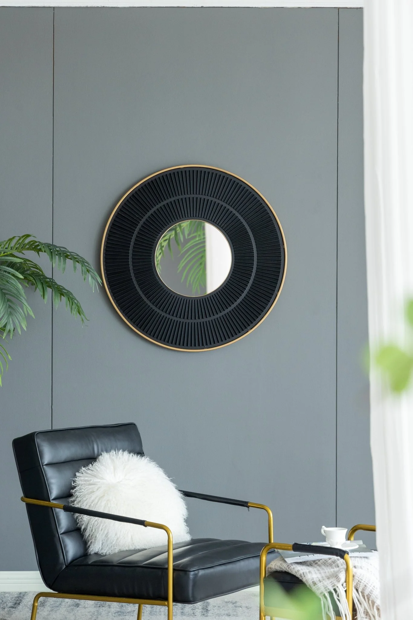 29.5 Rope Strap Hanging Round Mirror with Metal Framed, Black