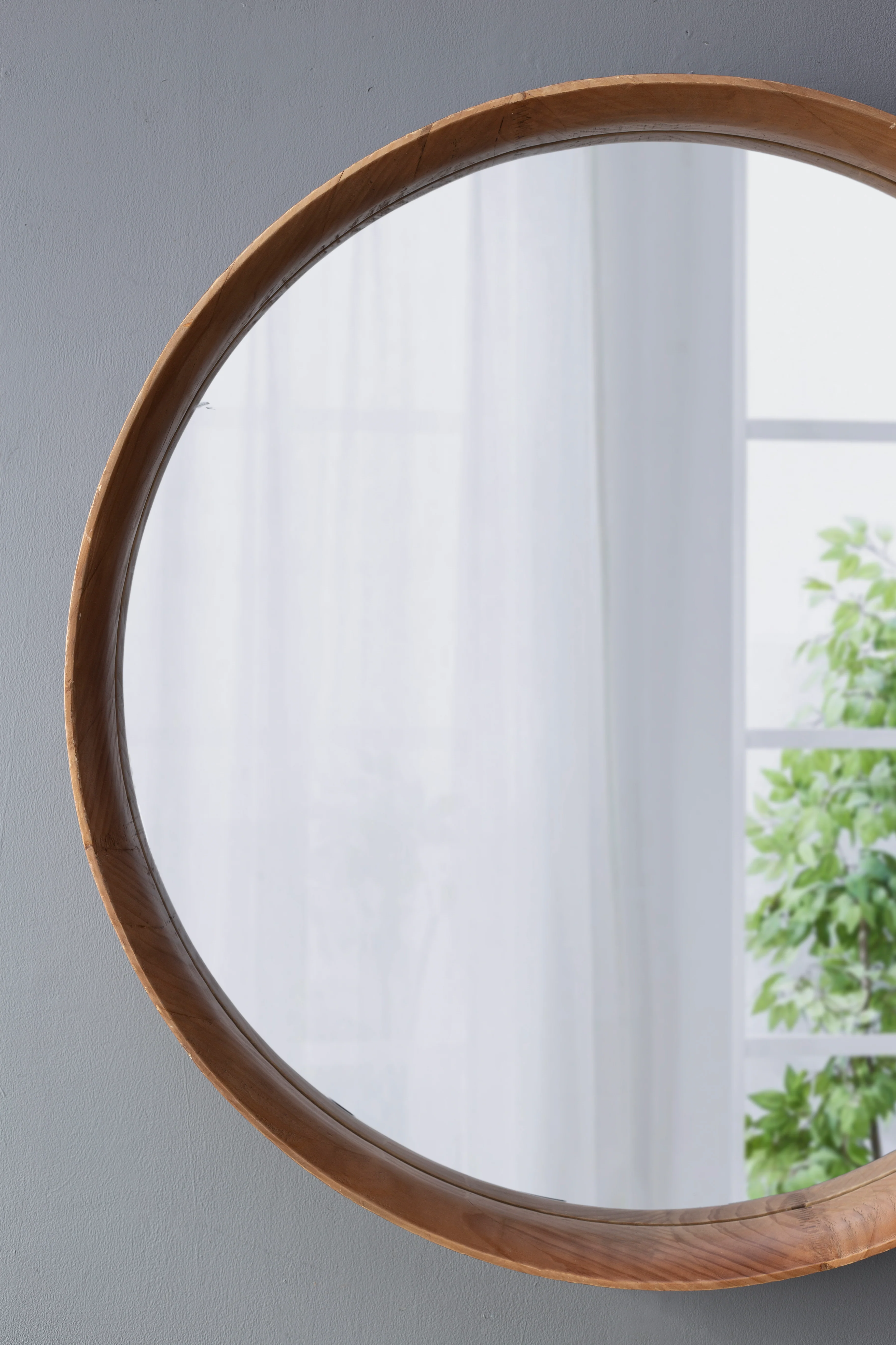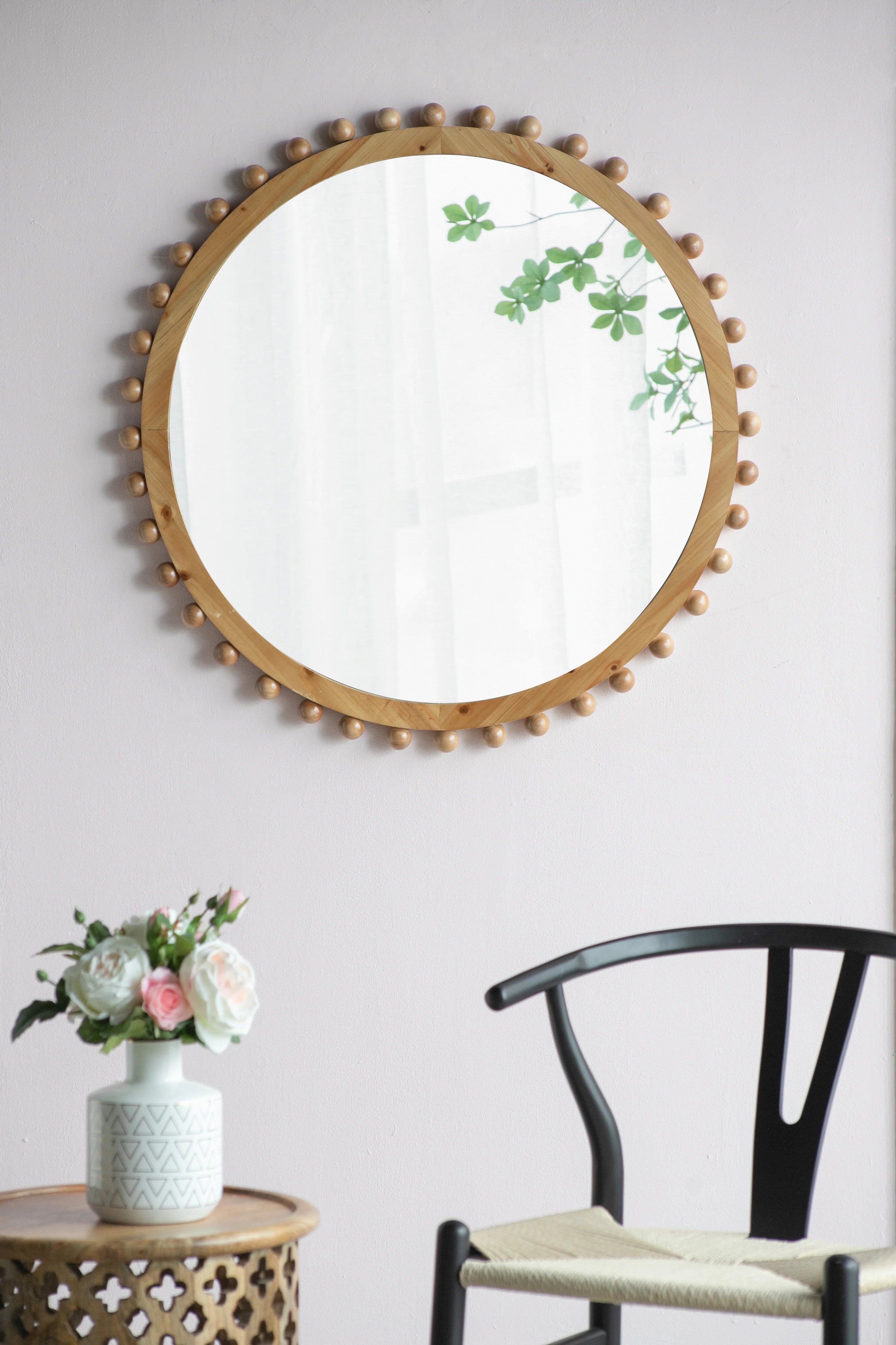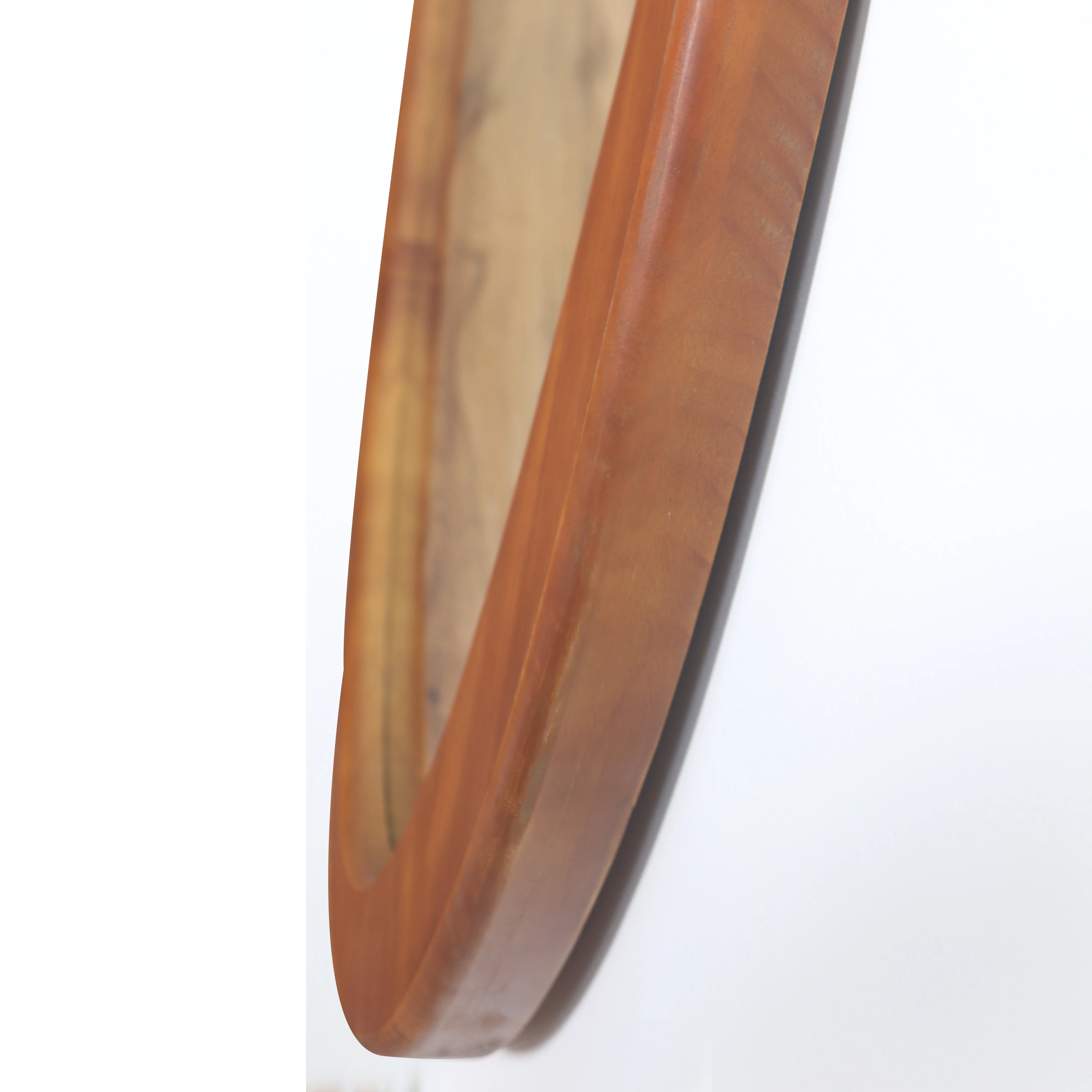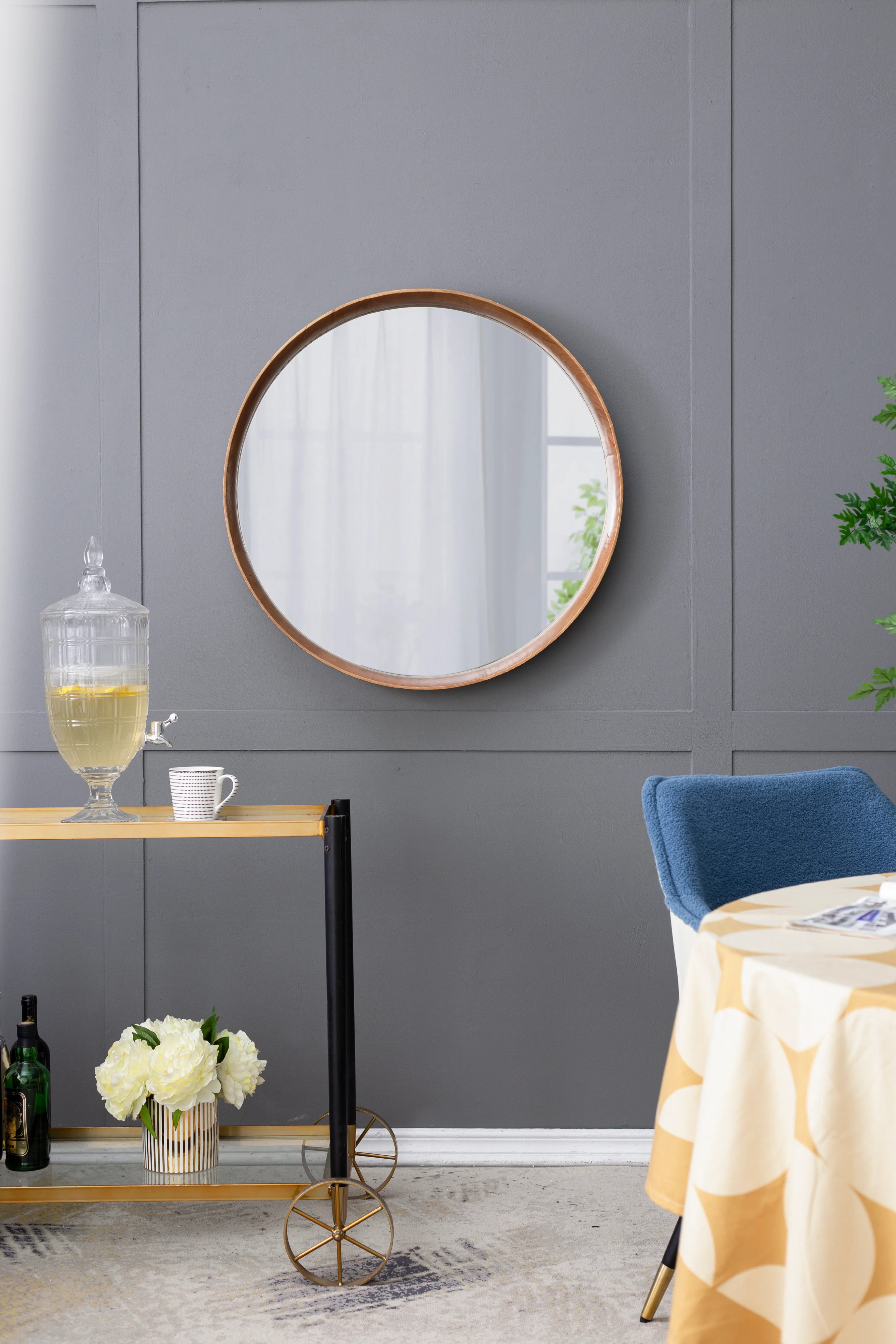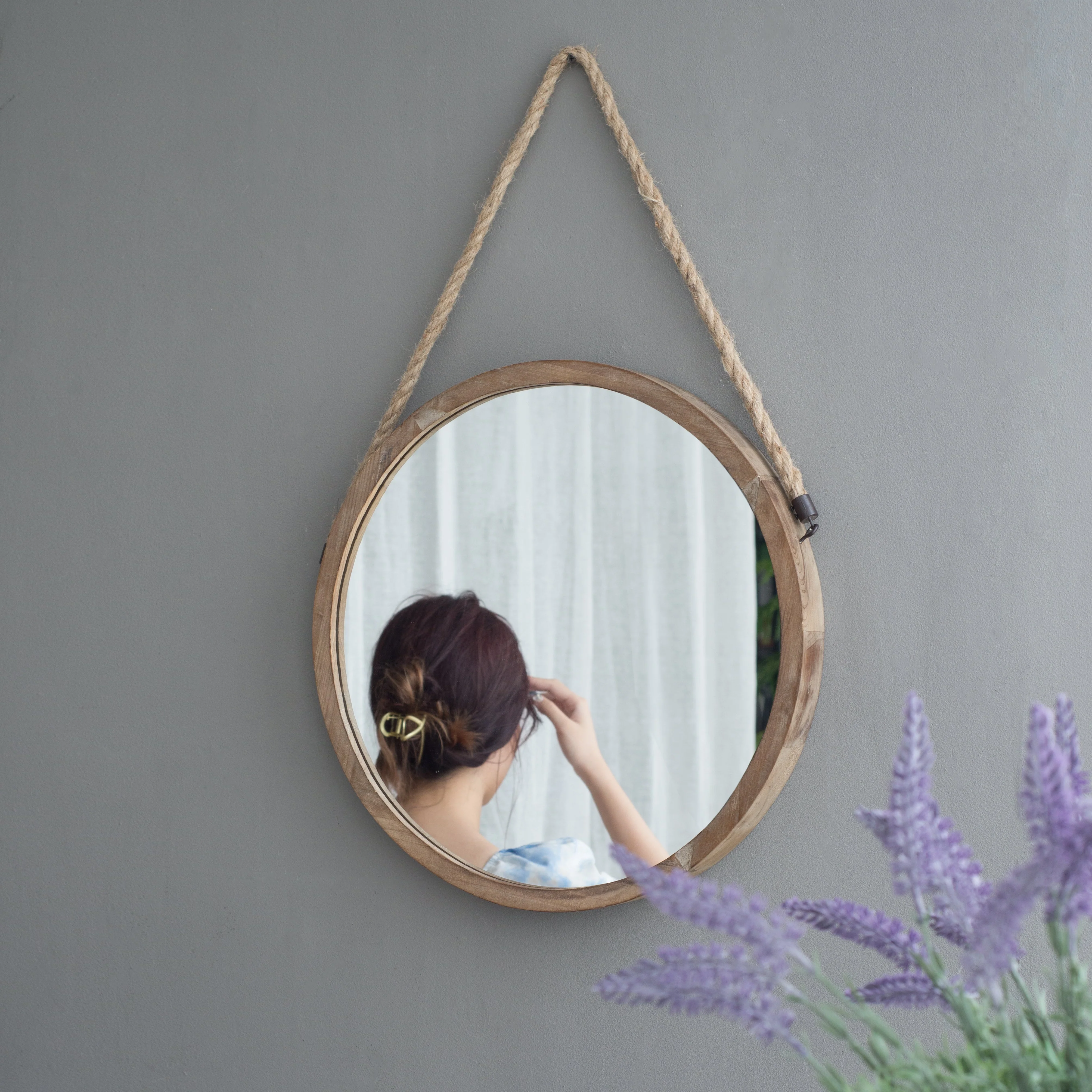 Wall Mounted Mirror with Round Shape and Wooden Frame