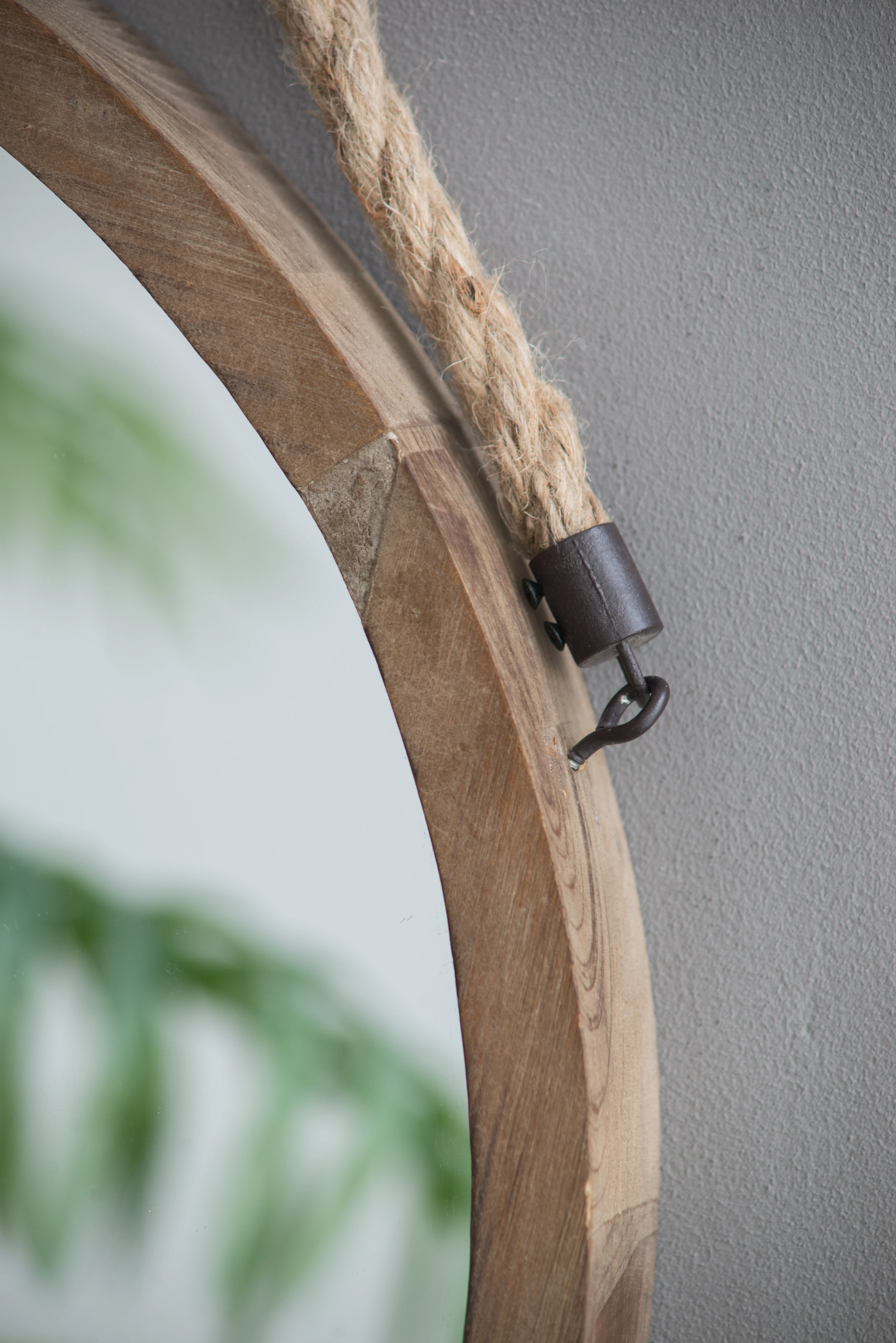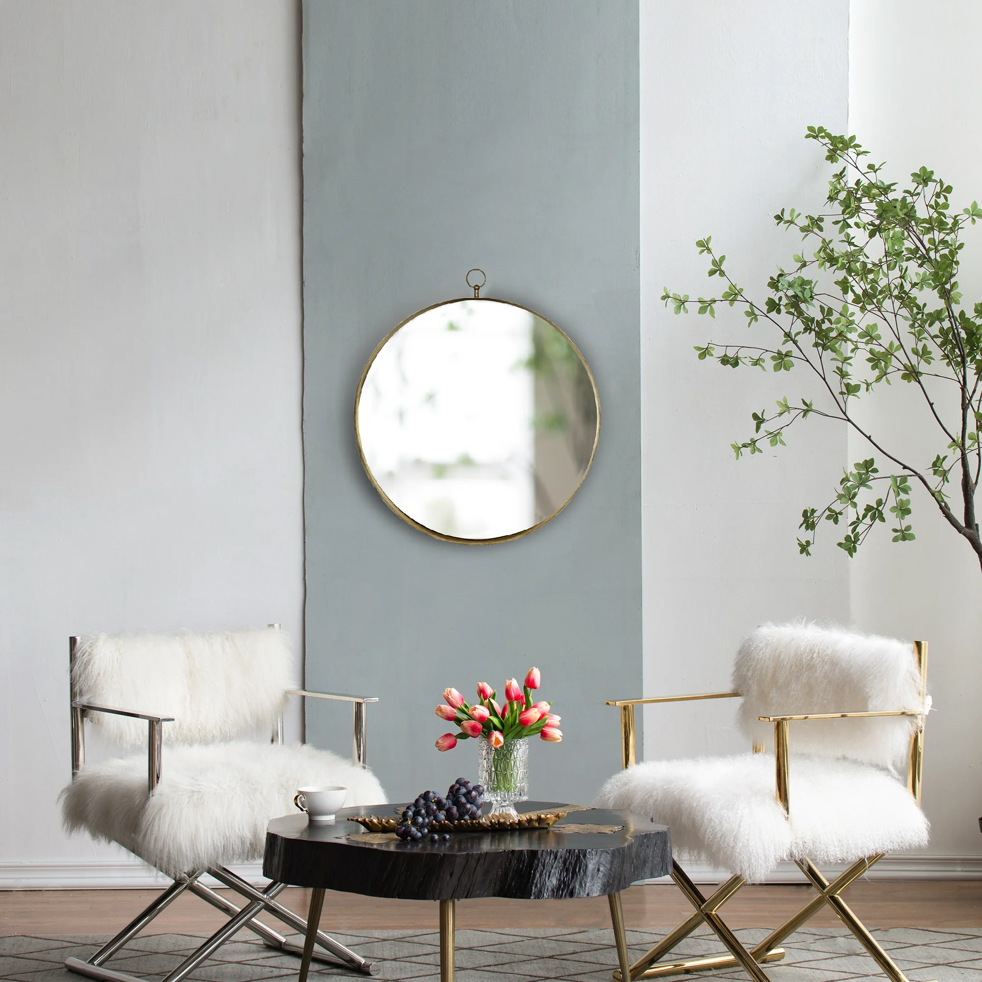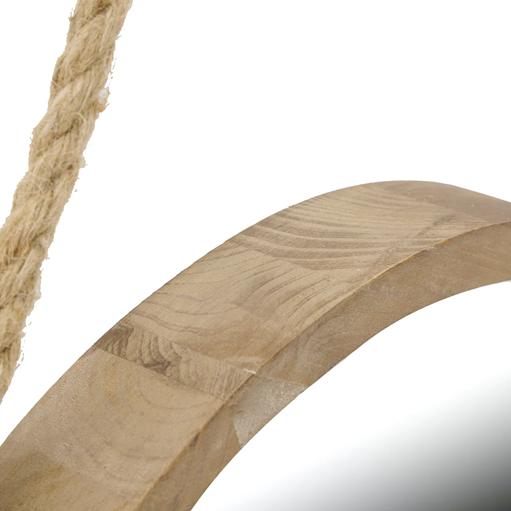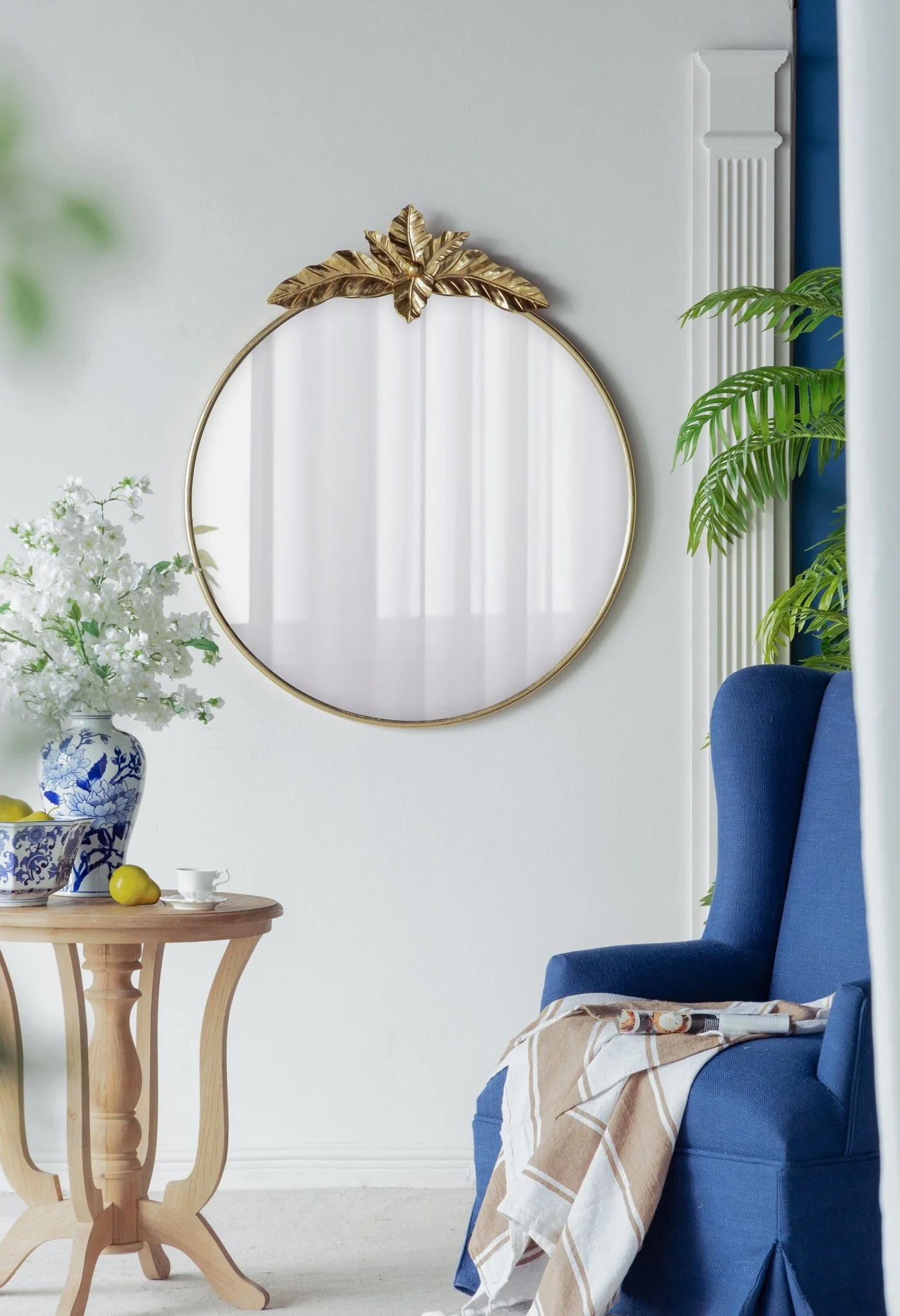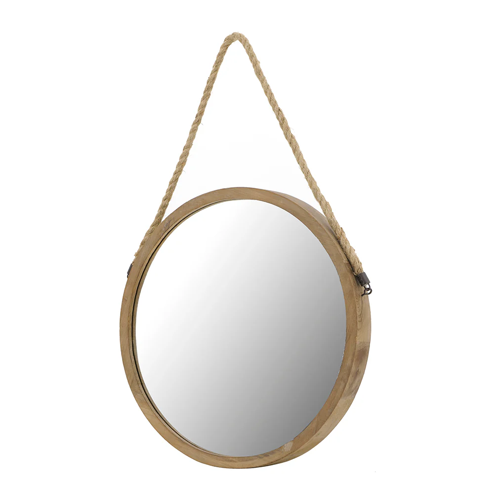 Wall Mounted Mirror with Round Shape and Wooden Frame