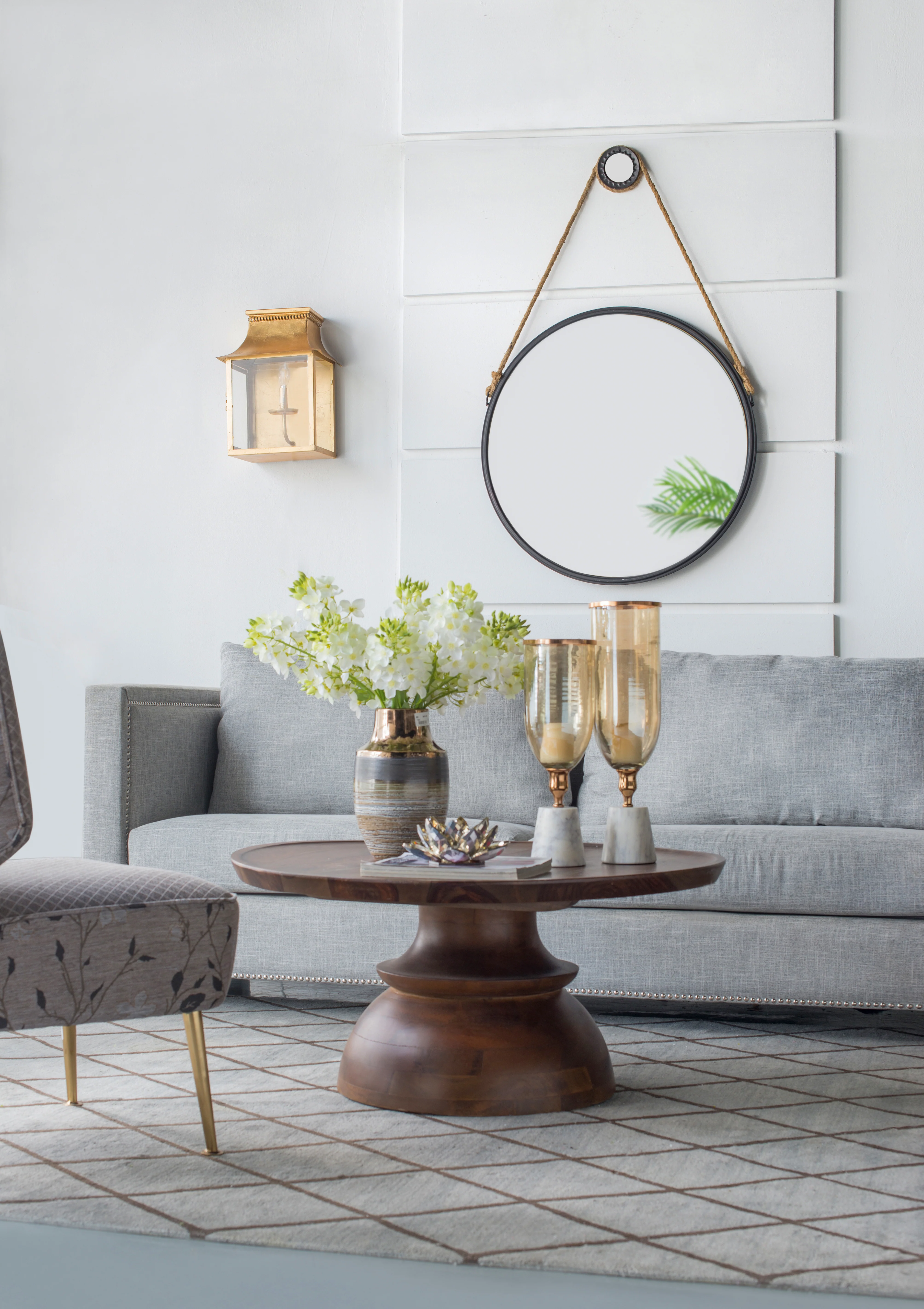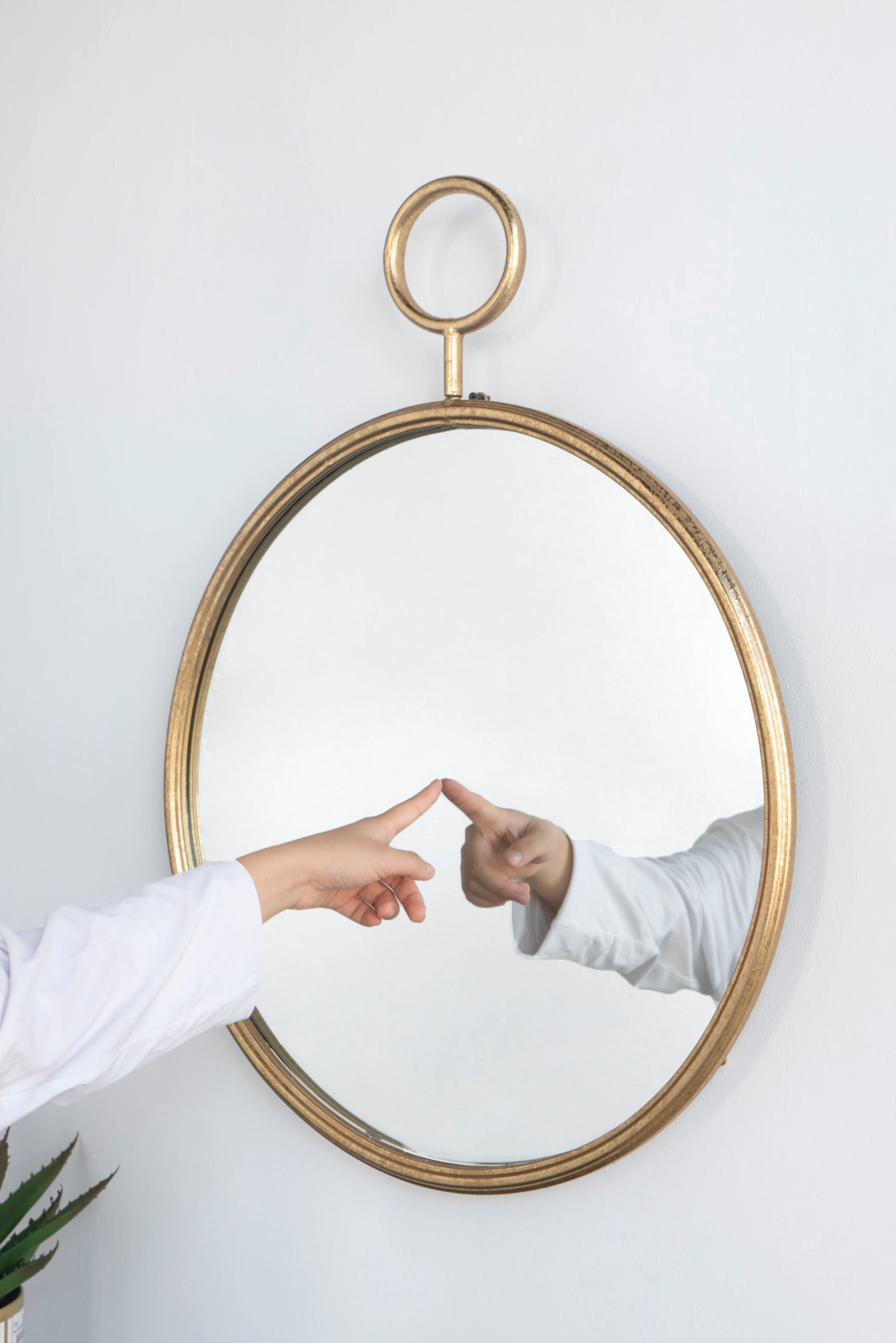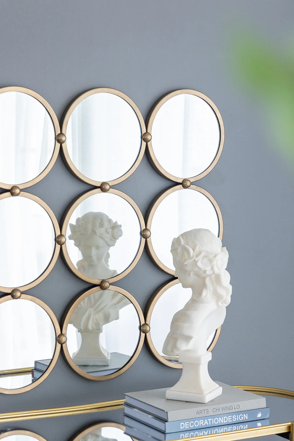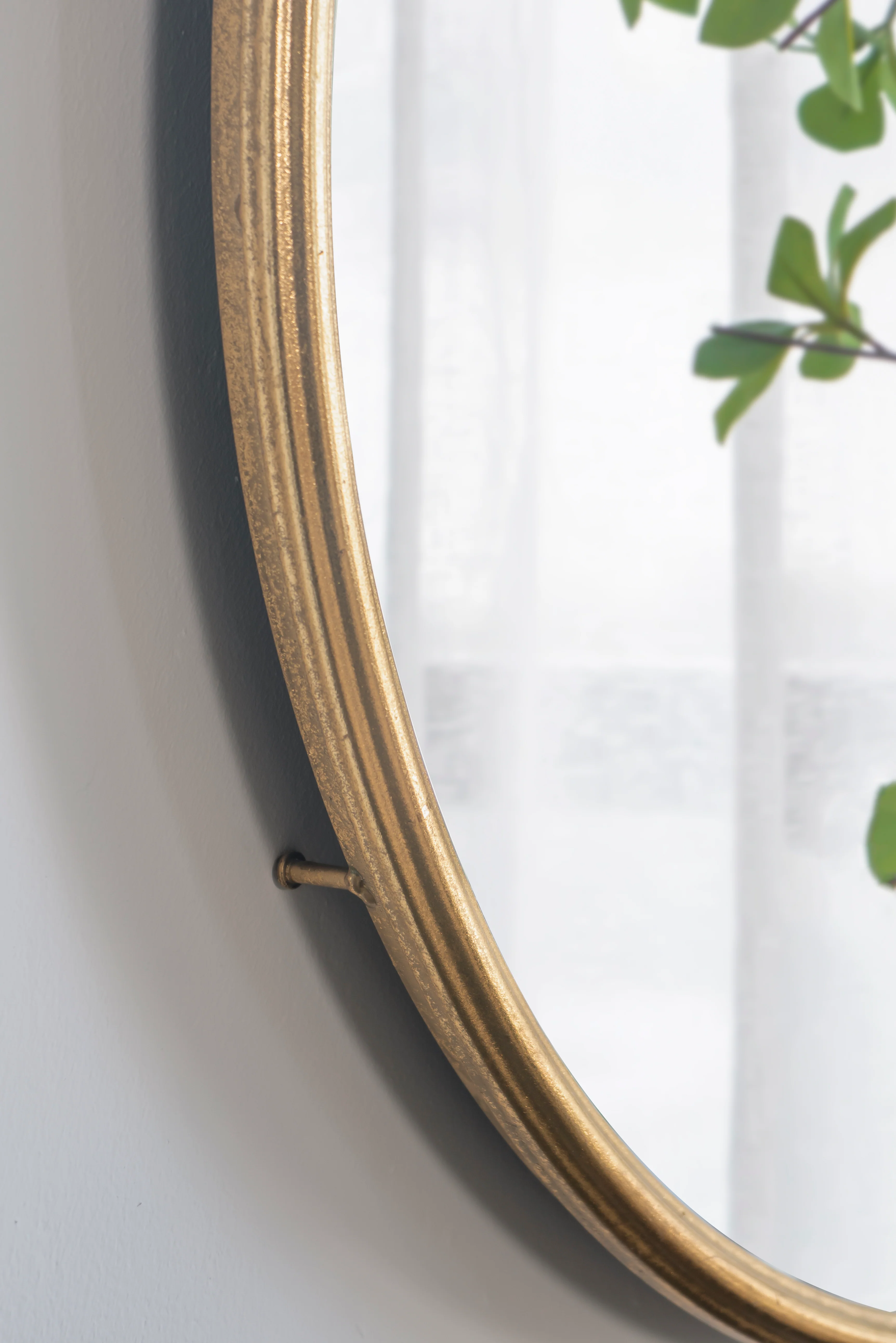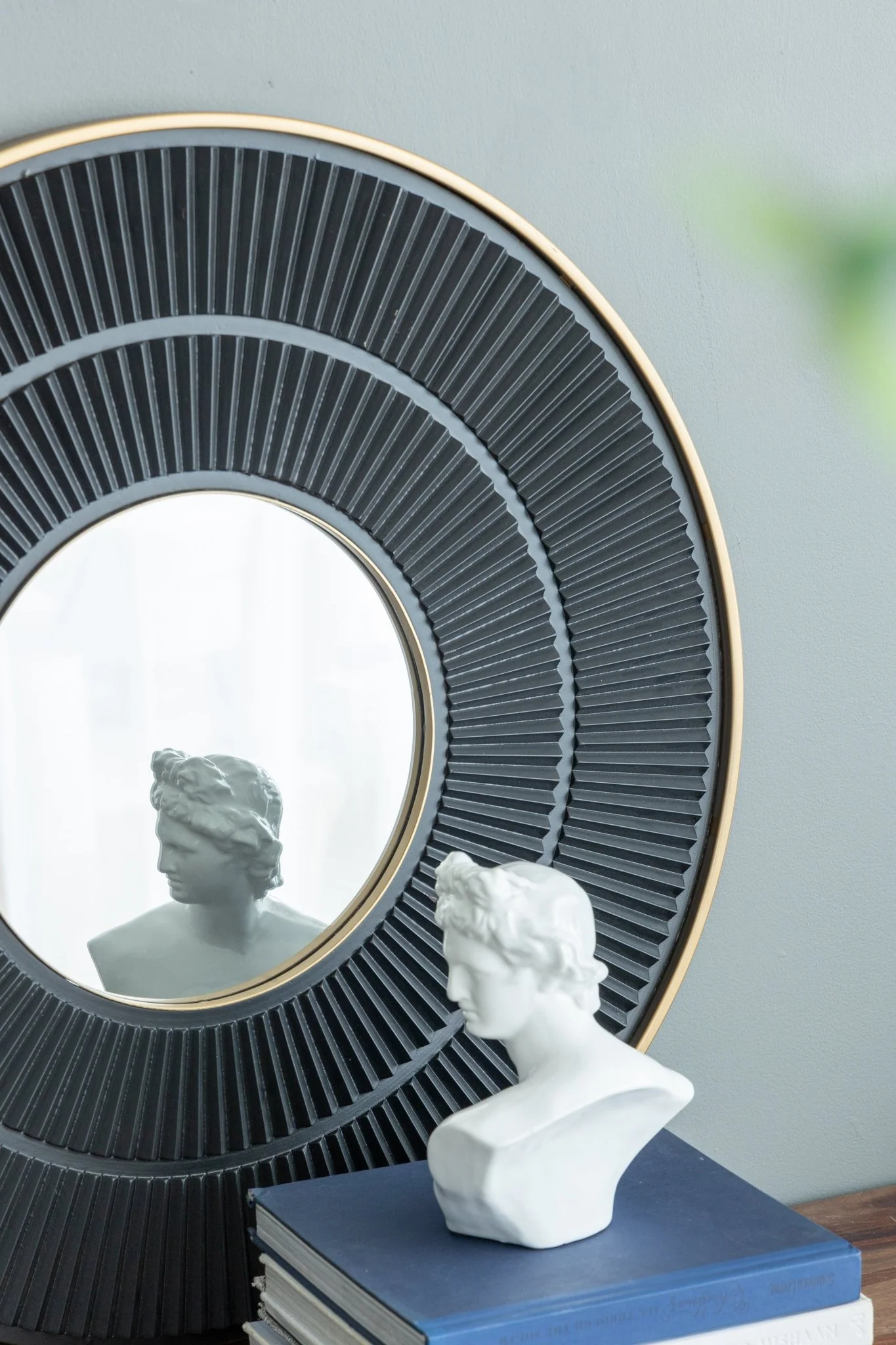 Wall Mounted Mirror with Round Shape and Wooden Frame