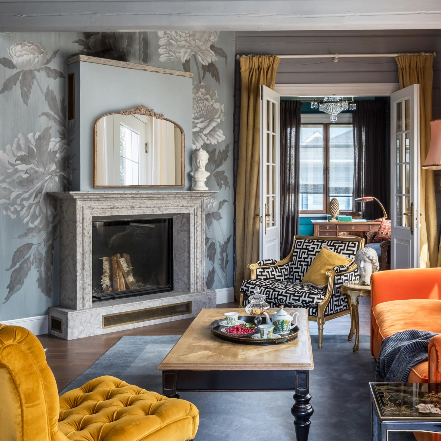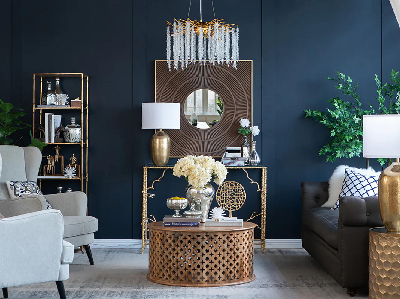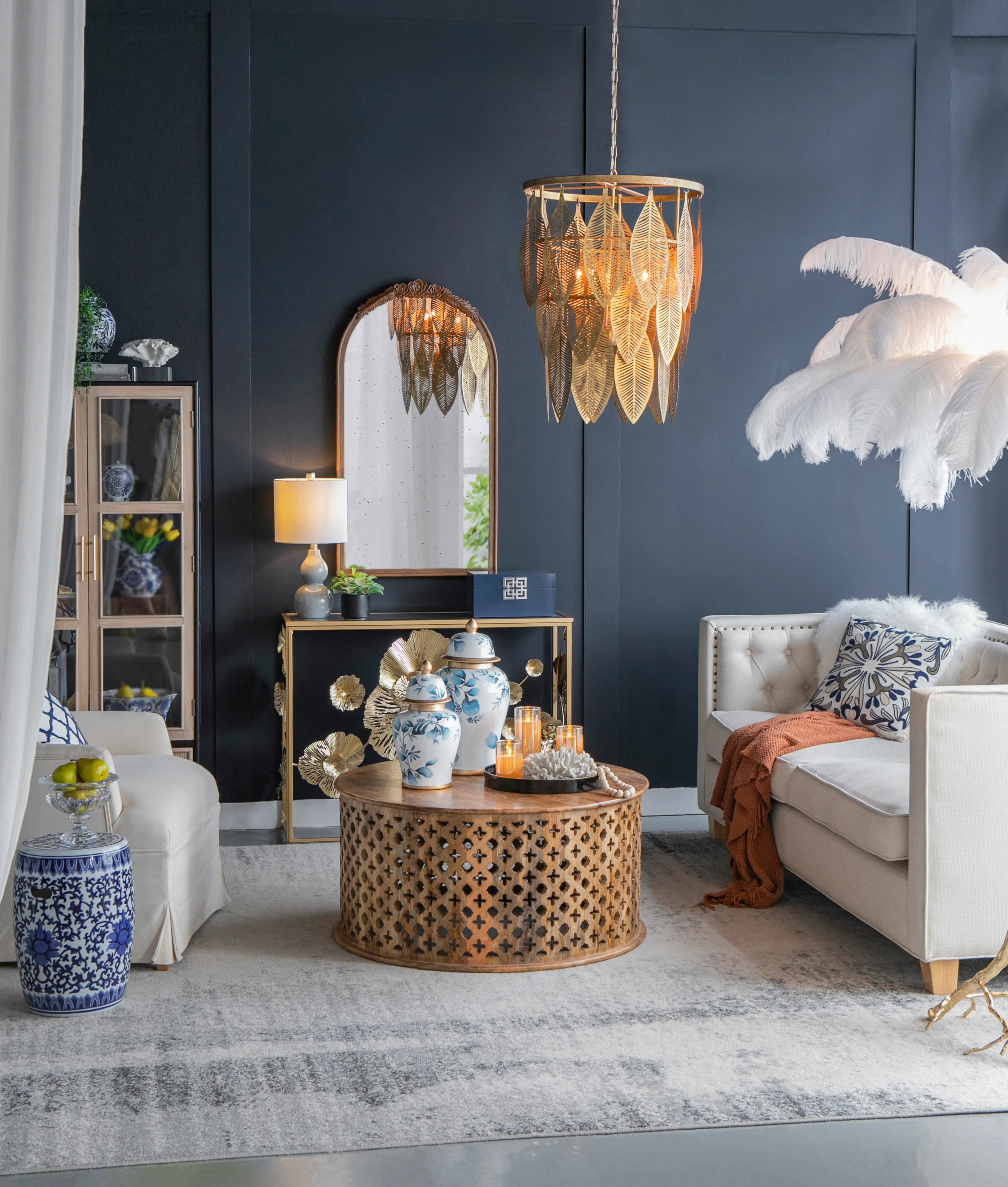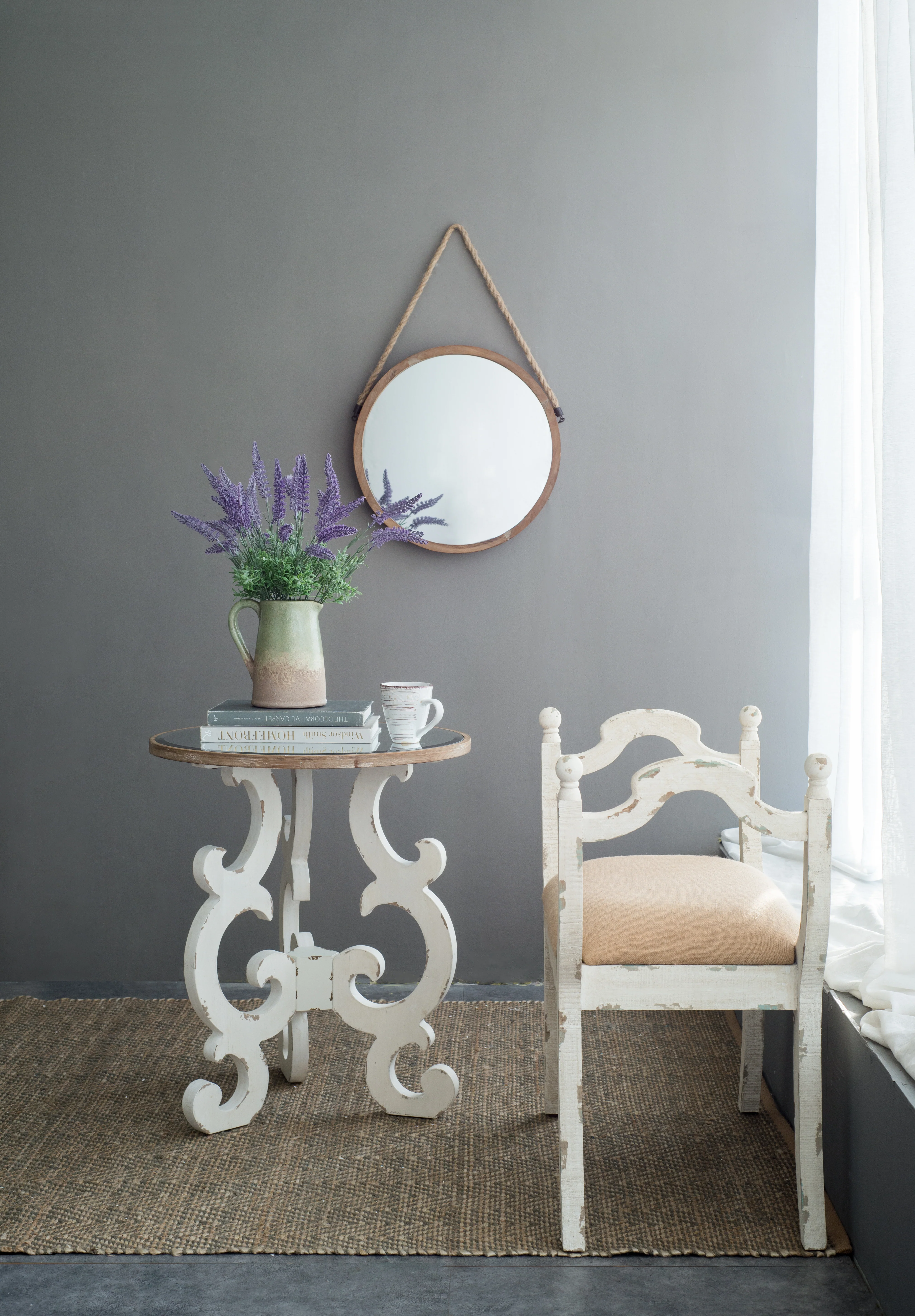 Round Wall Mirror with Floral Accents and Iron Scrollwork