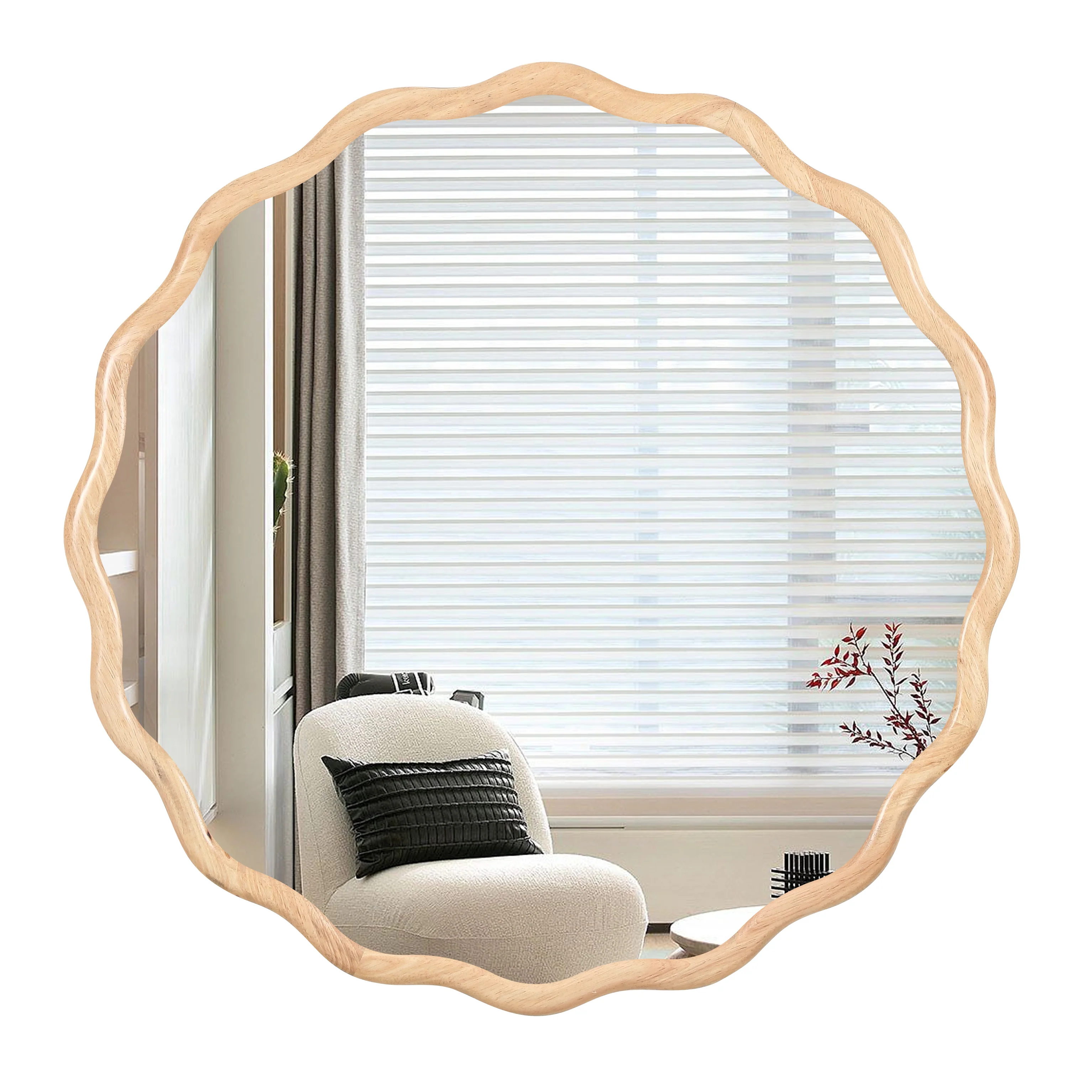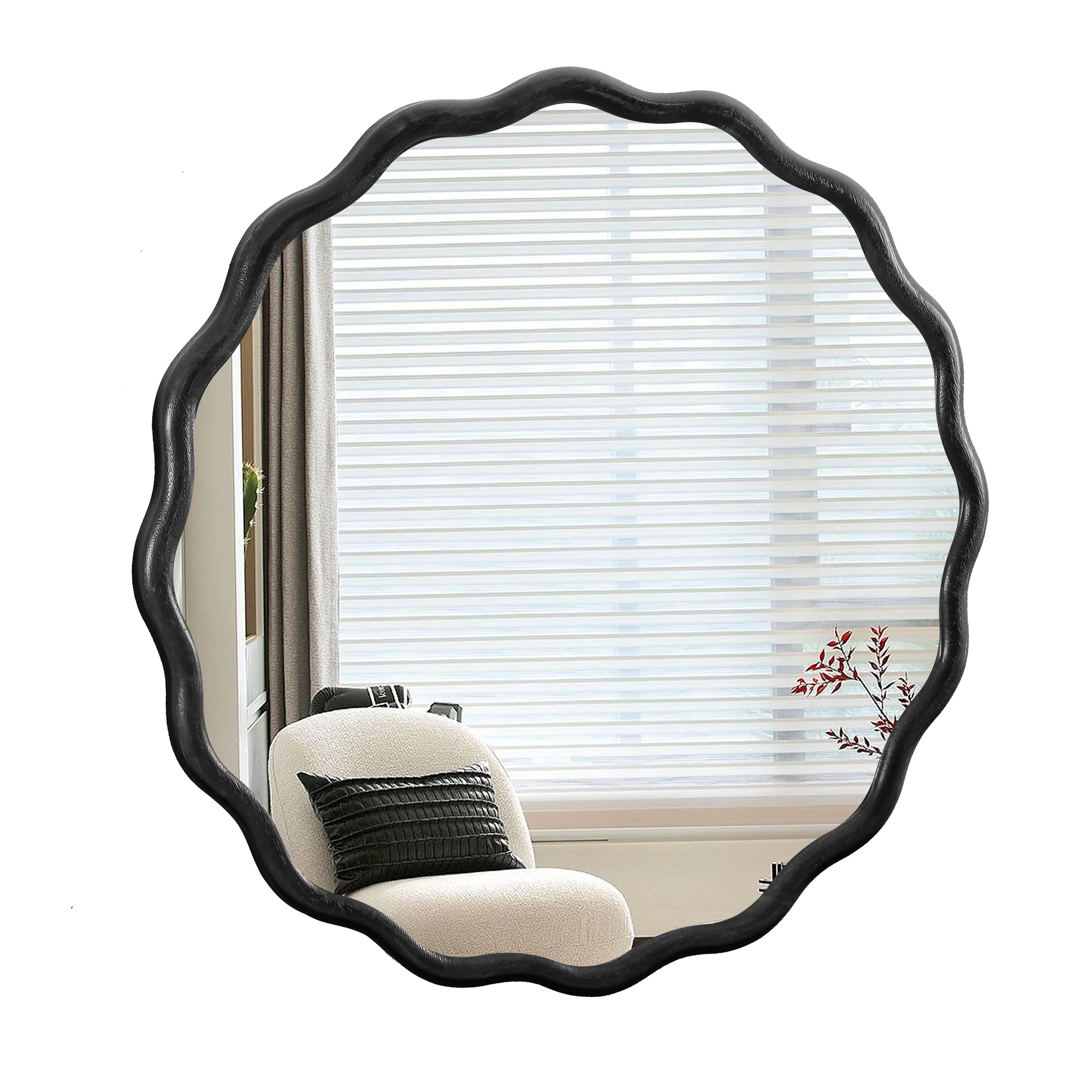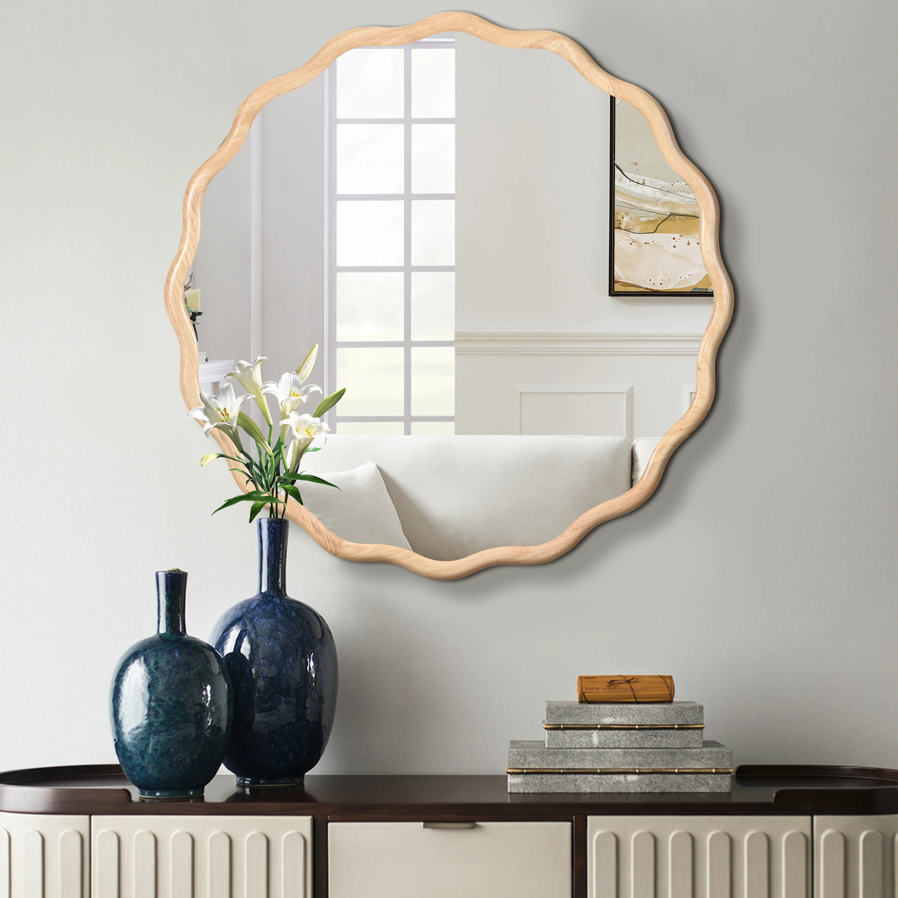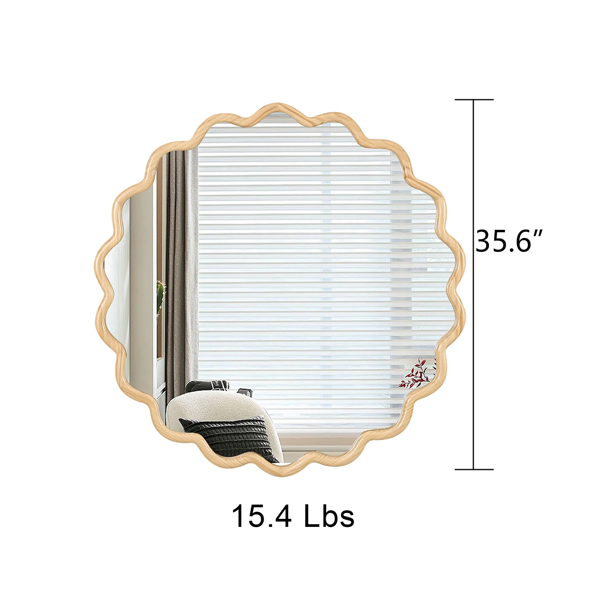 Honoredd 36 x 36 Round Wall Mirror with Exquisite Wave Wood Frame