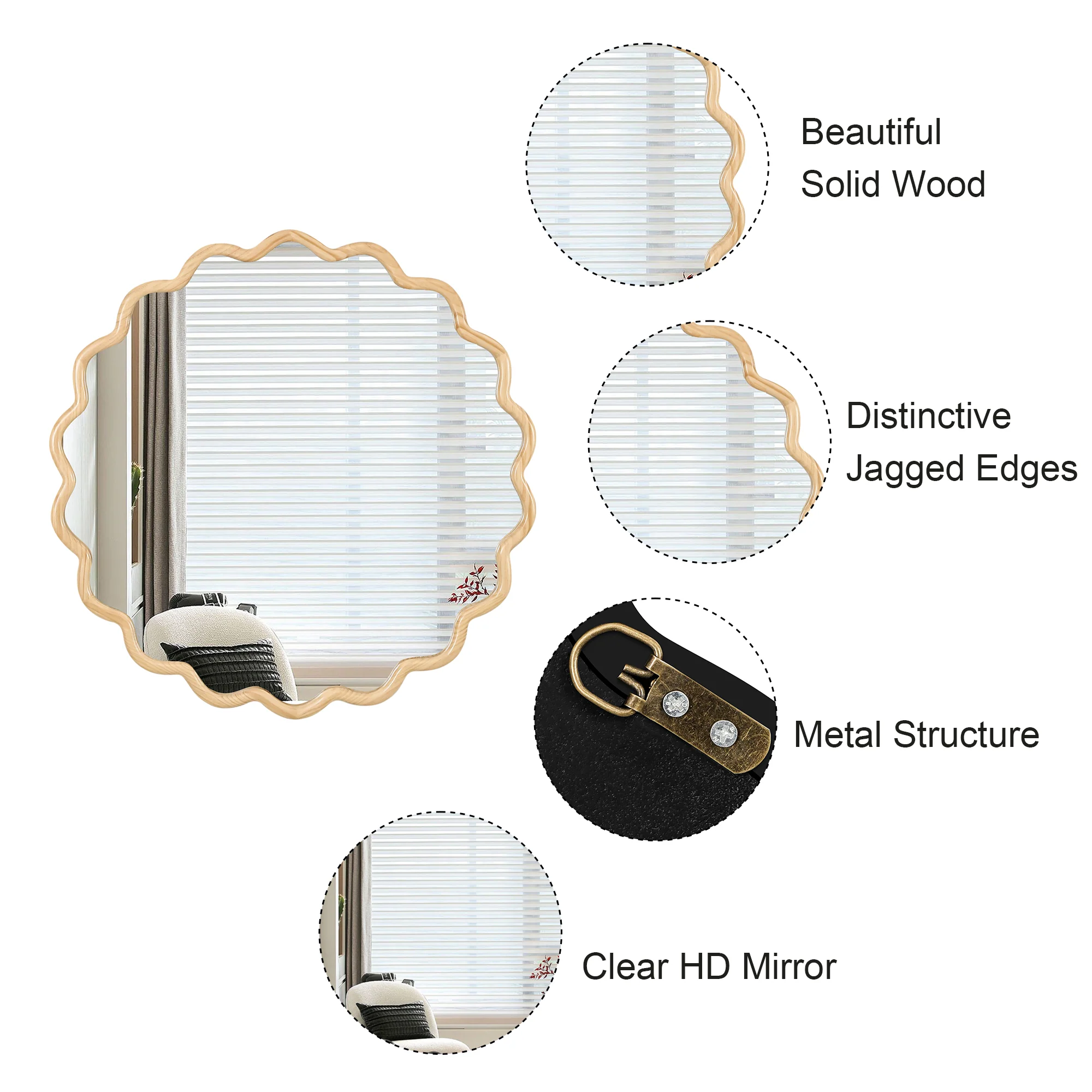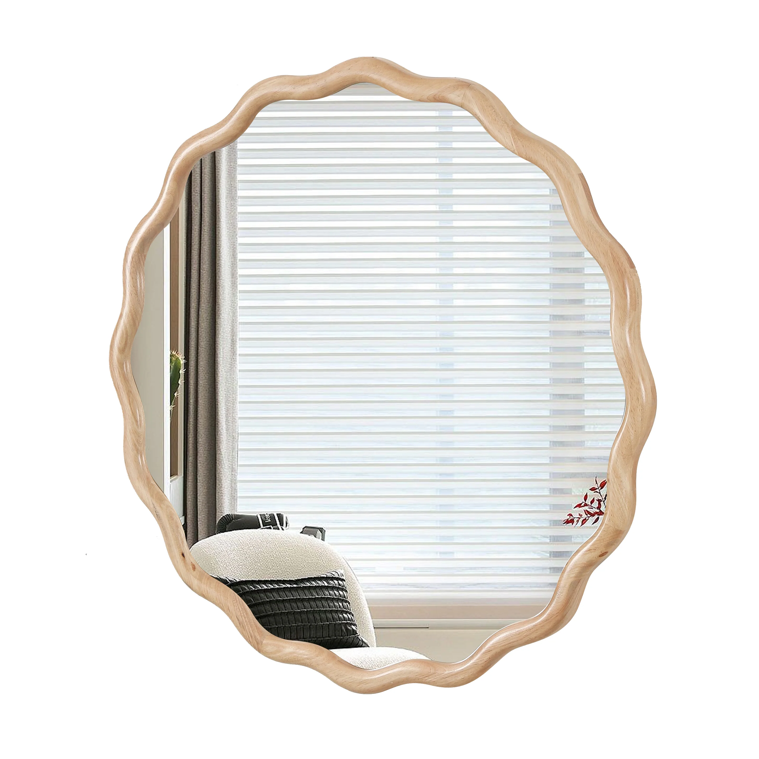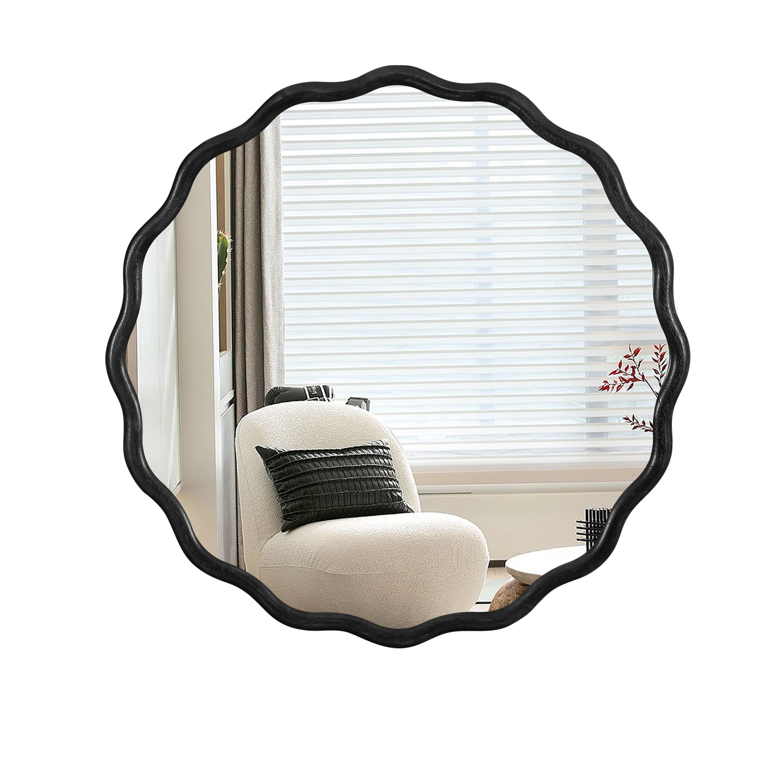 Honoredd 36 x 36 Round Wall Mirror with Exquisite Wave Wood Frame