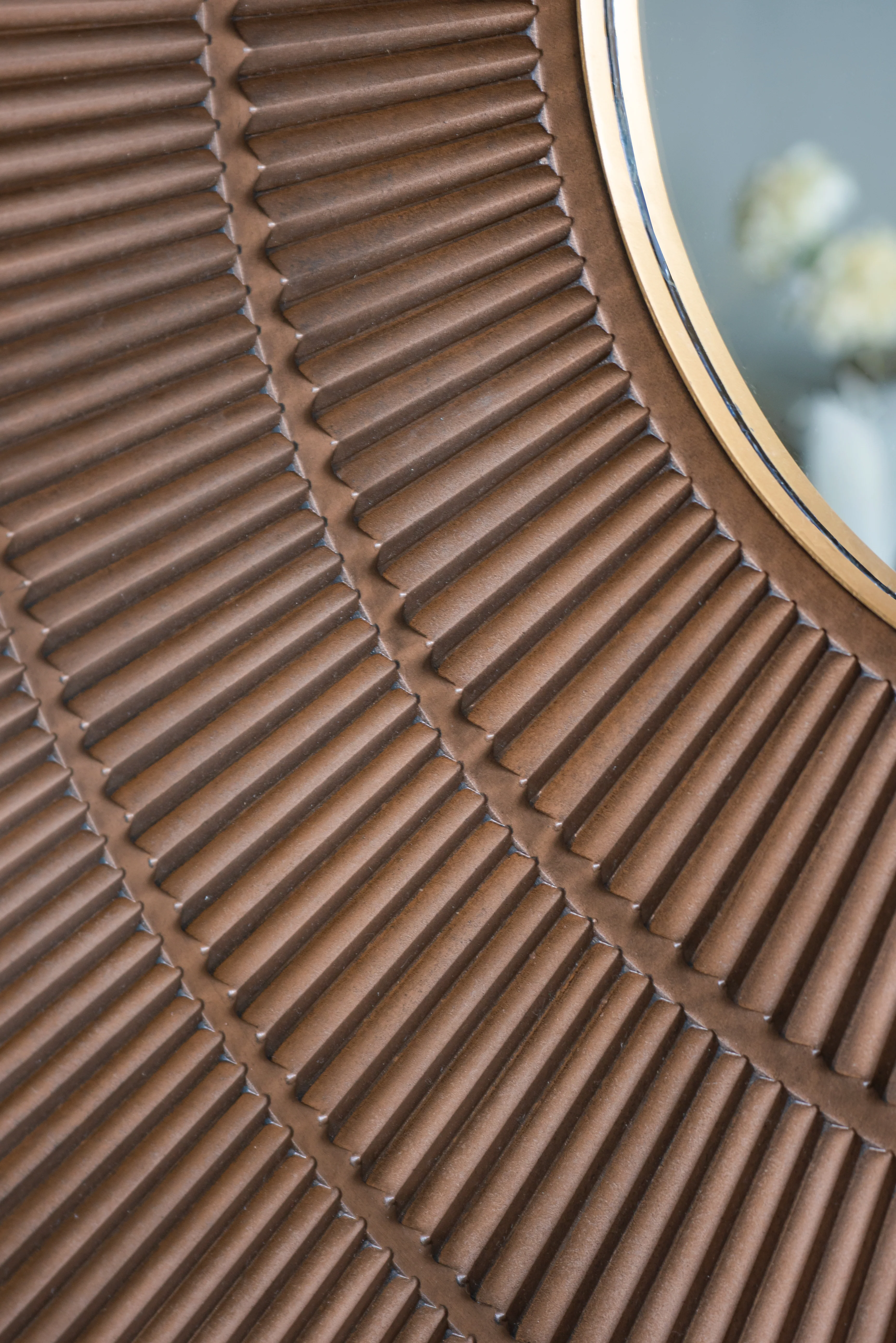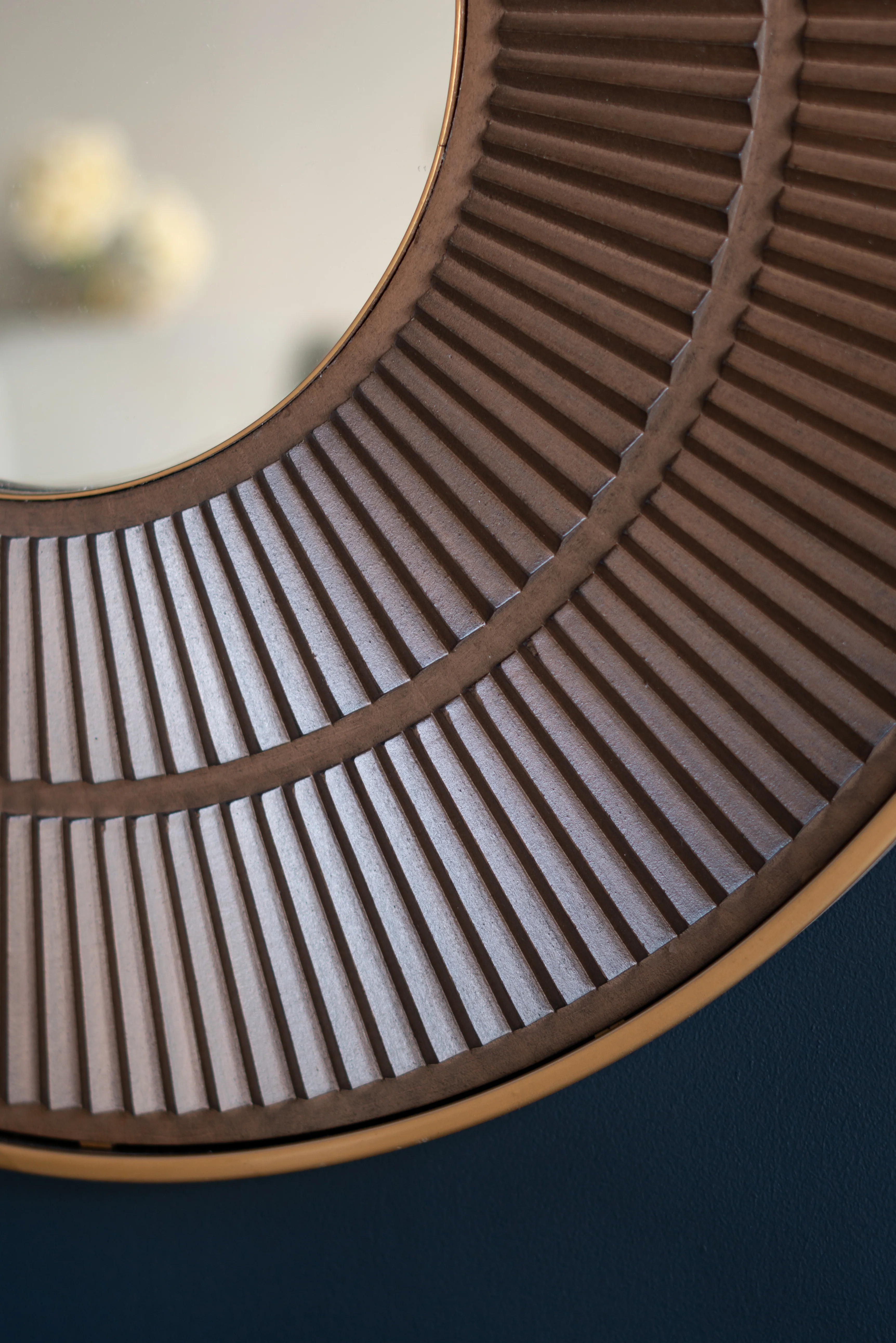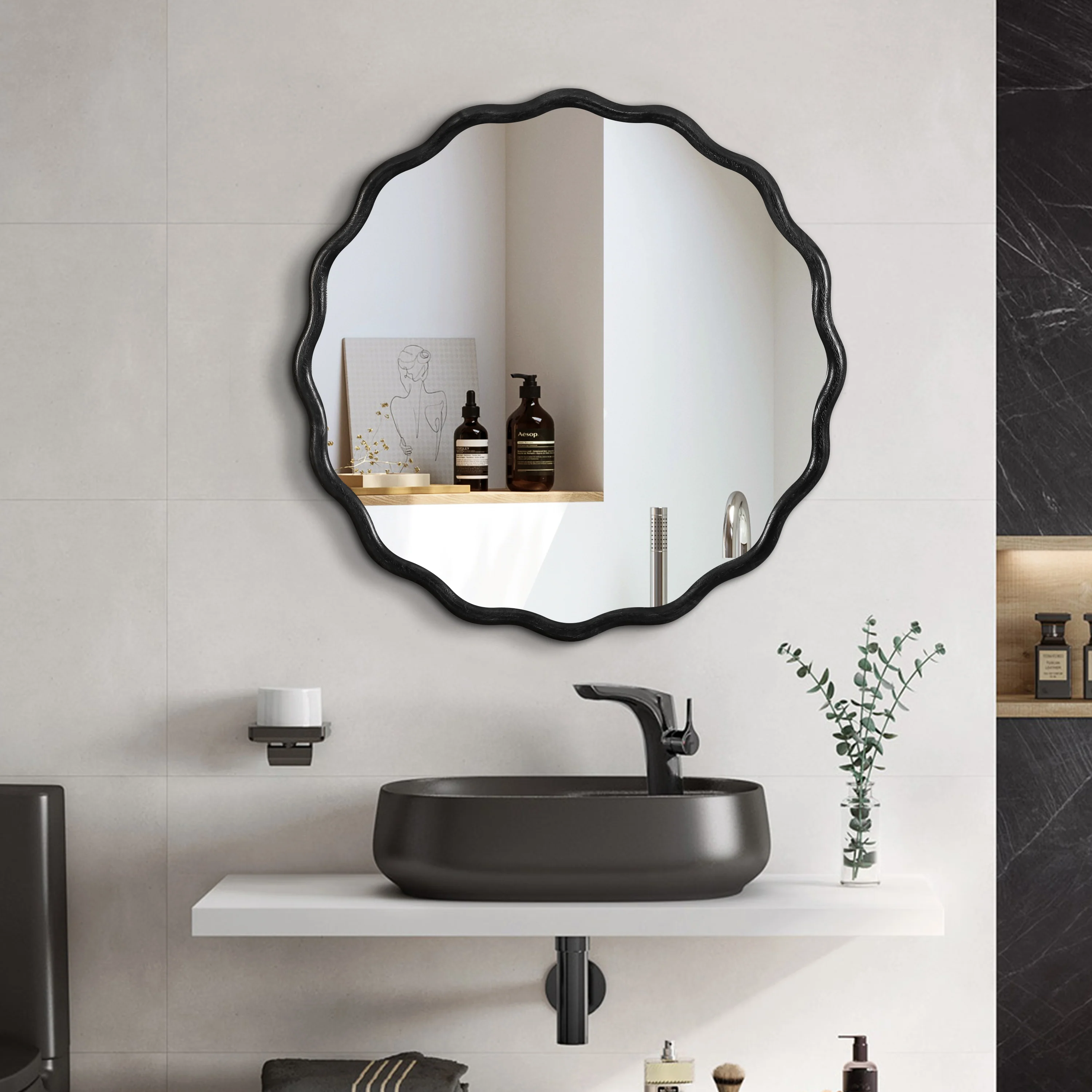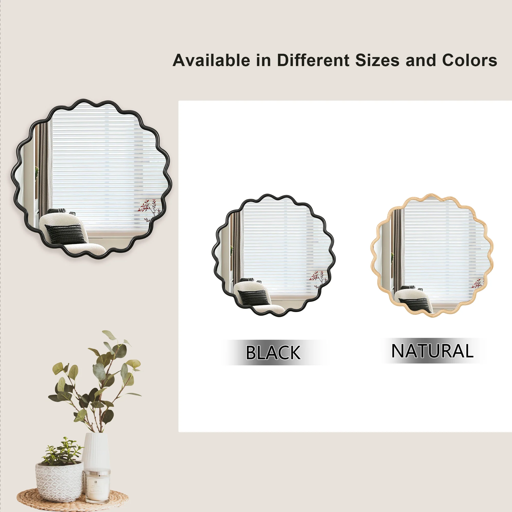 Honoredd 36 x 36 Round Wall Mirror with Exquisite Wave Wood Frame