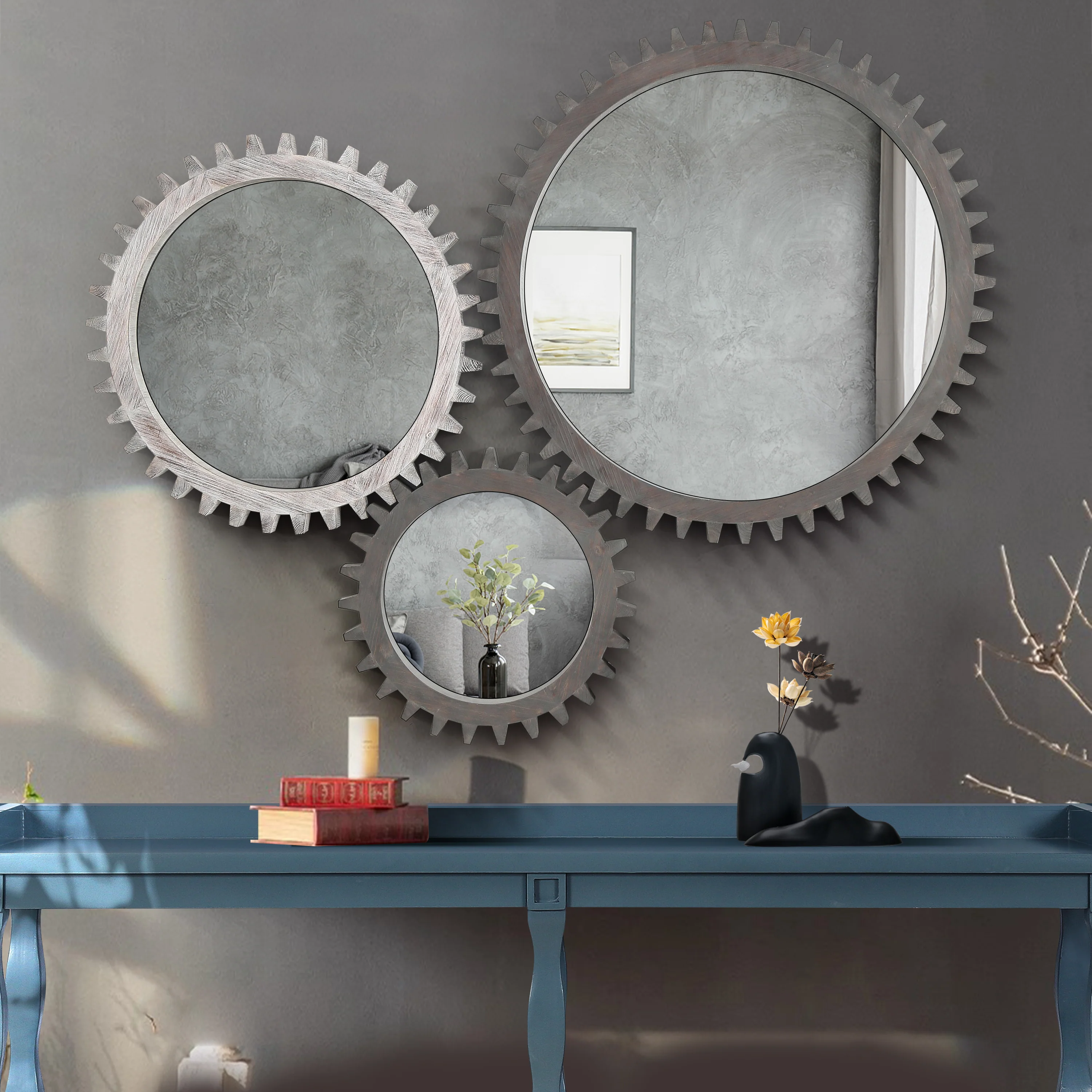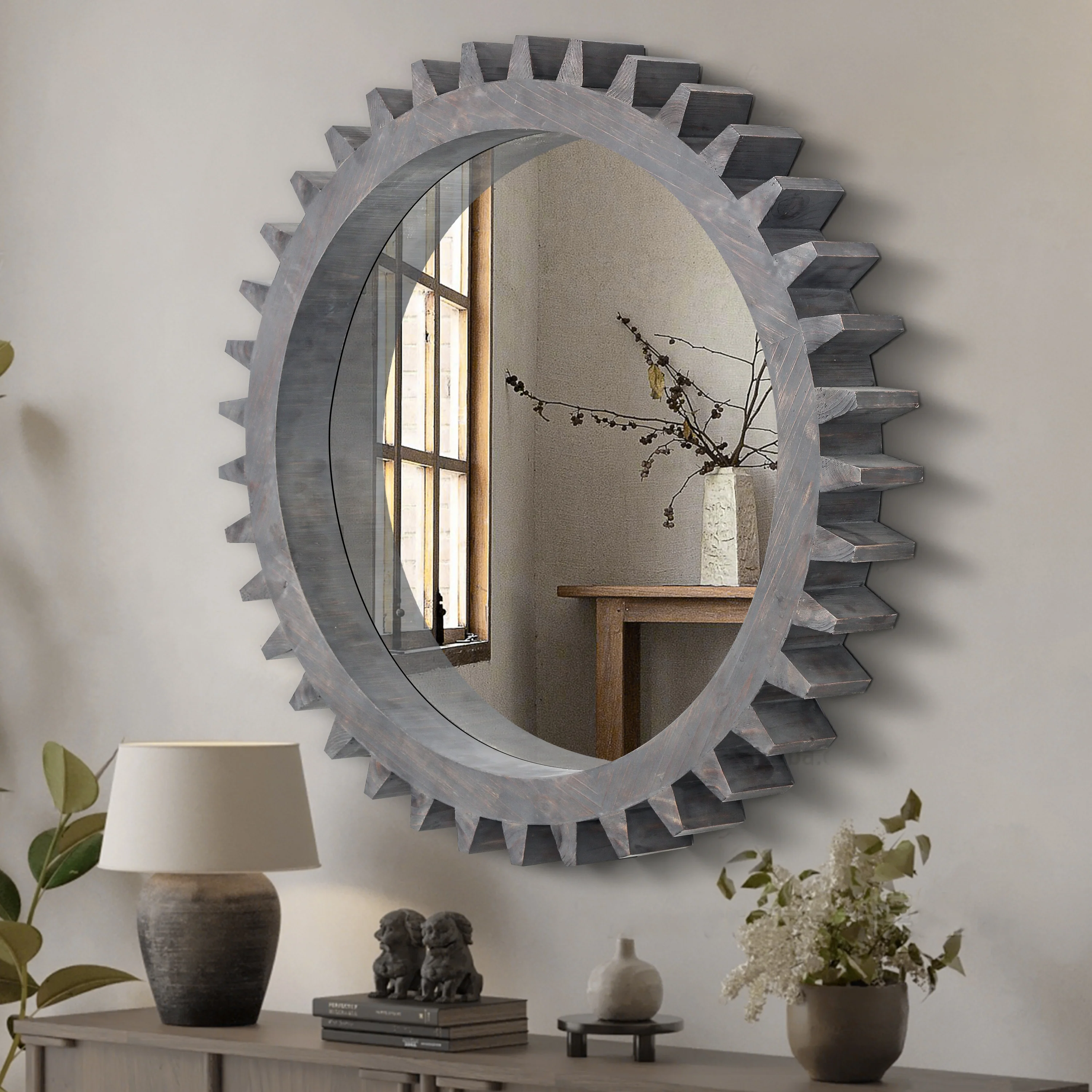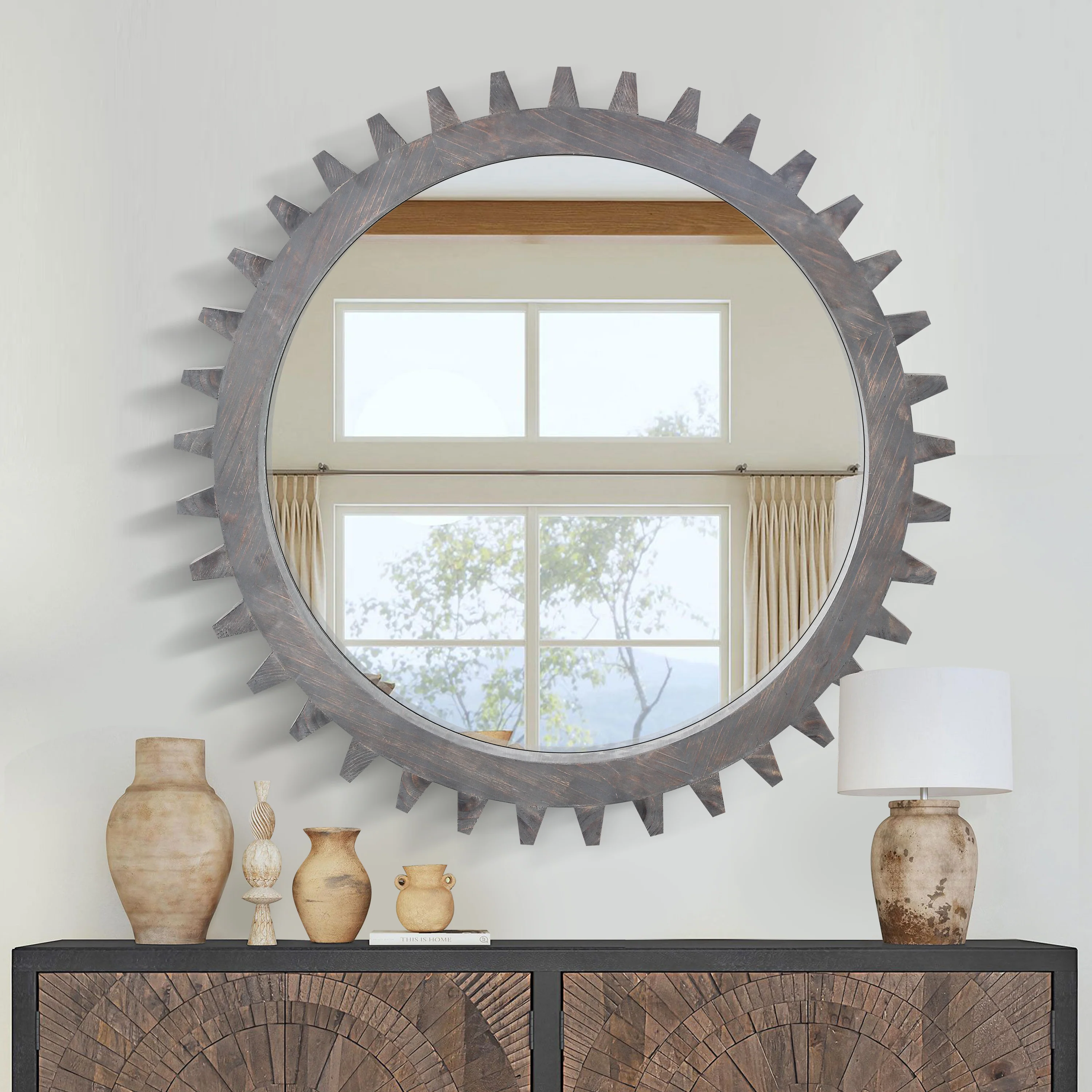 Harmonyx Wall Mirror with Gear Shape and Wood Frame