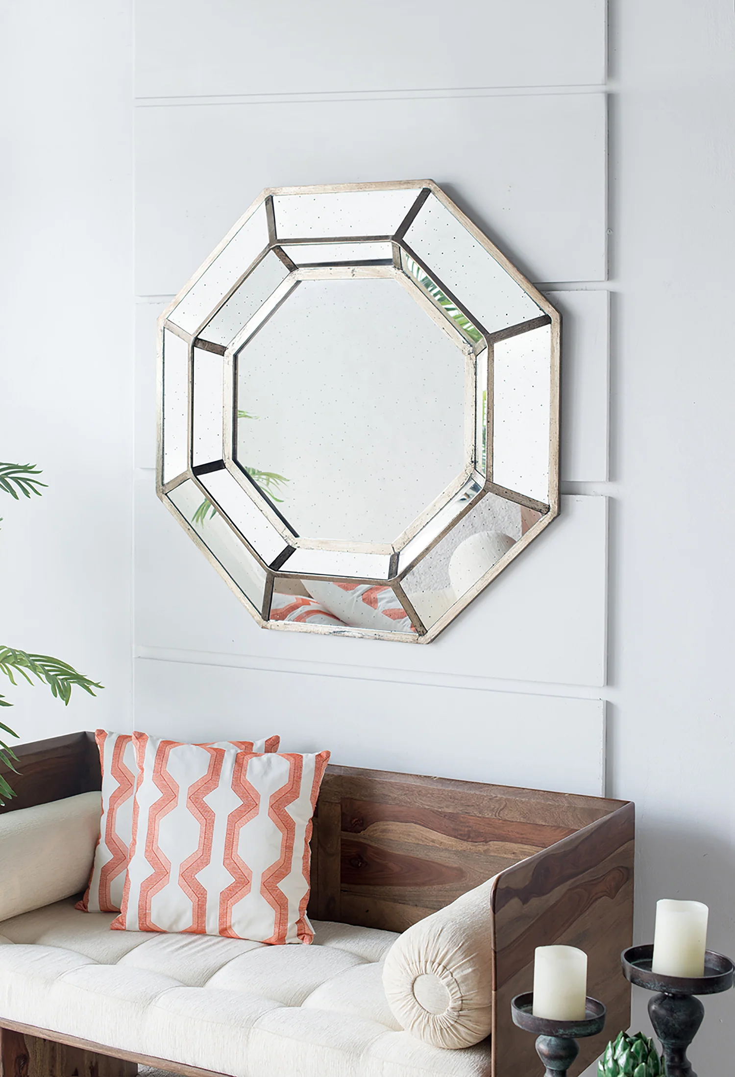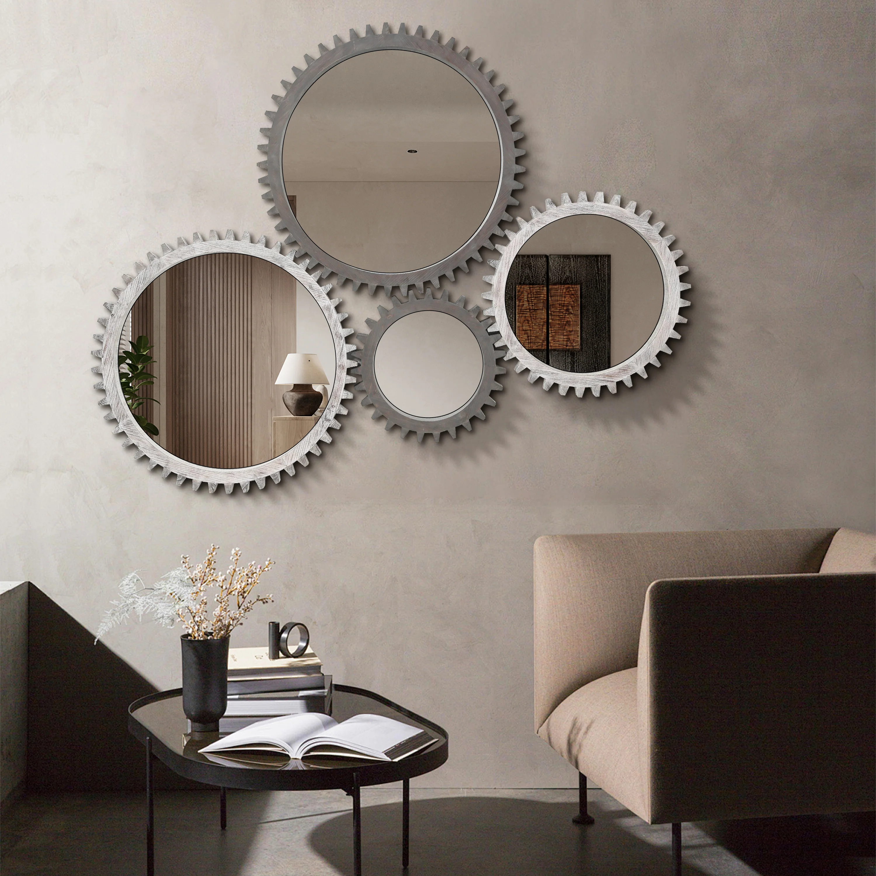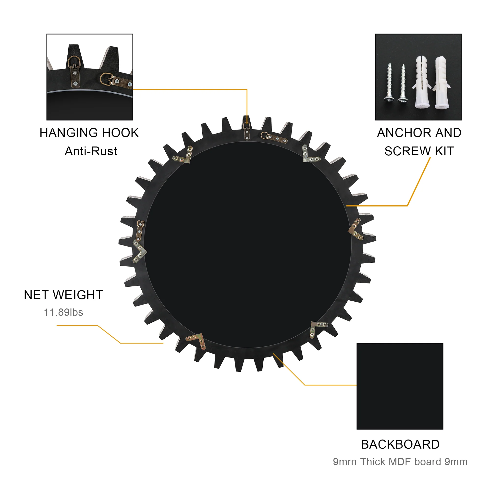 Harmonyx Wall Mirror with Gear Shape and Wood Frame