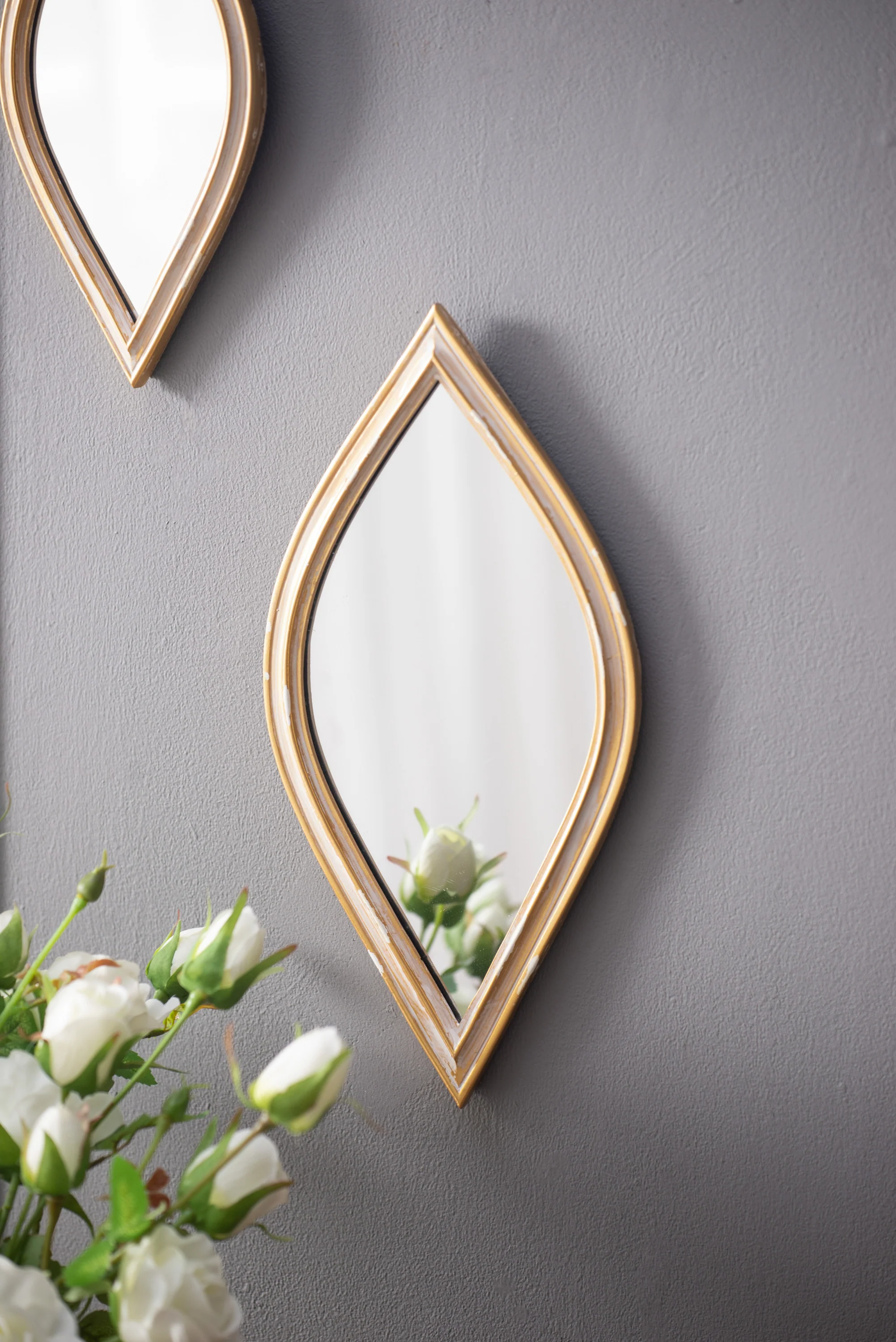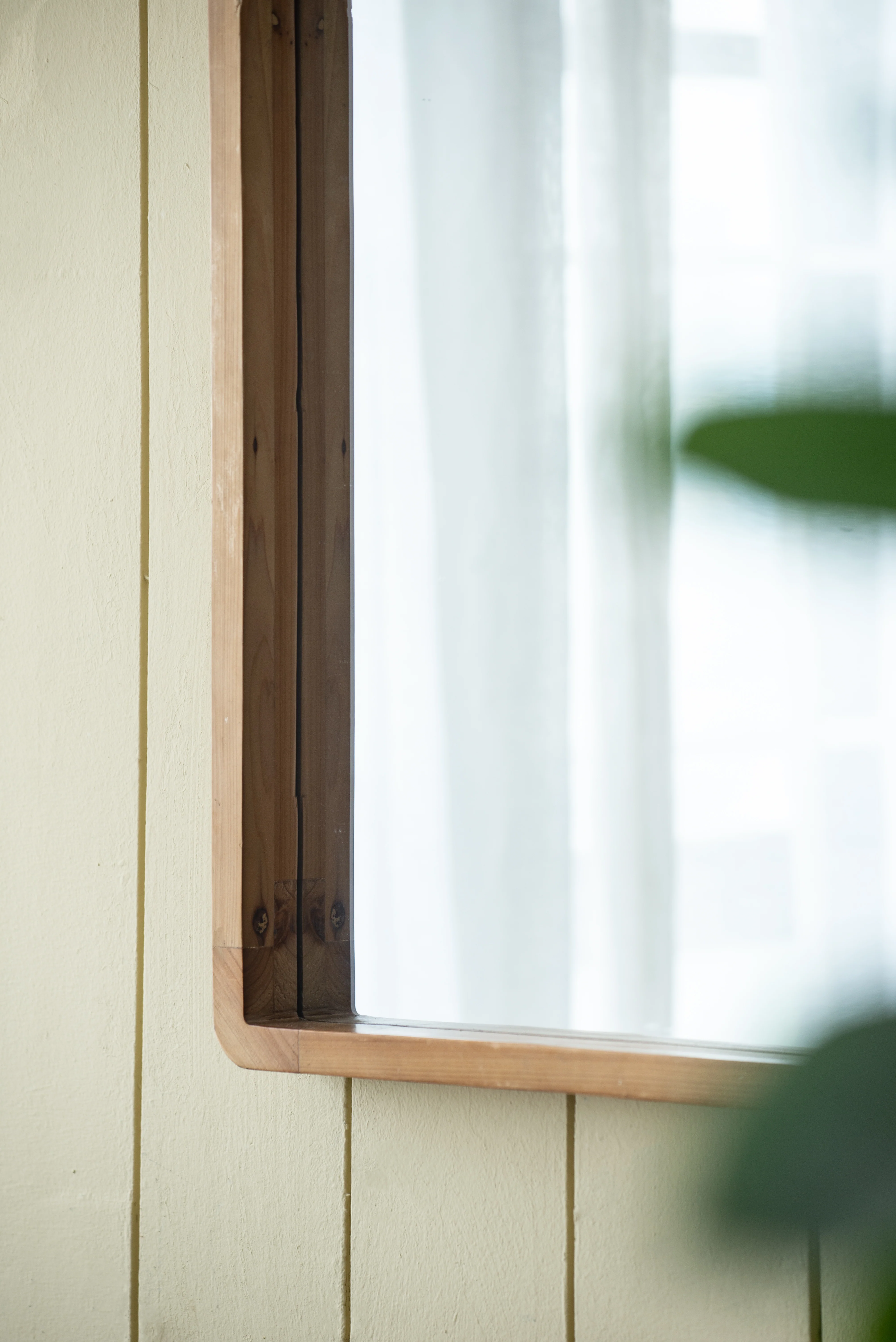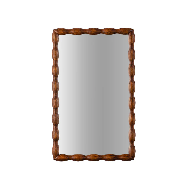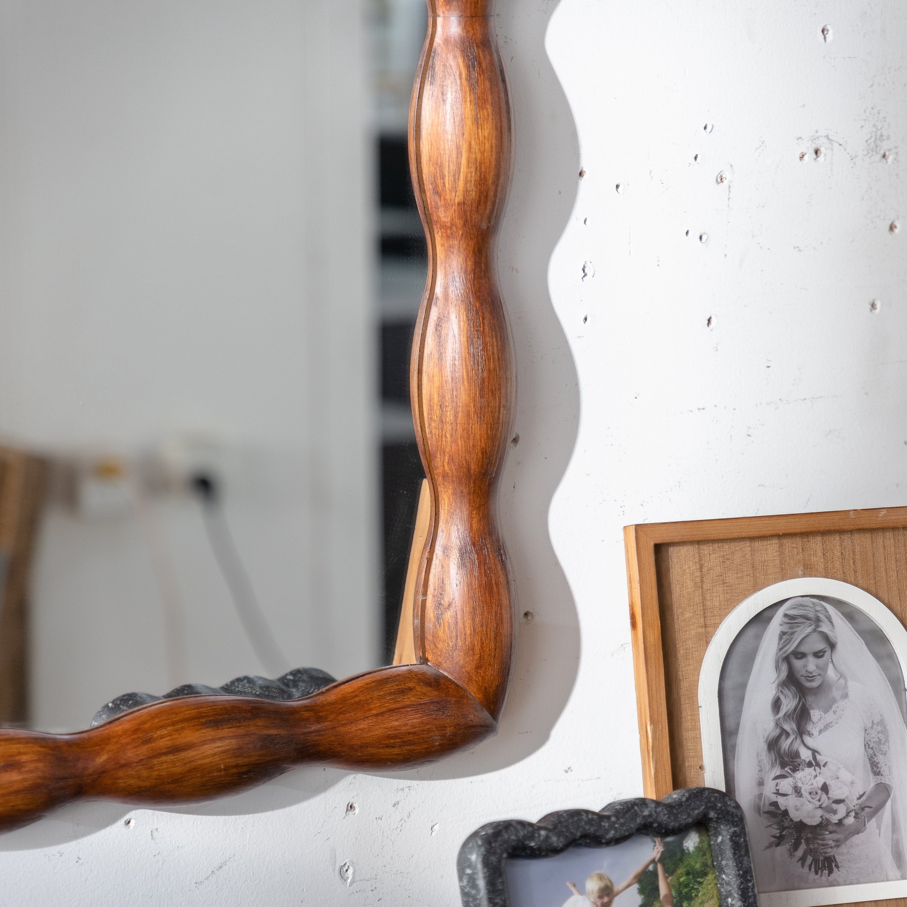 45 Wall Mirror with Curvy Shape and Pine Wood Frame