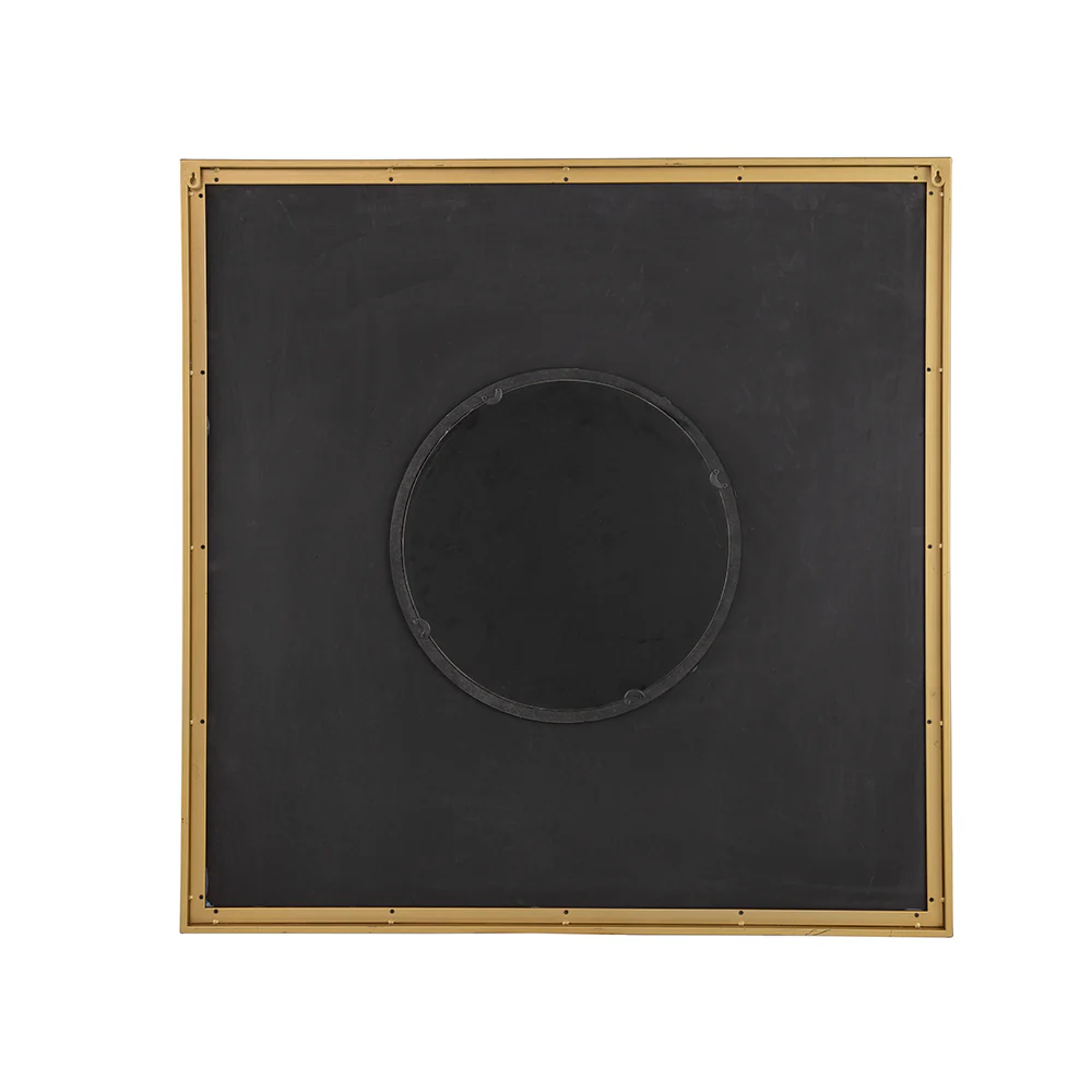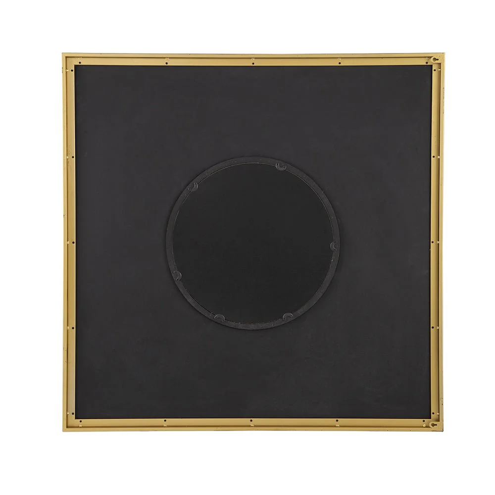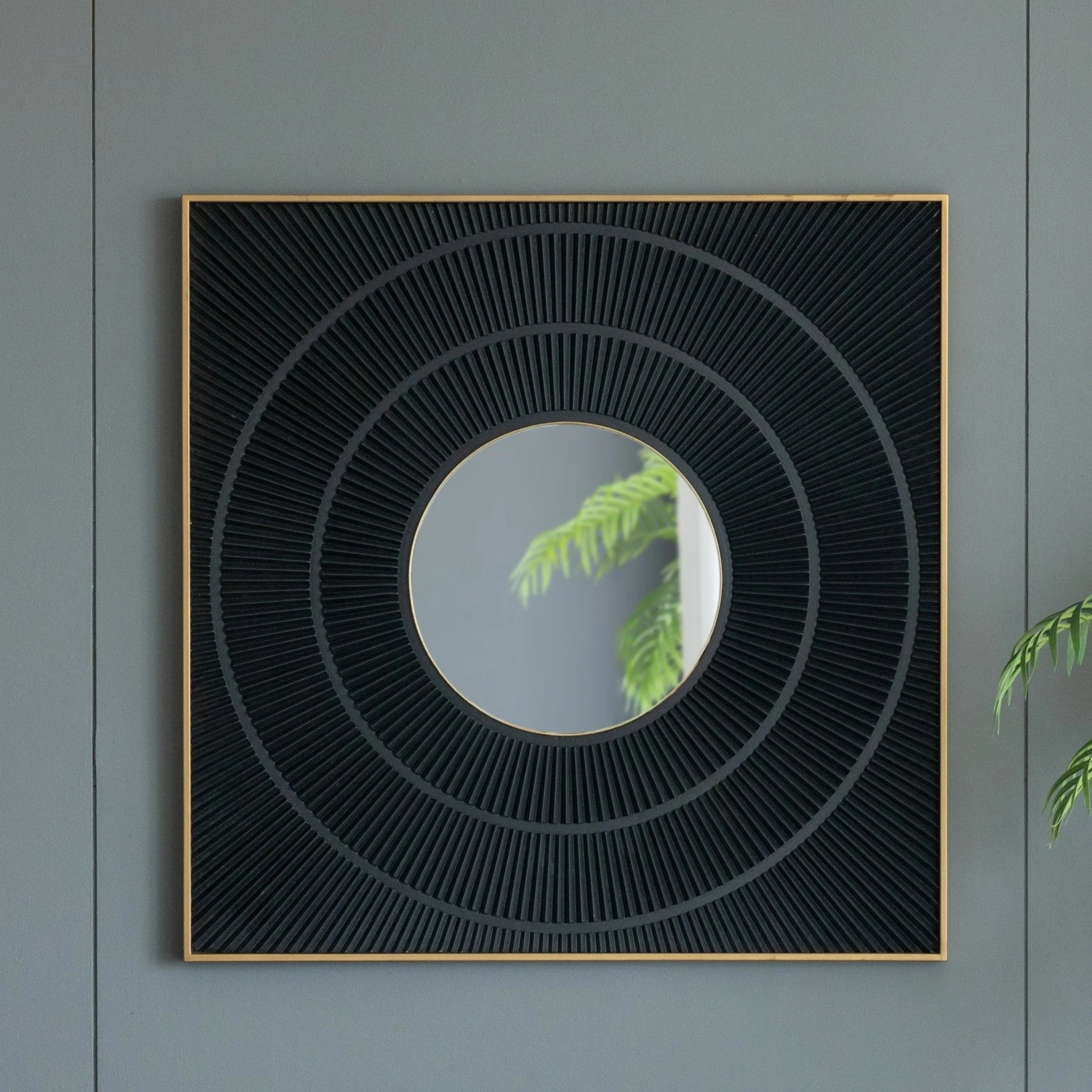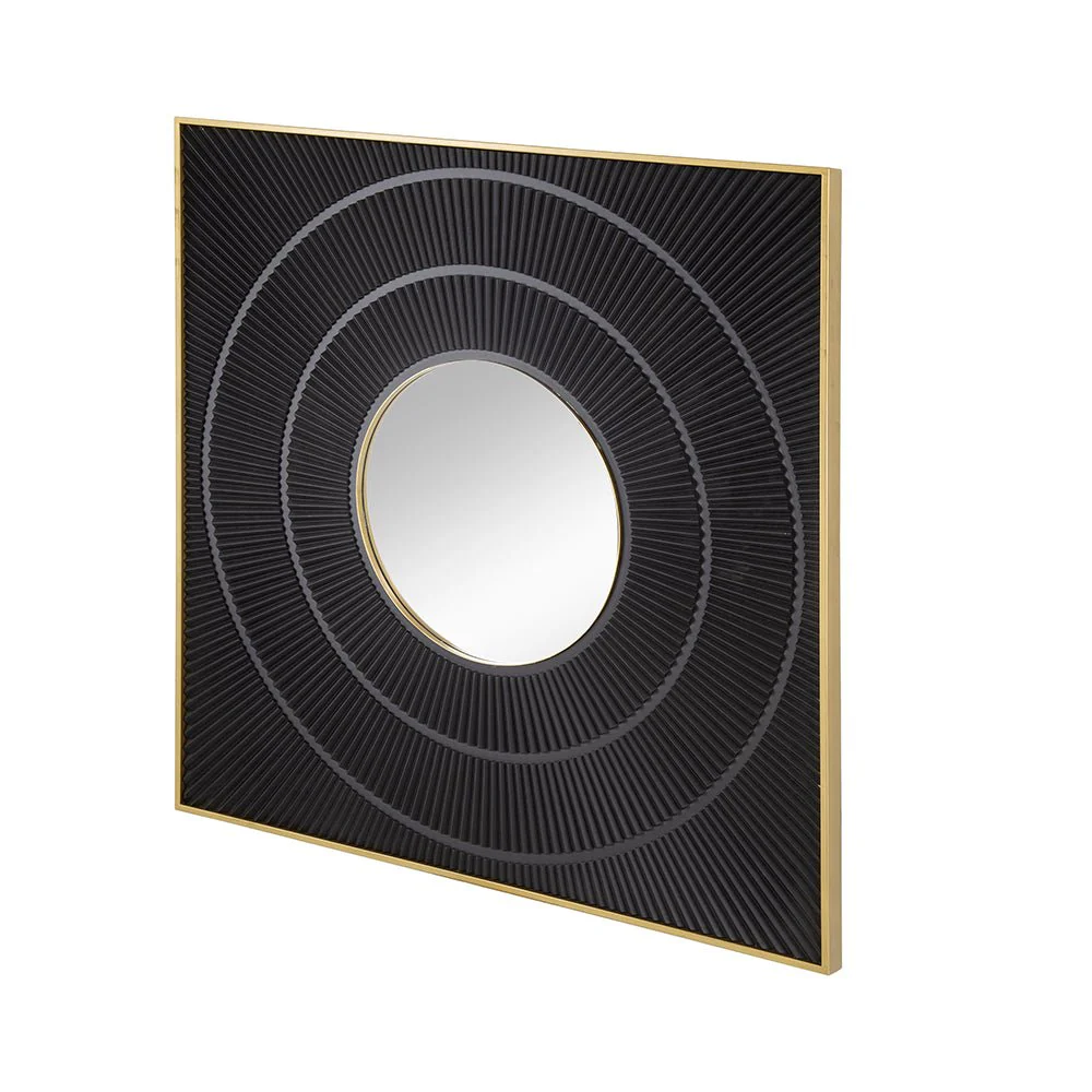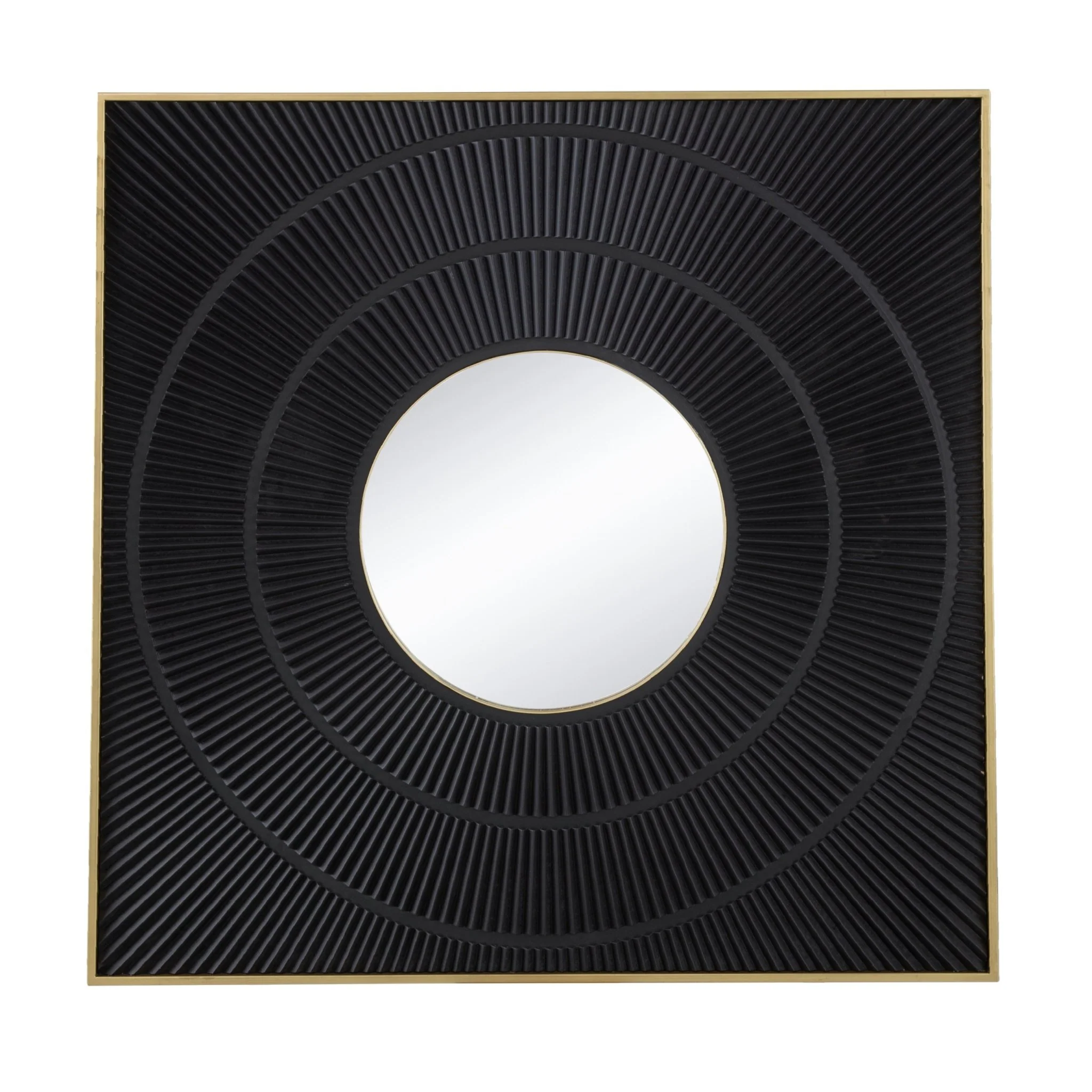 Square Wall Mirror with Pleated Design and Gold Iron Frame