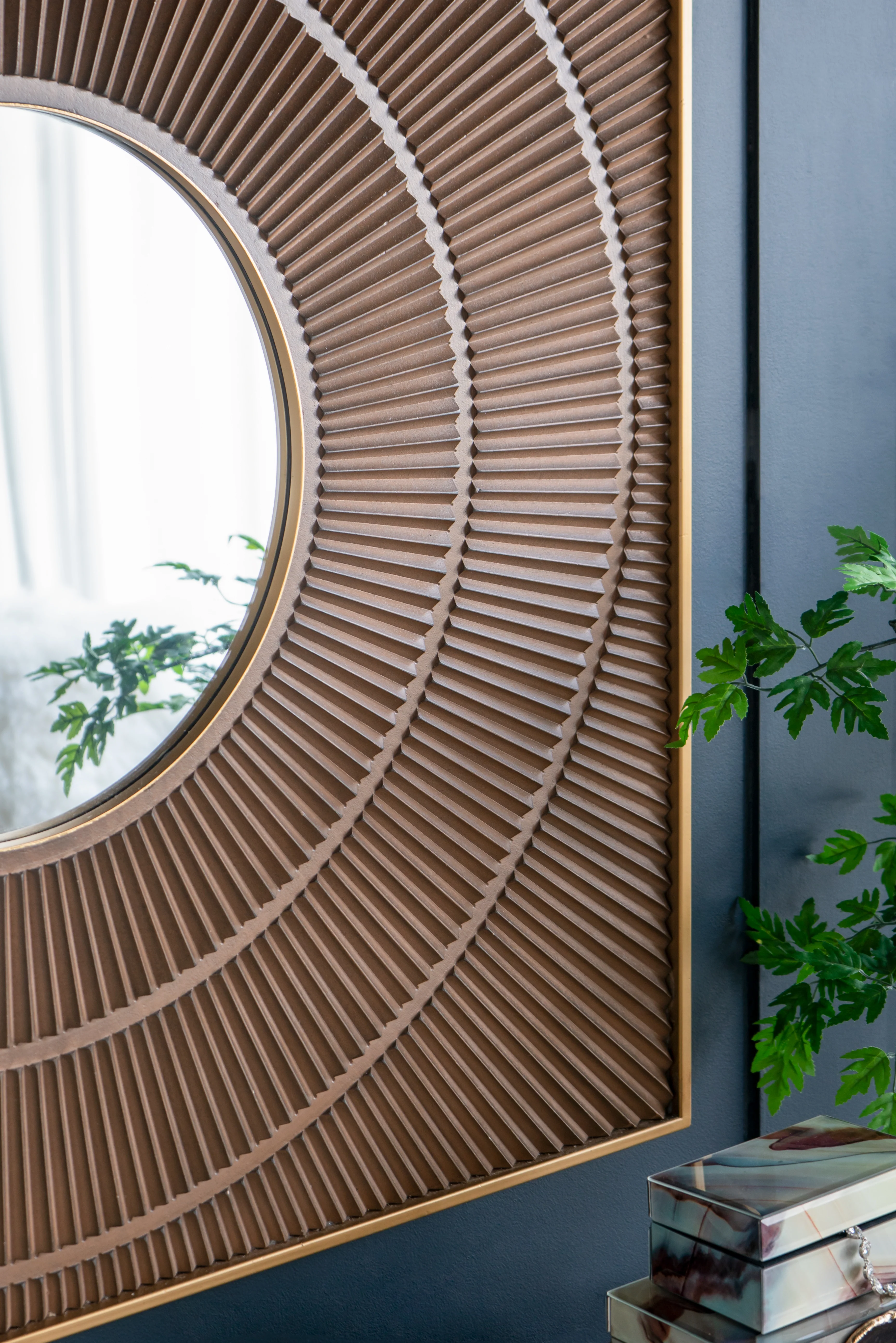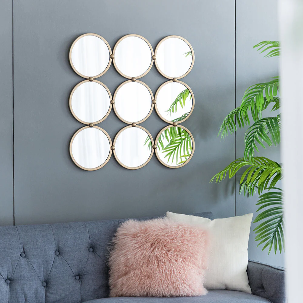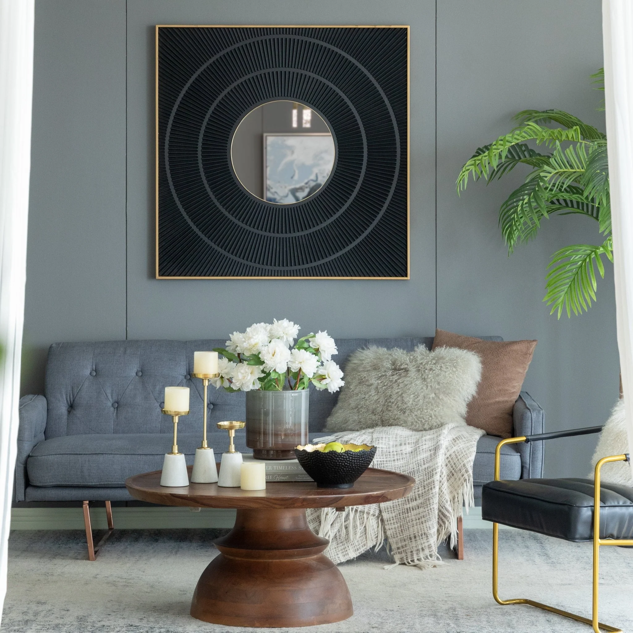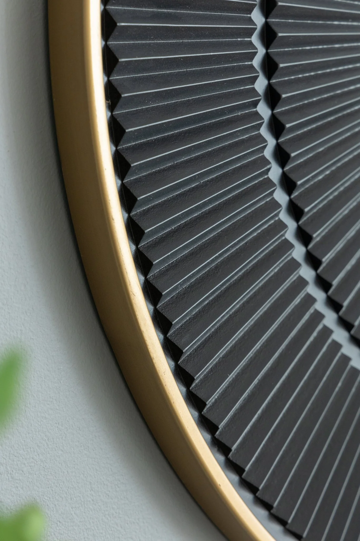 Square Wall Mirror with Pleated Design and Gold Iron Frame