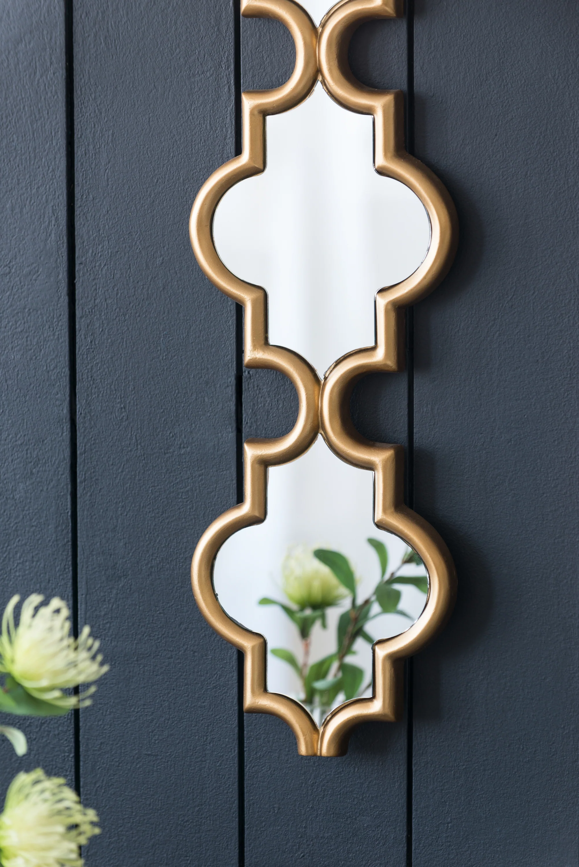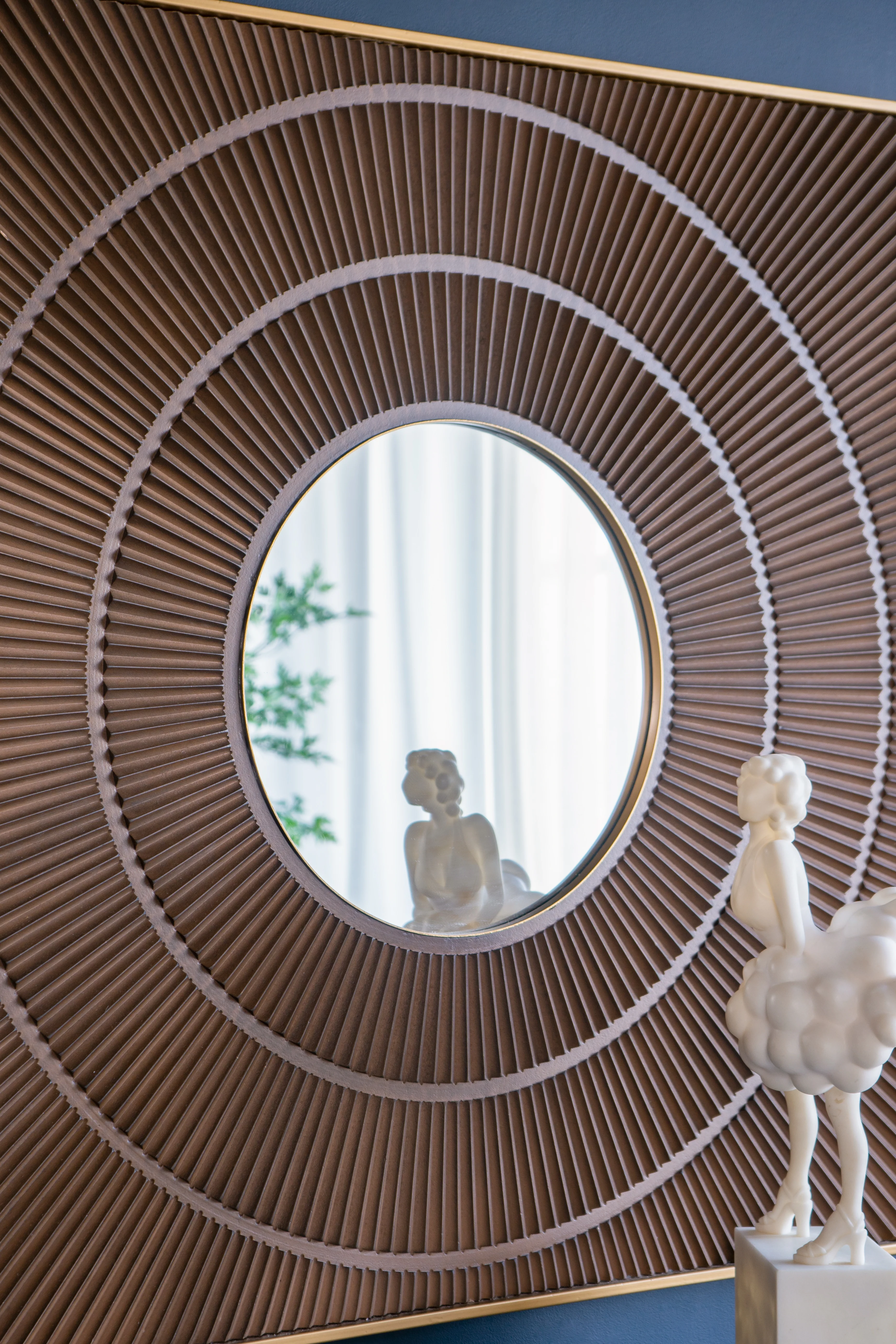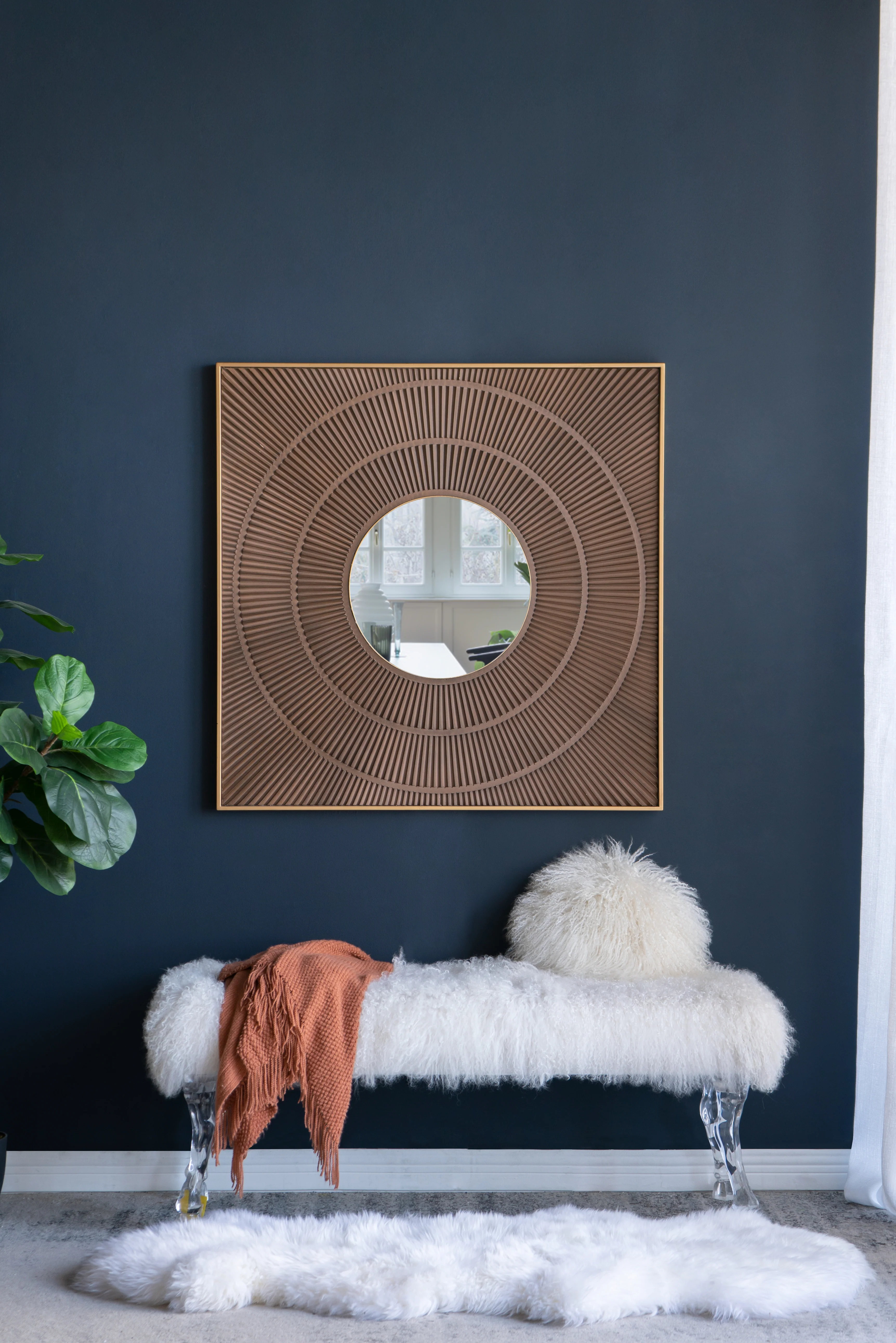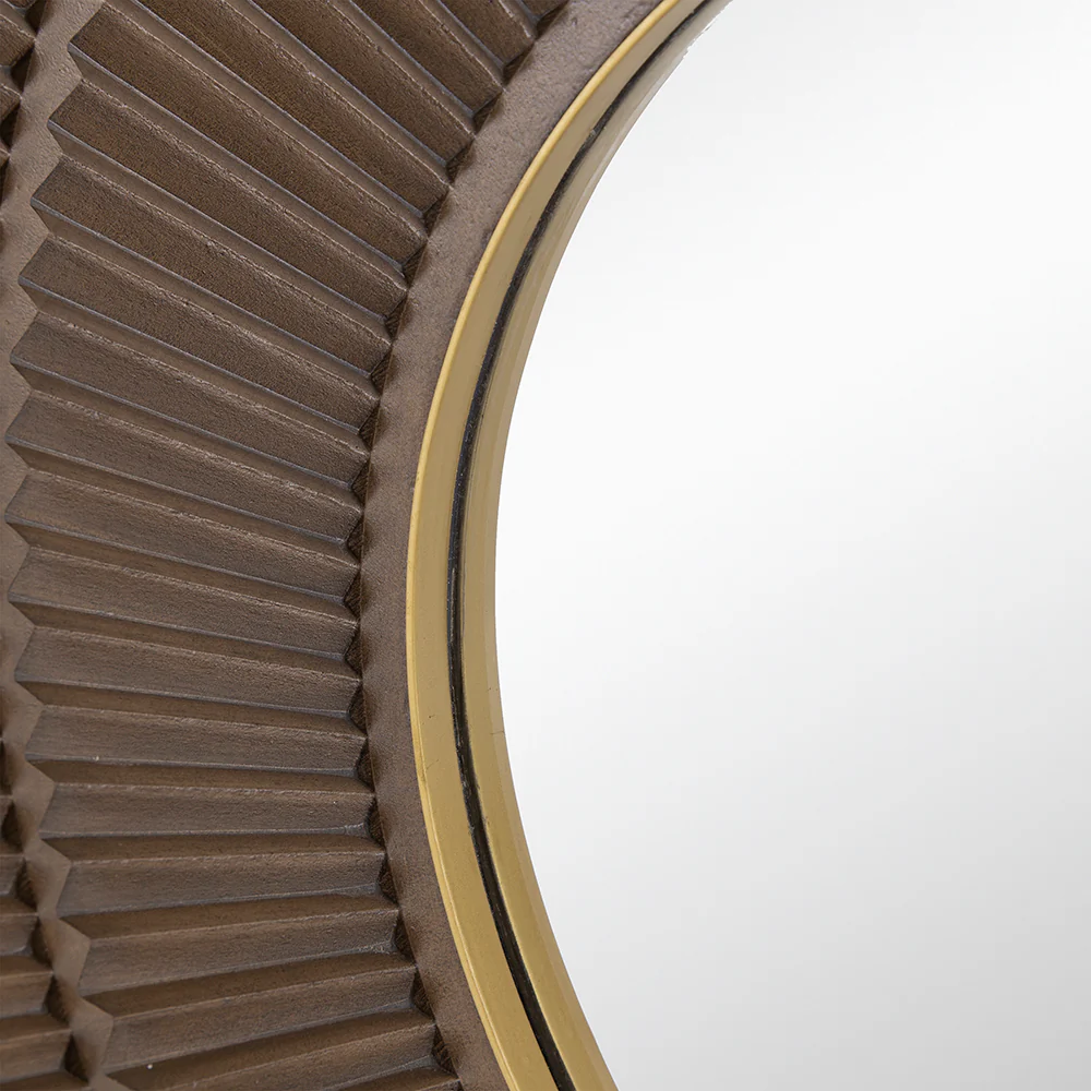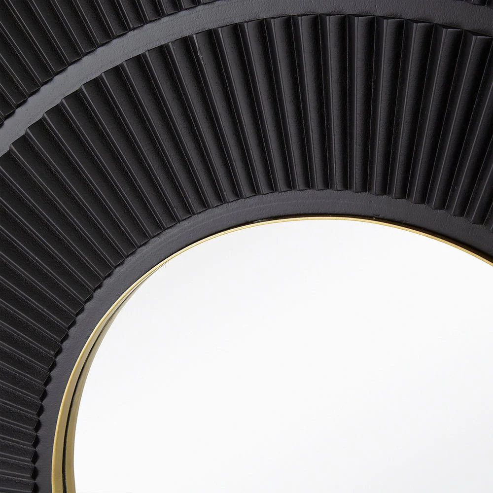 Square Wall Mirror with Pleated Design and Gold Iron Frame