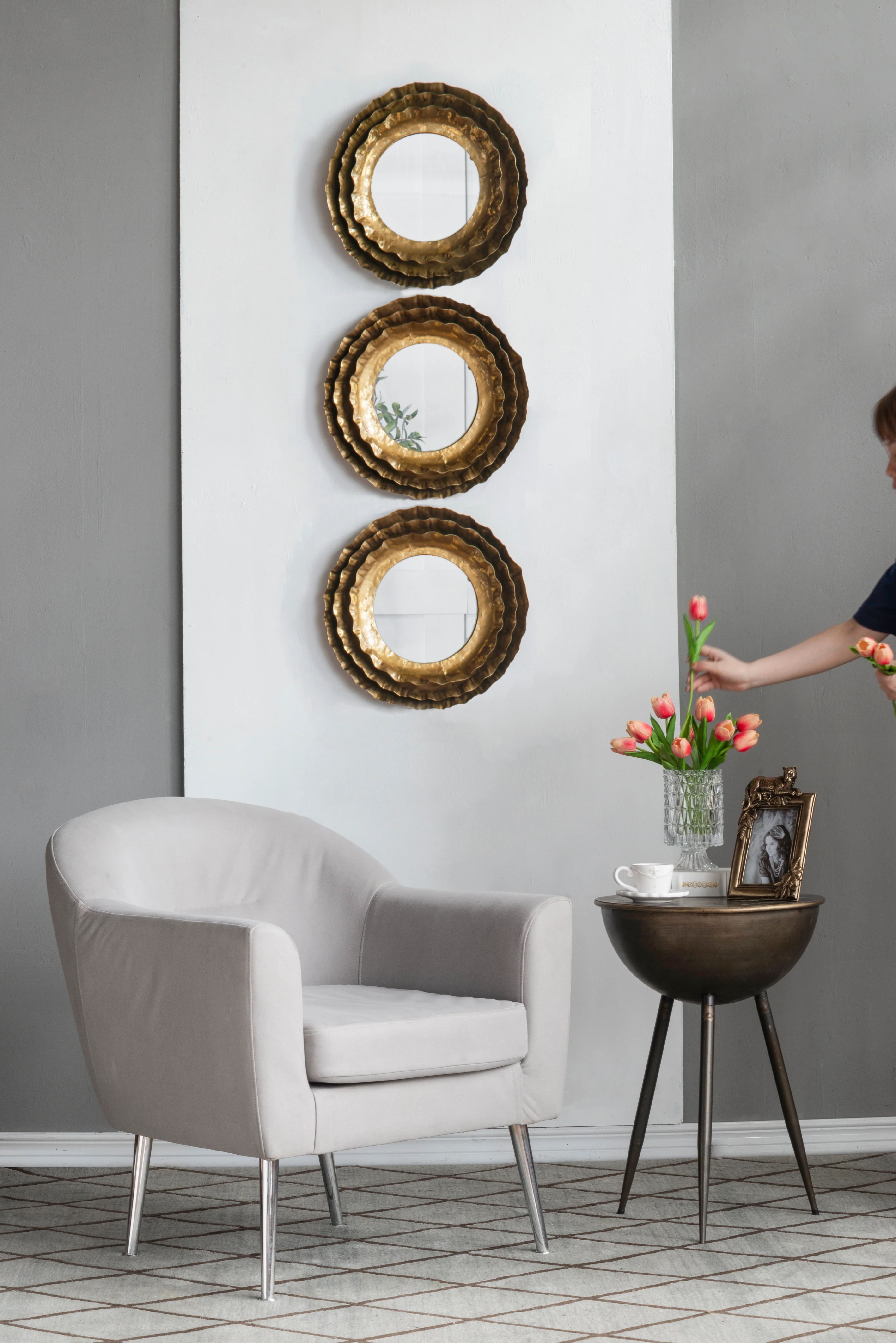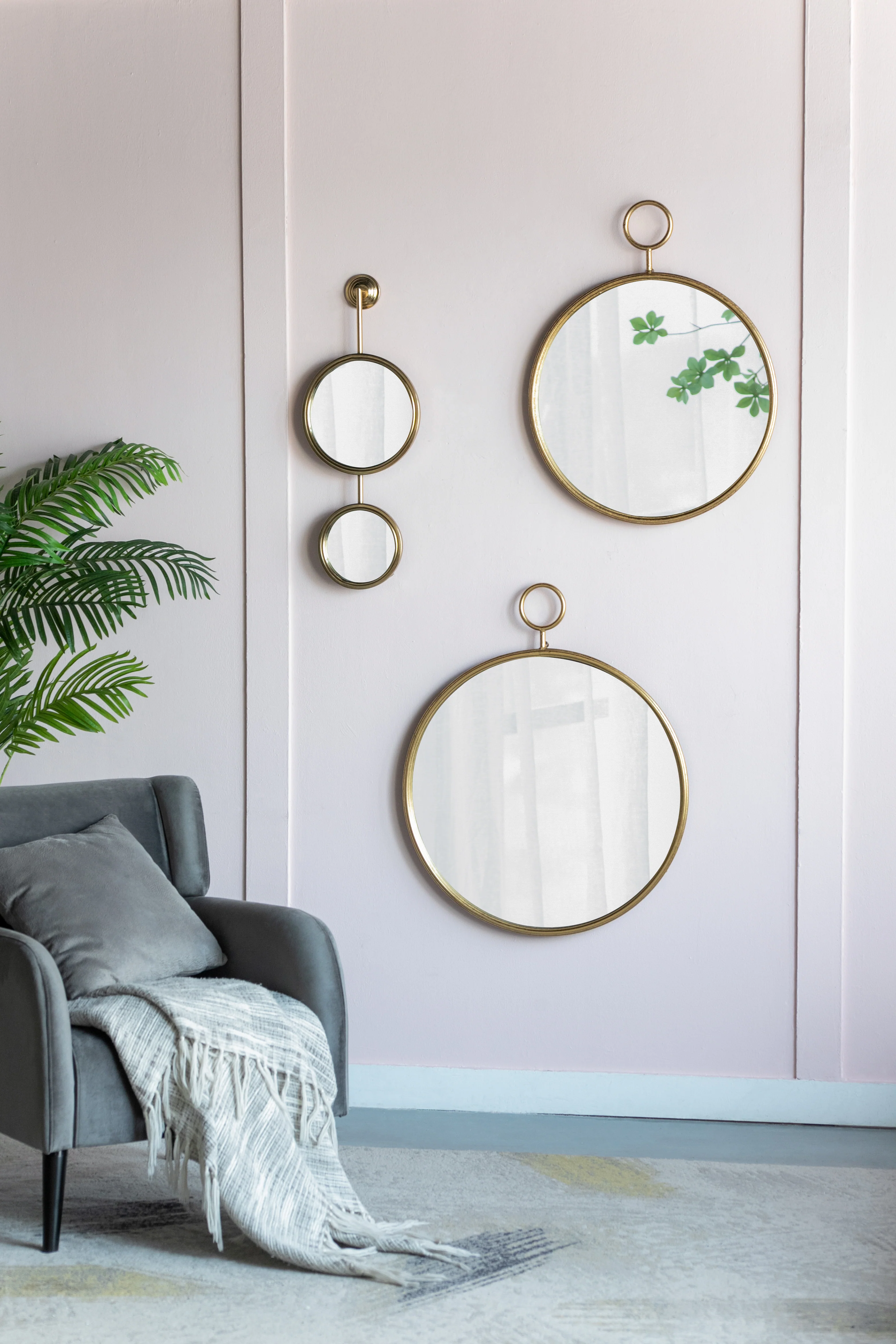 Wall Mirror with Iron Frame and Abstract Design, Set of 3
