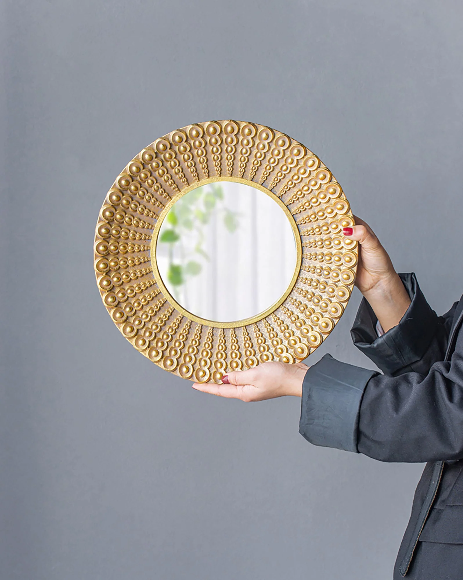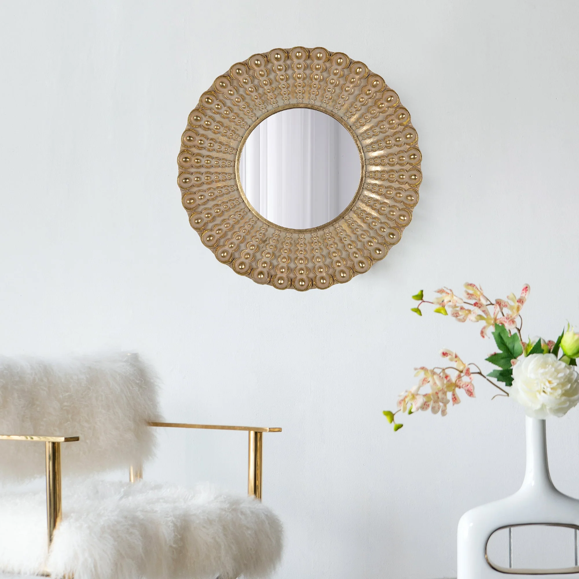 Whimsyes Round Mirror with Radiant Beaded Sunburst Design