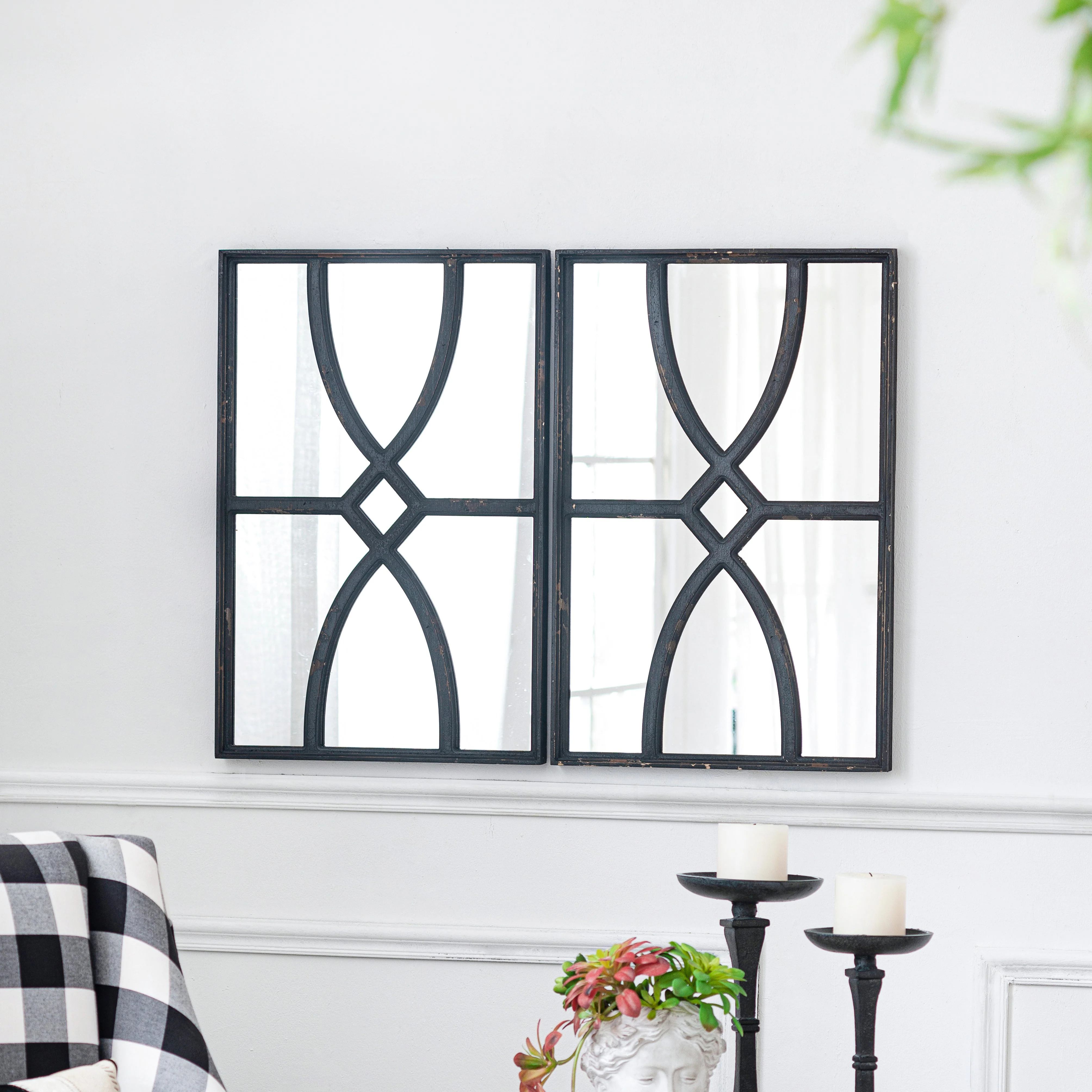 16 x 23 Rectangular Wooden Wall Mirror with Intricate Curved Motifs, Set of 2