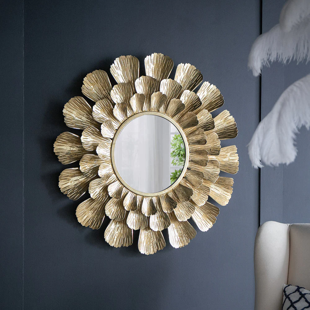 28.3' in Retro Design Gold Sunburst Metal Wall Mirror Decorative Mirror