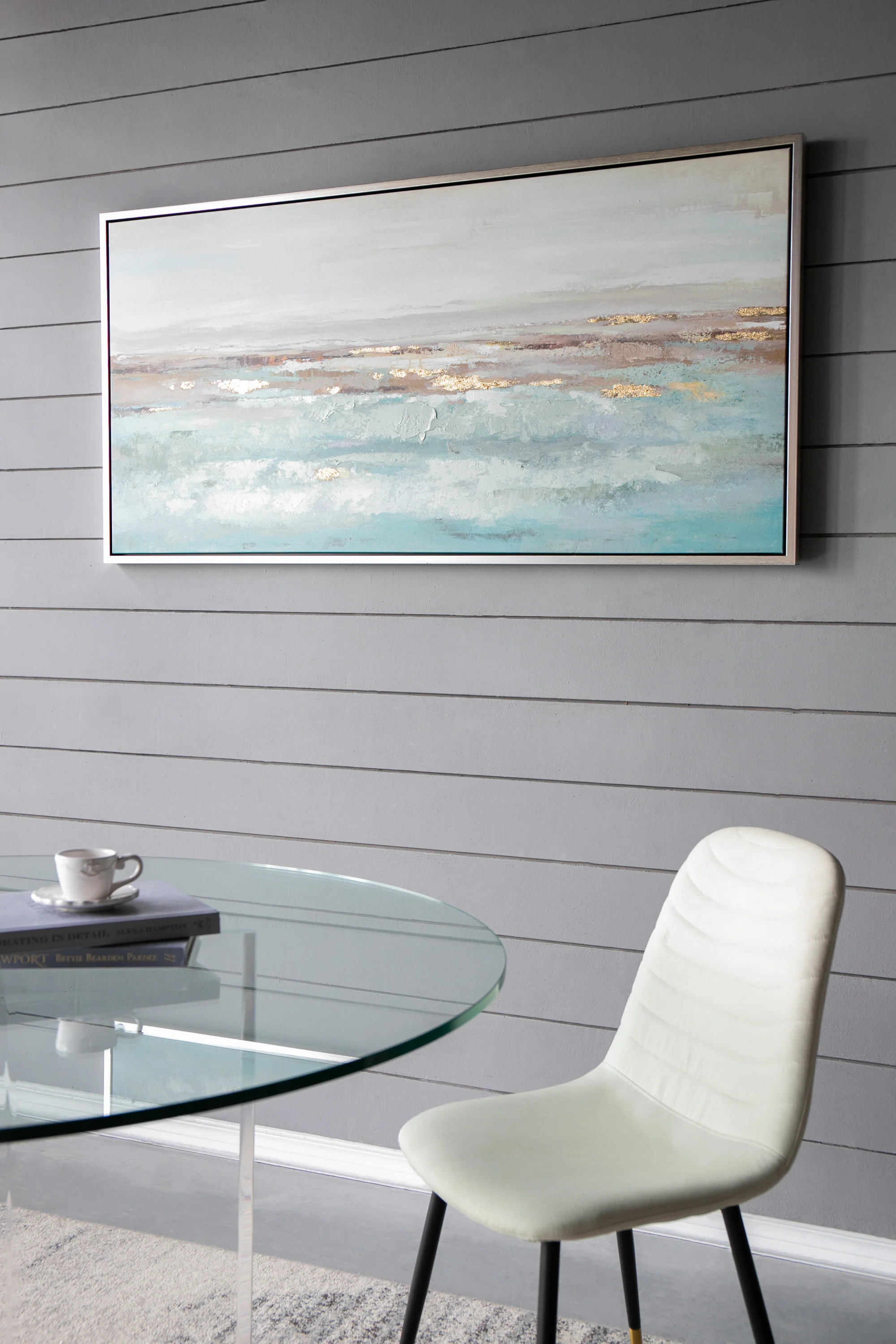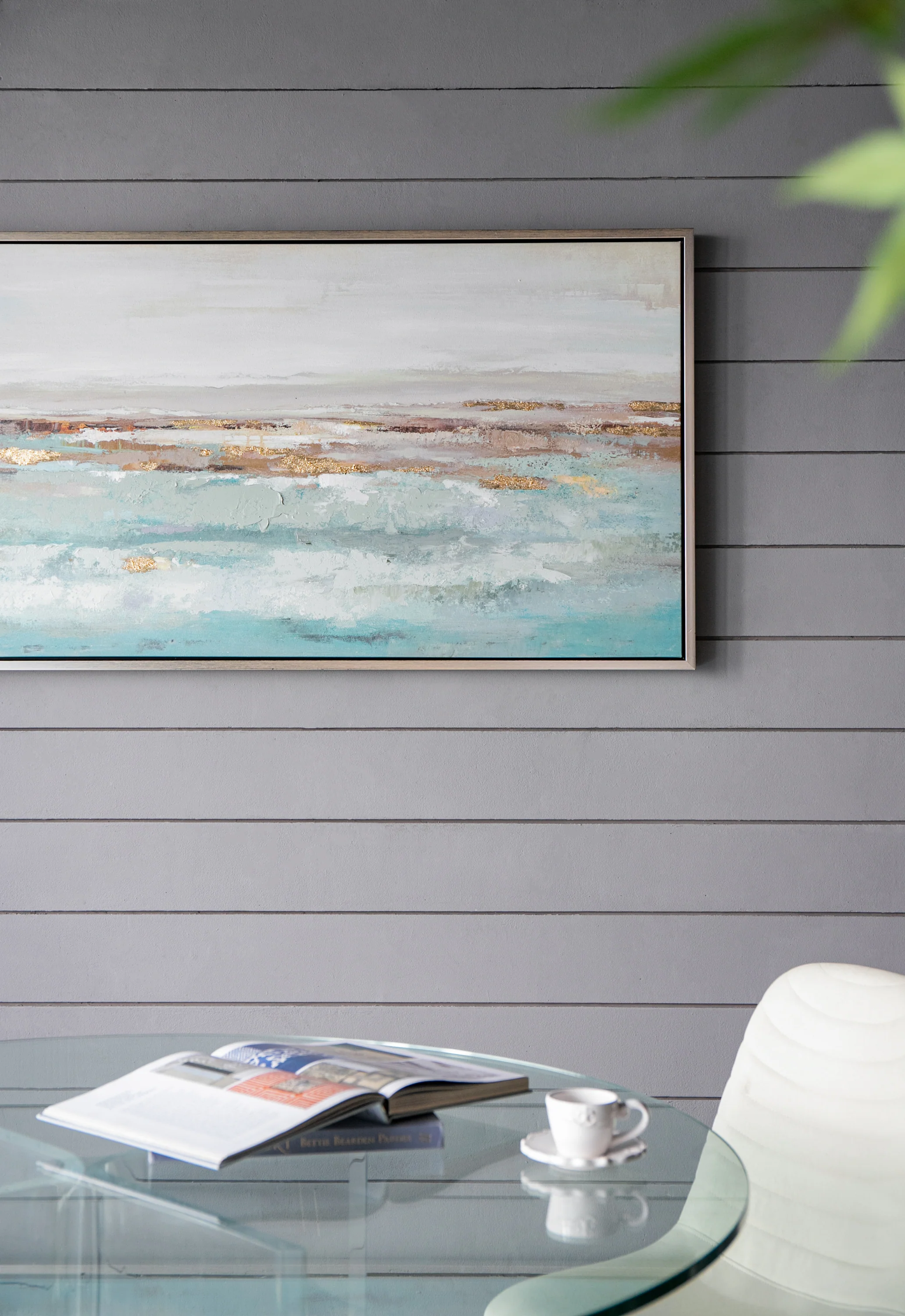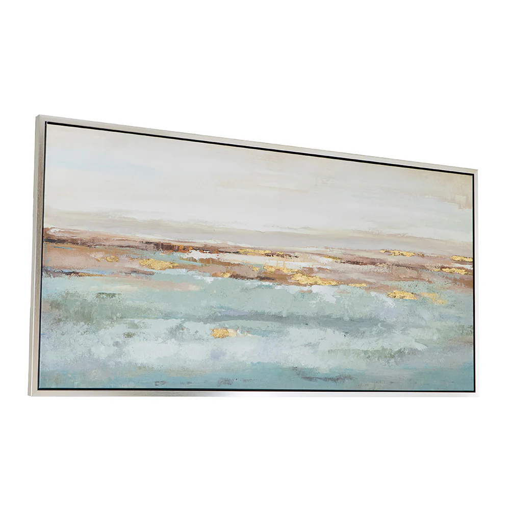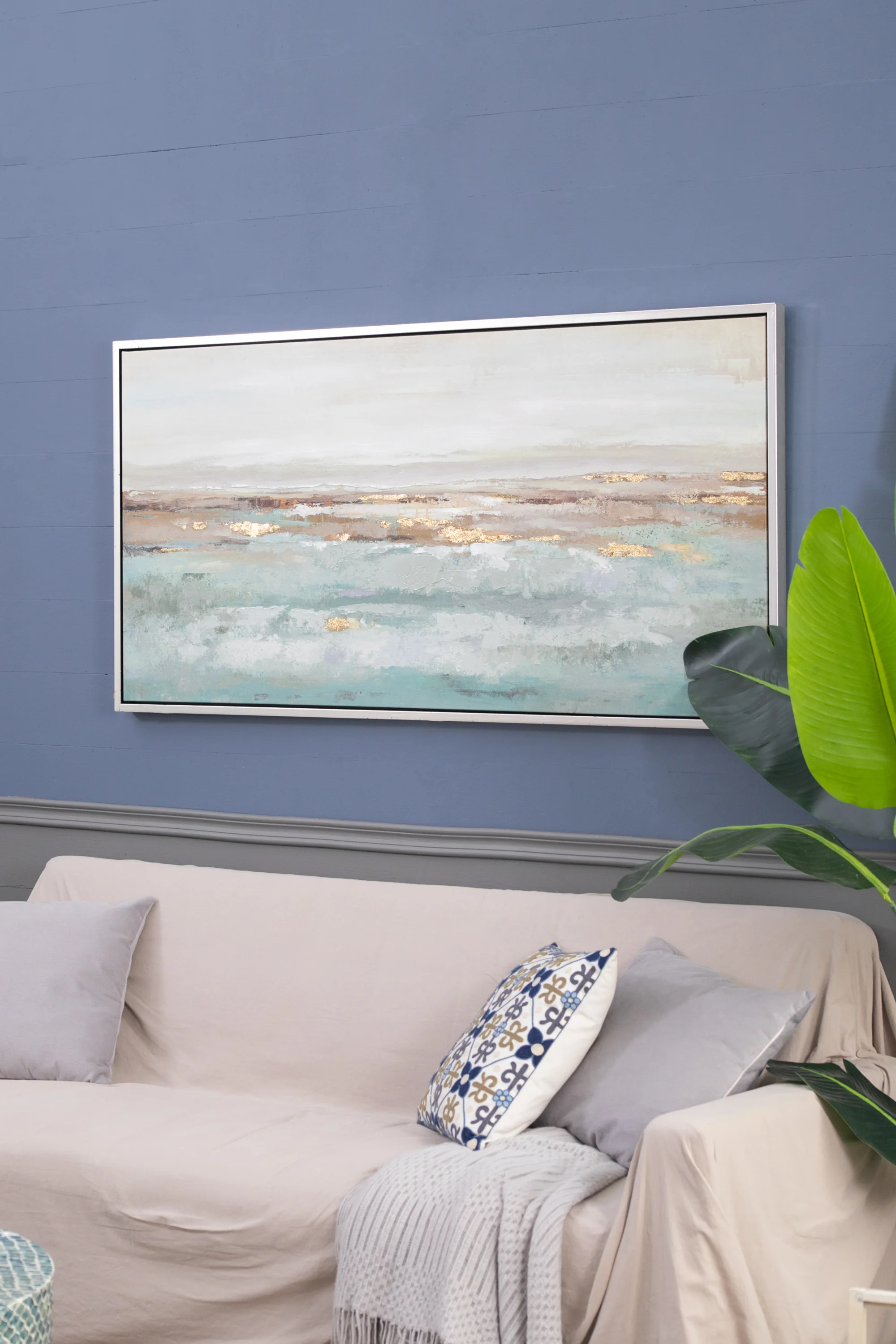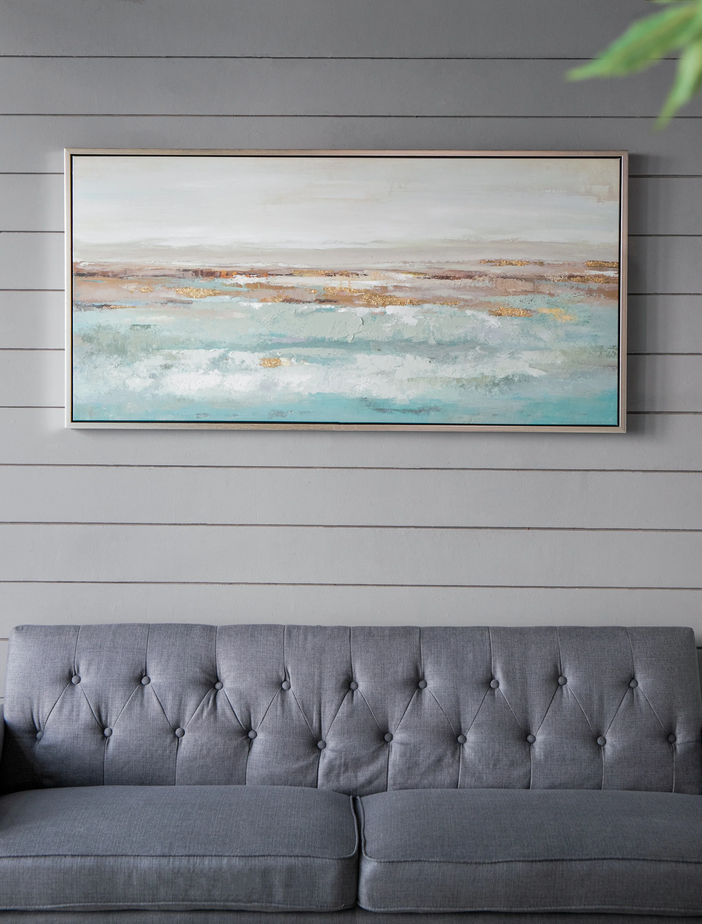 59.1x29.5x1.5' Framed Landscape Rectangle Blue and Gold Abstract Ocean Oil Painting