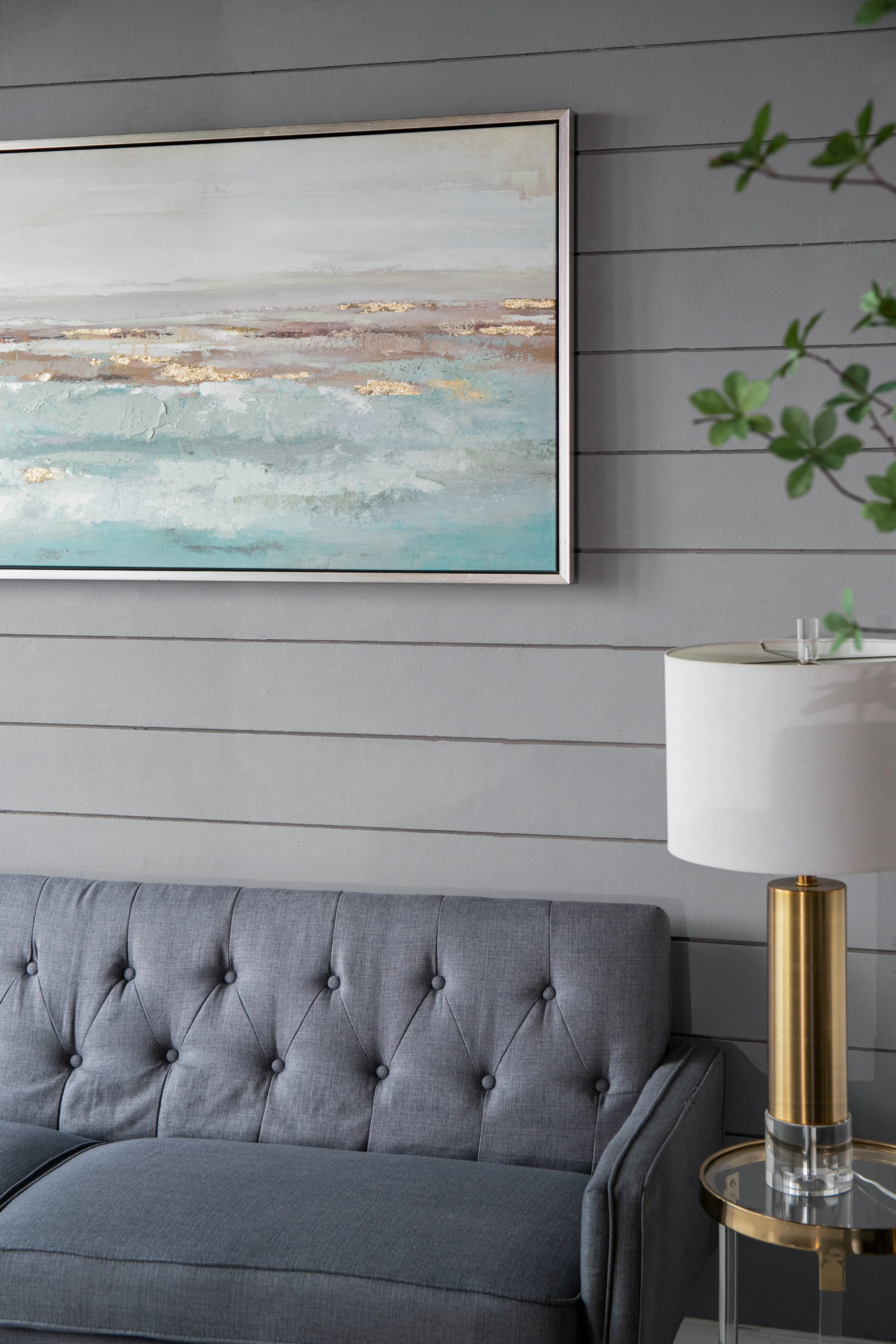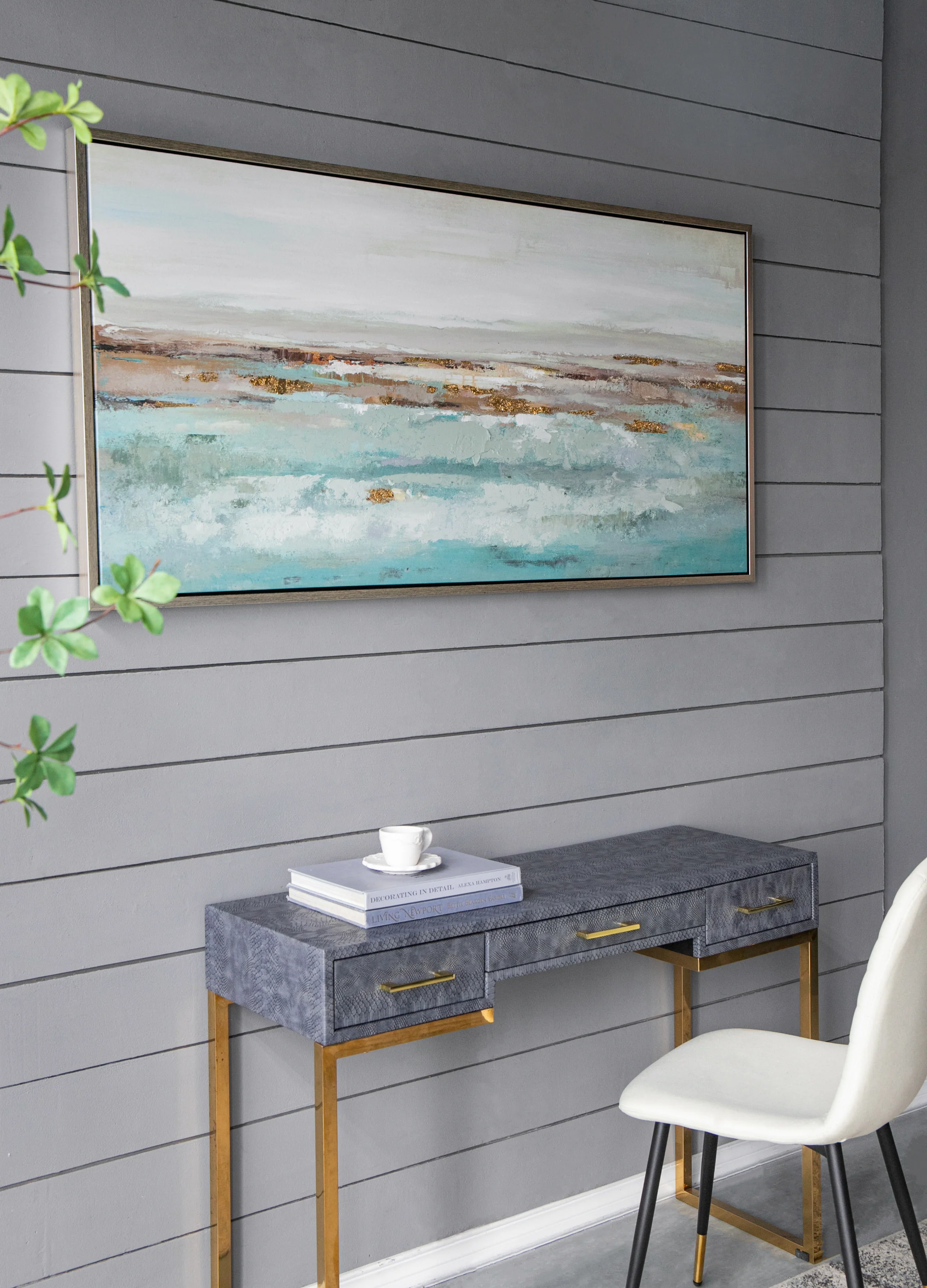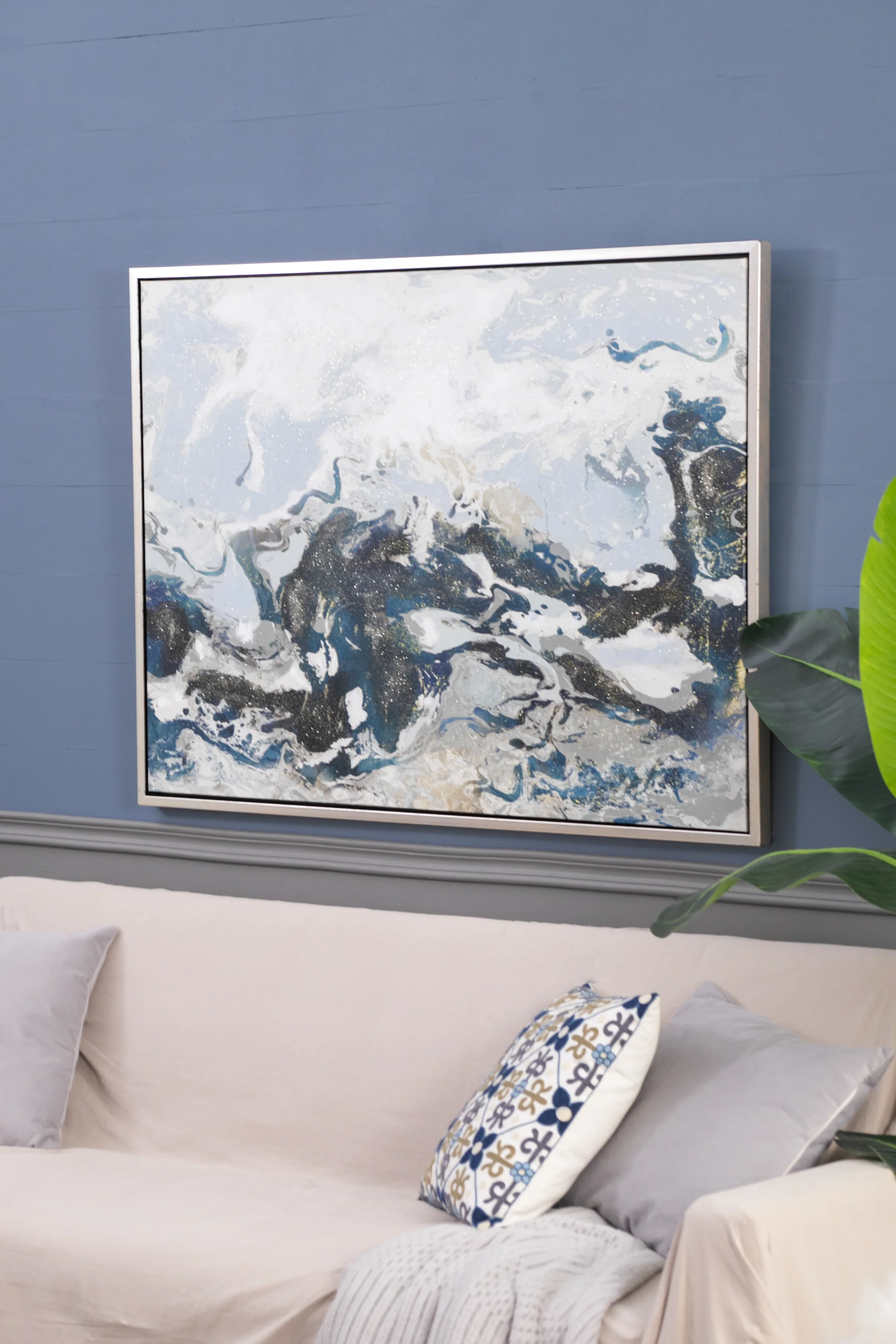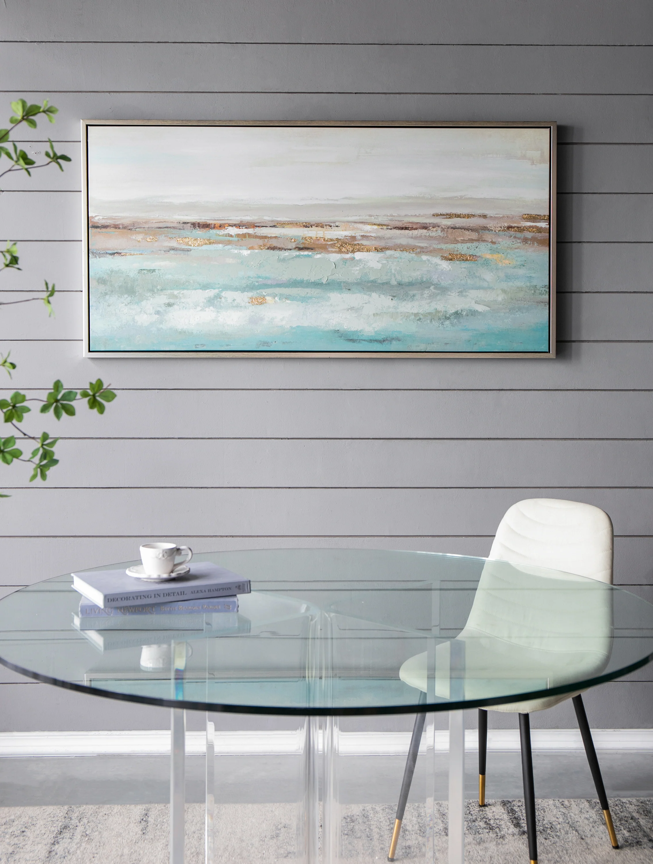 59.1x29.5x1.5' Framed Landscape Rectangle Blue and Gold Abstract Ocean Oil Painting
