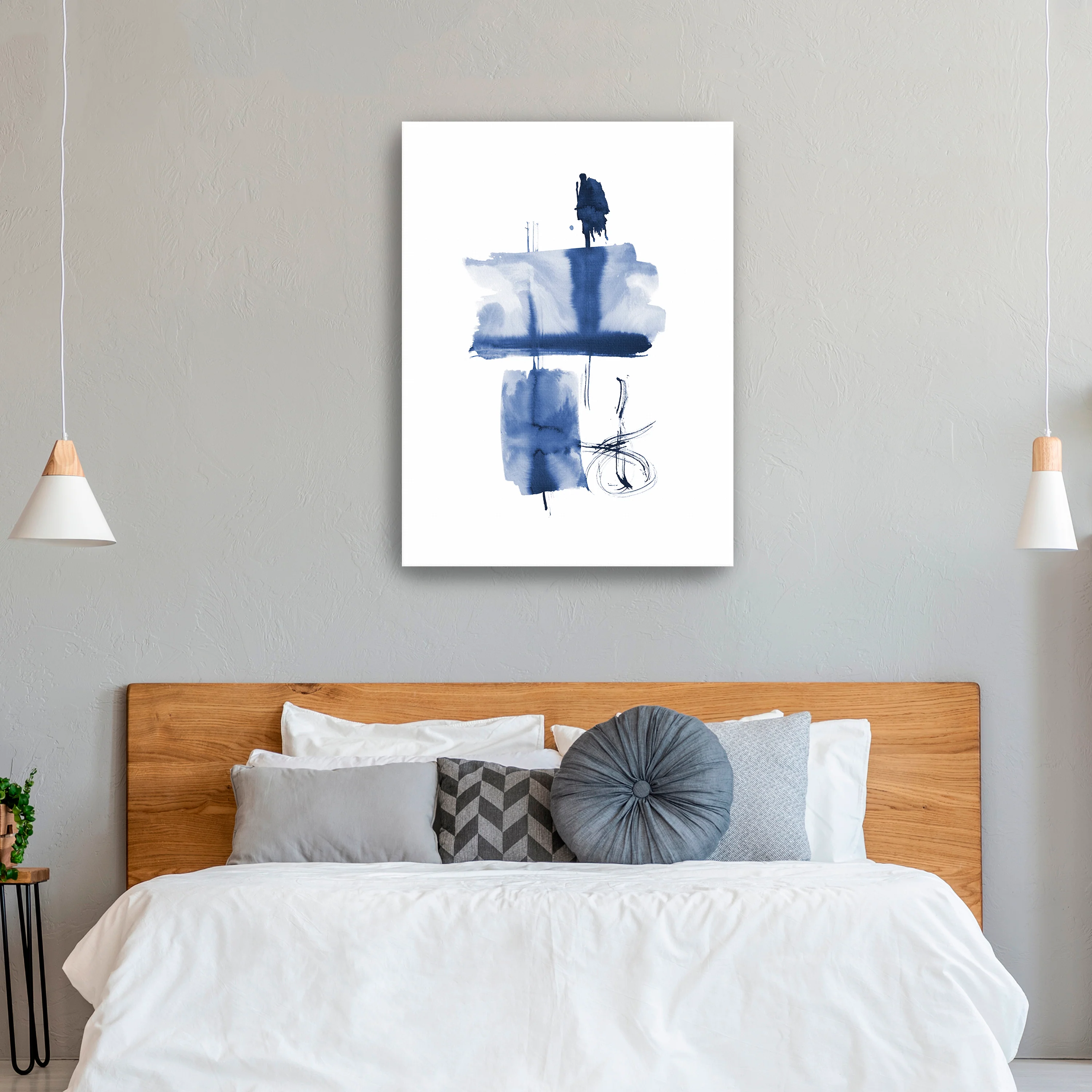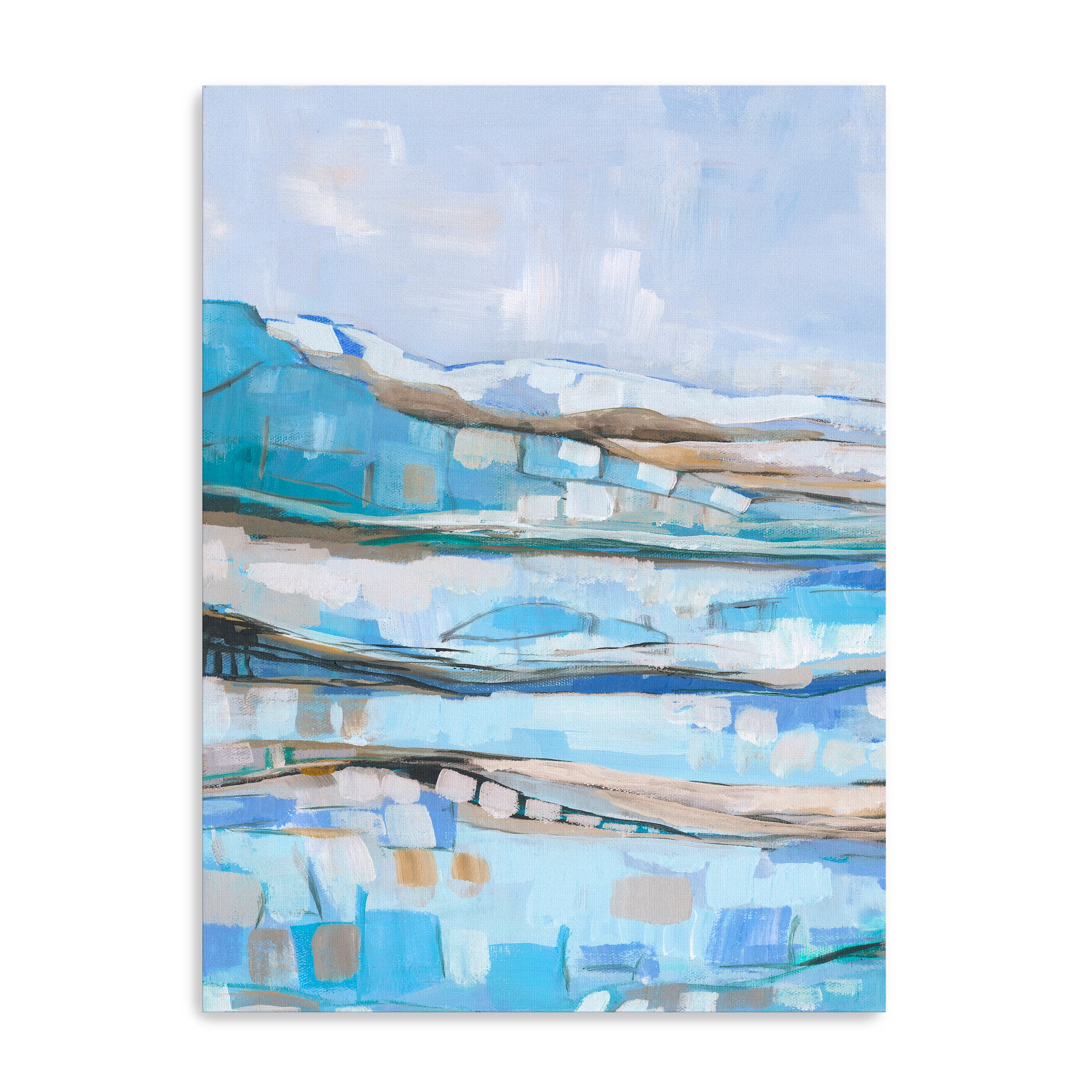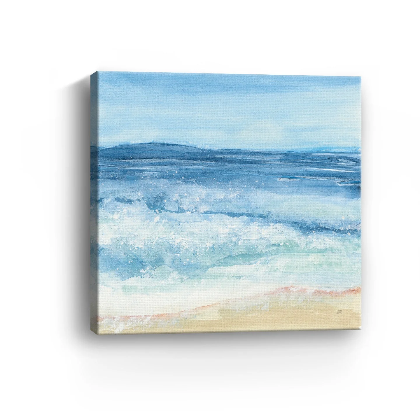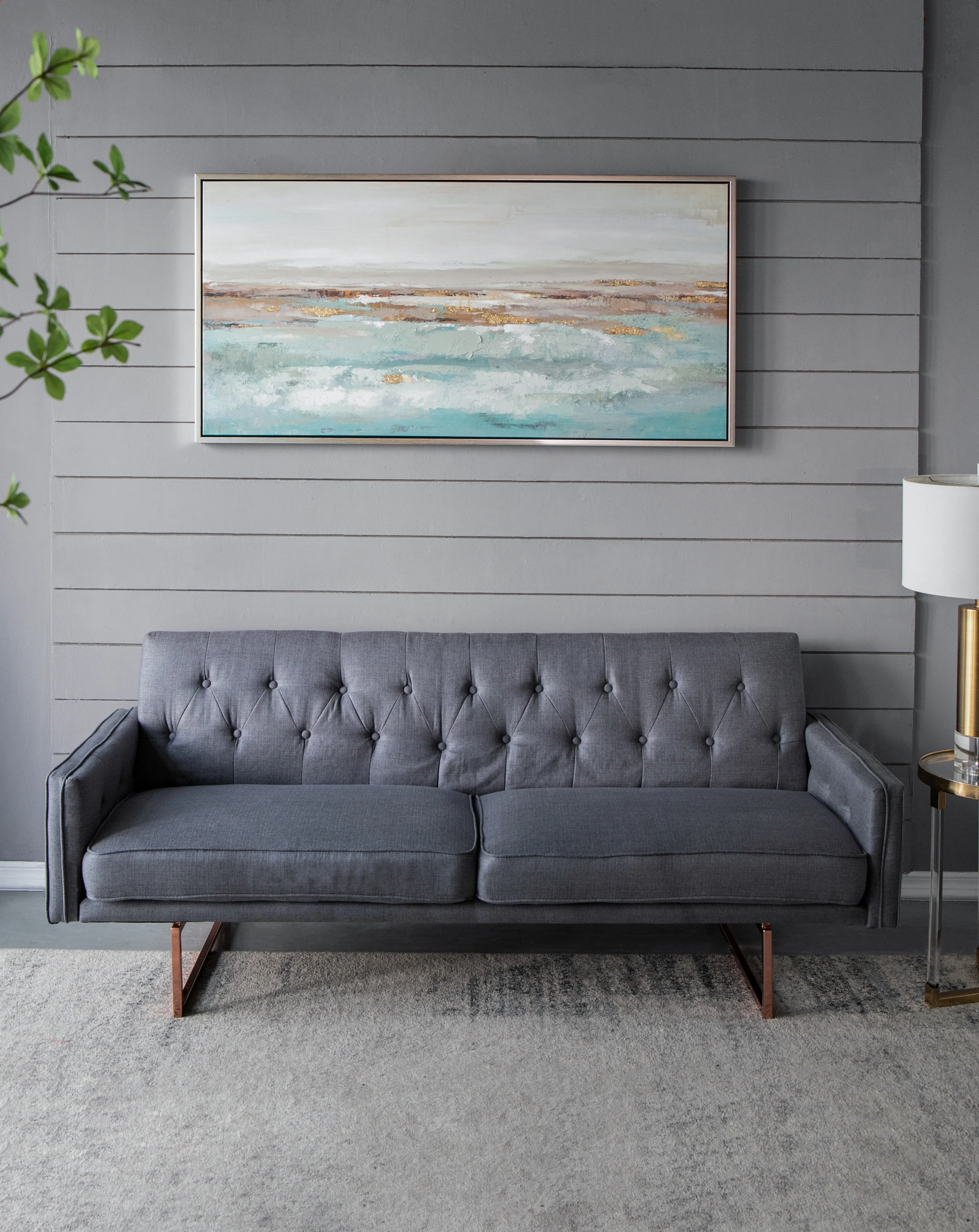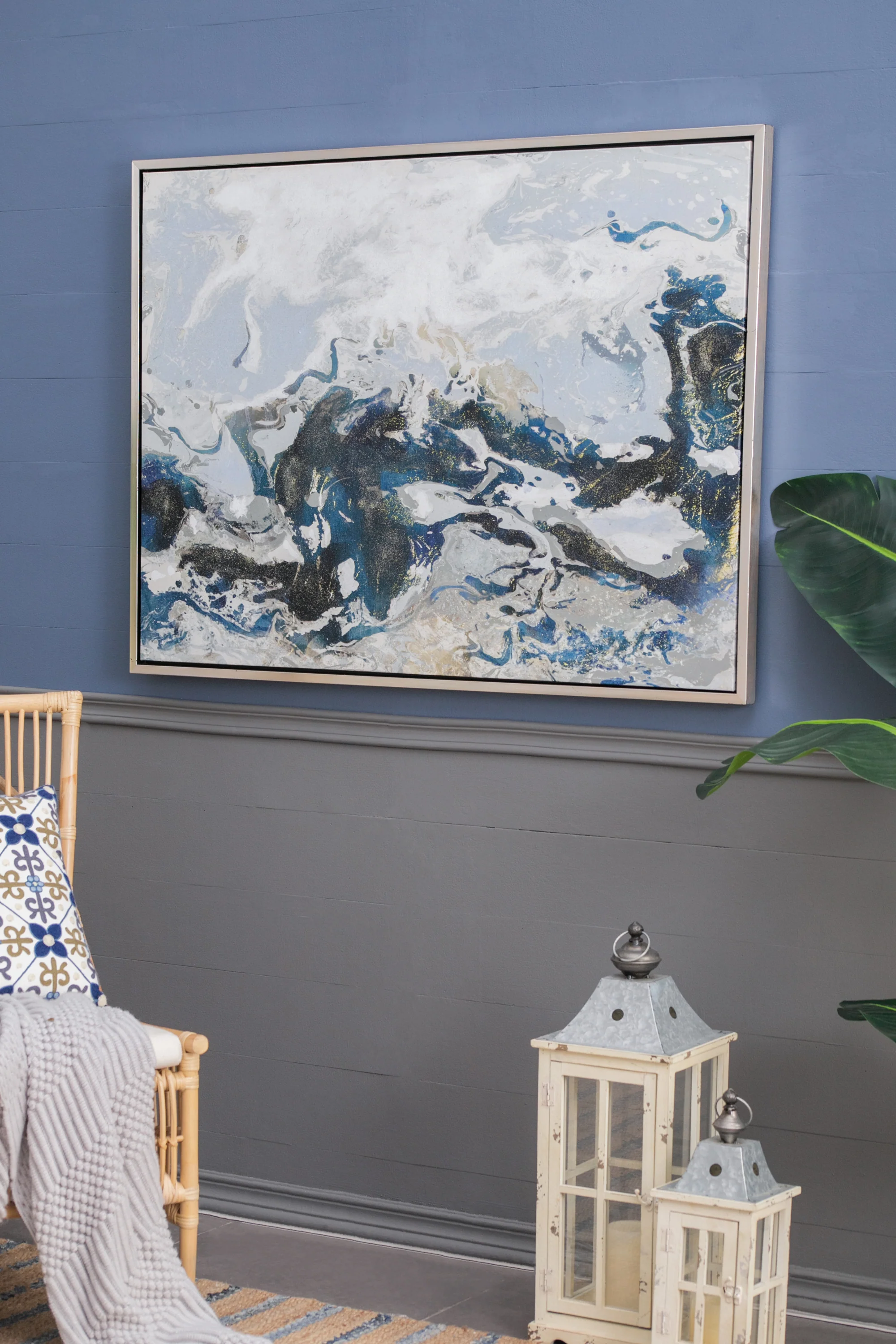 59.1x29.5x1.5' Framed Landscape Rectangle Blue and Gold Abstract Ocean Oil Painting