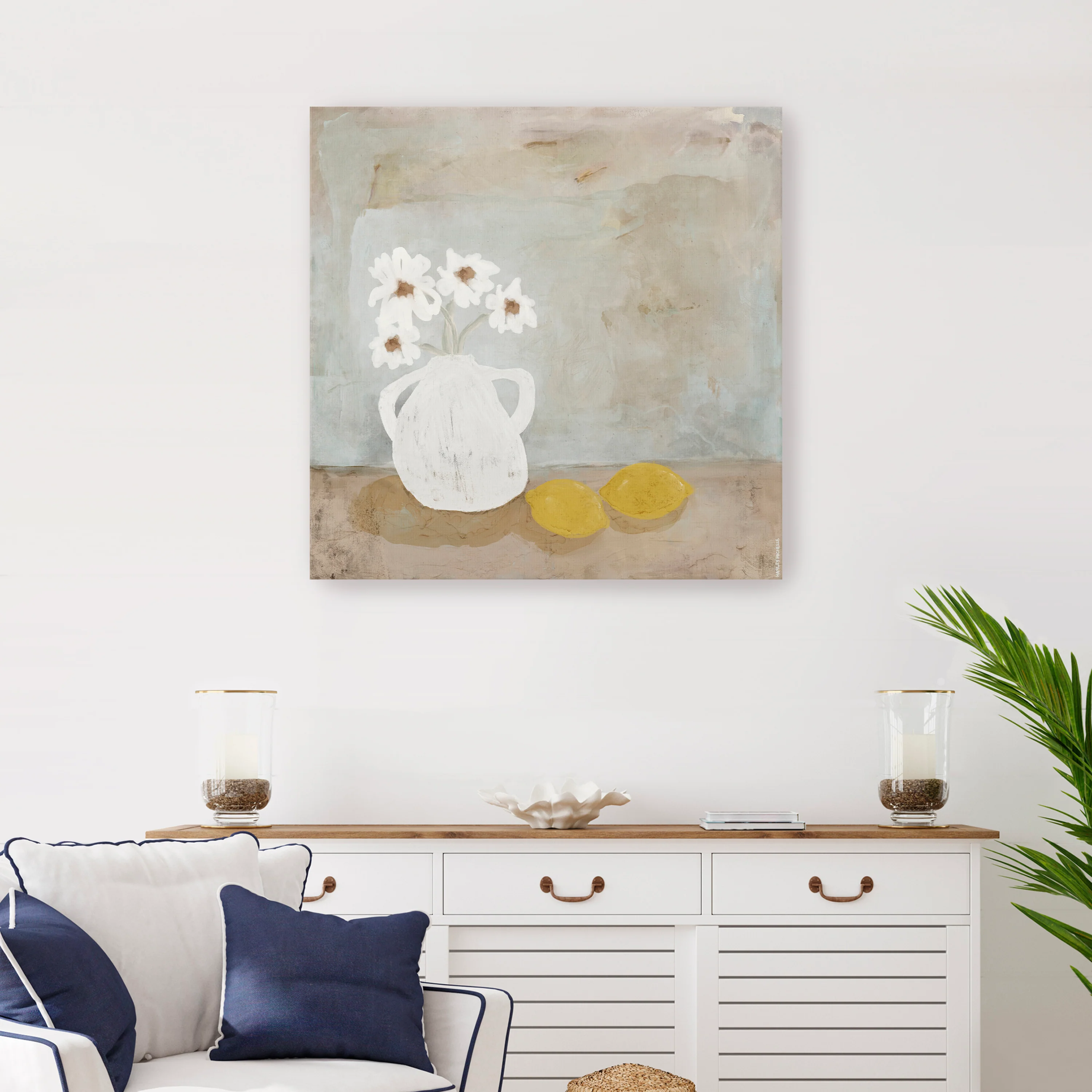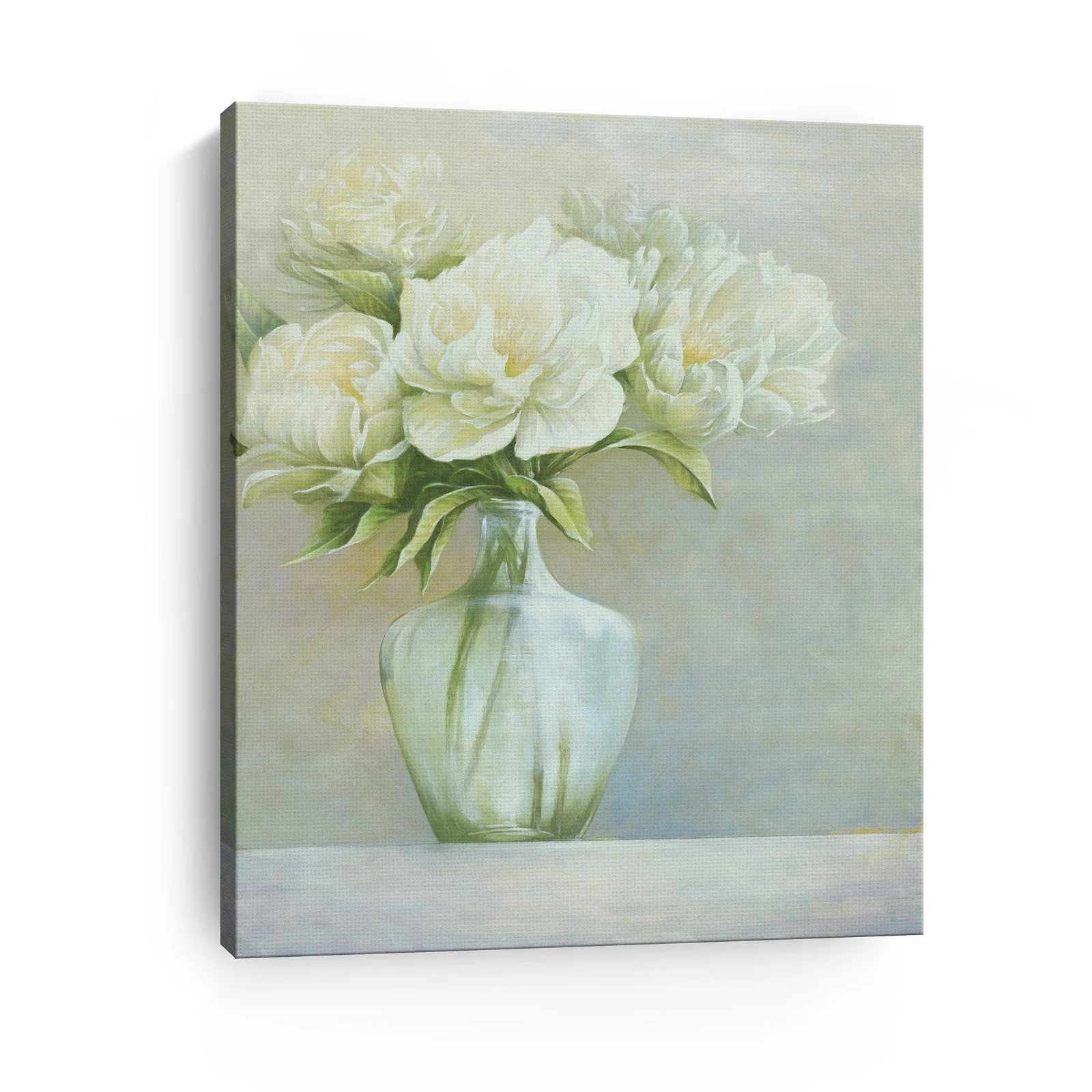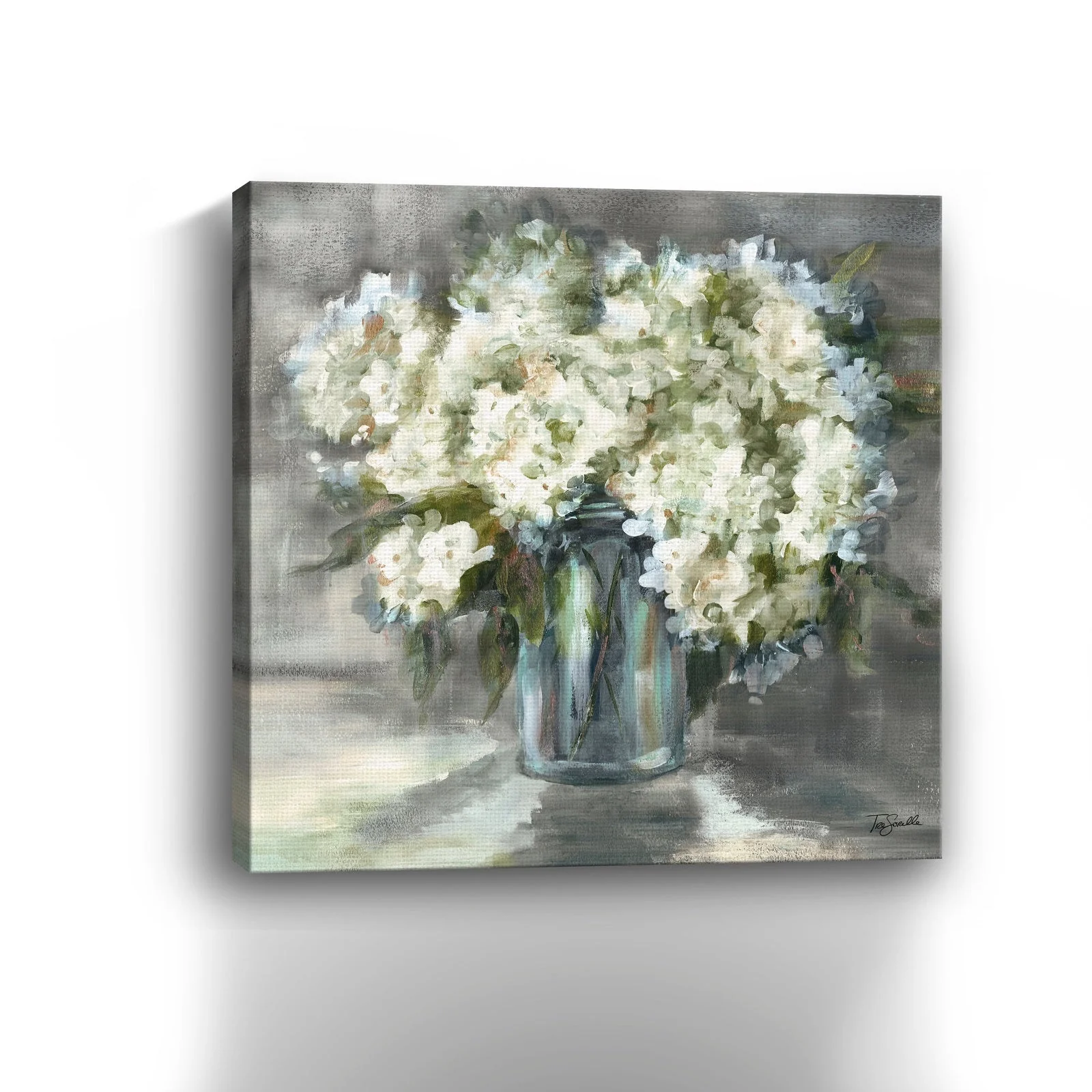 White And Taupe Hydrangeas Still Life Canvas Giclee Wall Art