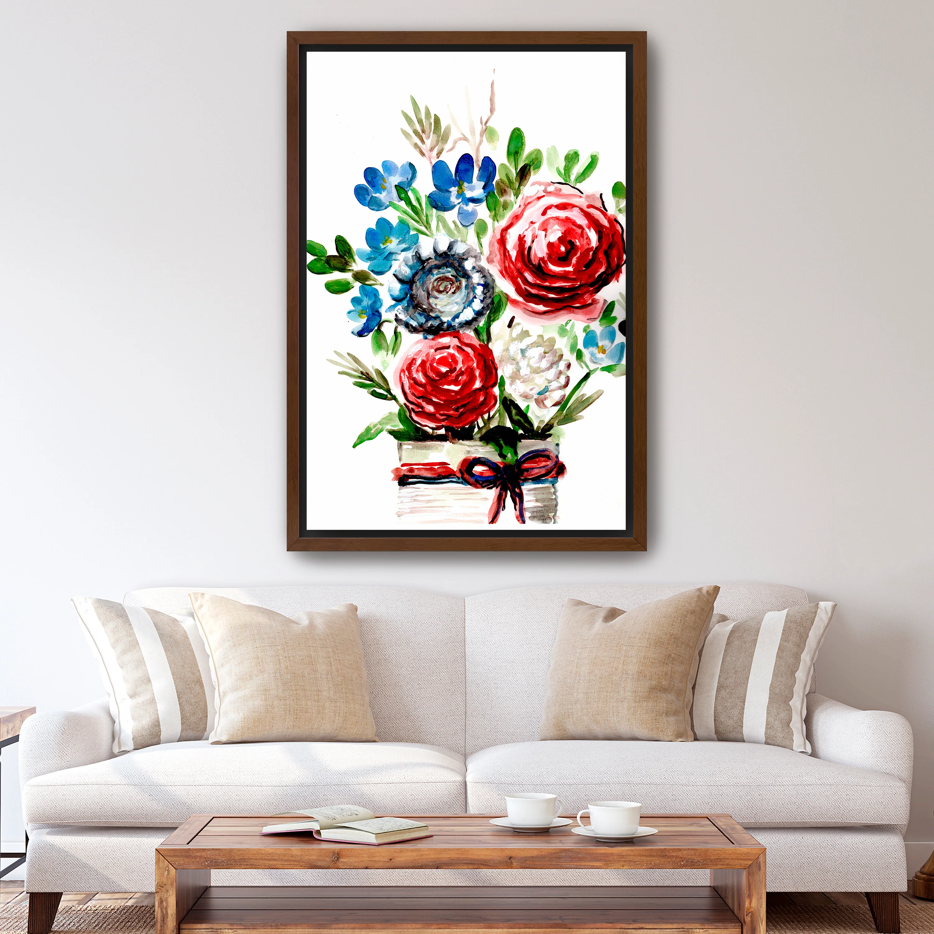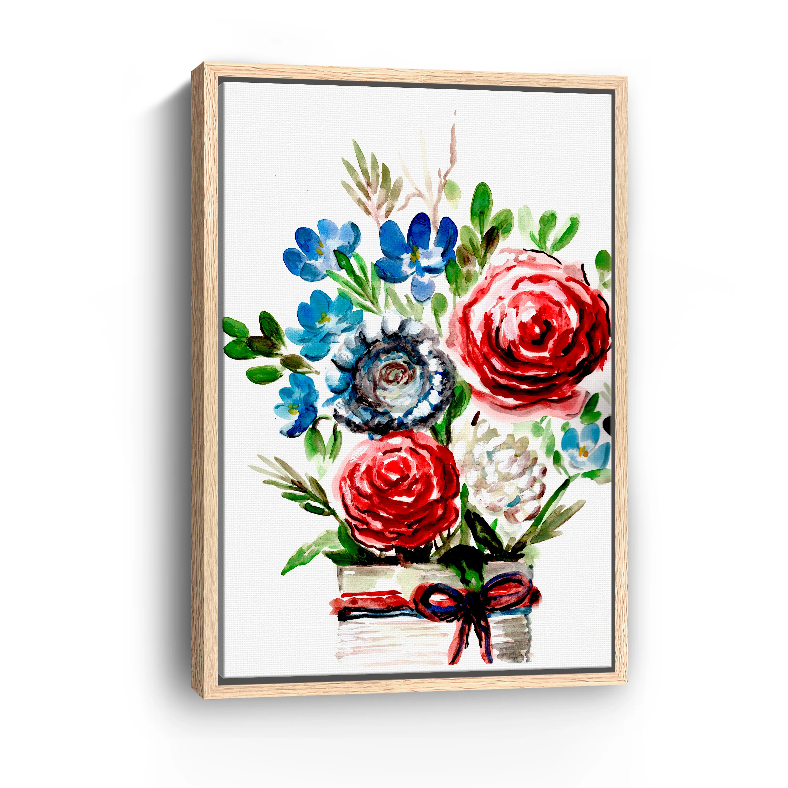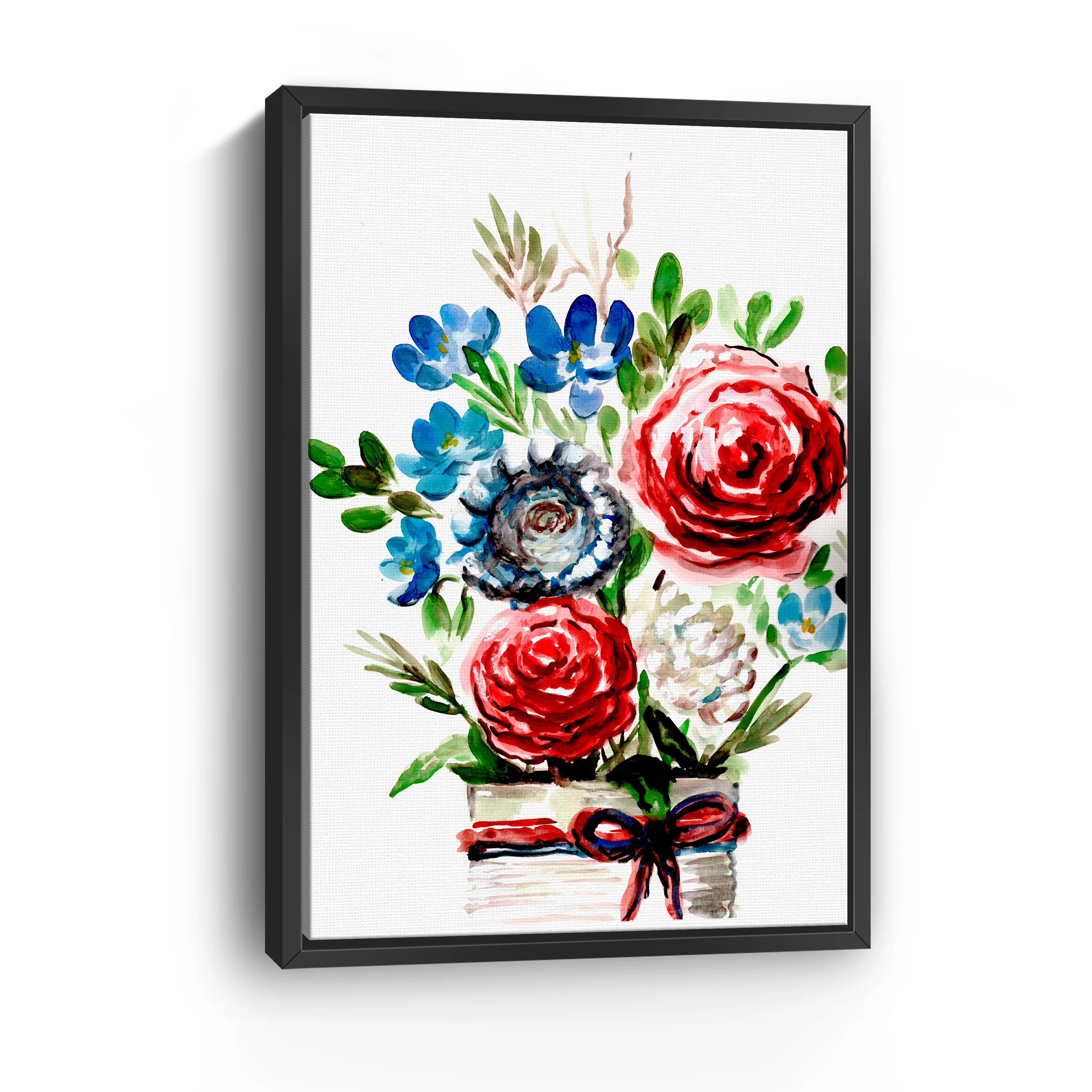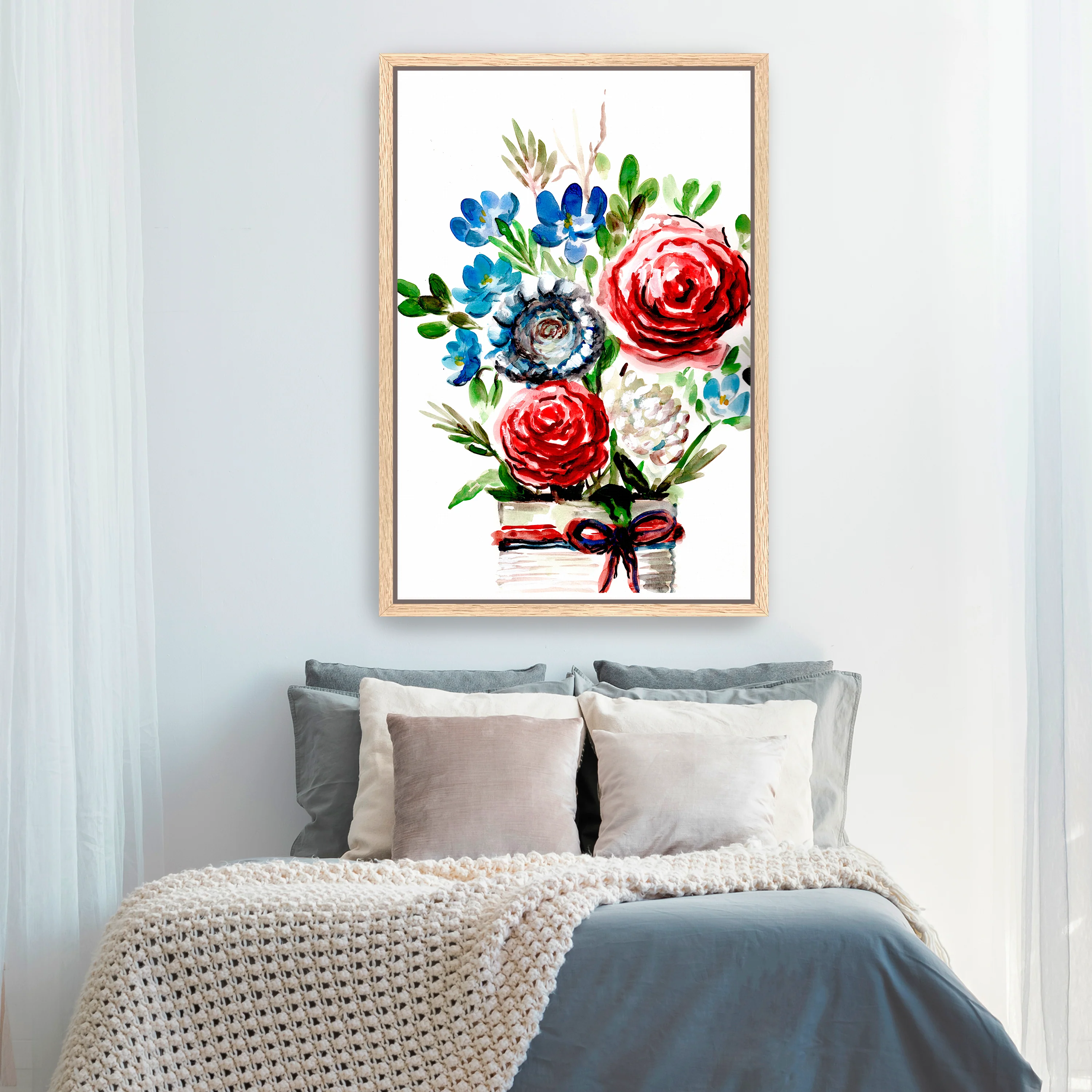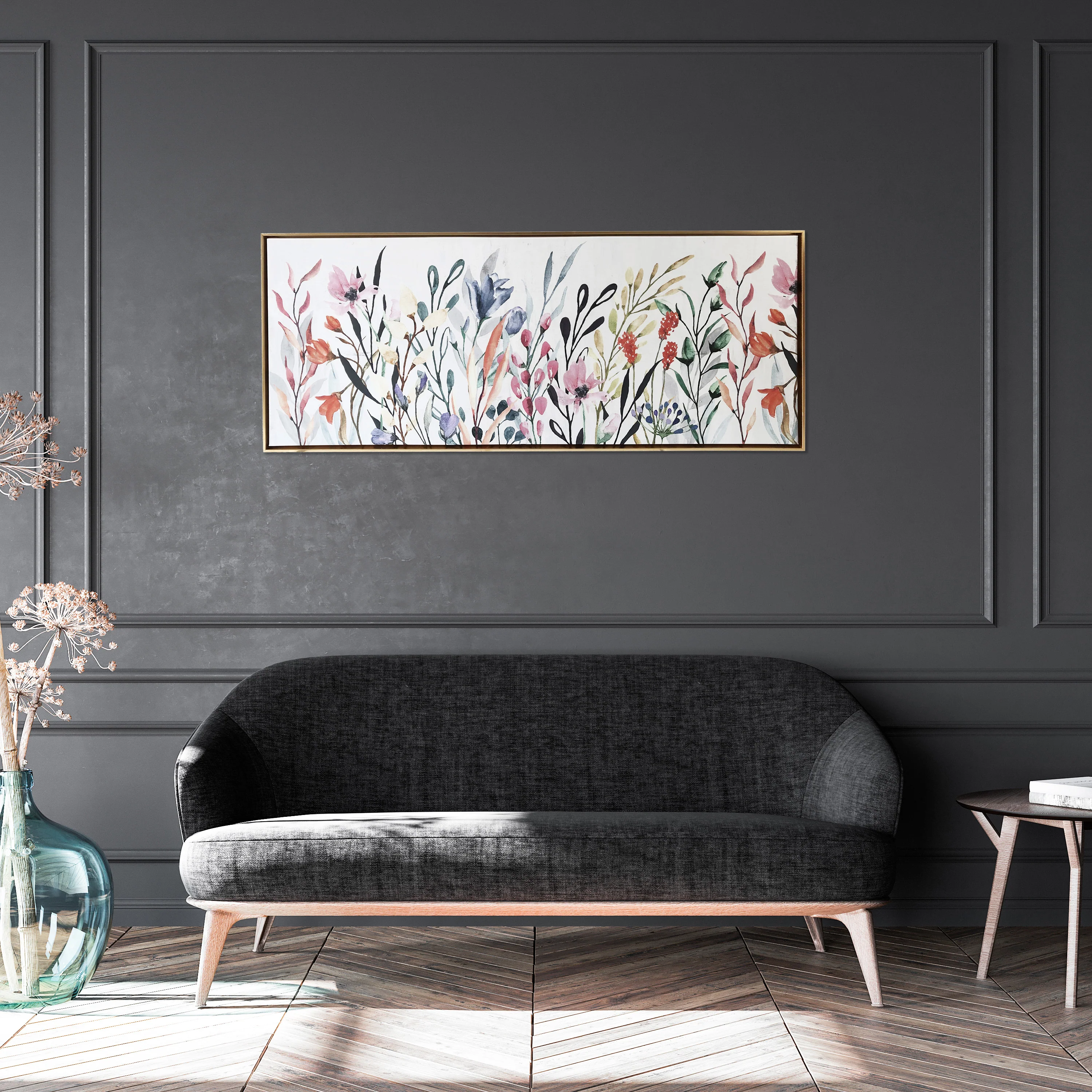 Colorful Wildflowers Watercolor Print on Gold Floating Framed Canvas Wall Art, 19x45