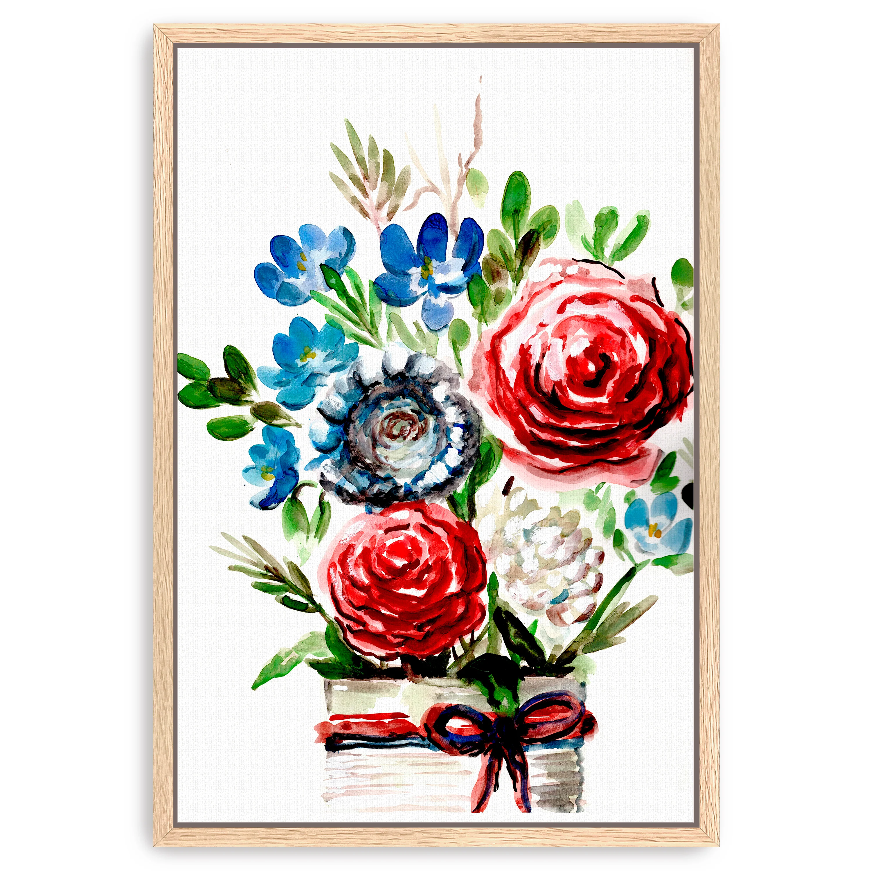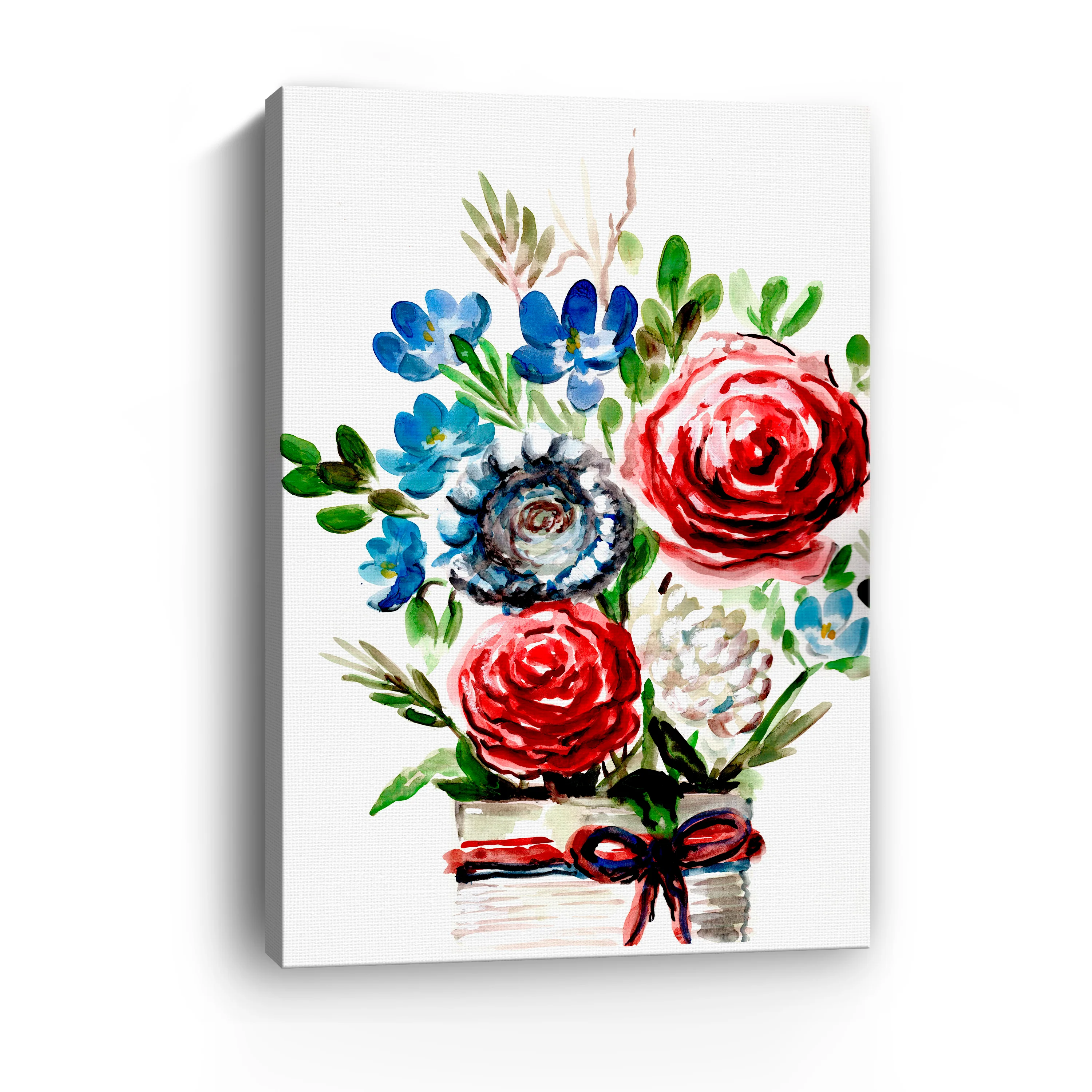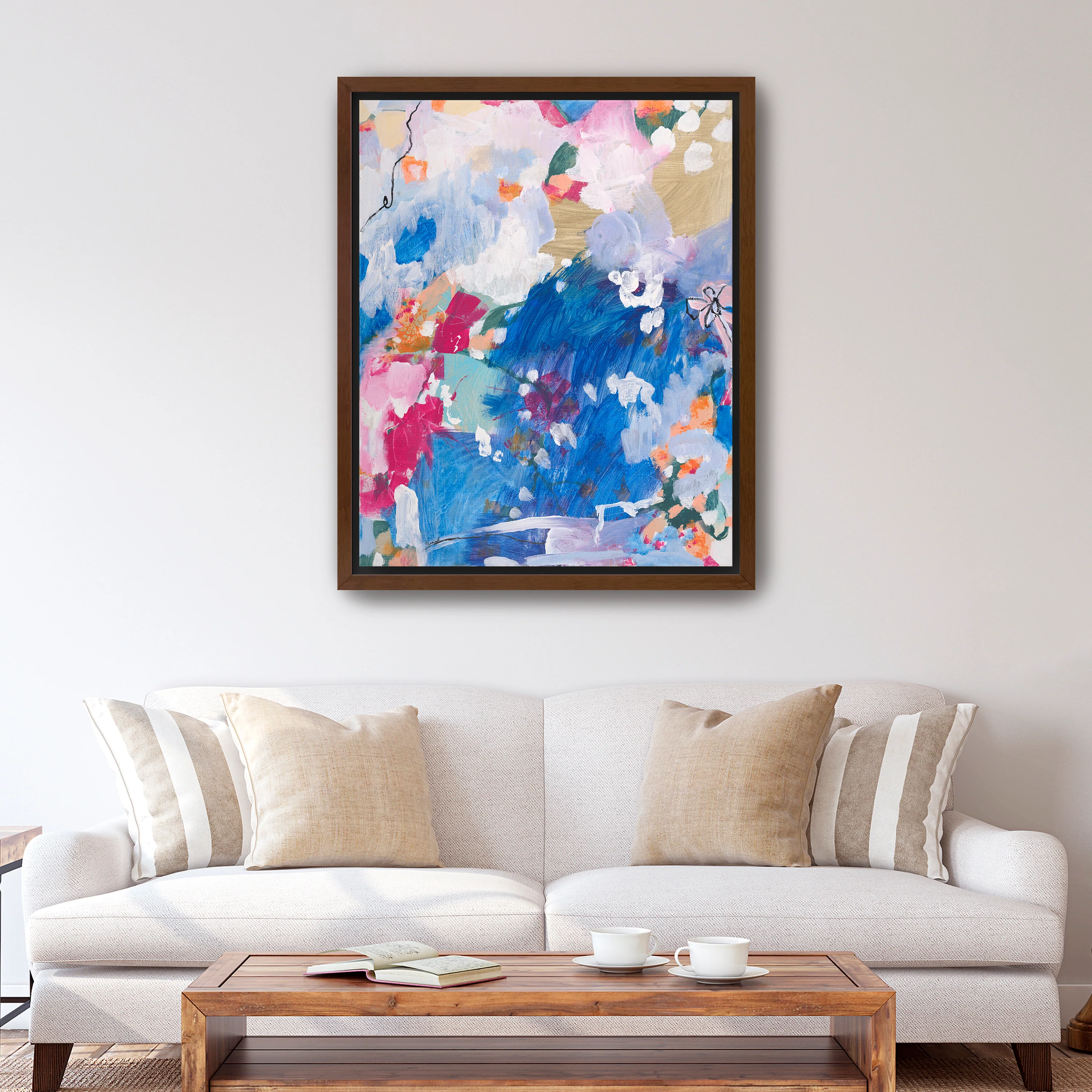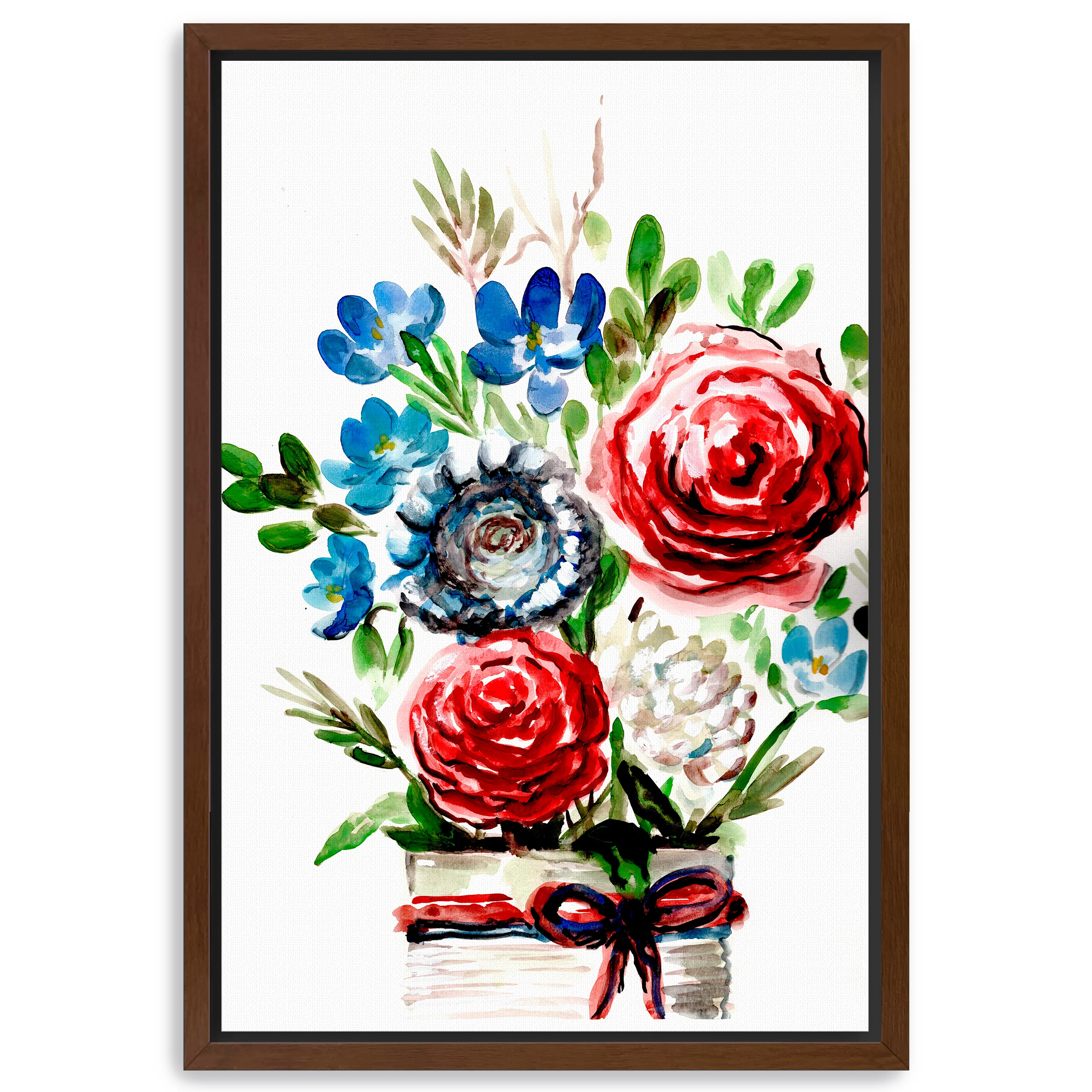 Colorful Wildflowers Watercolor Print on Gold Floating Framed Canvas Wall Art, 19x45