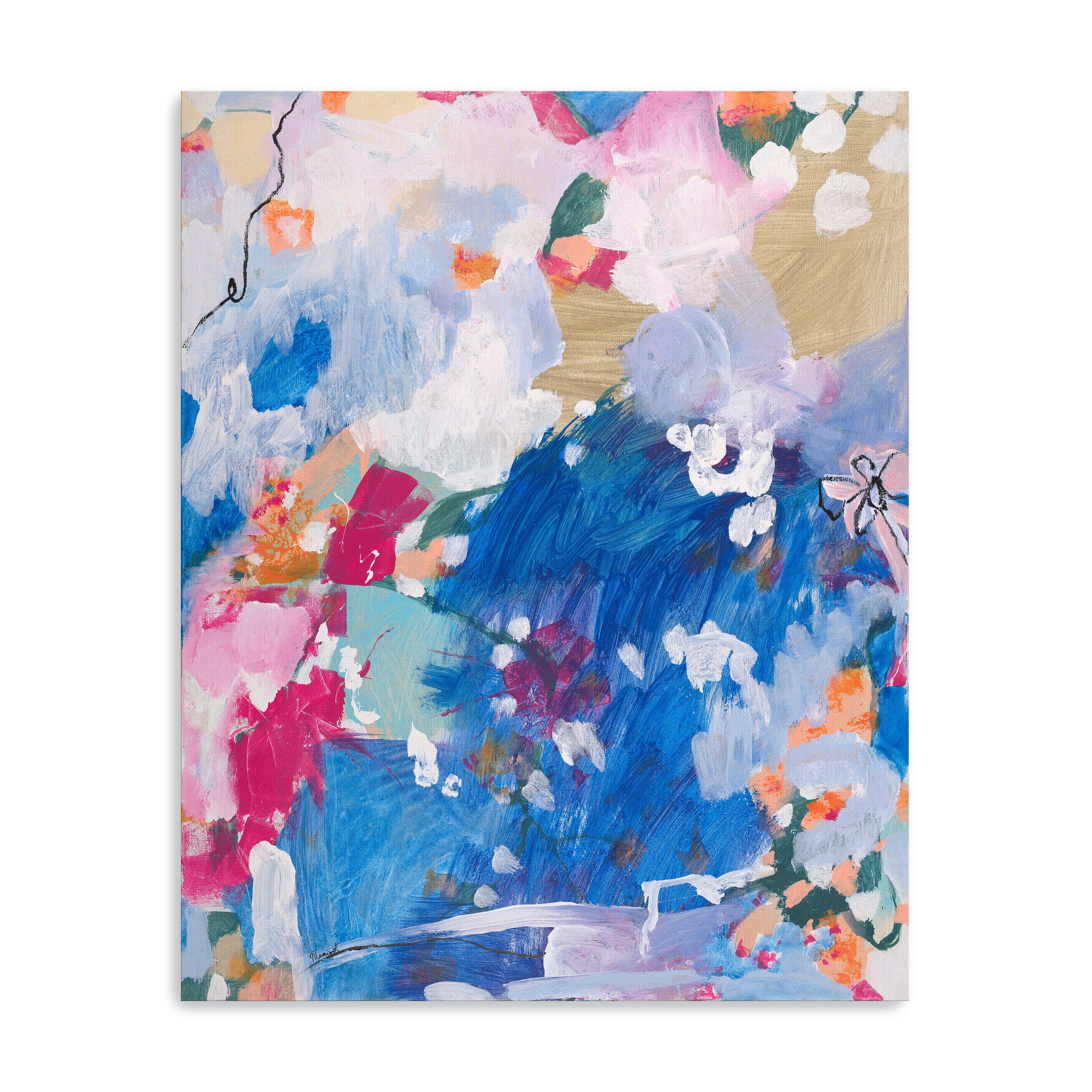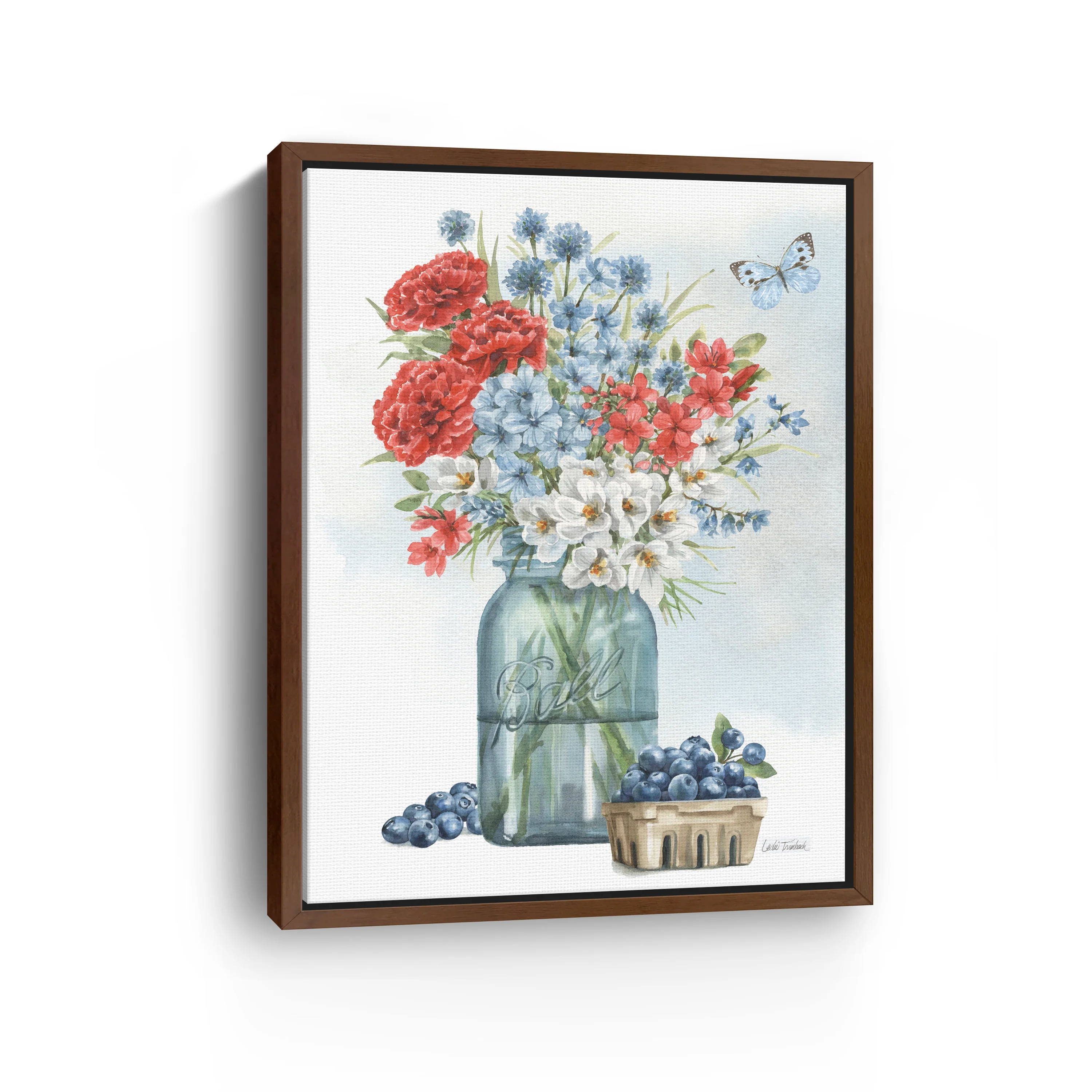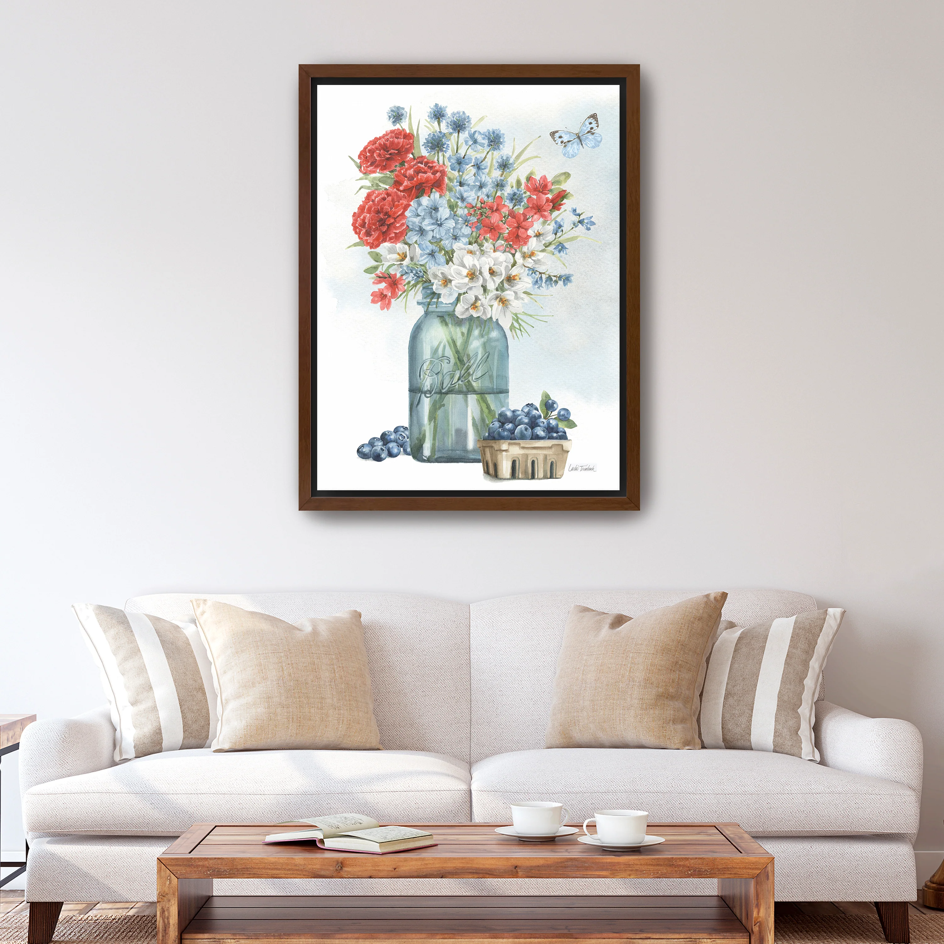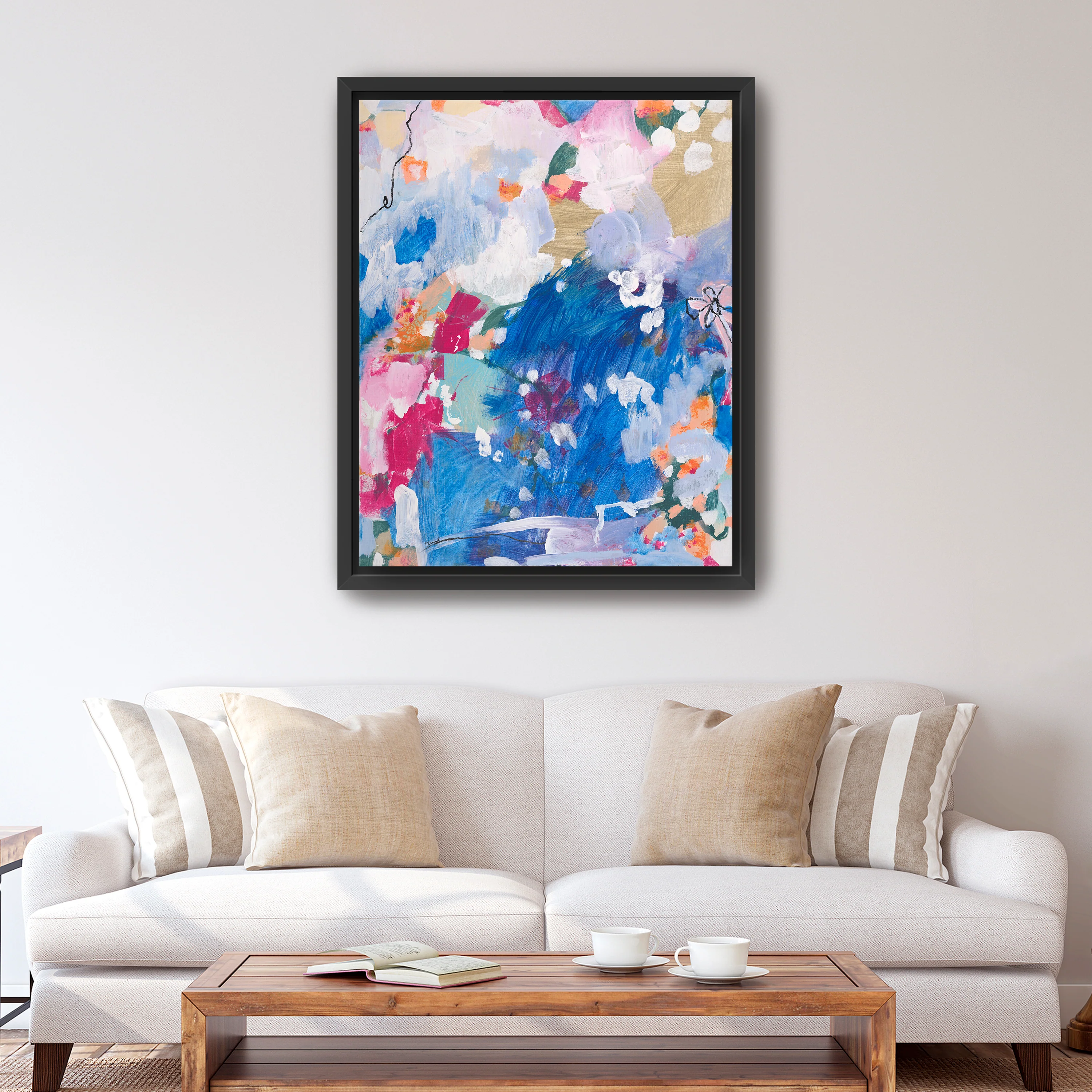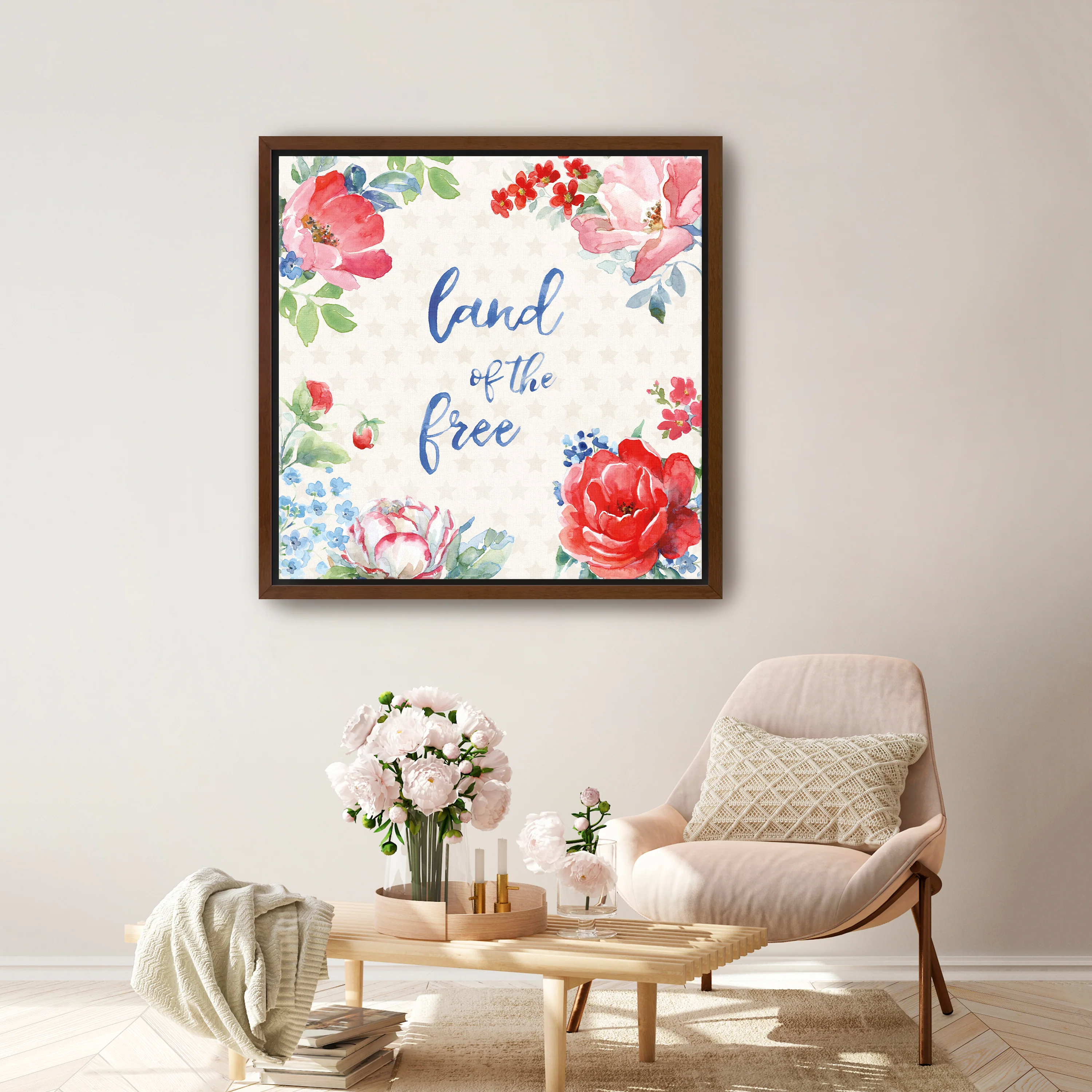 Colorful Wildflowers Watercolor Print on Gold Floating Framed Canvas Wall Art, 19x45