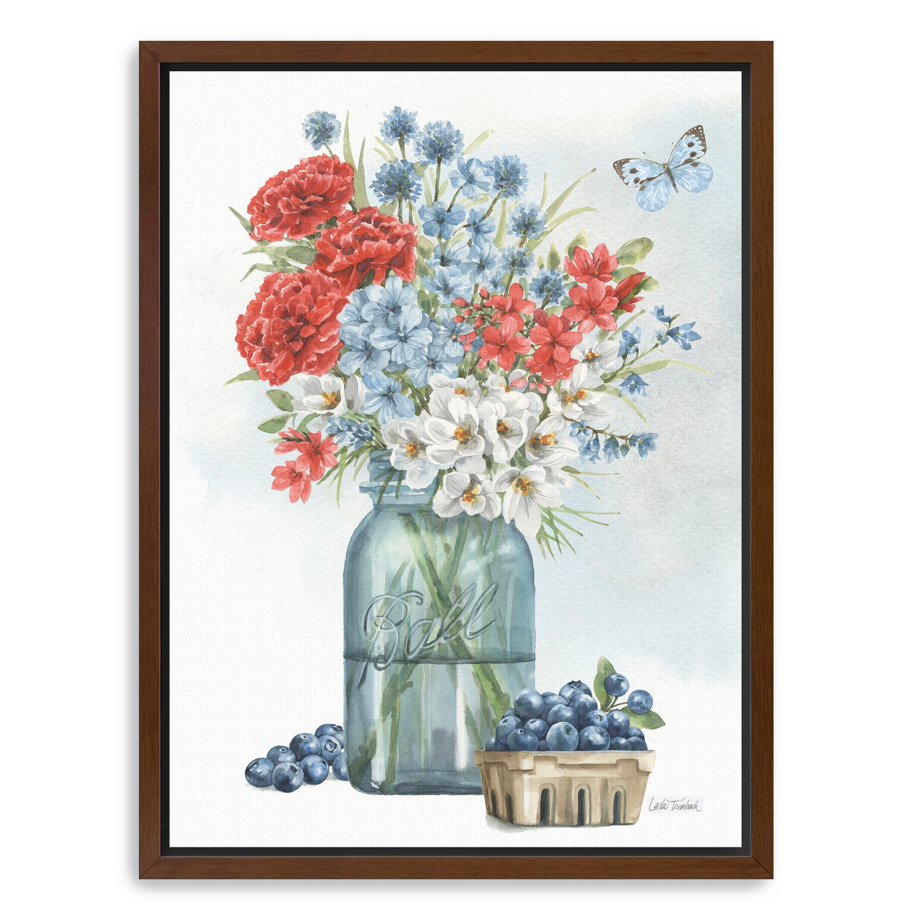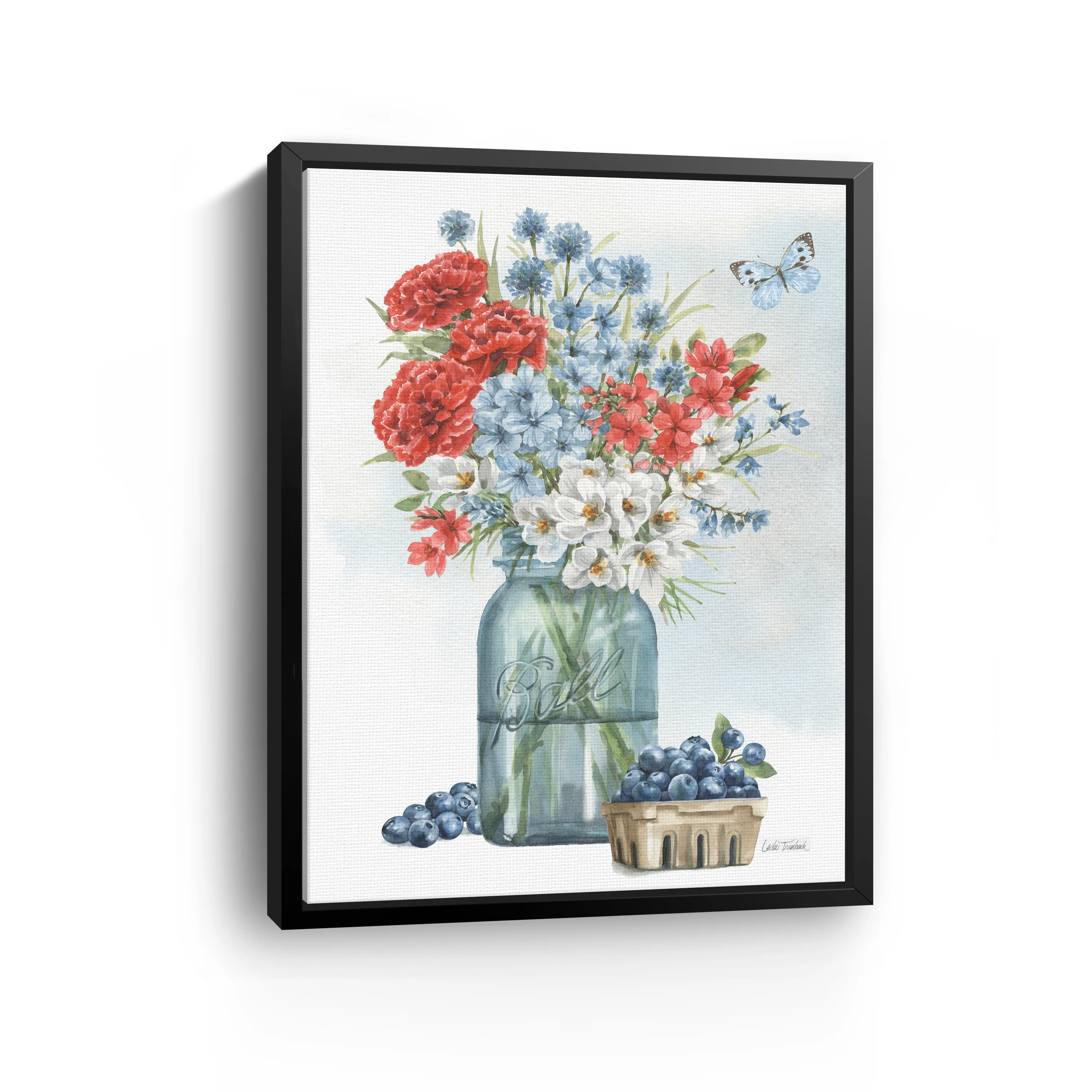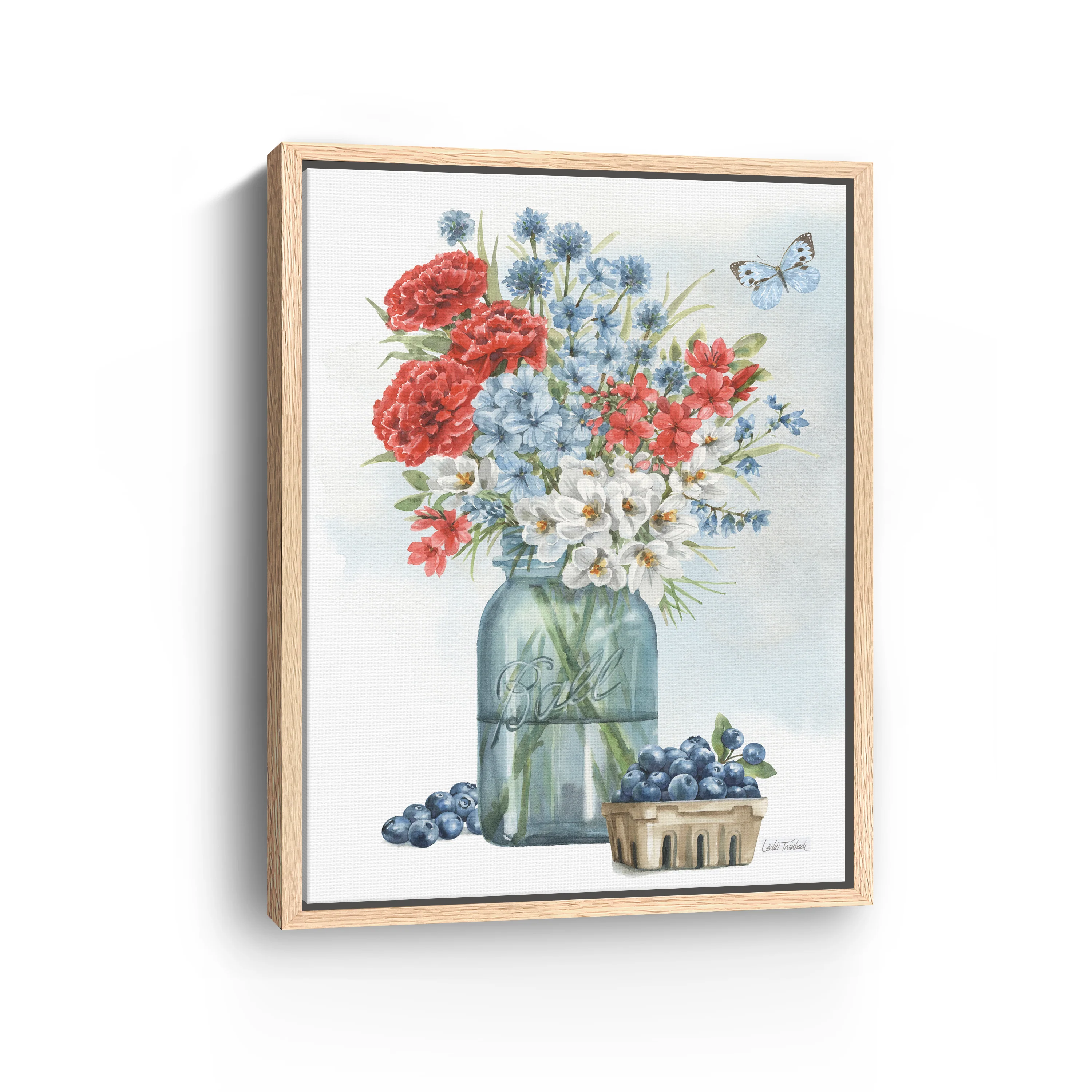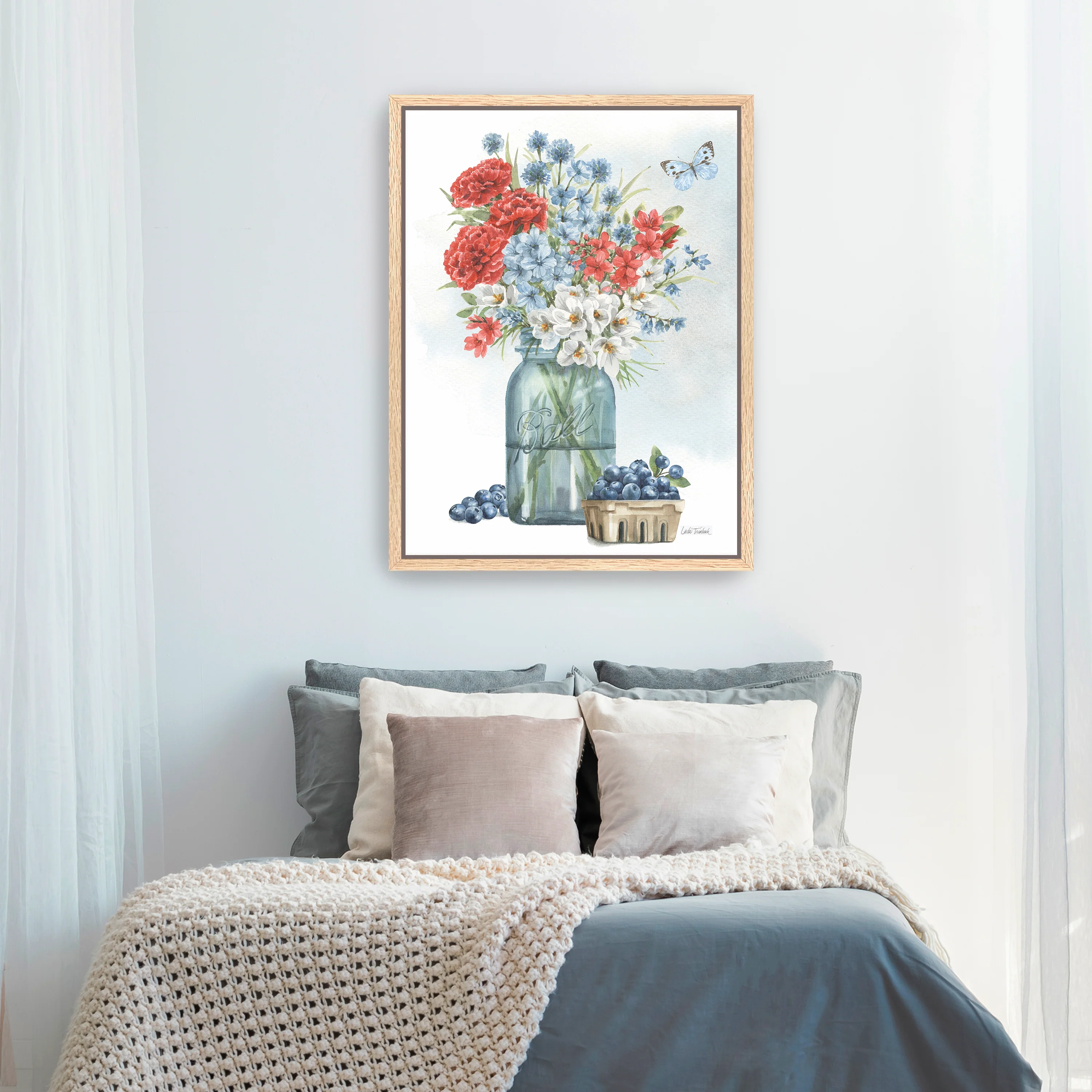Colorful Wildflowers Watercolor Print on Gold Floating Framed Canvas Wall Art, 19x45