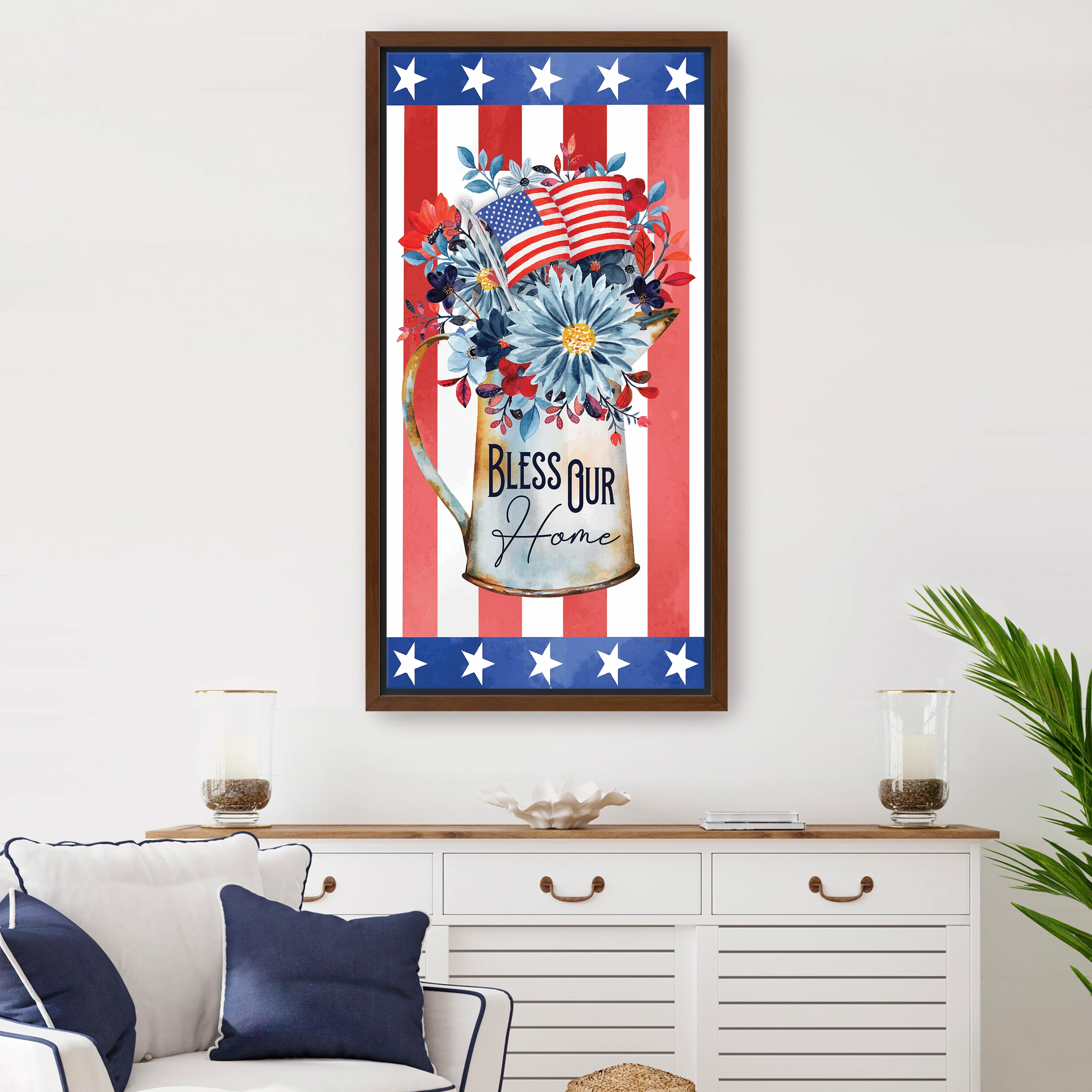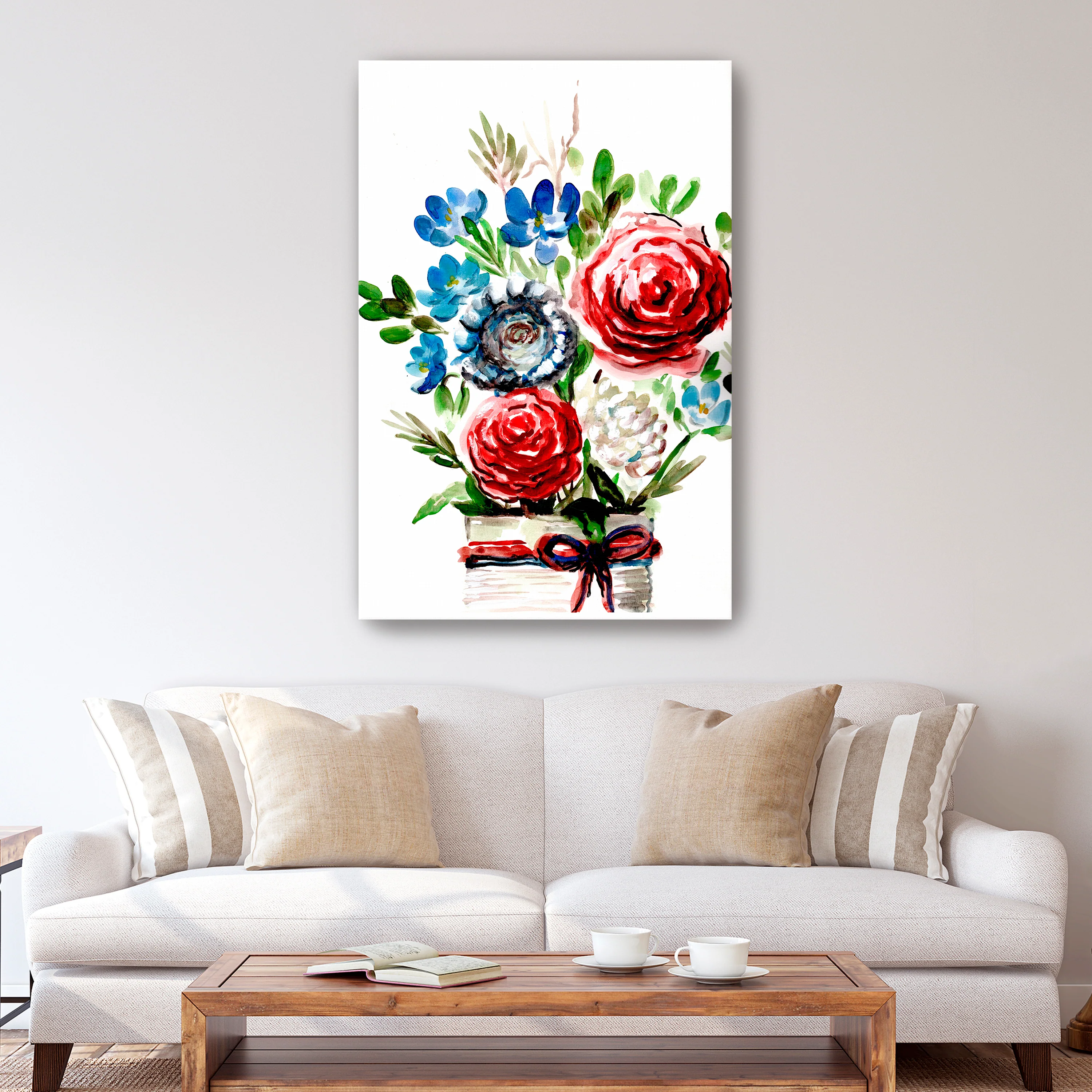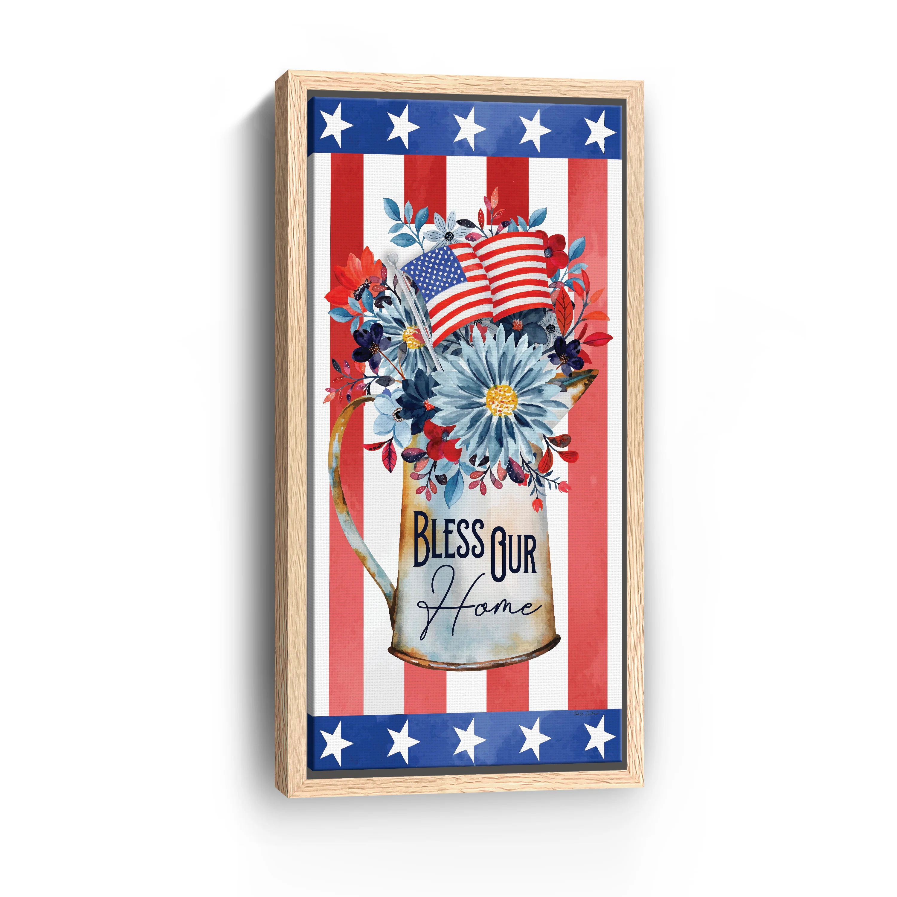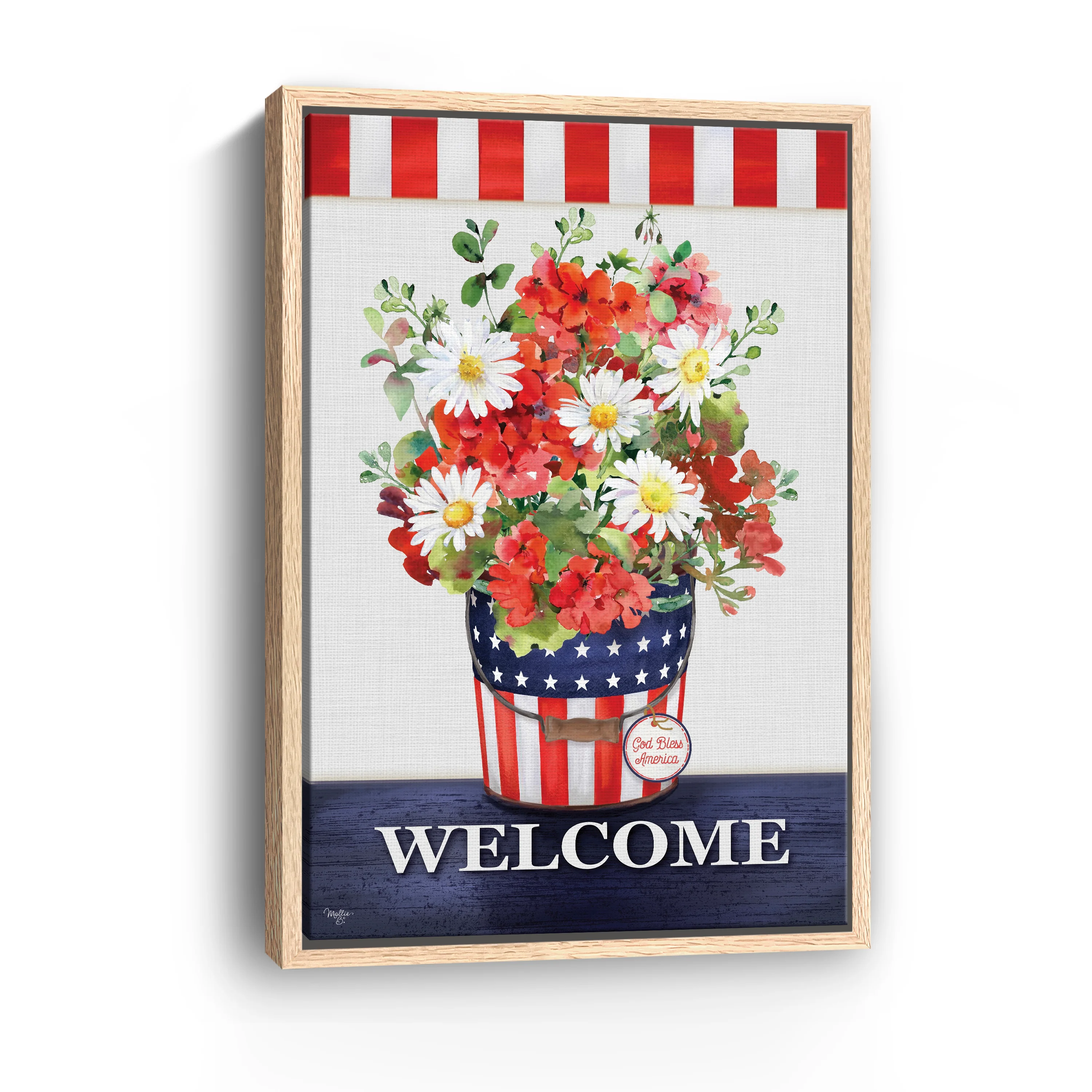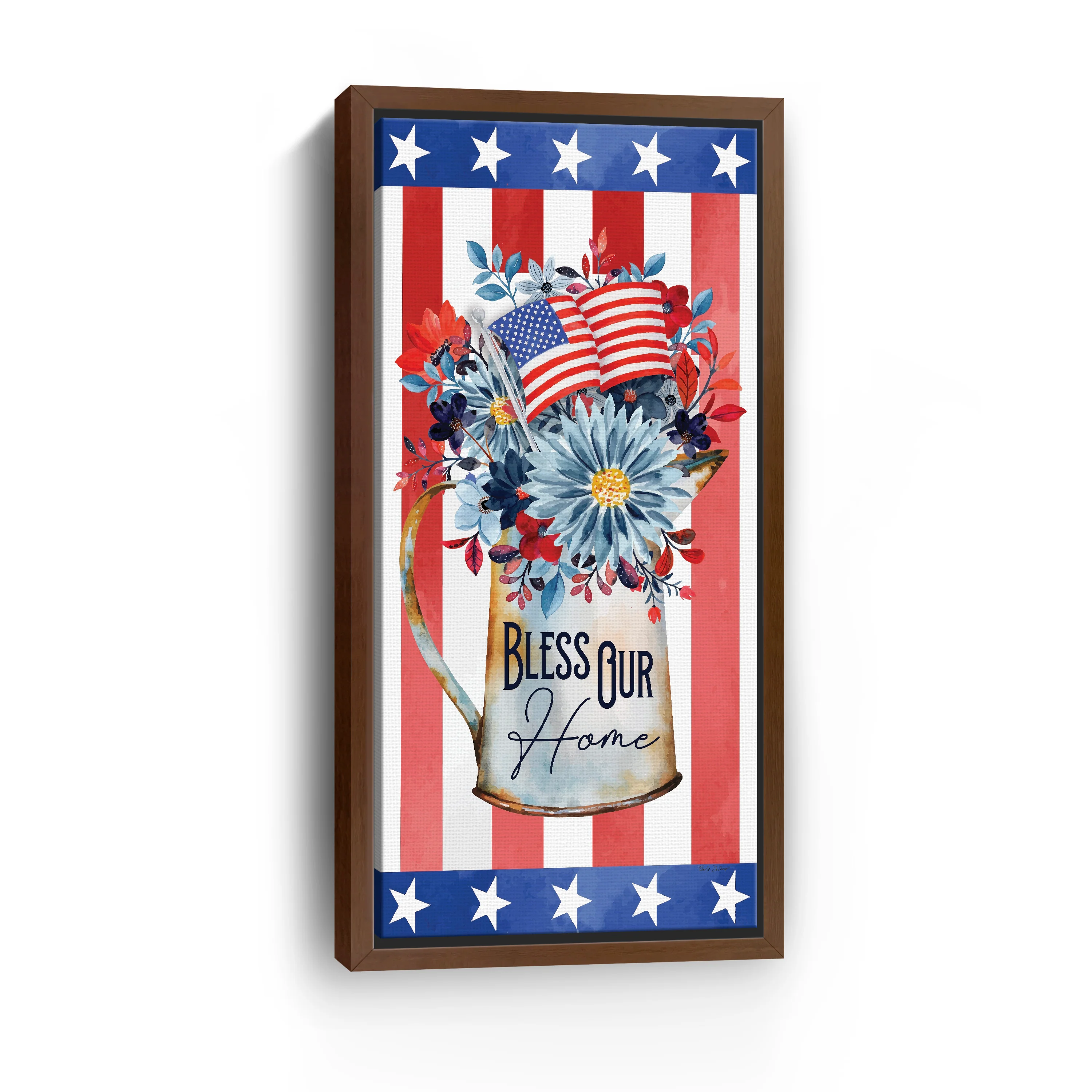 Colorful Wildflowers Watercolor Print on Gold Floating Framed Canvas Wall Art, 19x45