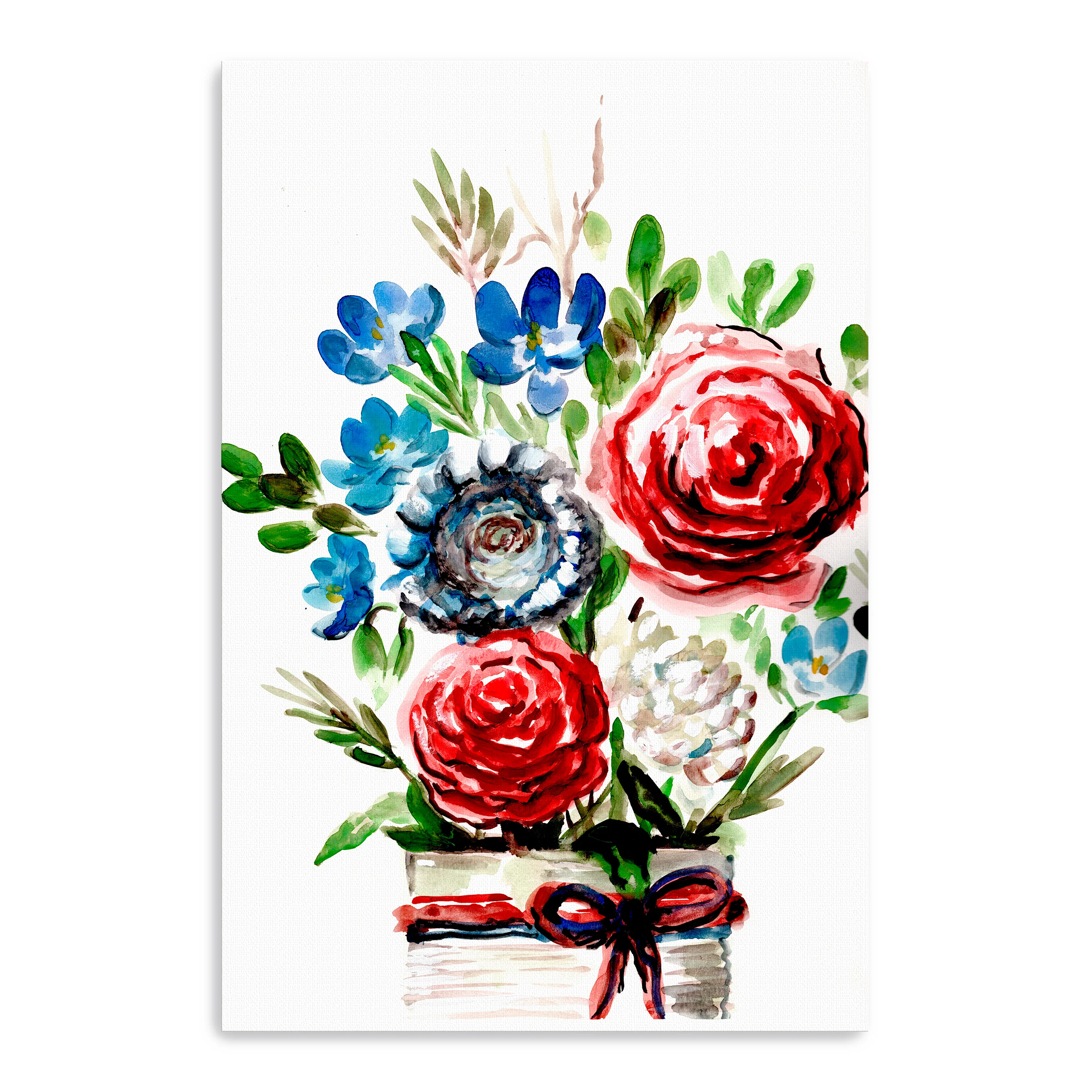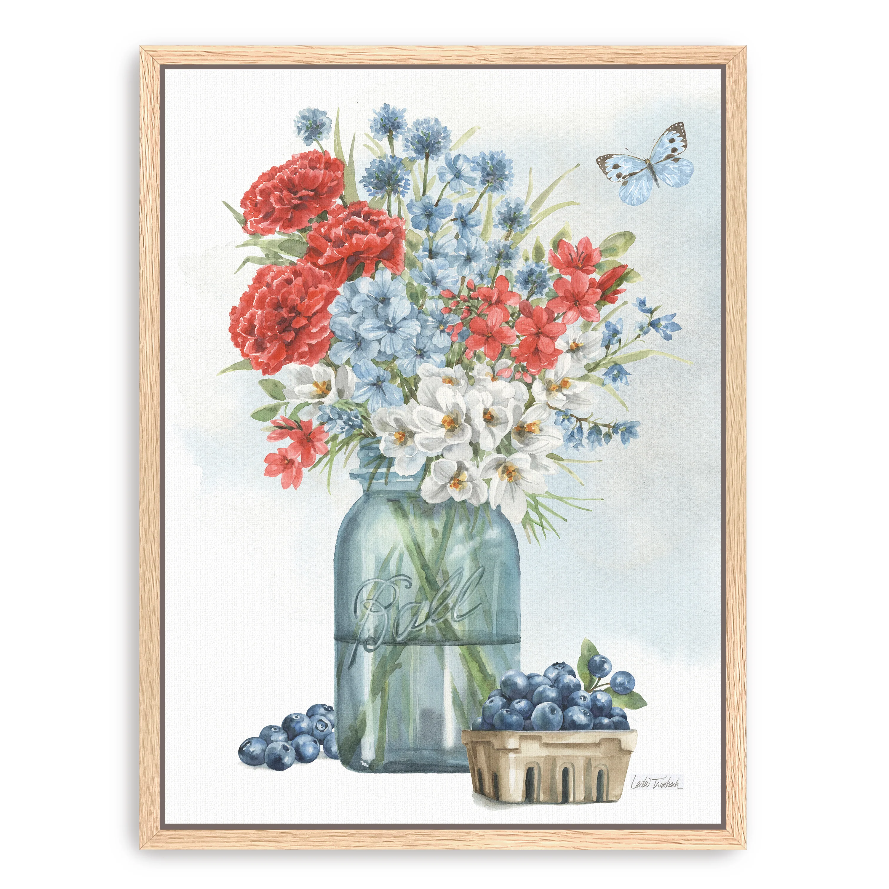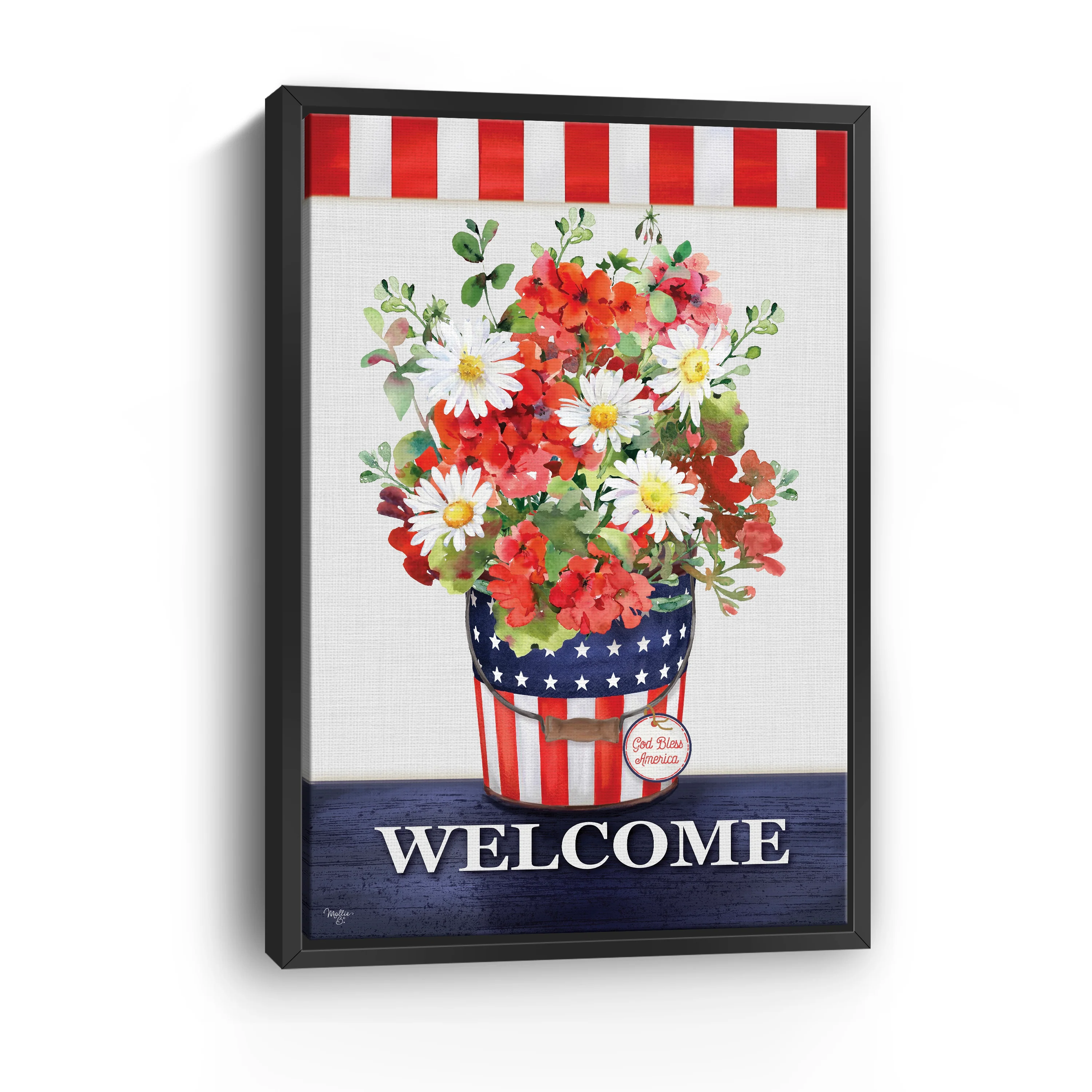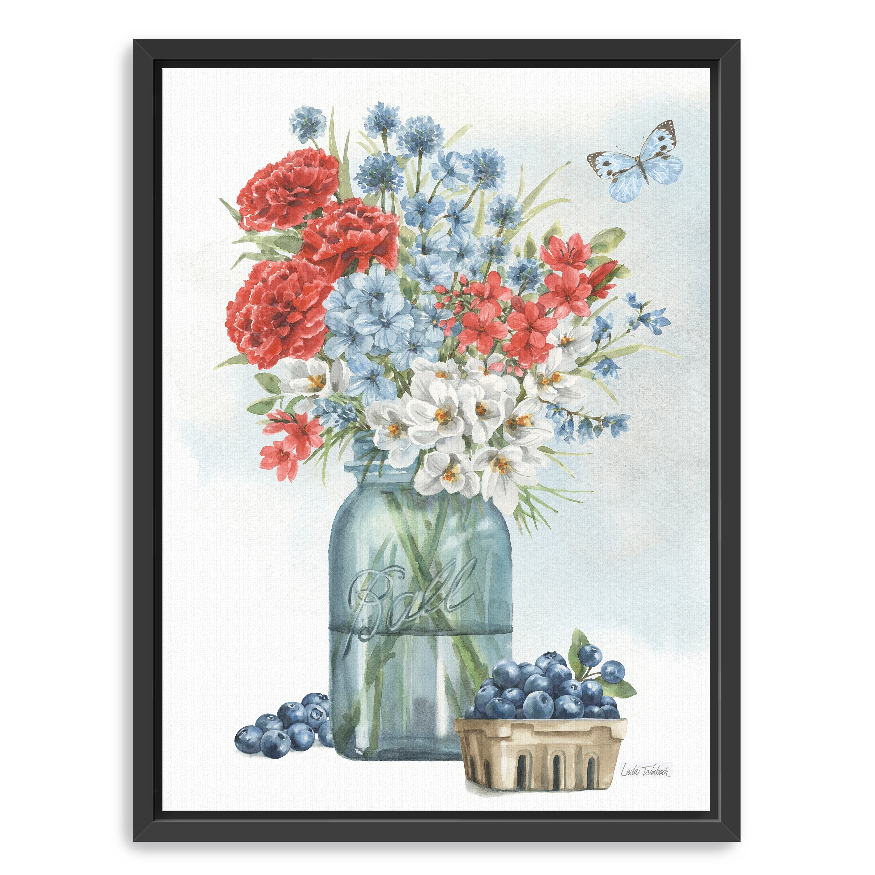 Colorful Wildflowers Watercolor Print on Gold Floating Framed Canvas Wall Art, 19x45