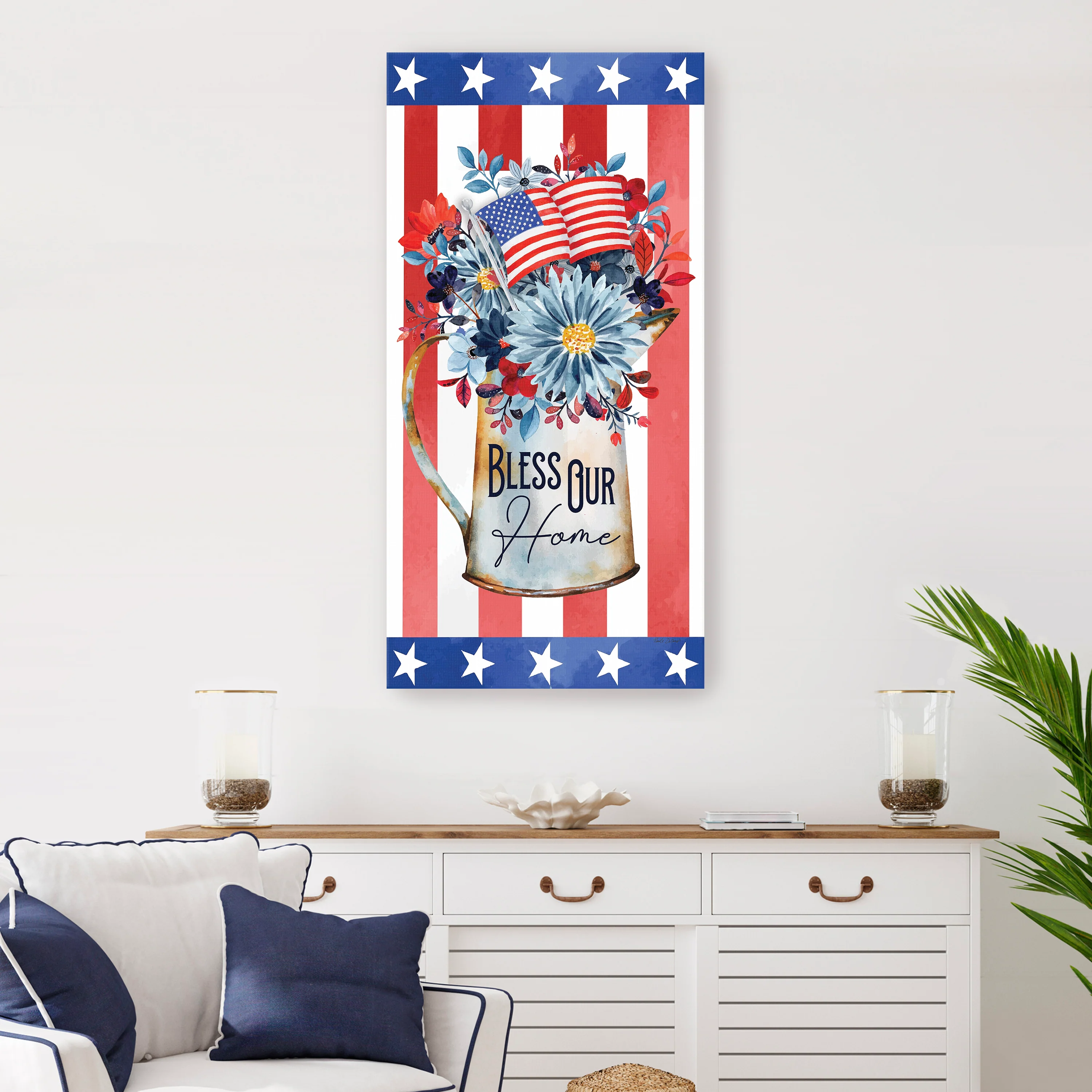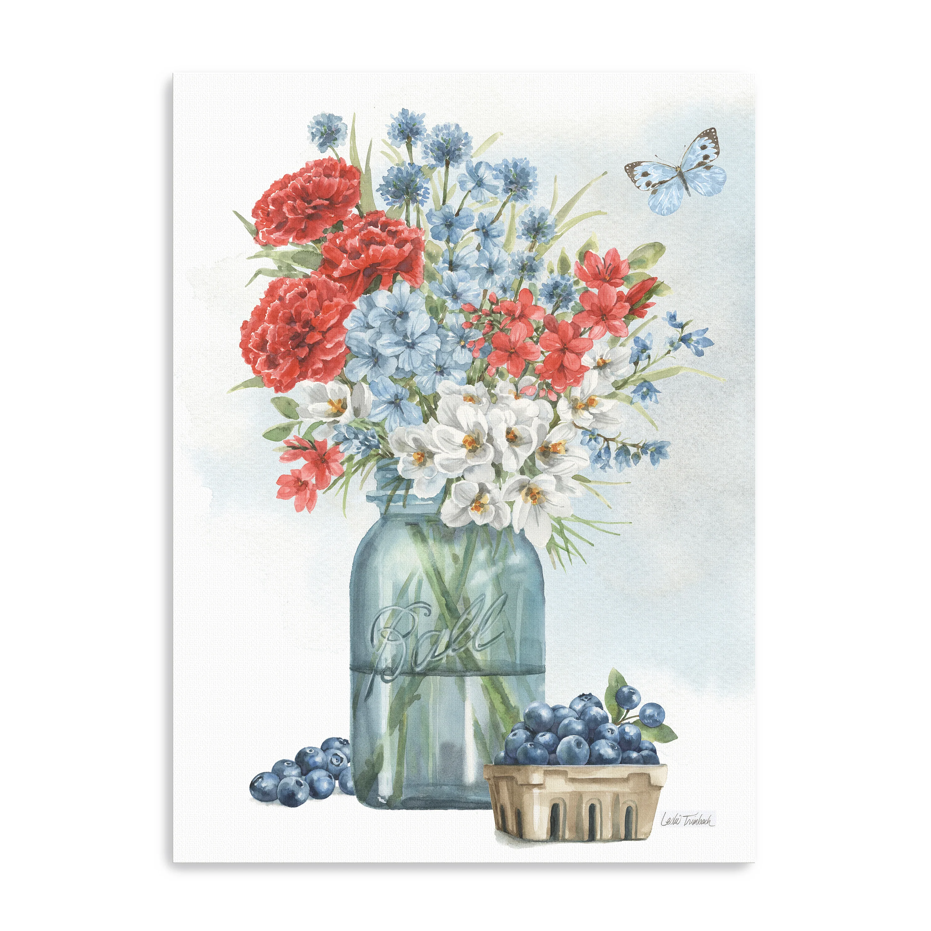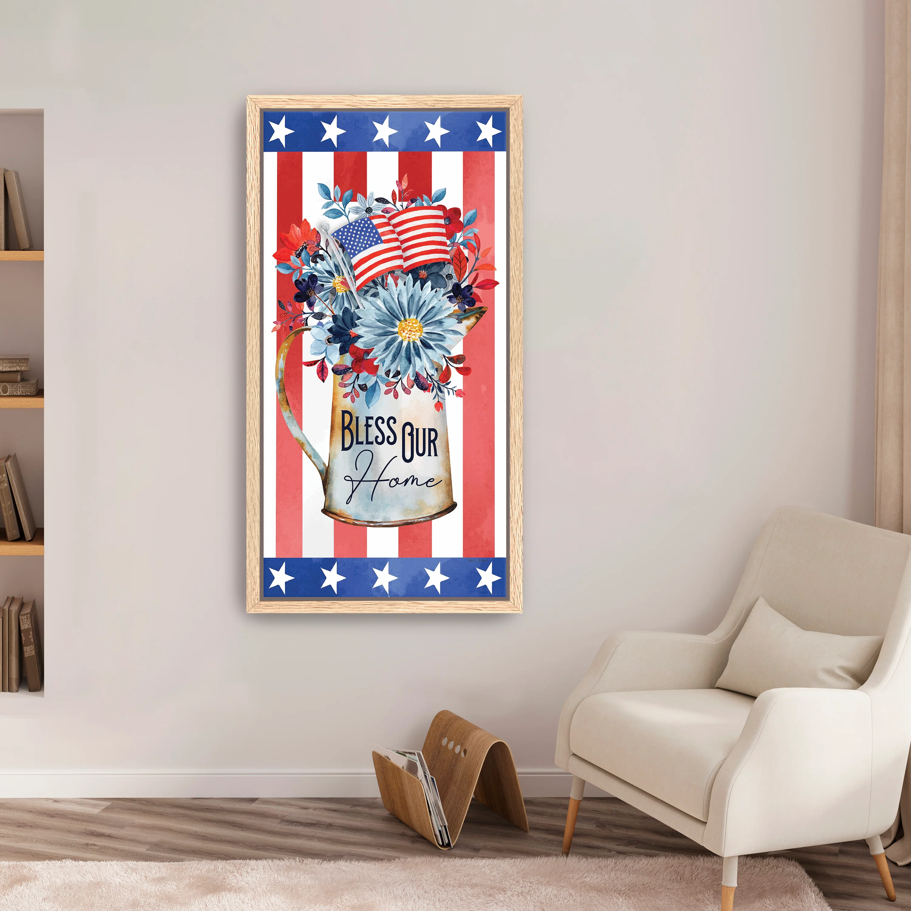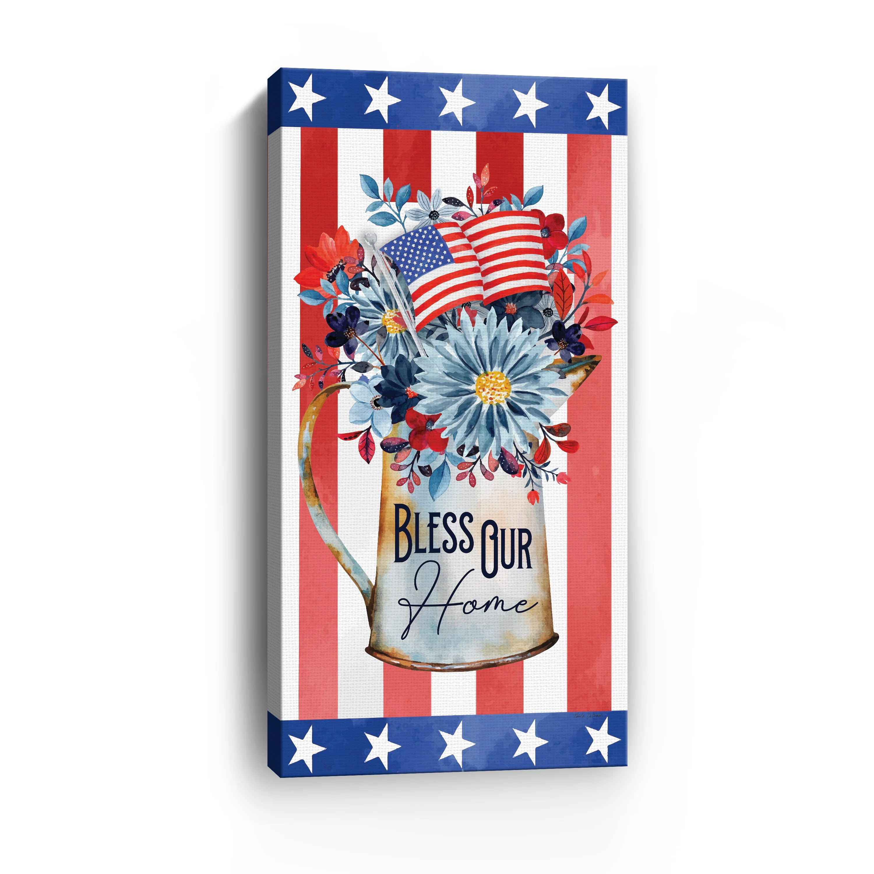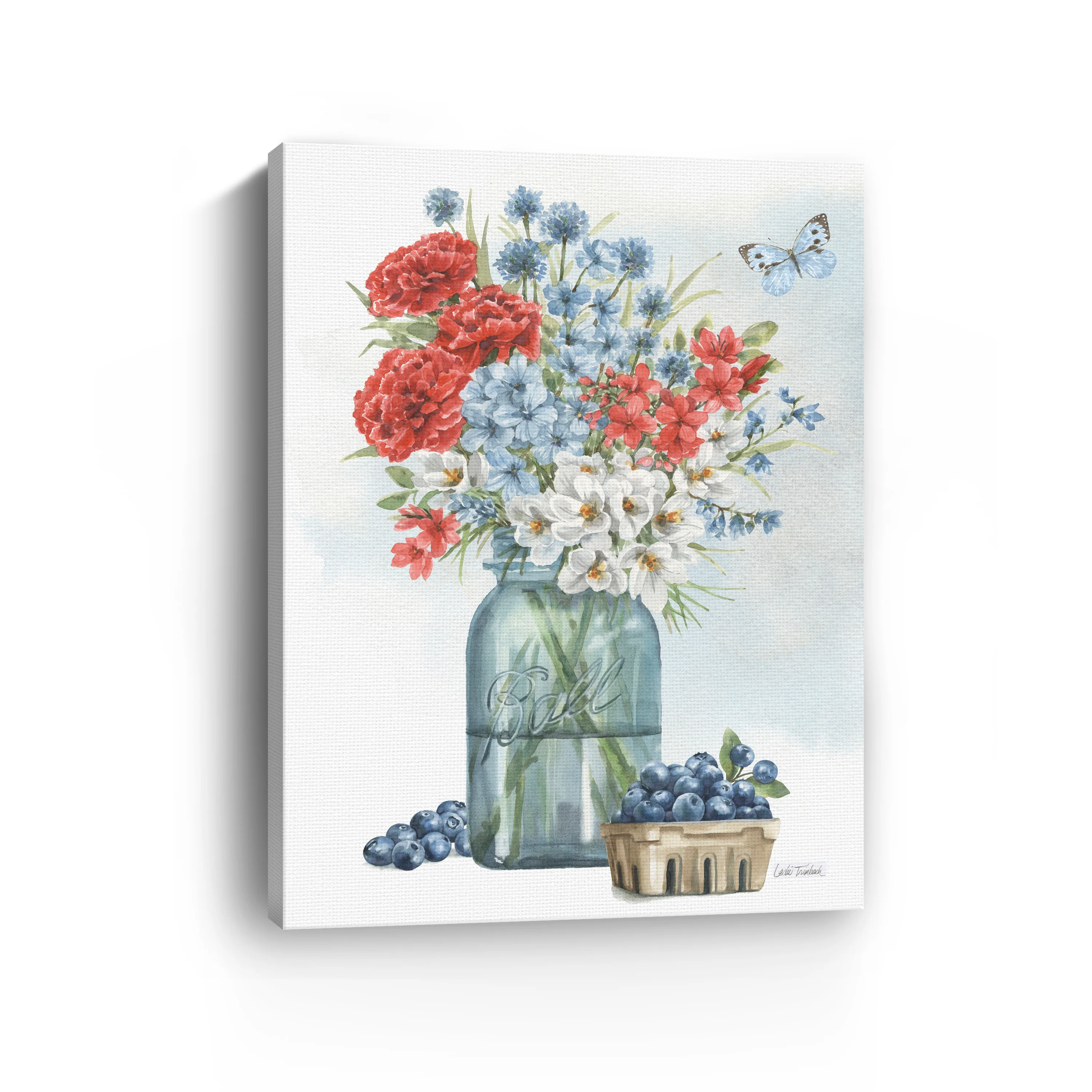 Colorful Wildflowers Watercolor Print on Gold Floating Framed Canvas Wall Art, 19x45