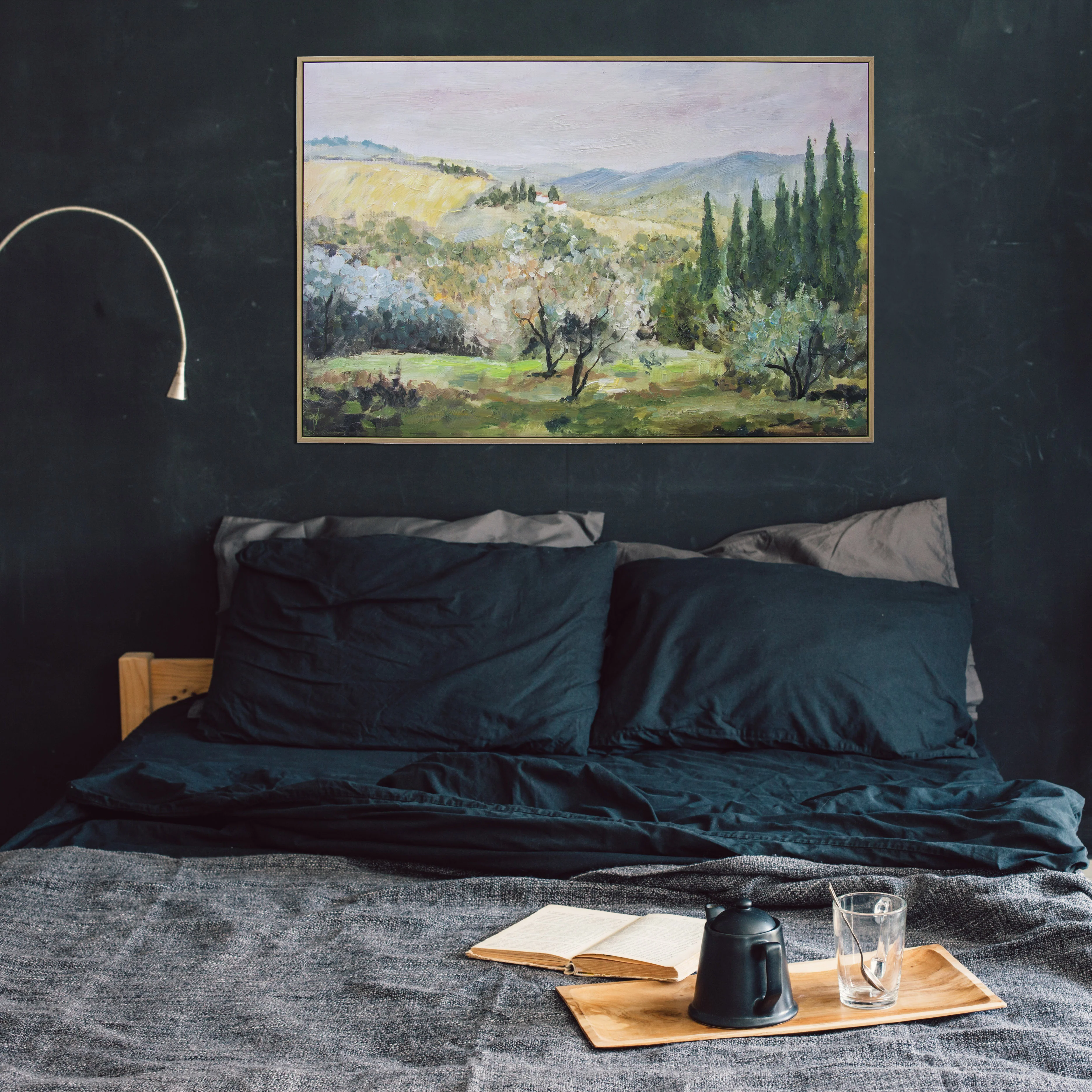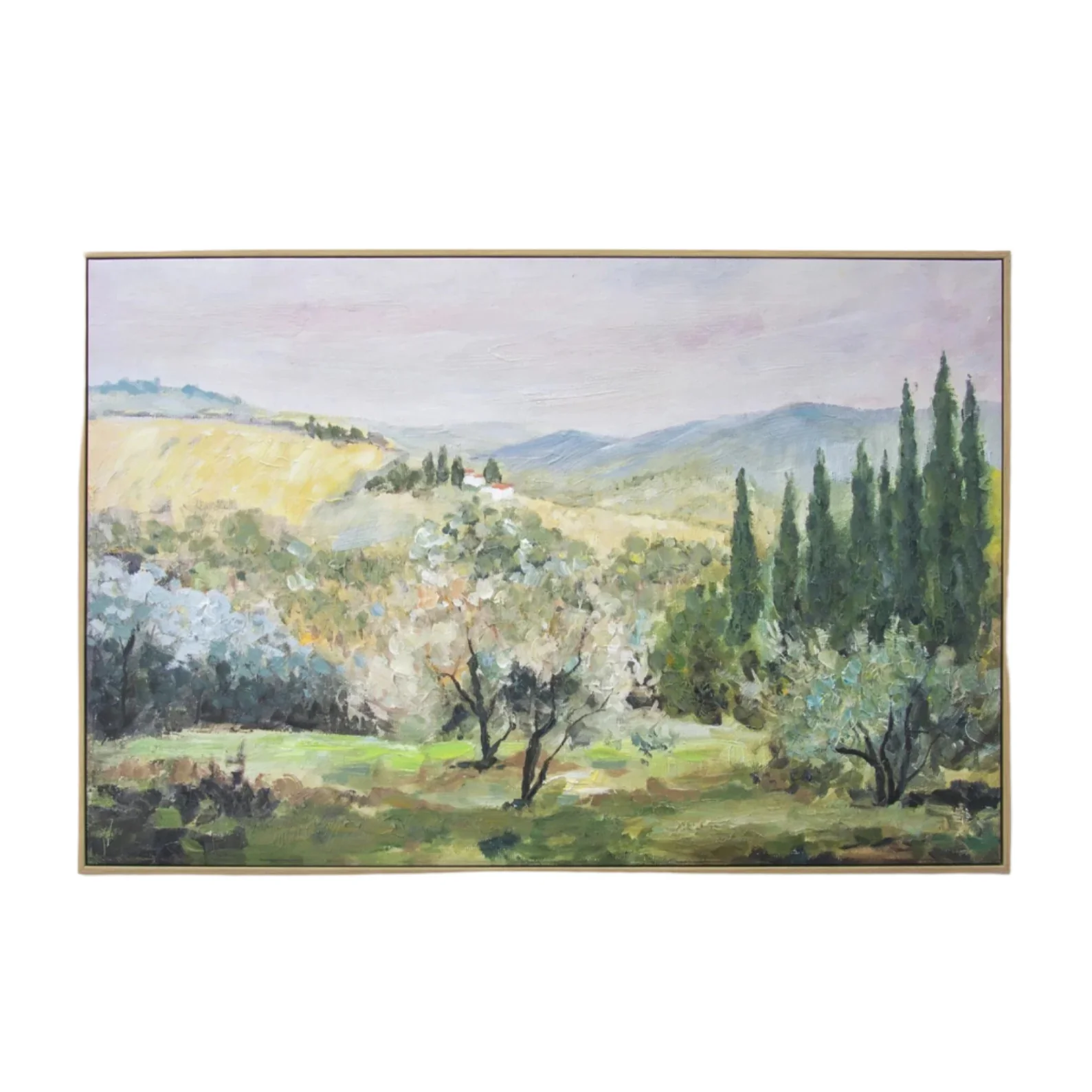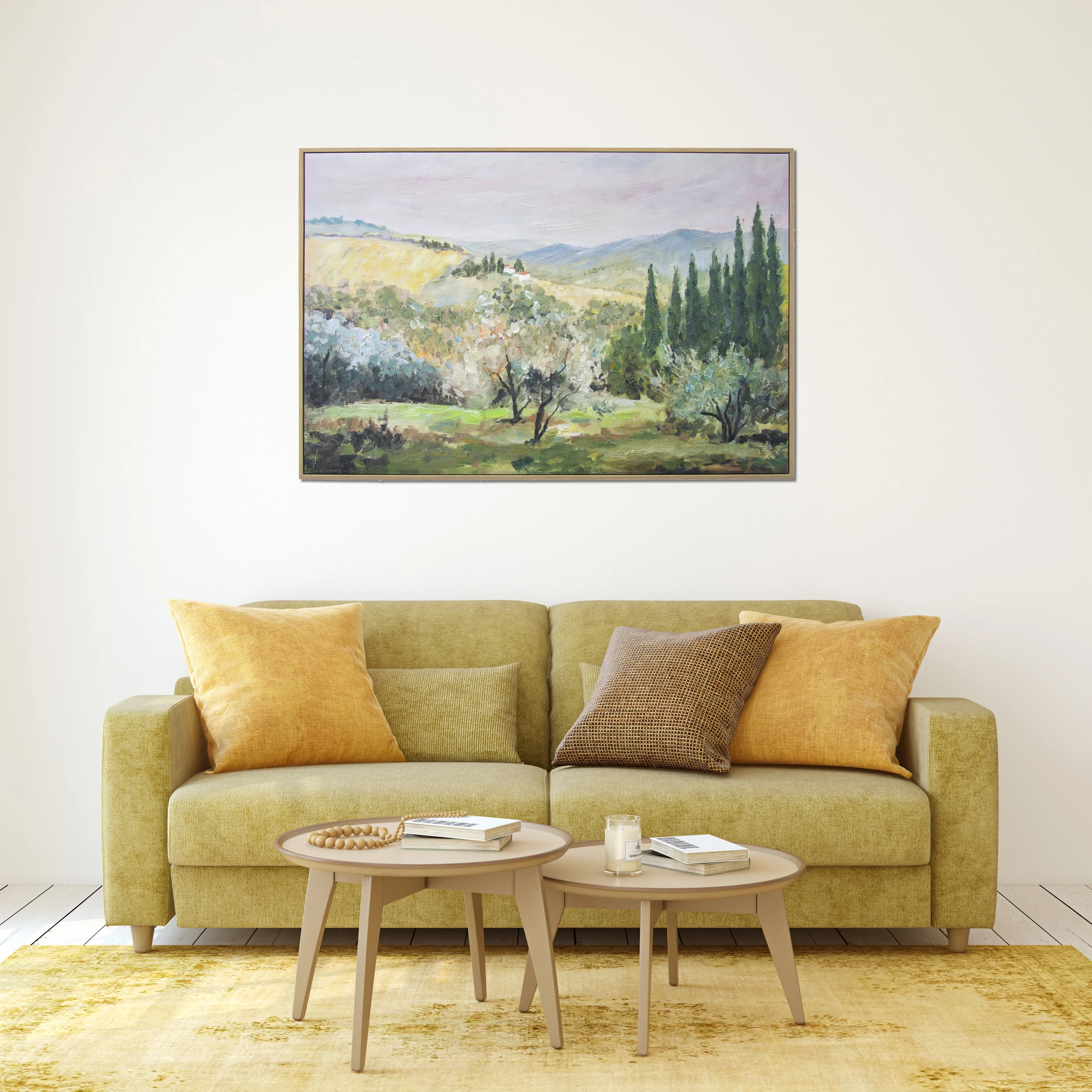 Tuscan Hills Hand Painted Floating Framed Wall Art Print 24x36 Inches