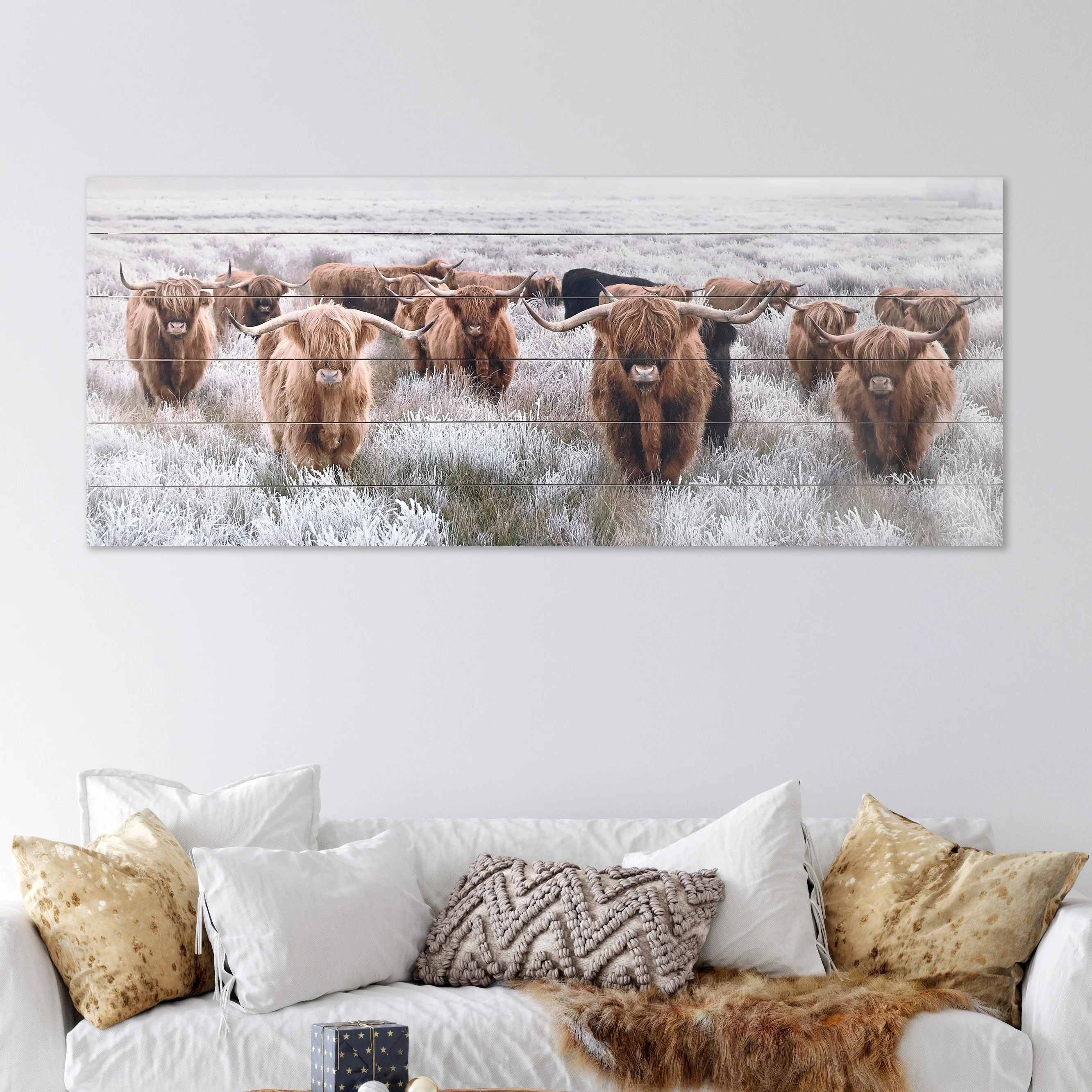 Highland Herd Photograph Print on Planked Wood Wall Art, 19x45