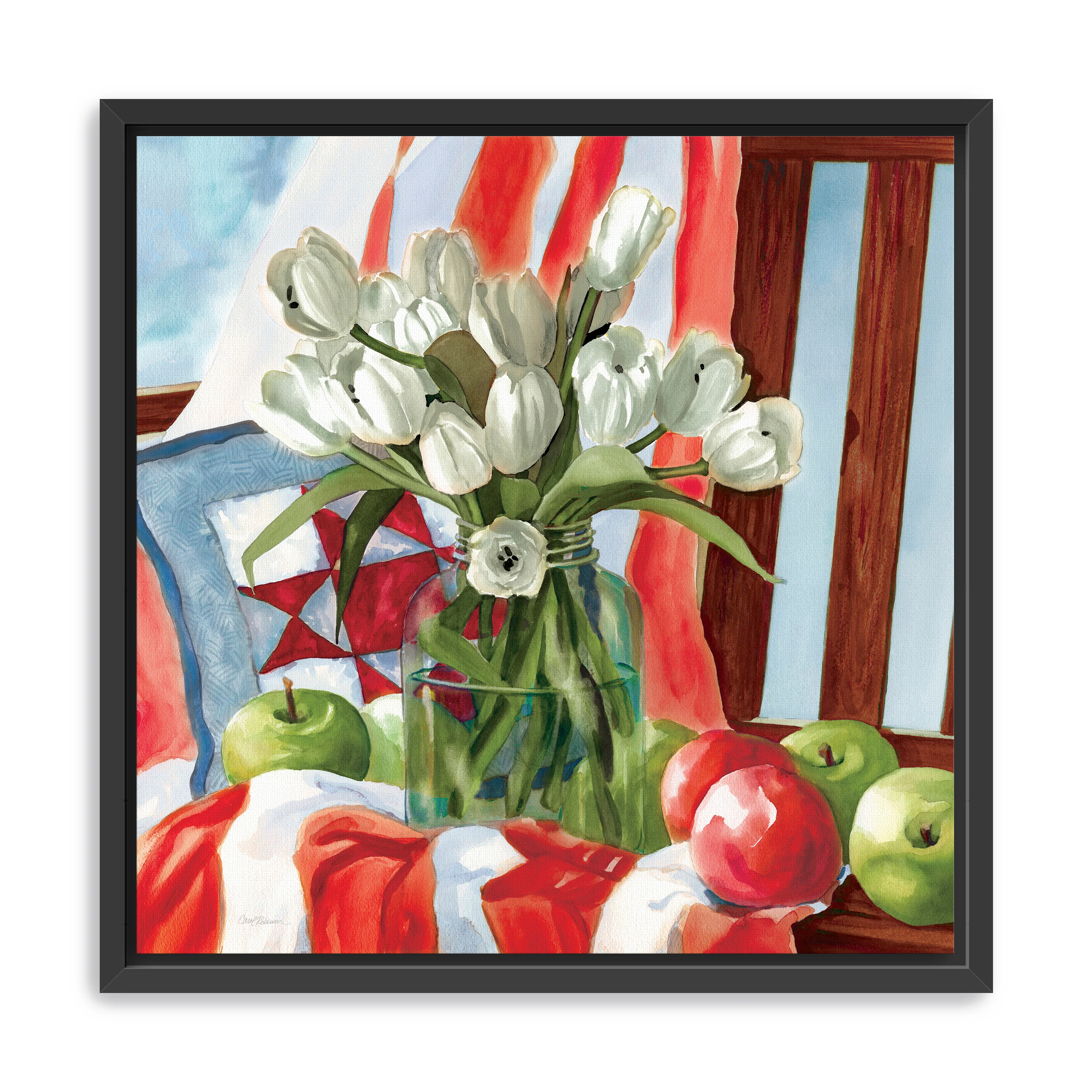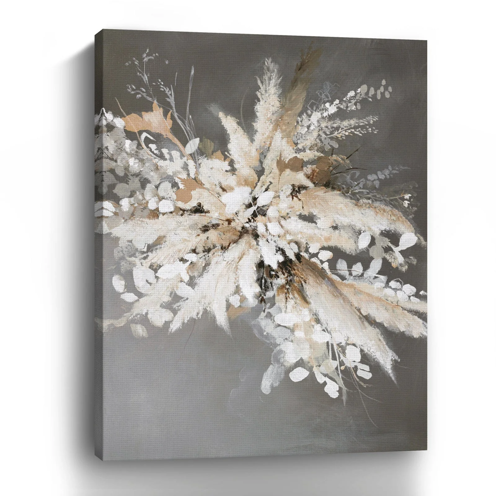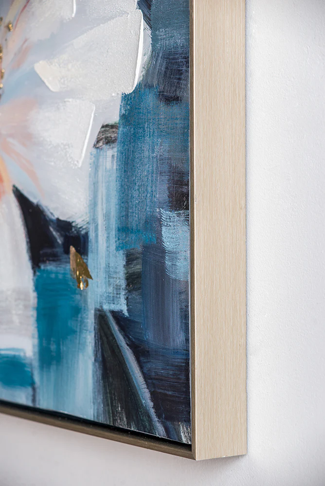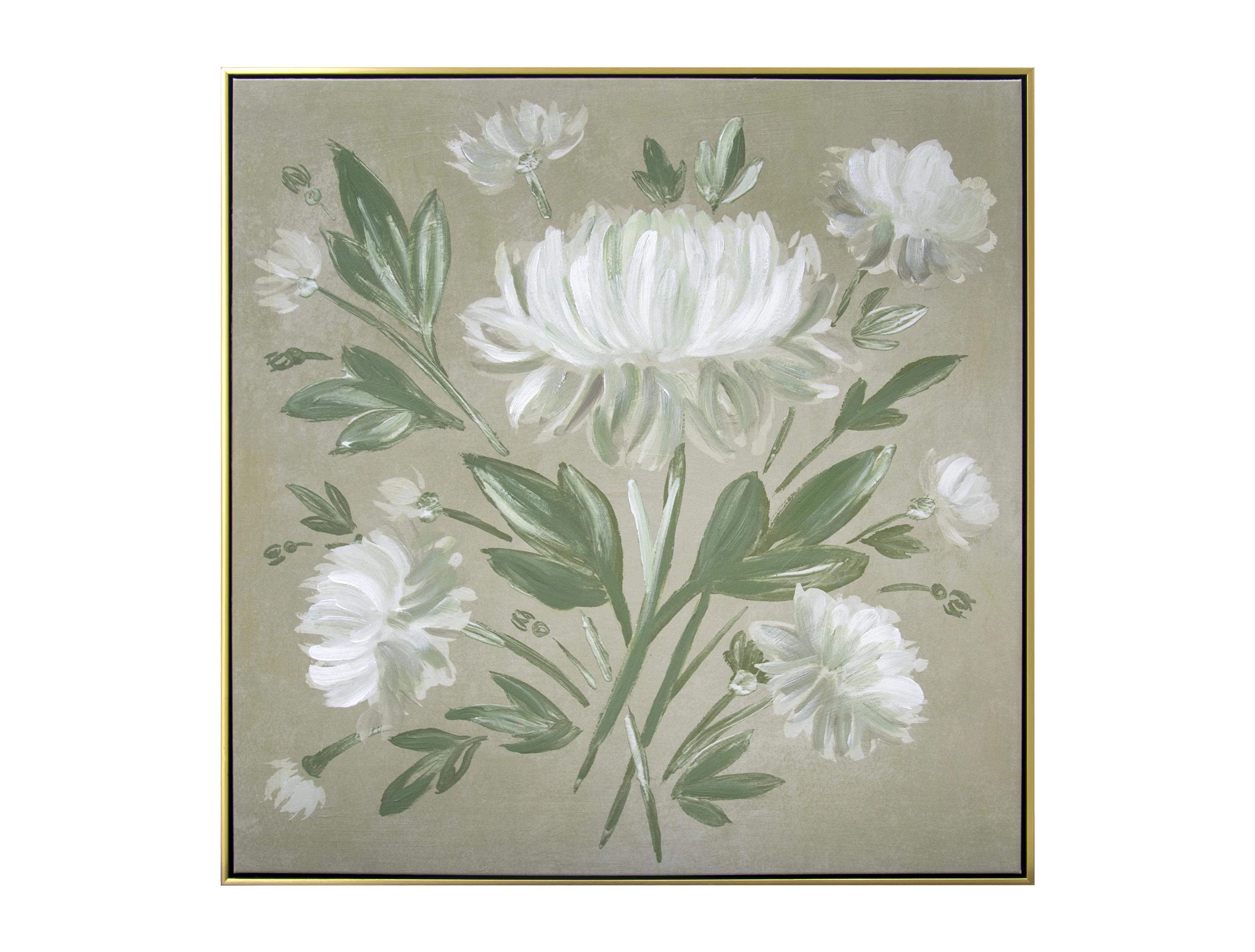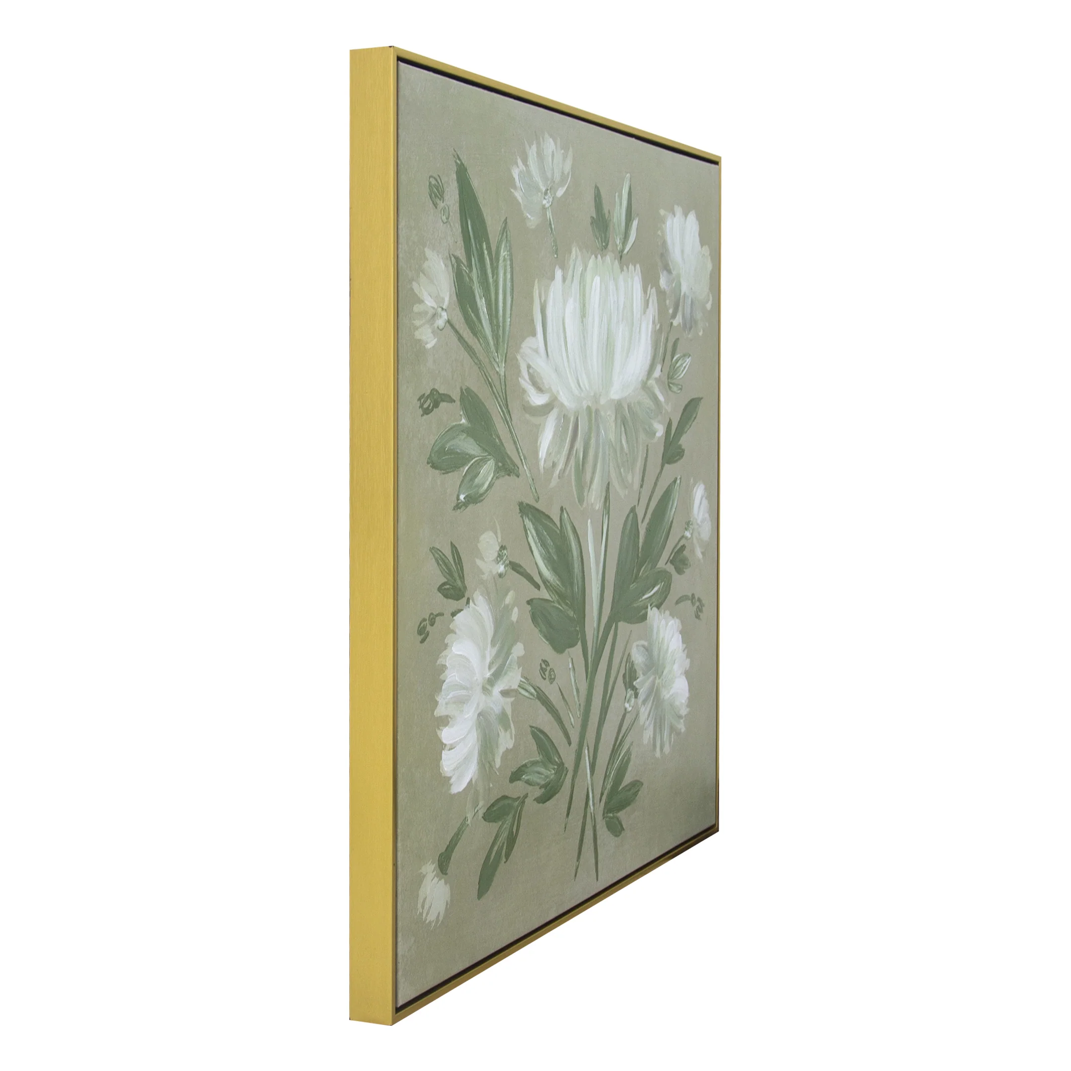 White Flower Bouquet Hand Painted Floating Framed Wall Art Print 30x30 Inches