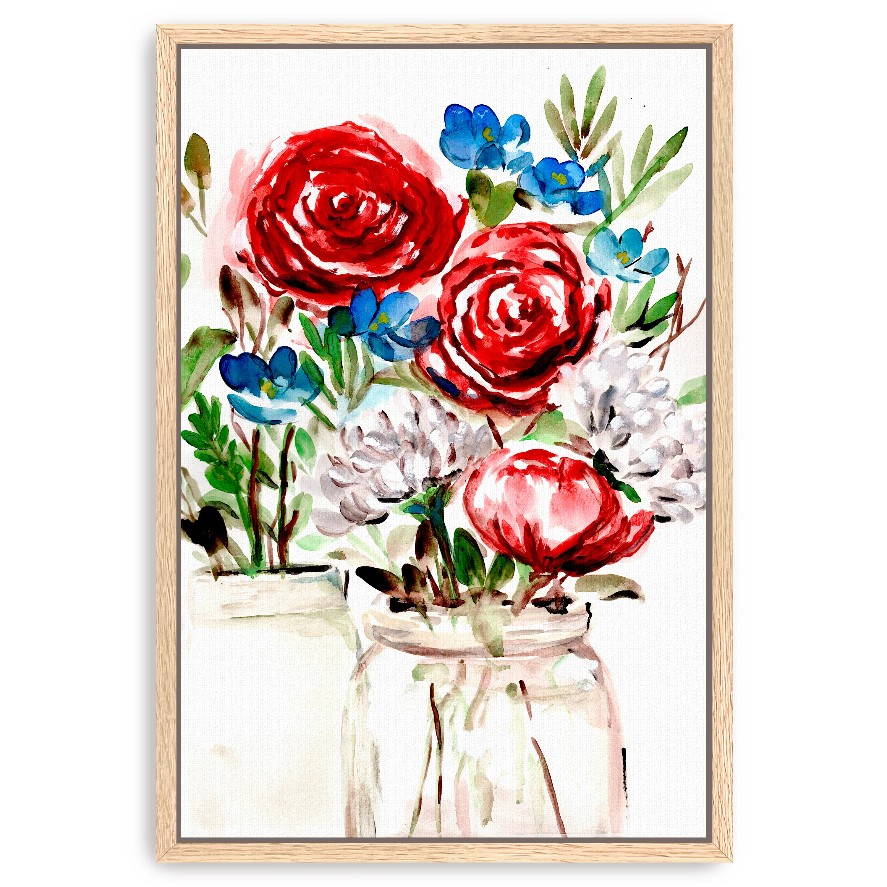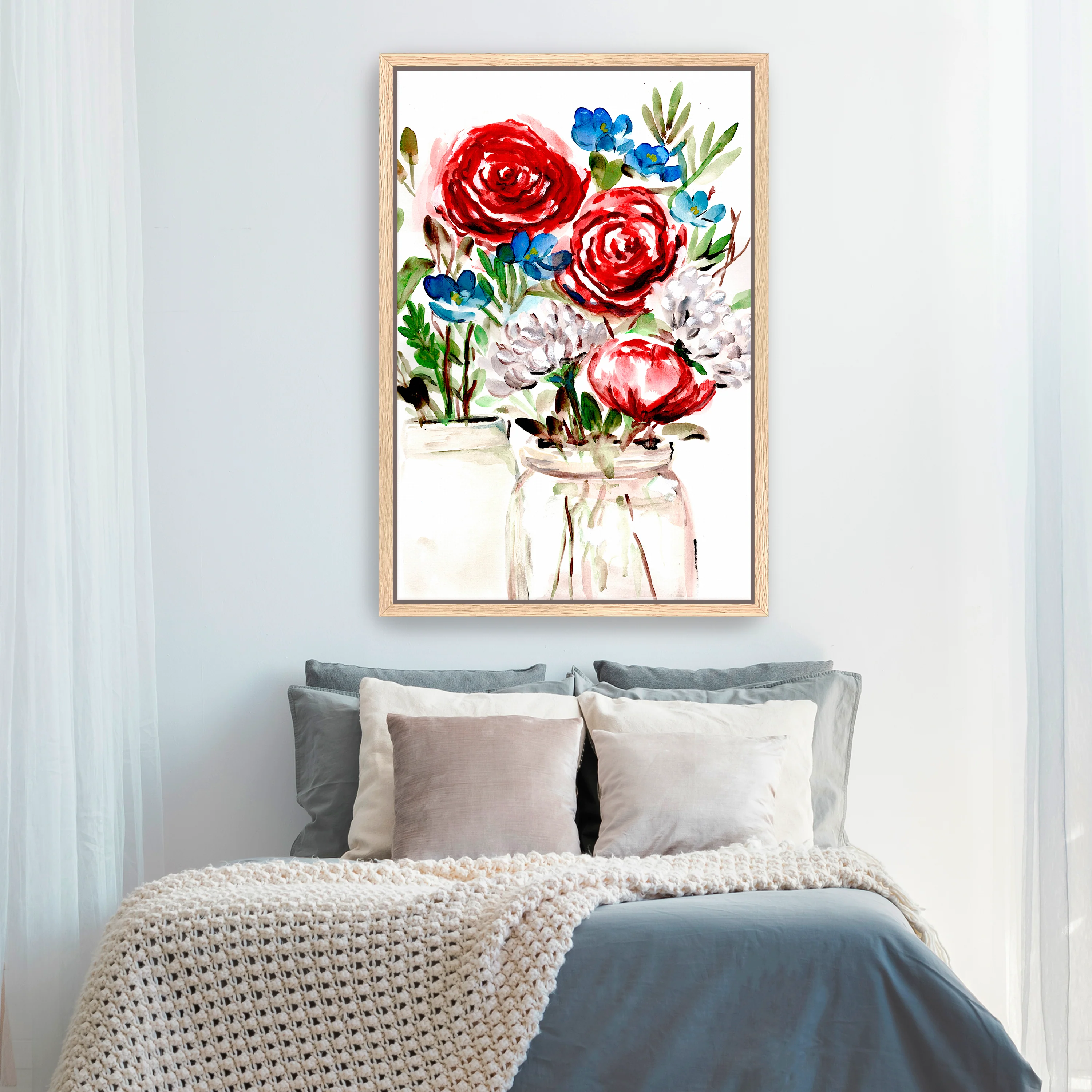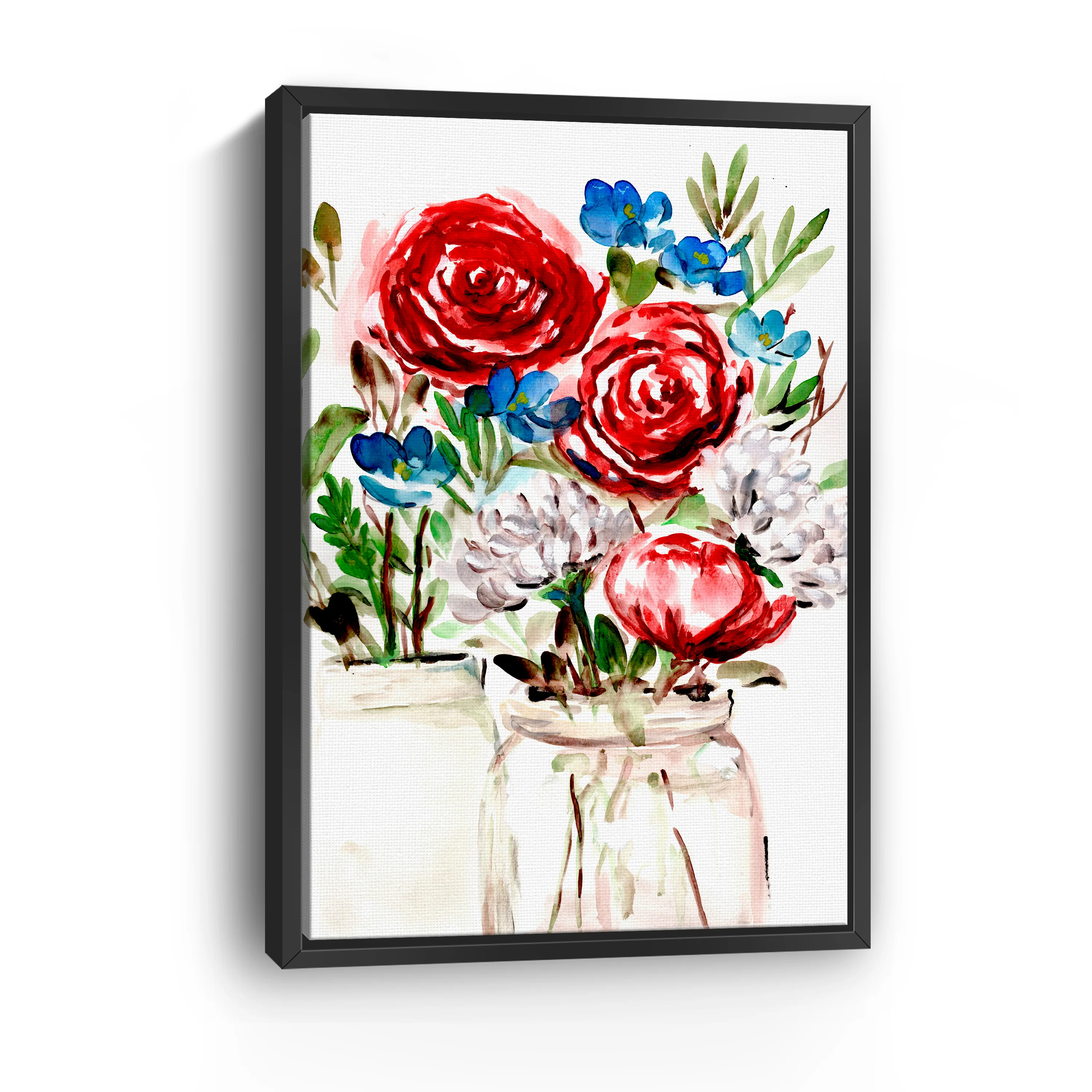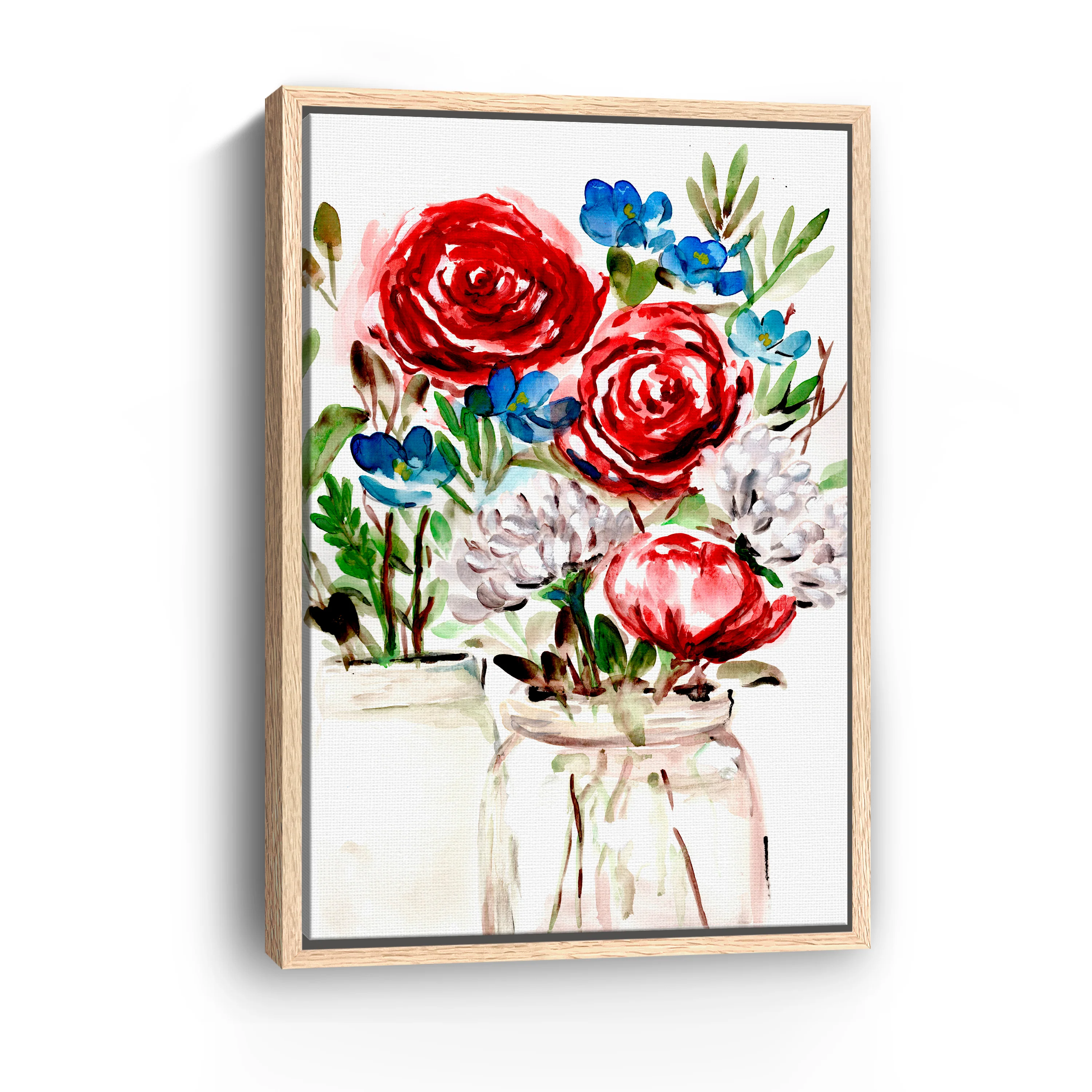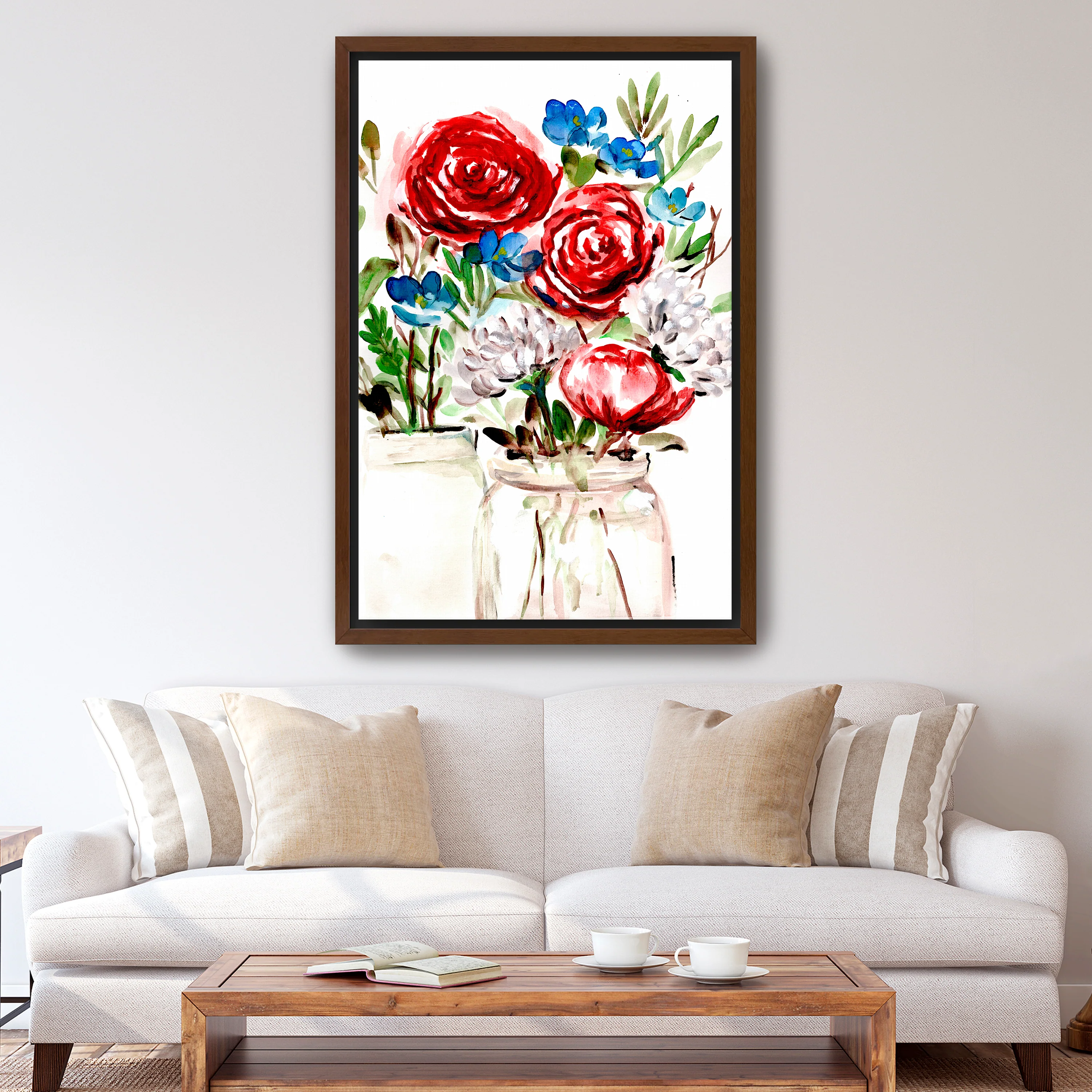 White Flower Bouquet Hand Painted Floating Framed Wall Art Print 30x30 Inches