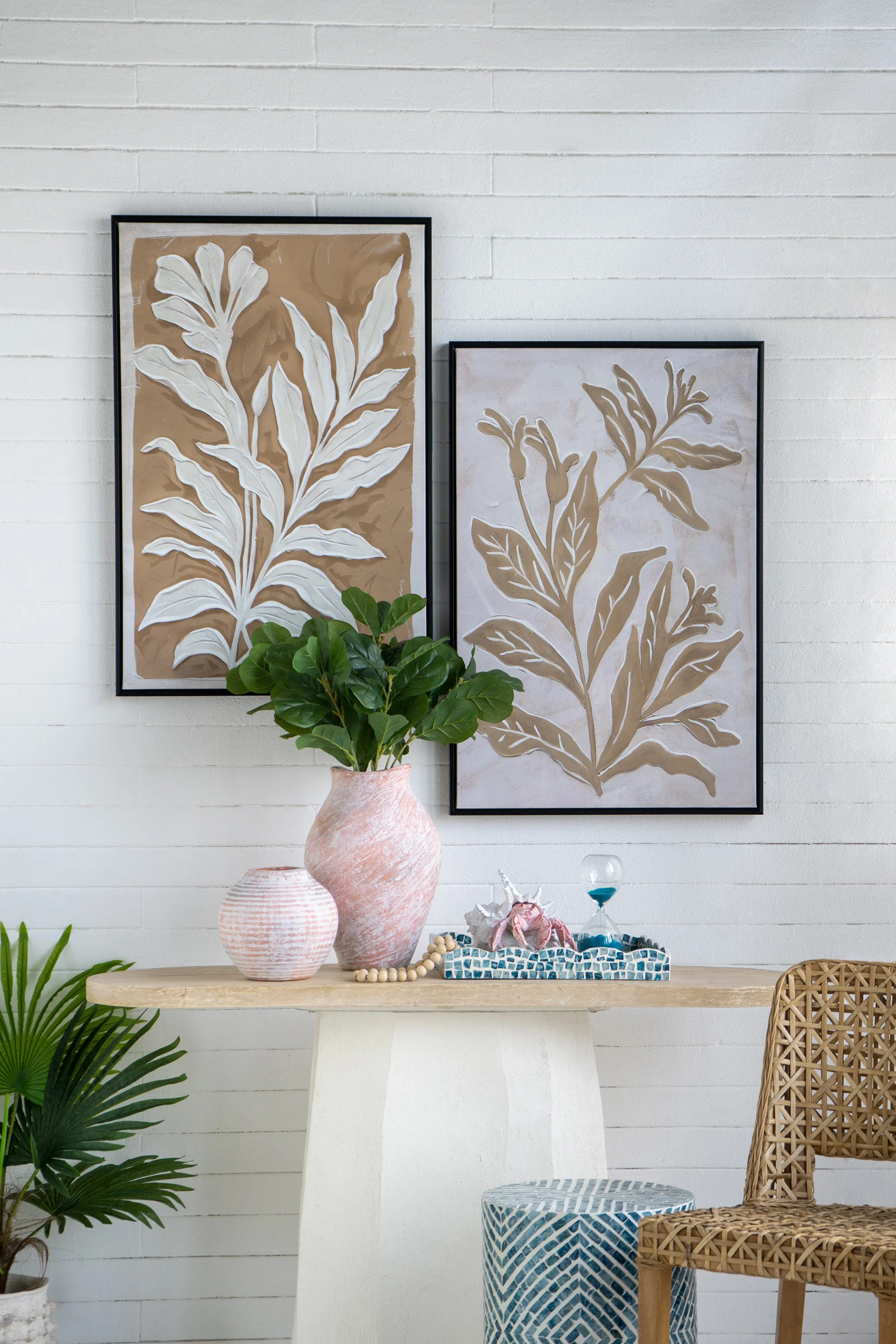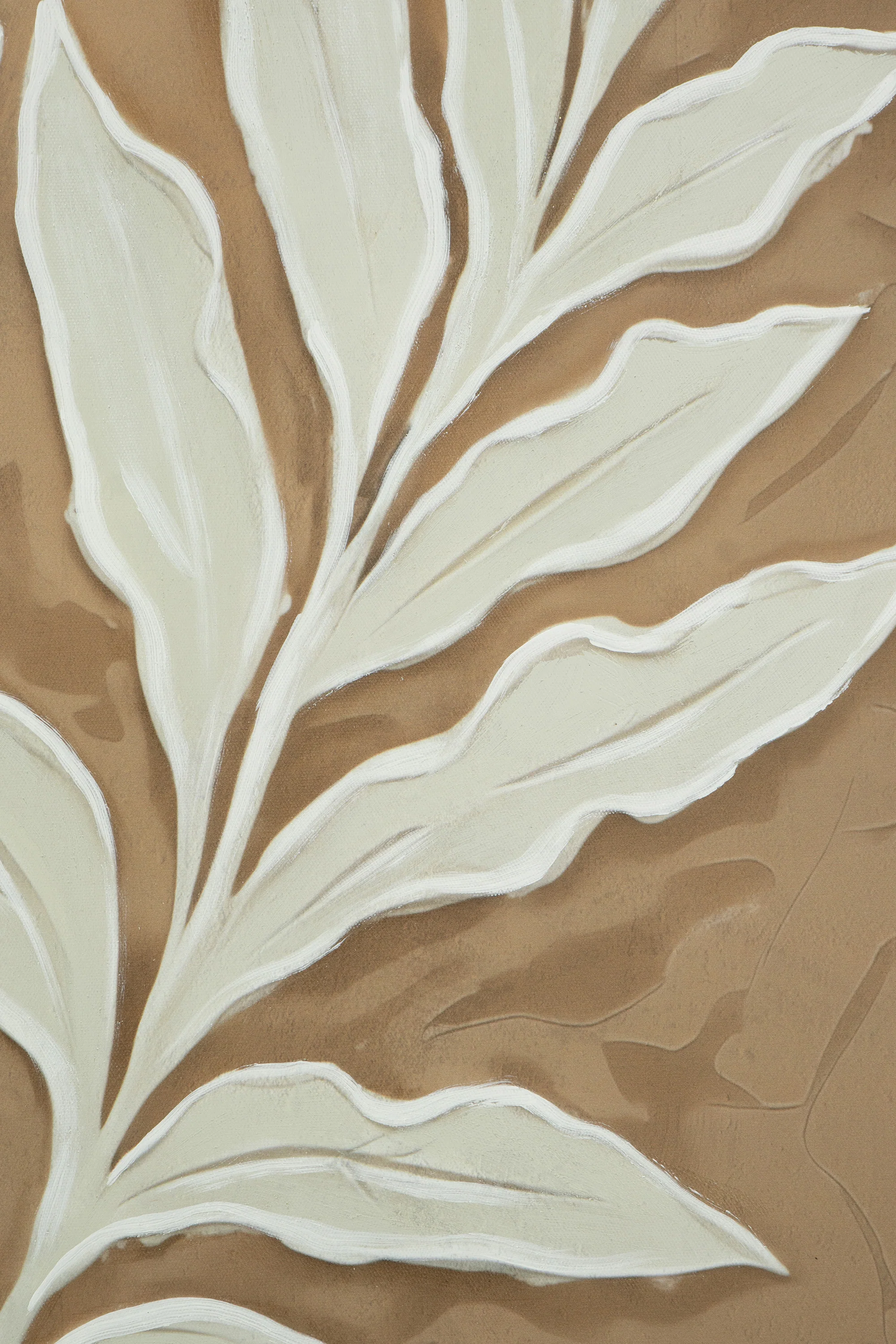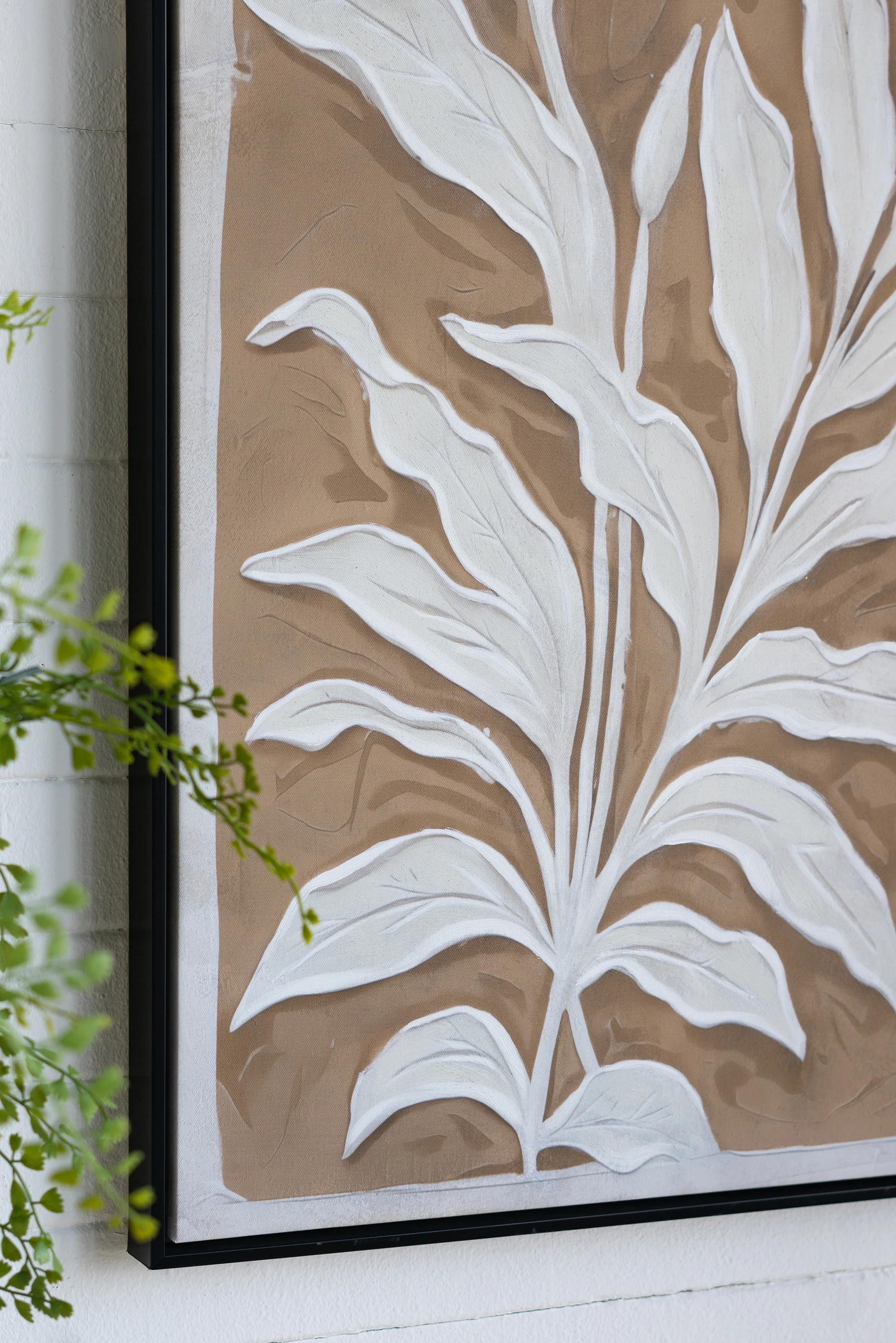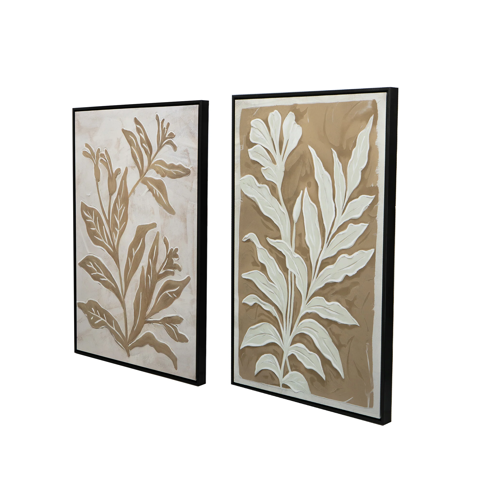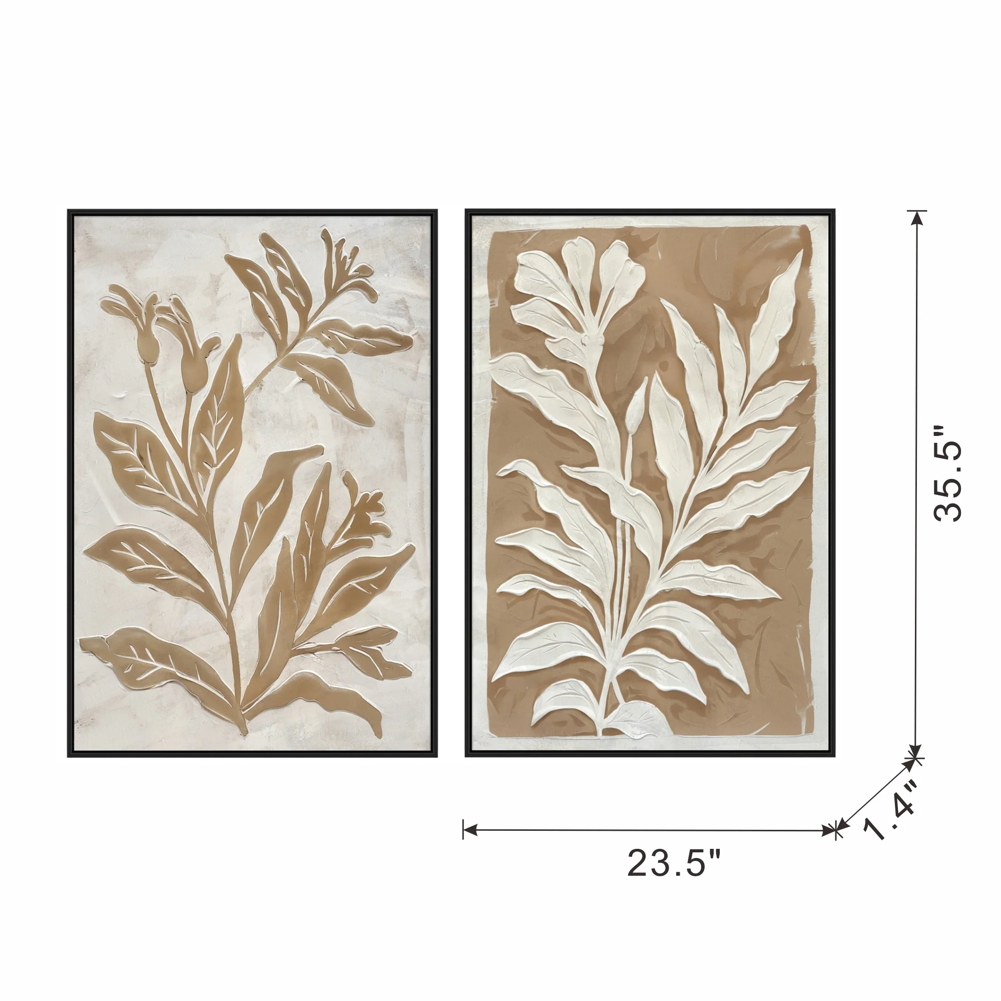 Brown and White Minimalist Leaf Paintings with Black Frame, Set of 2