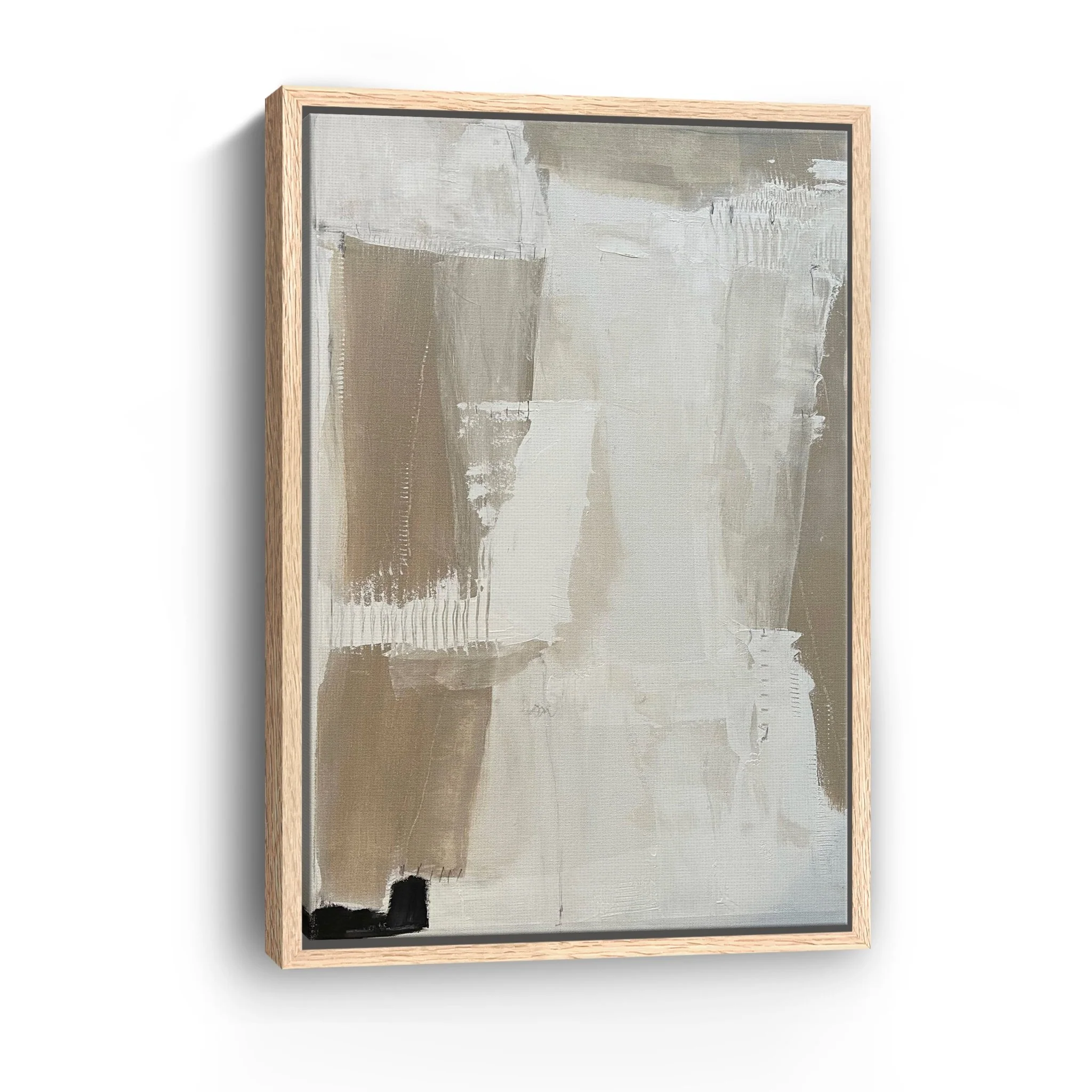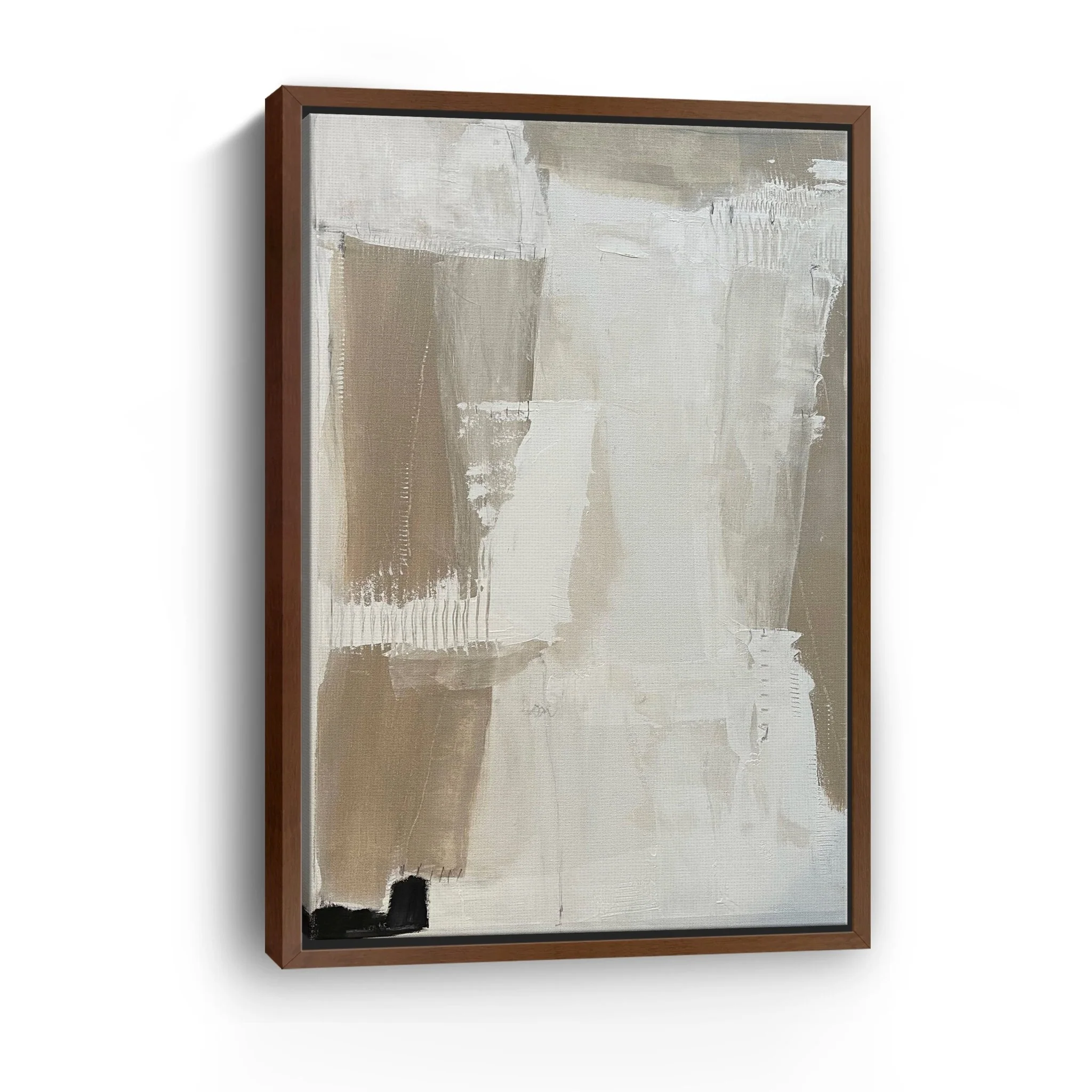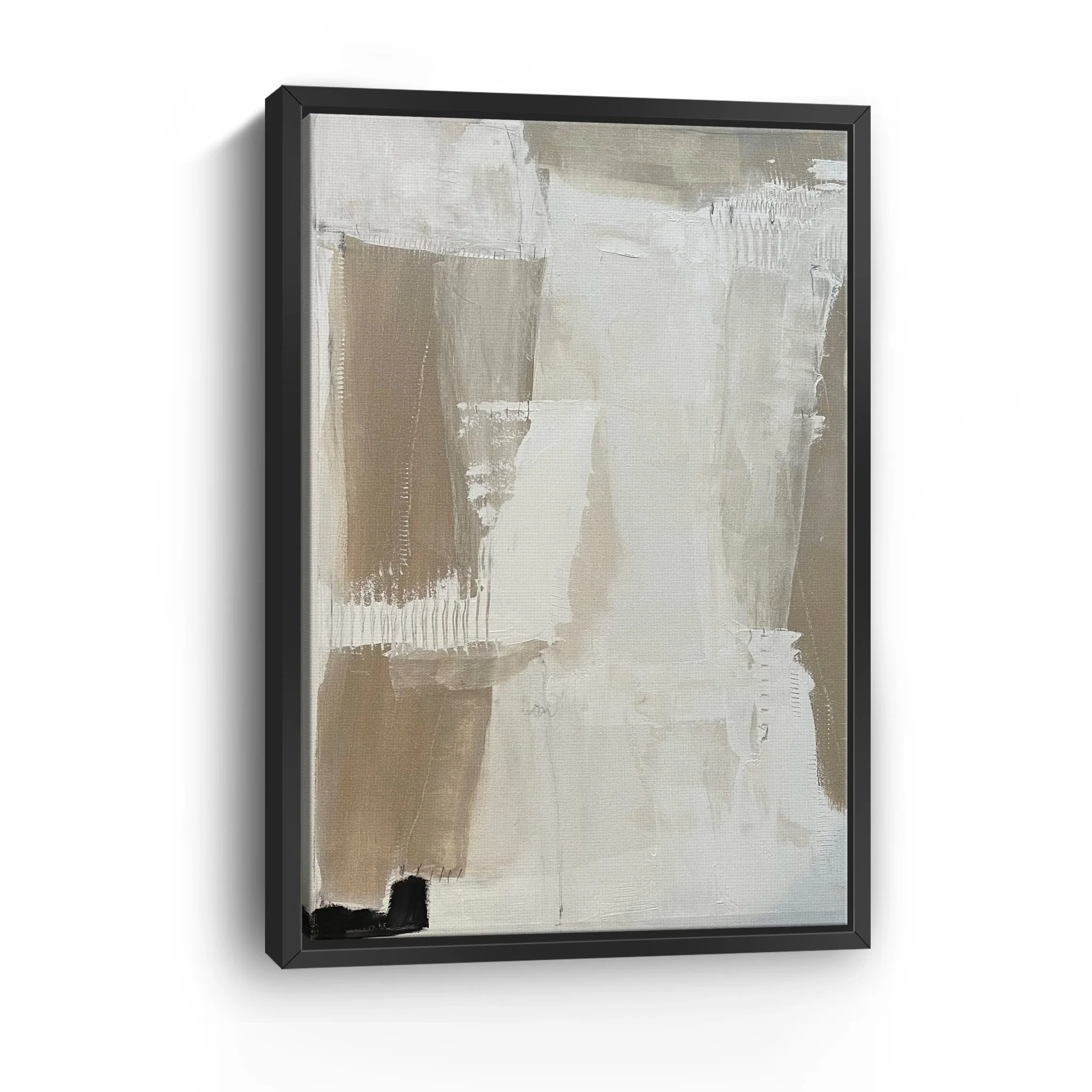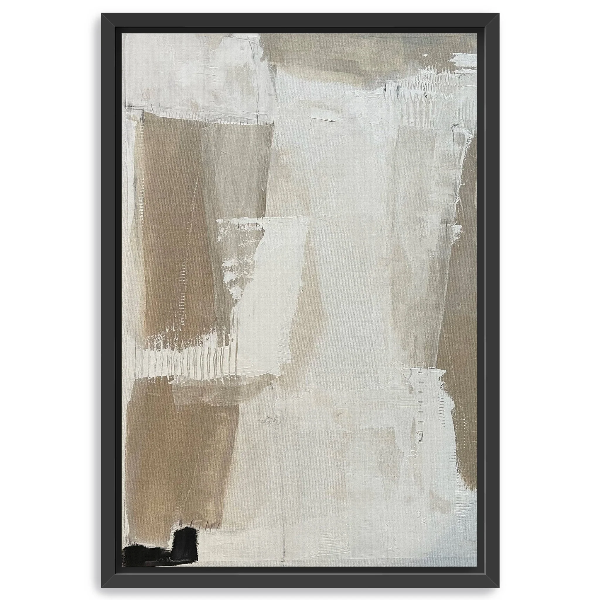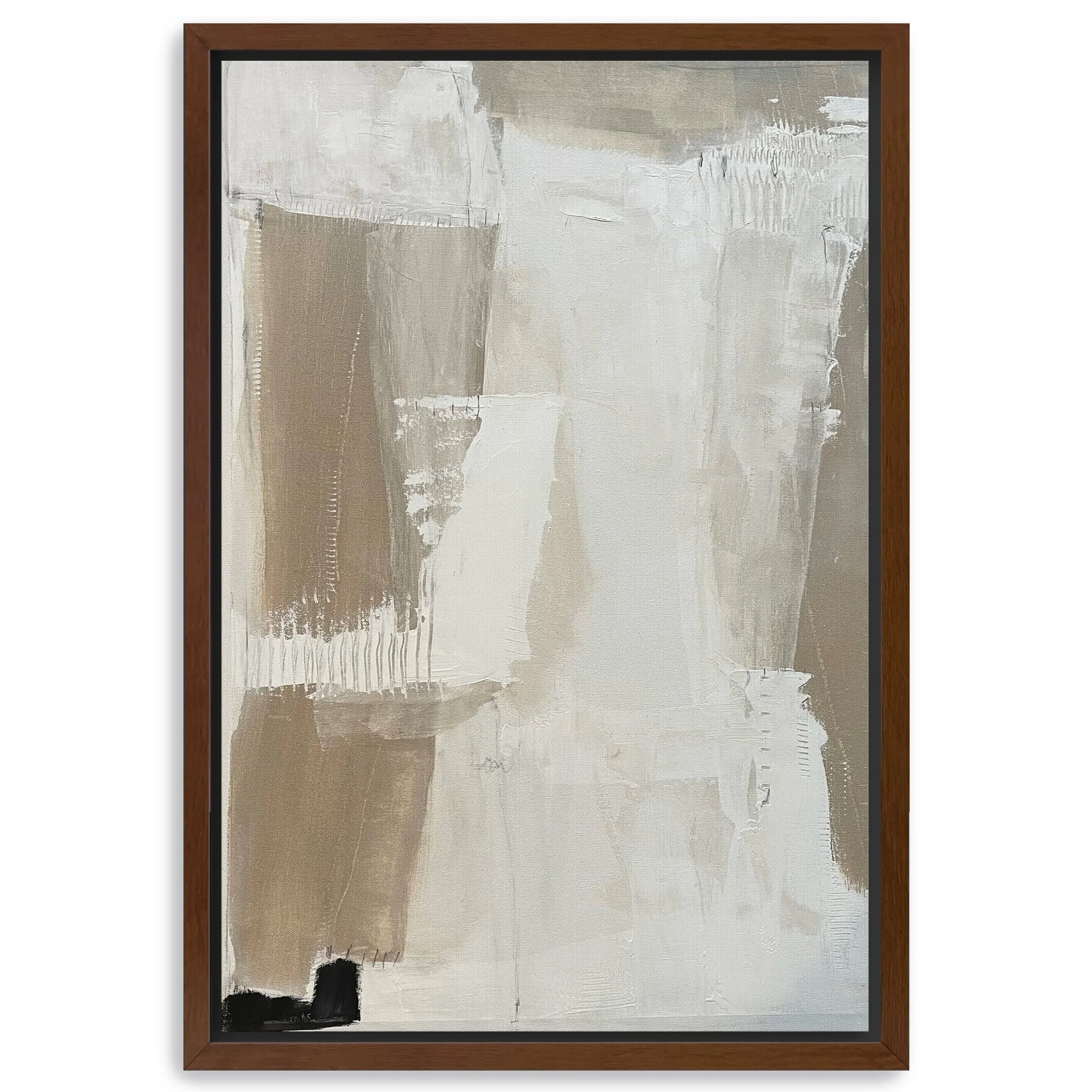 Brown and White Minimalist Leaf Paintings with Black Frame, Set of 2