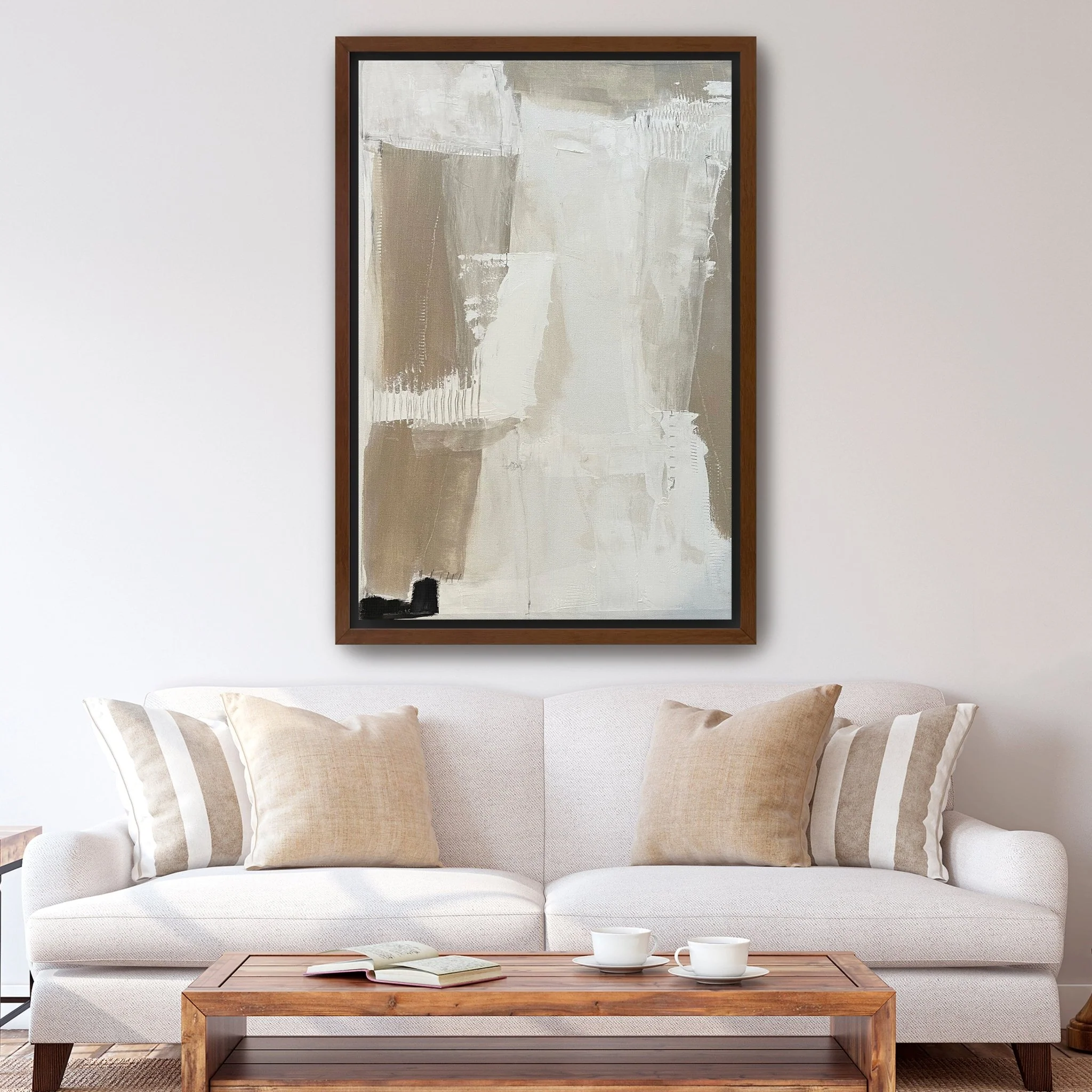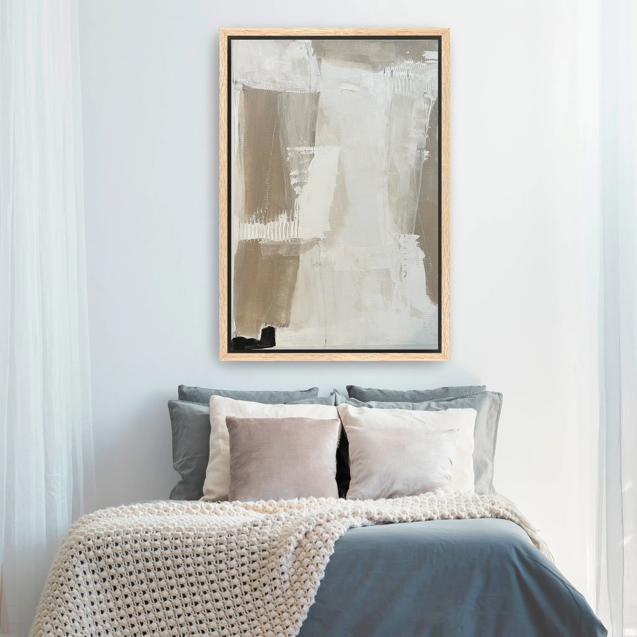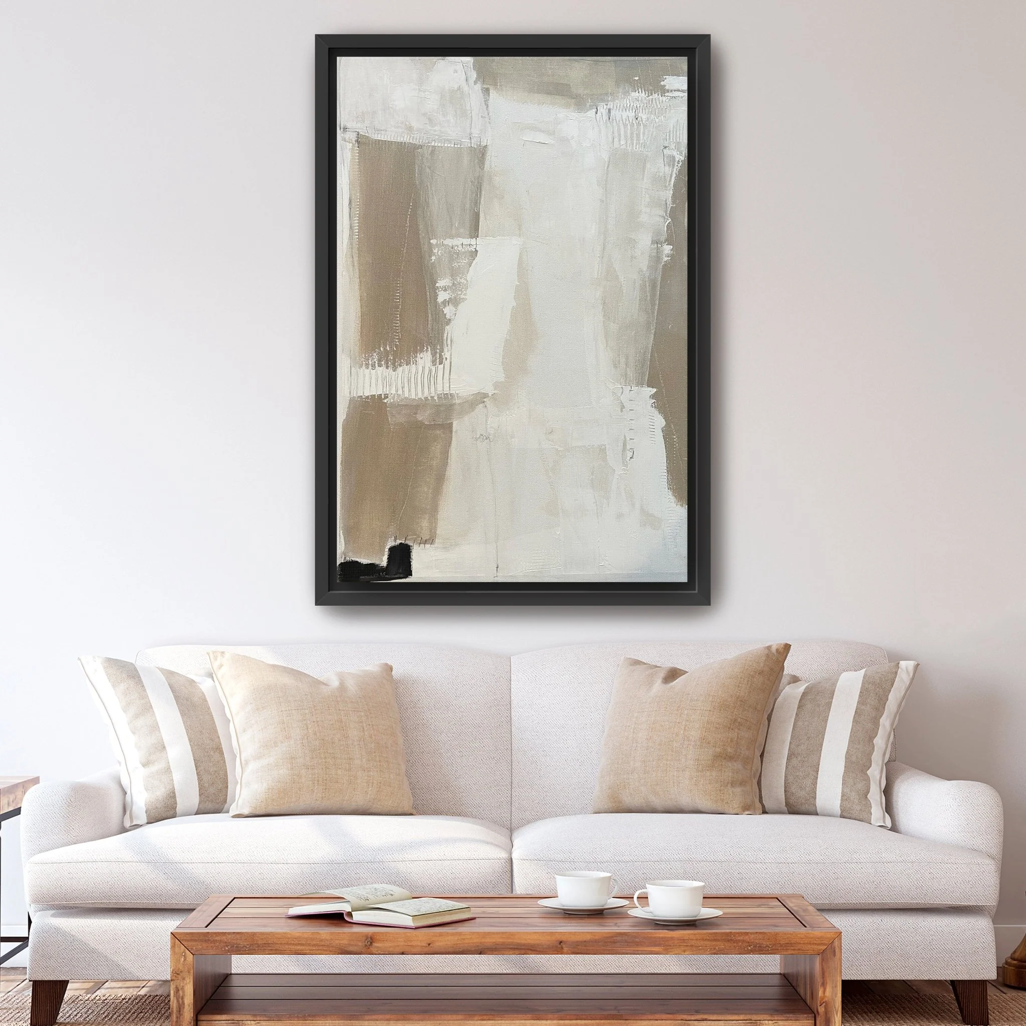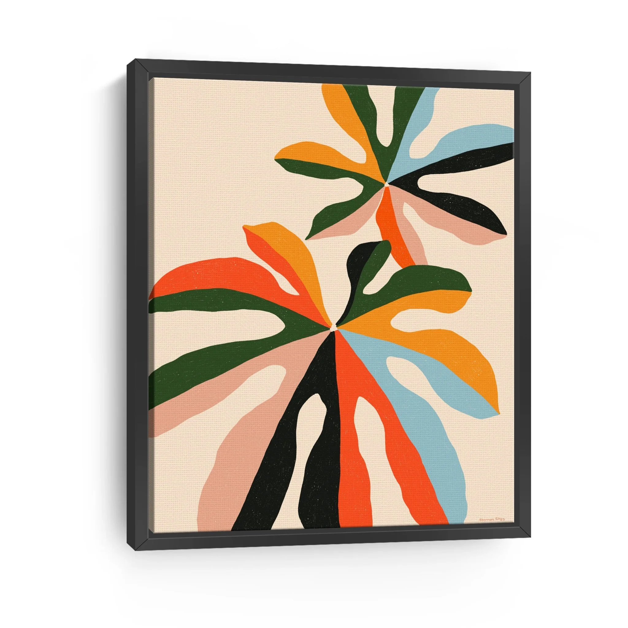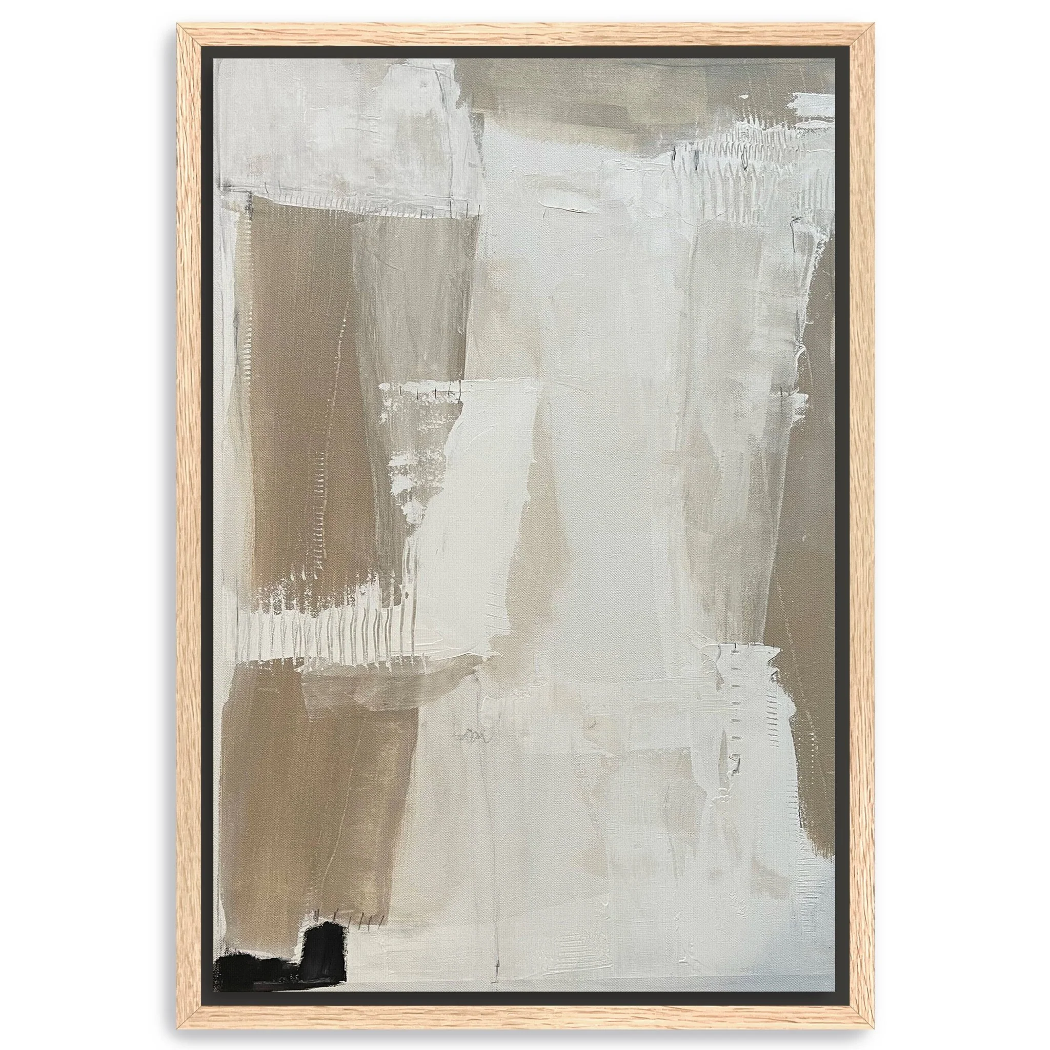 Brown and White Minimalist Leaf Paintings with Black Frame, Set of 2