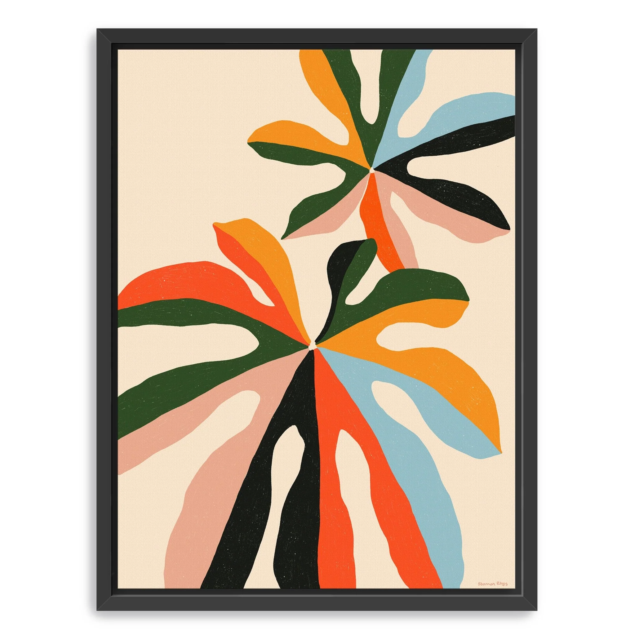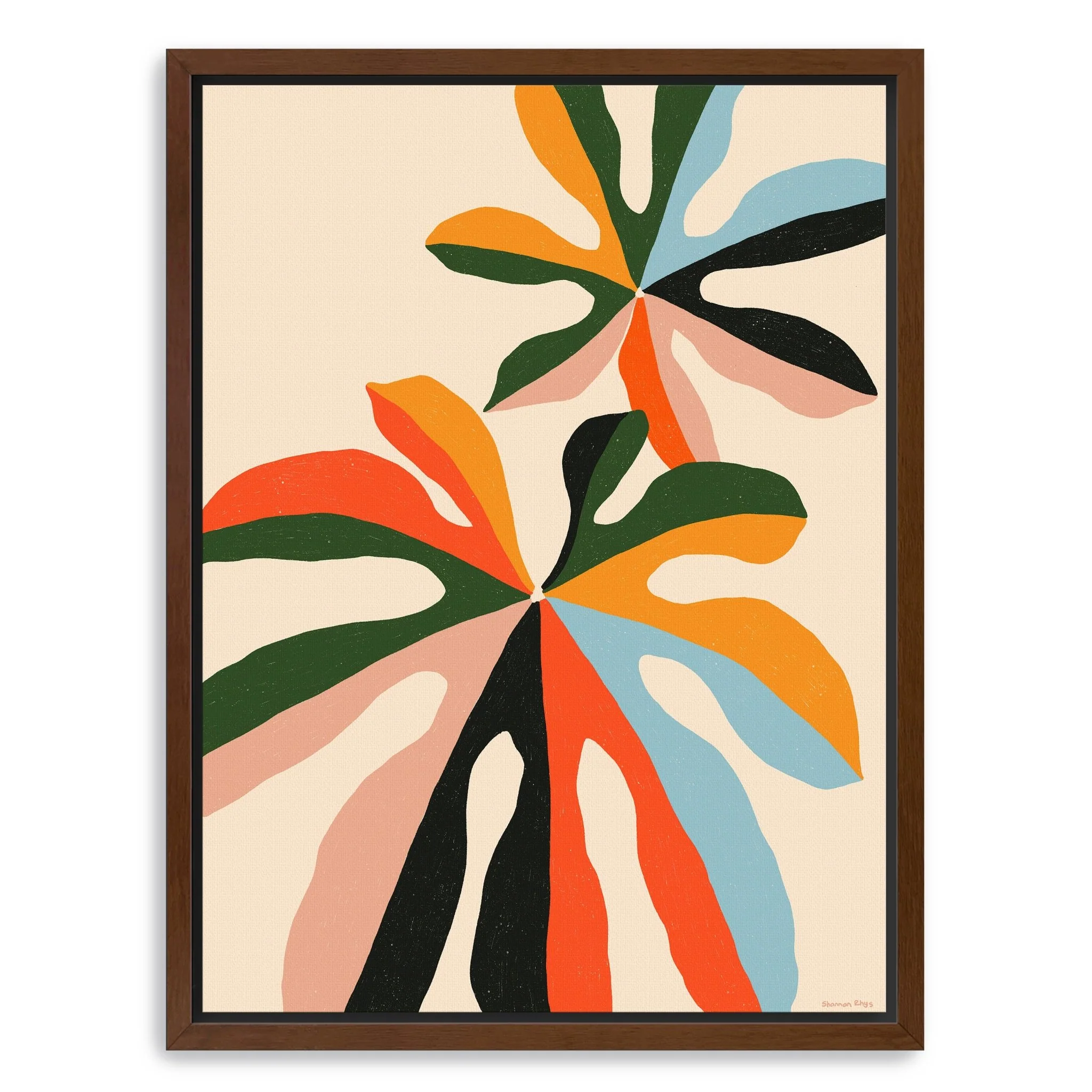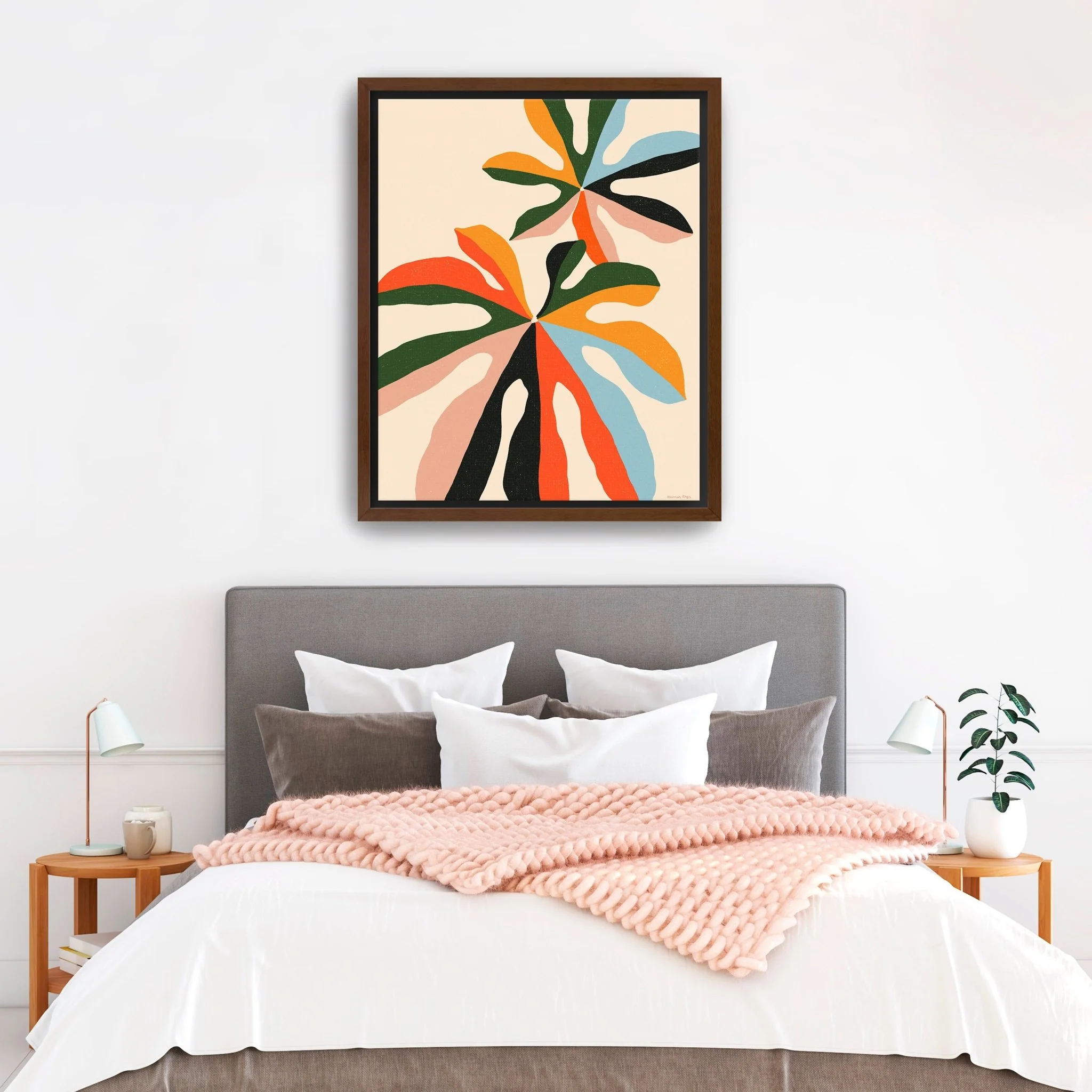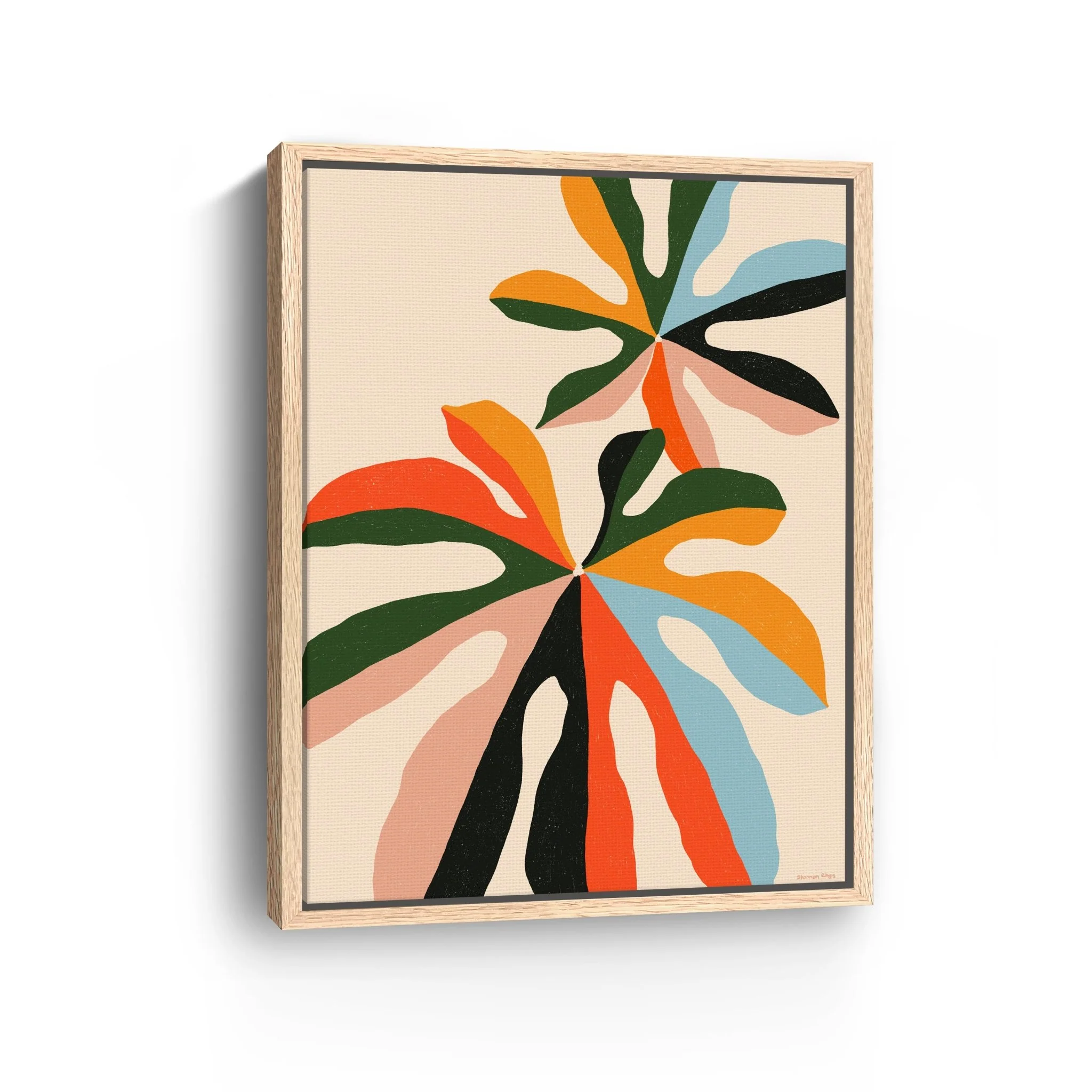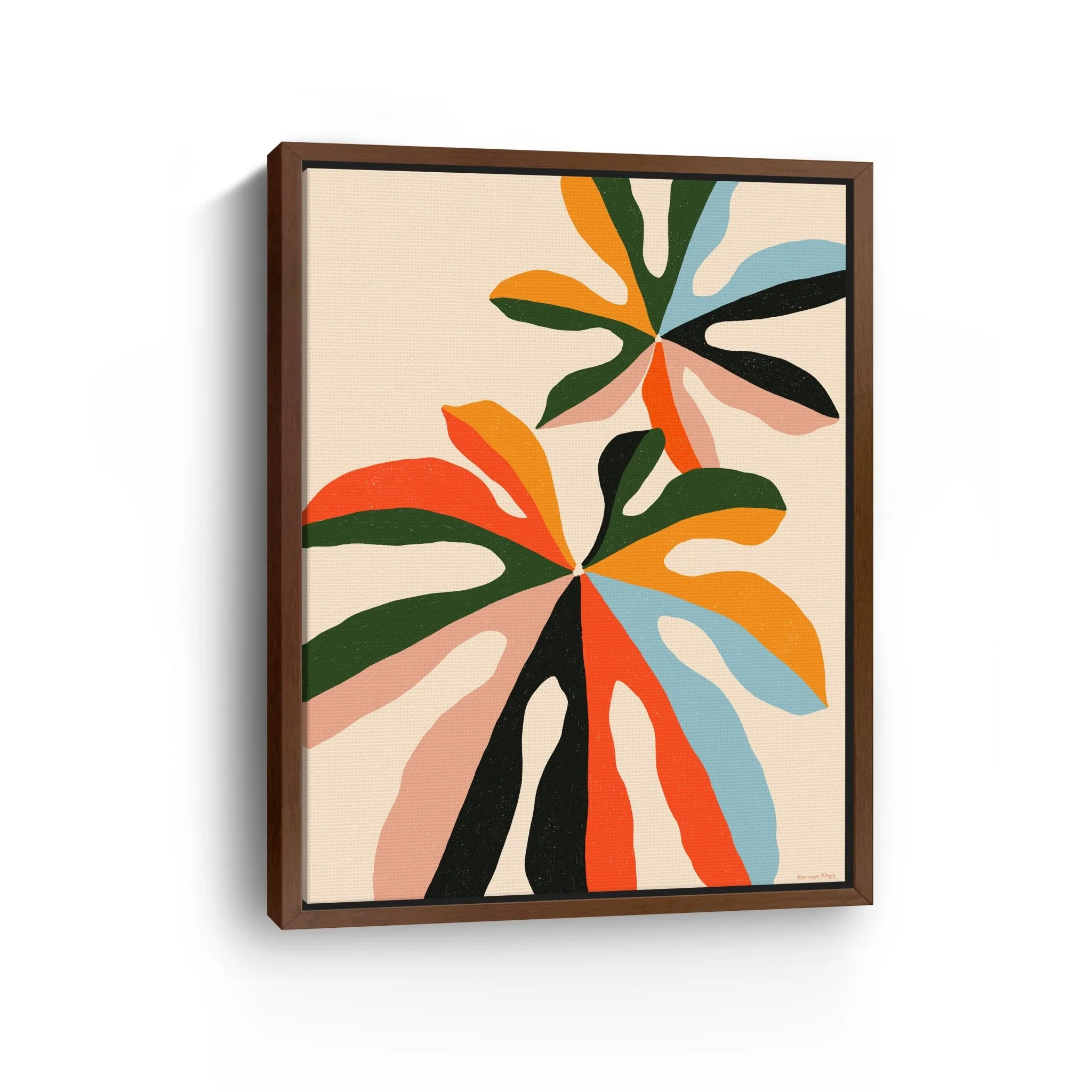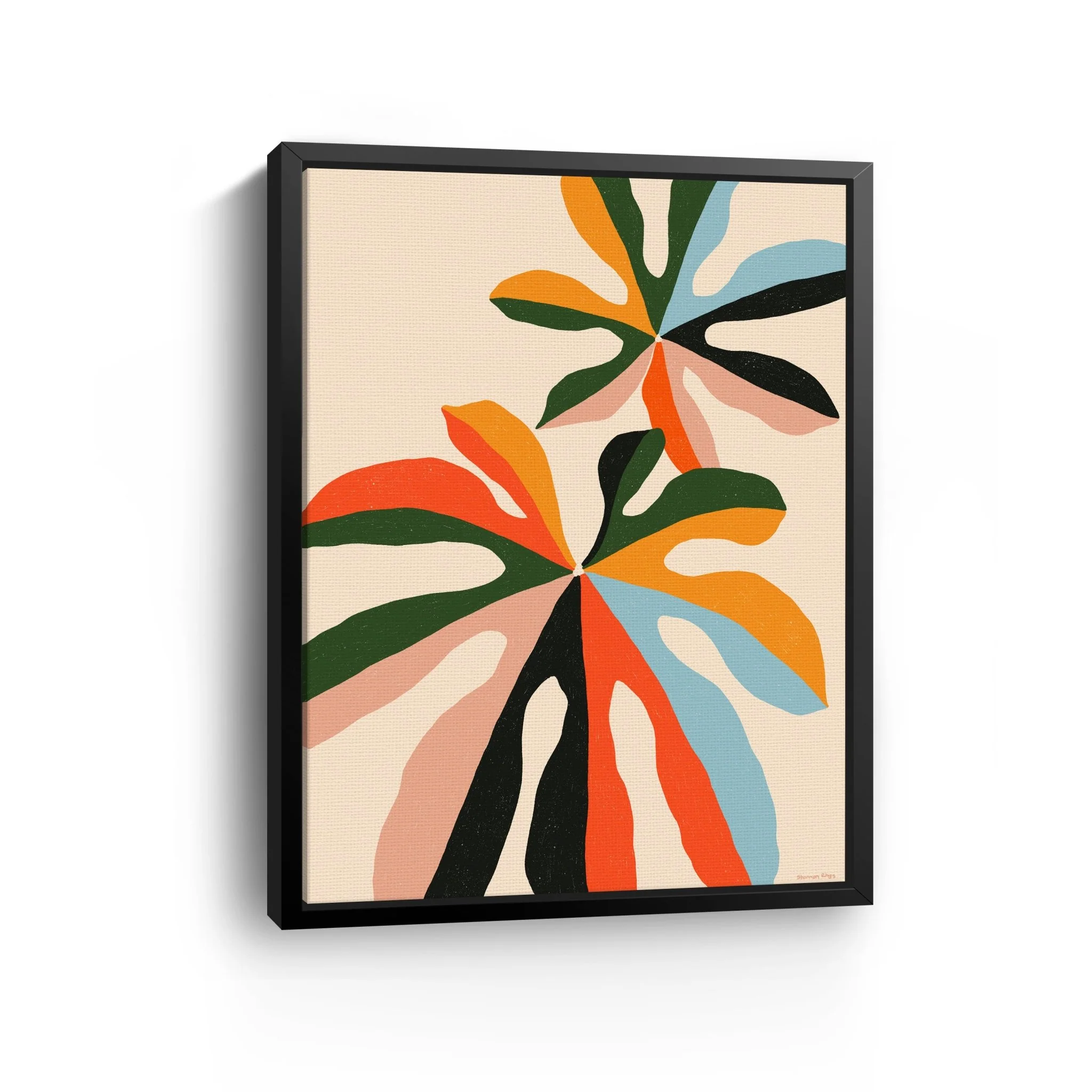 Brown and White Minimalist Leaf Paintings with Black Frame, Set of 2