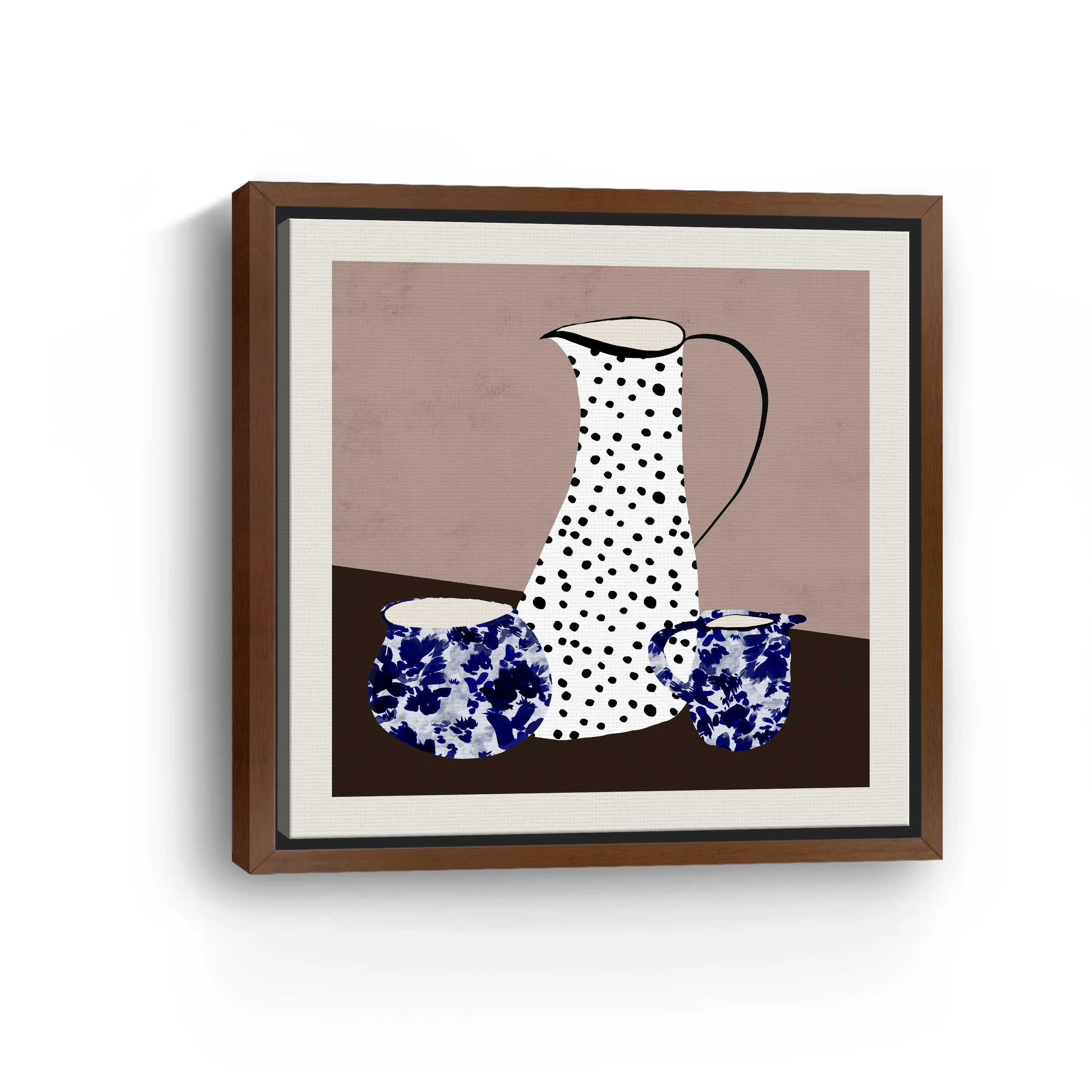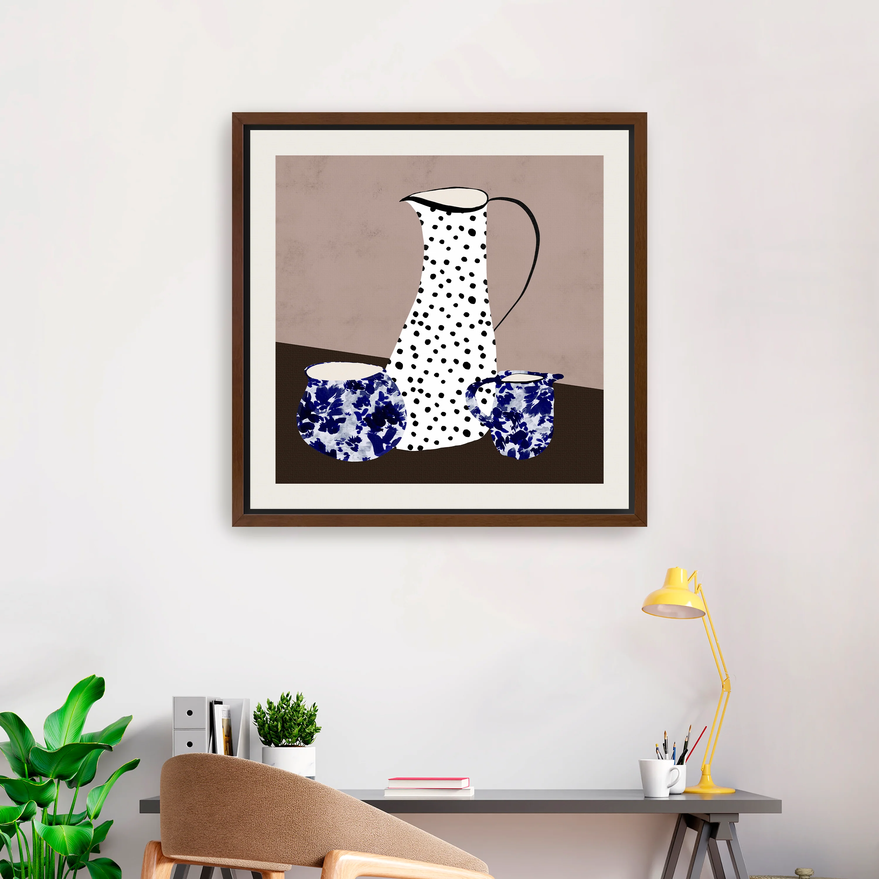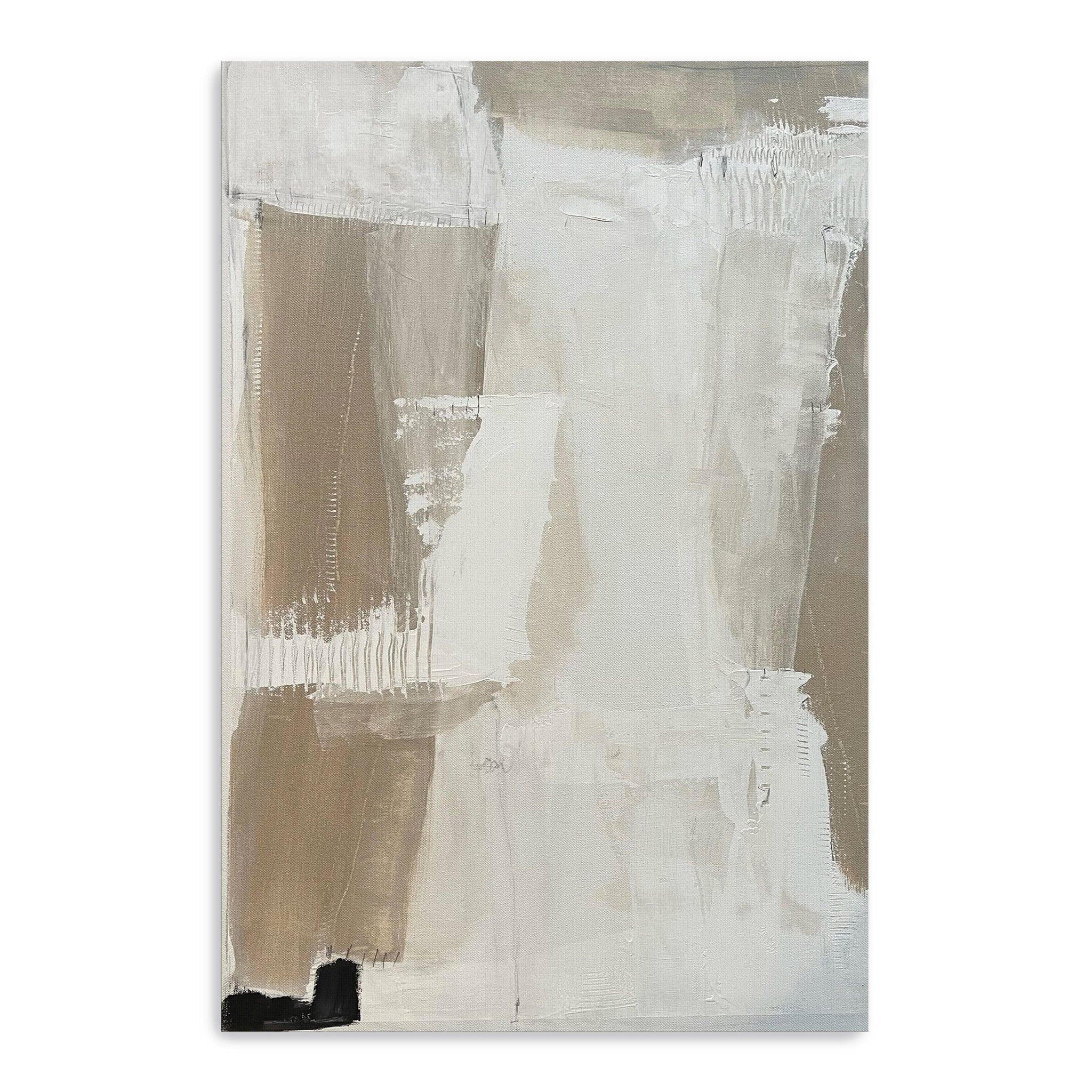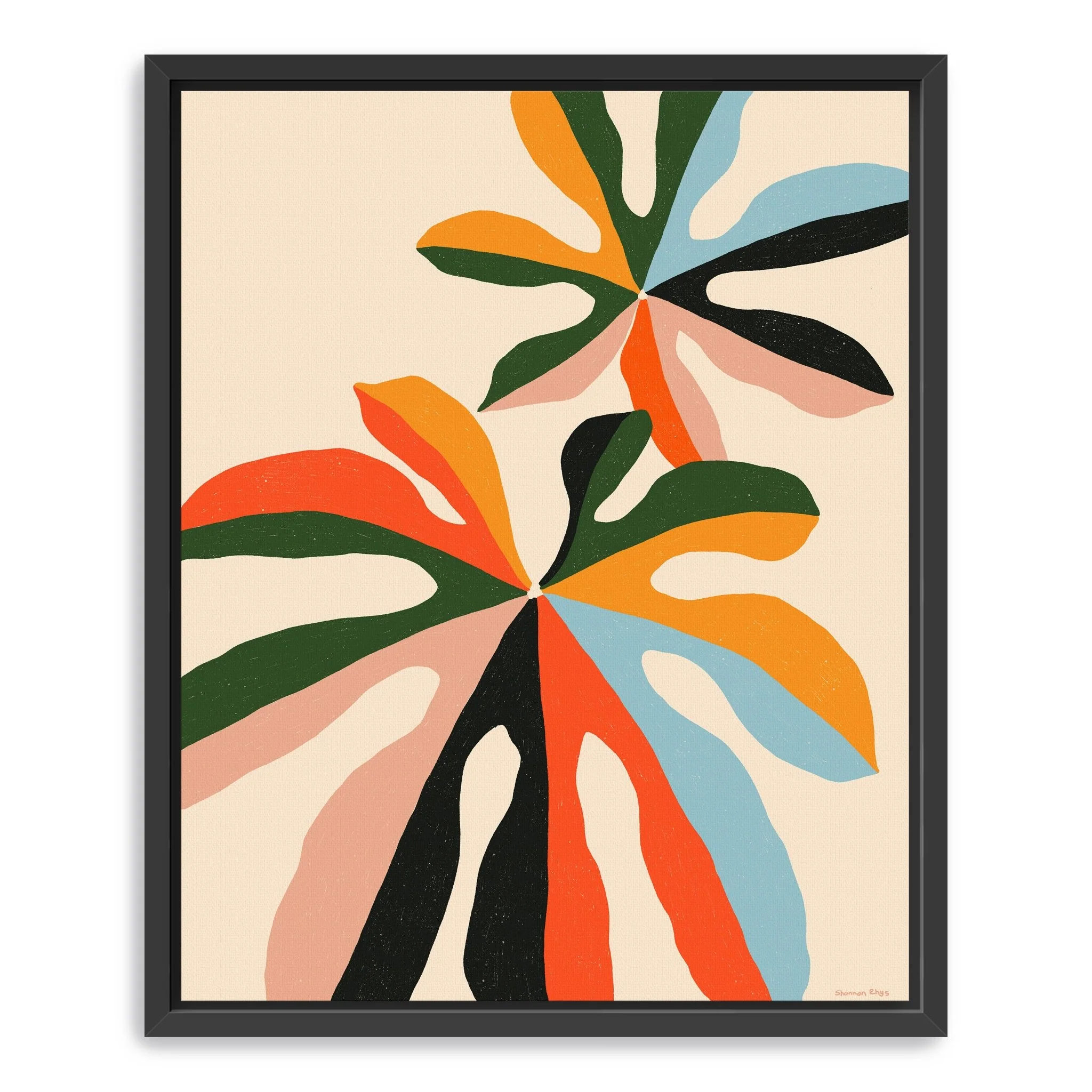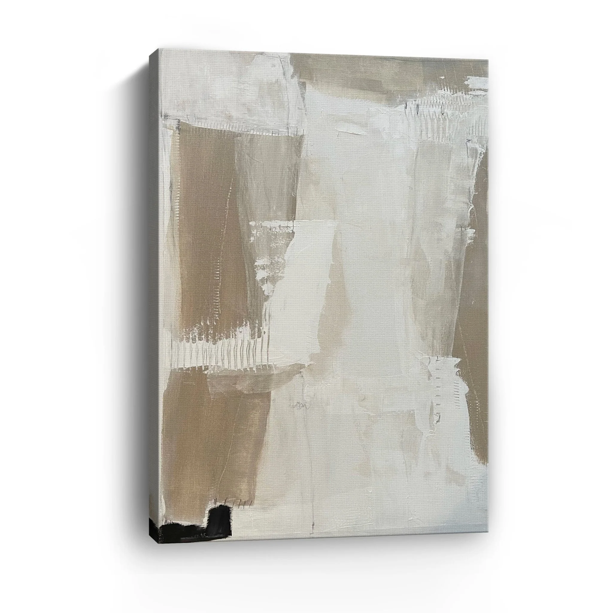 Brown and White Minimalist Leaf Paintings with Black Frame, Set of 2