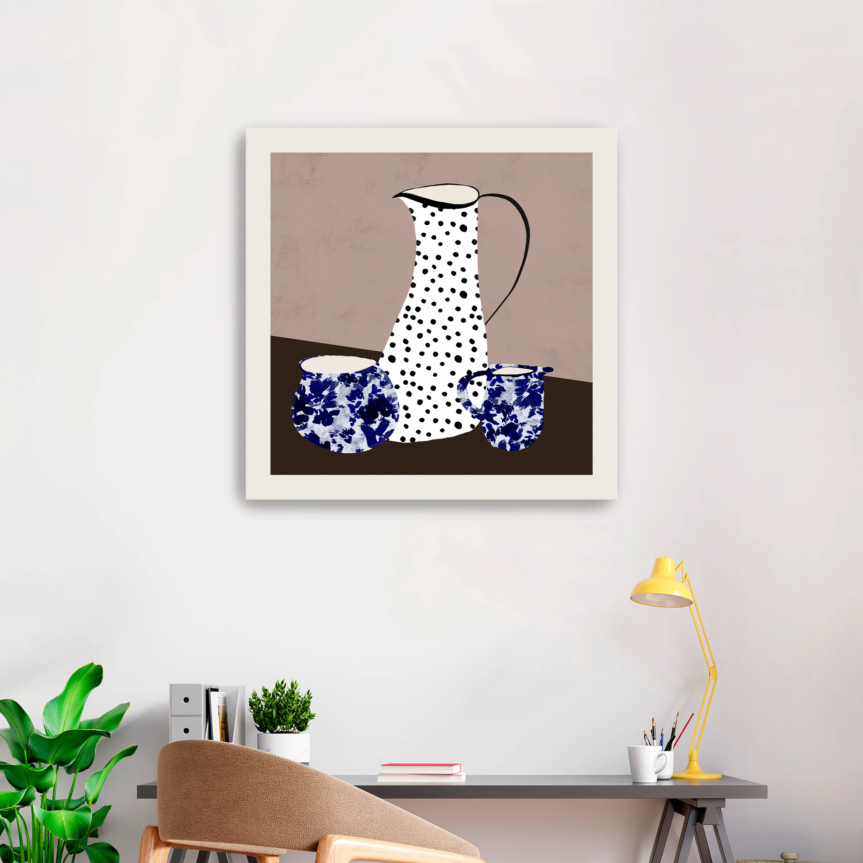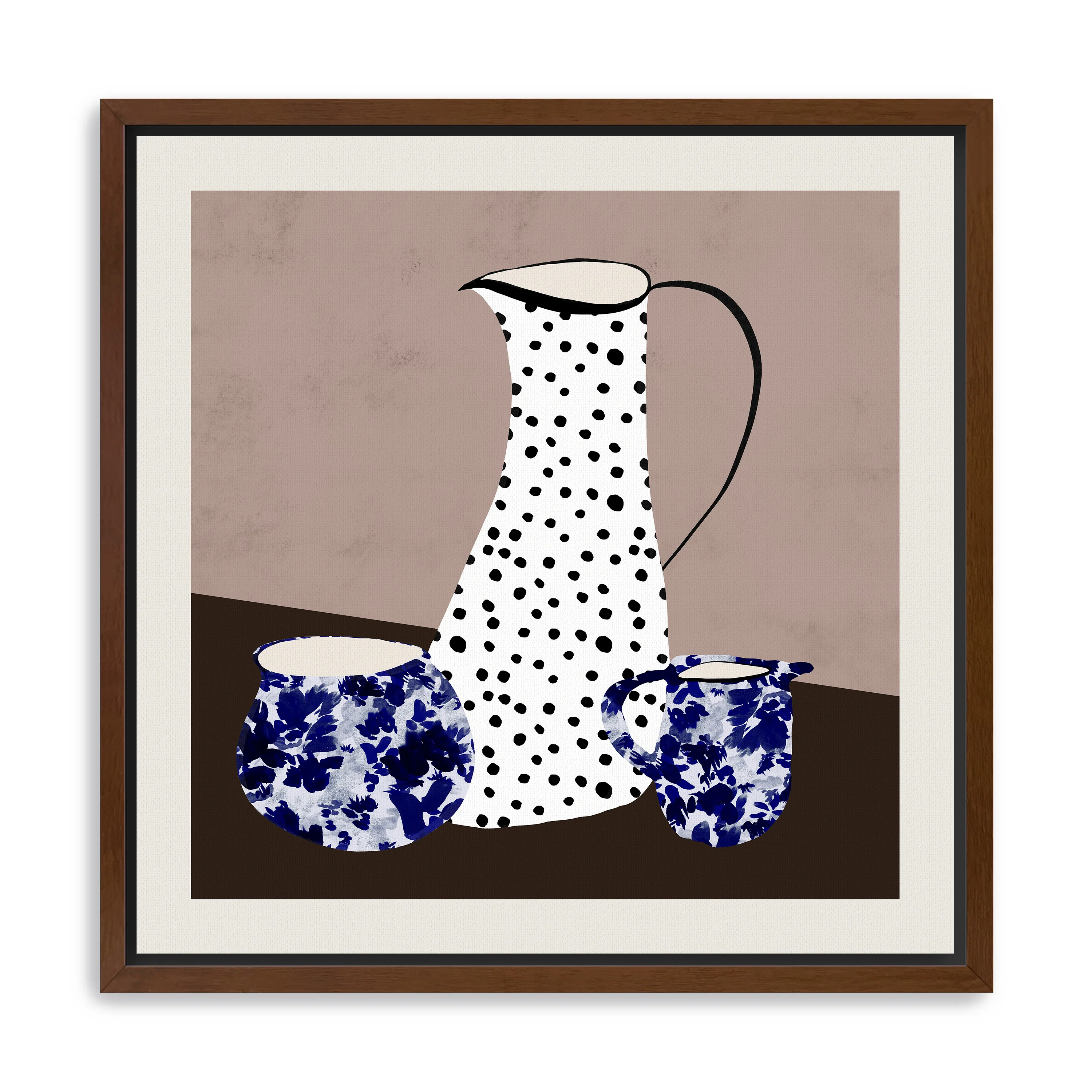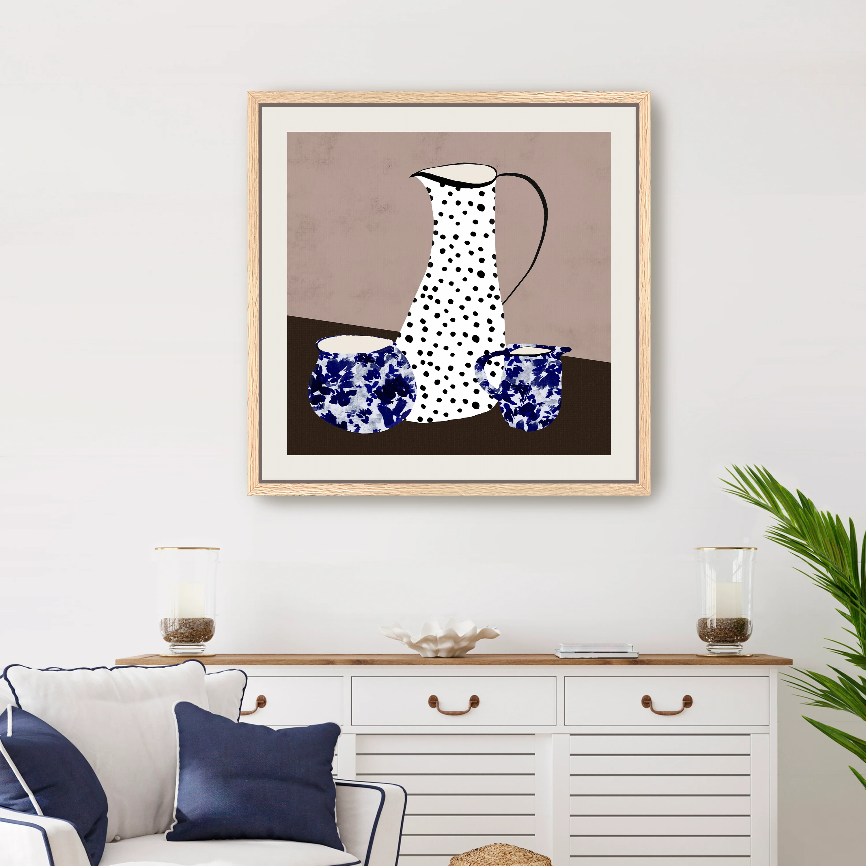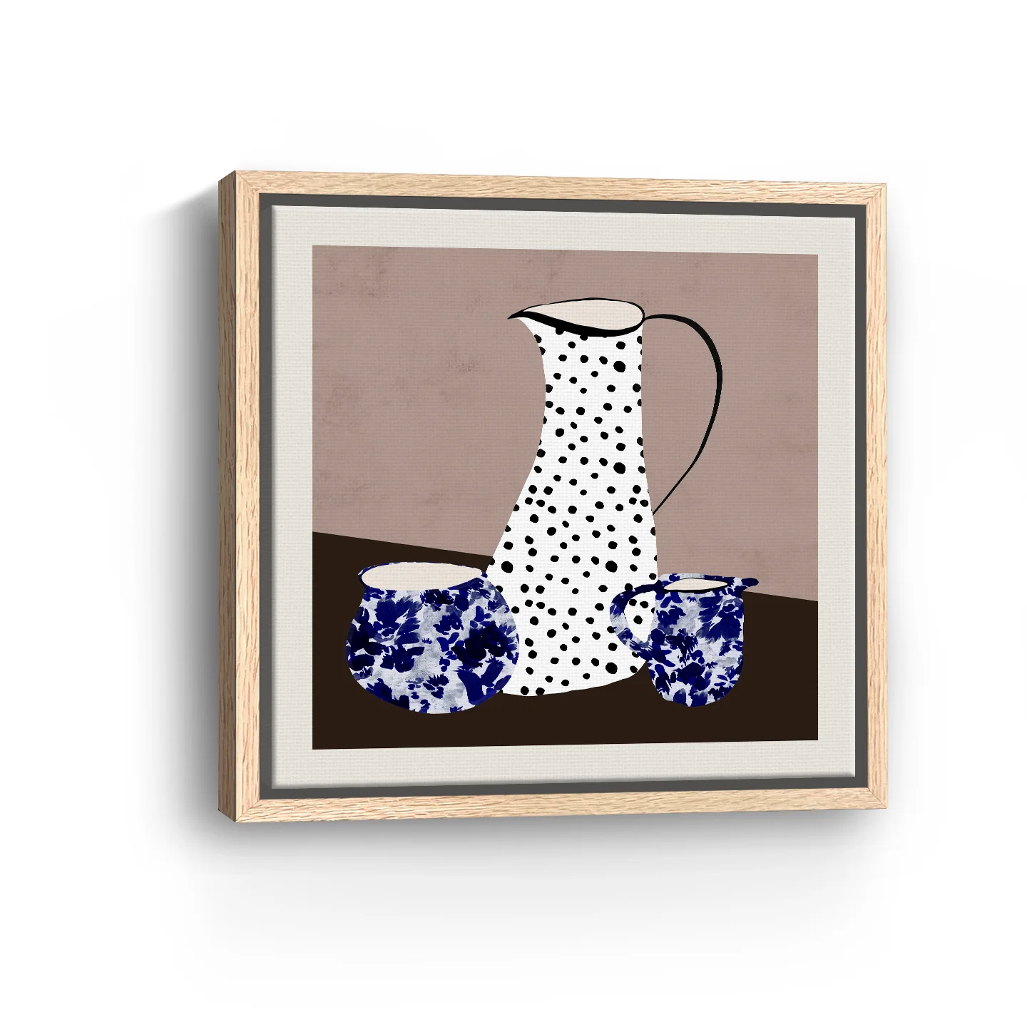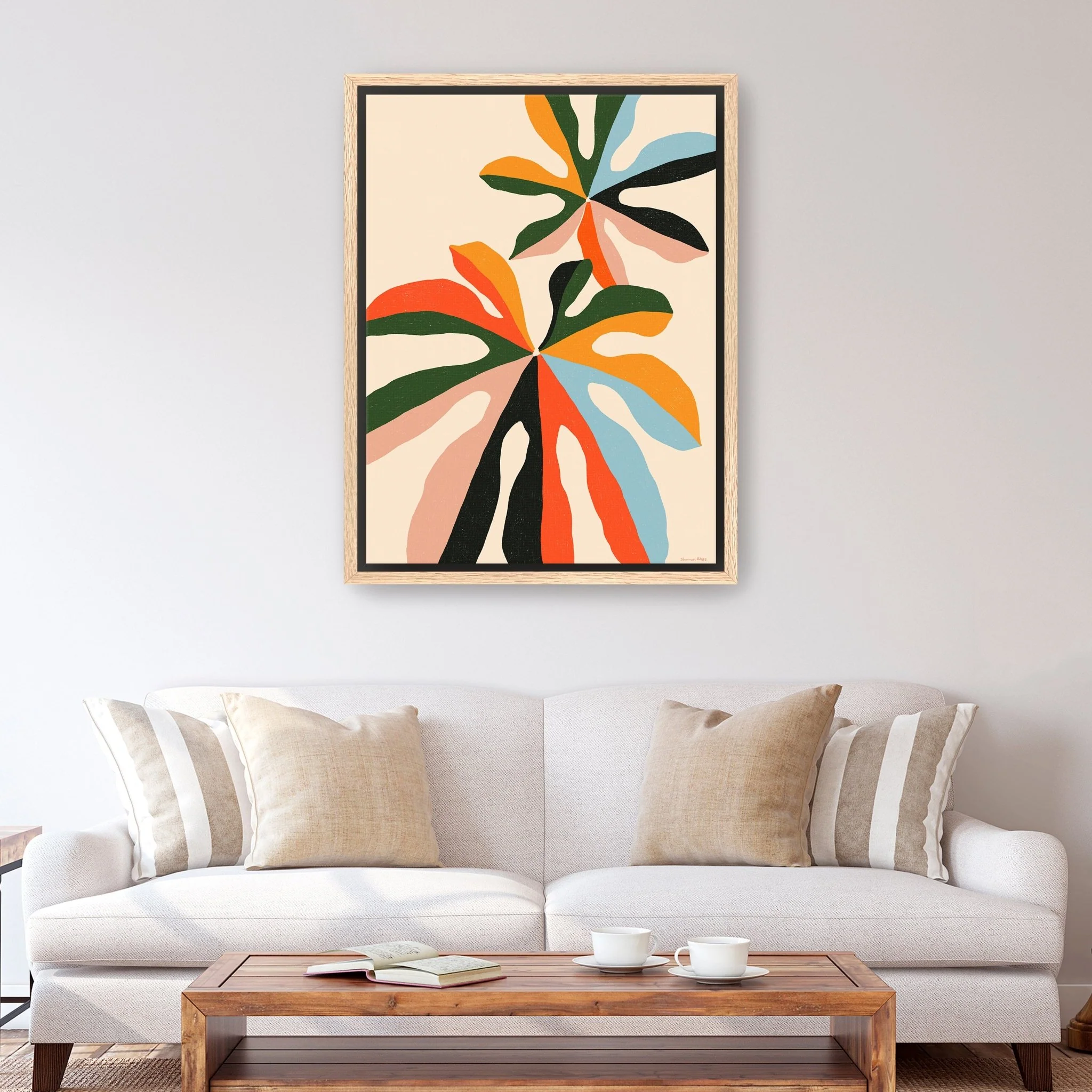 Brown and White Minimalist Leaf Paintings with Black Frame, Set of 2