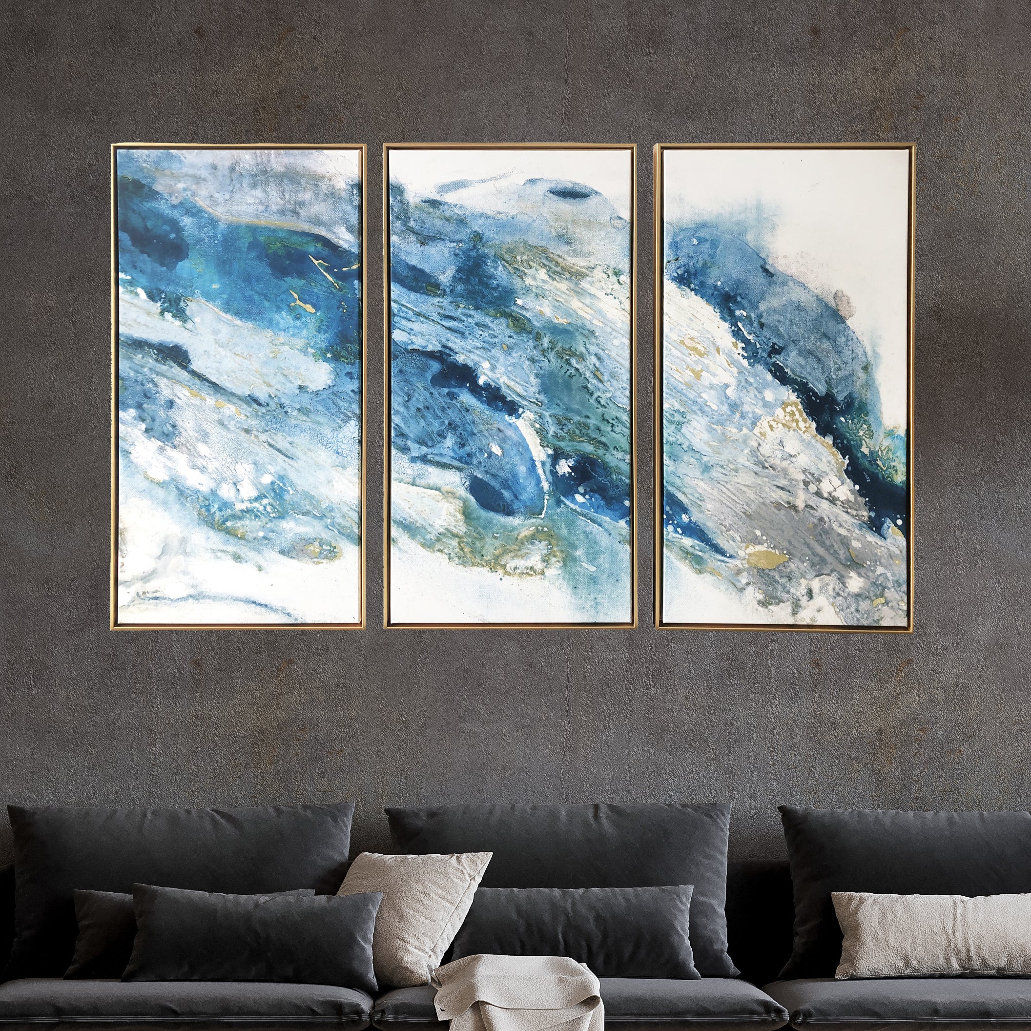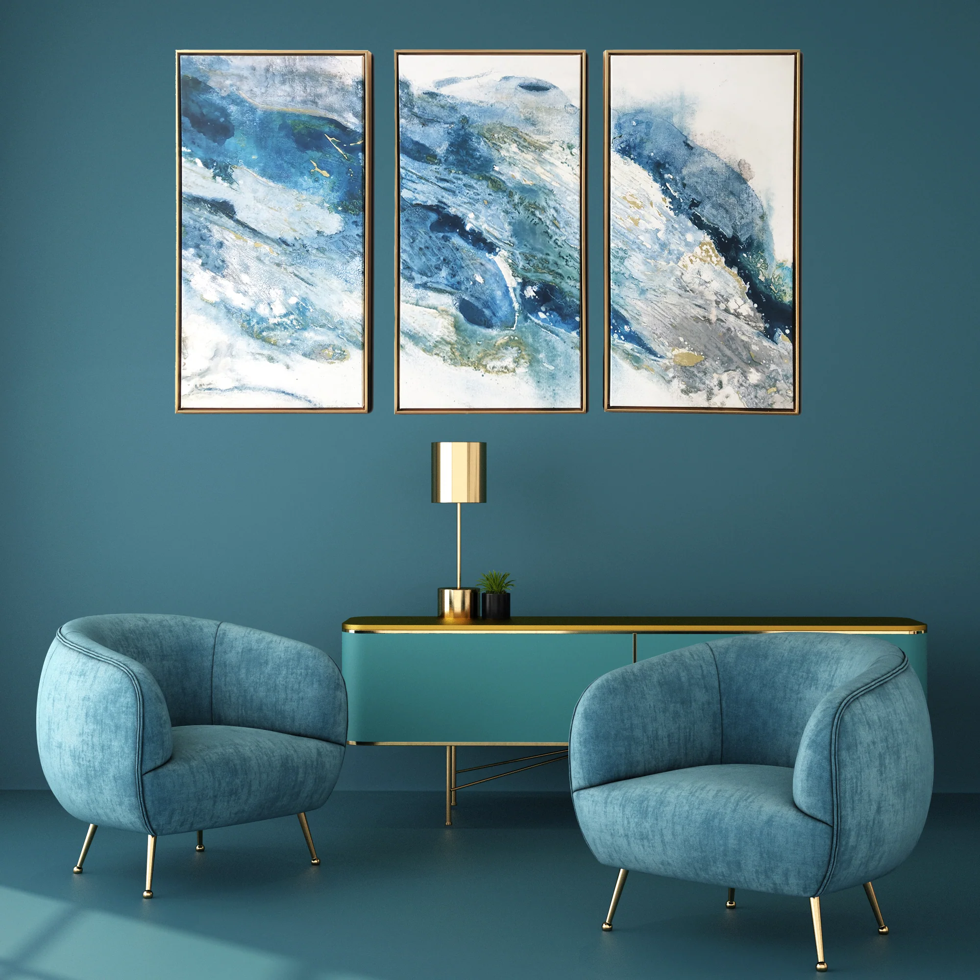 Abstract Turquoise Regalite 3-Piece Gold Framed Canvas Wall Art